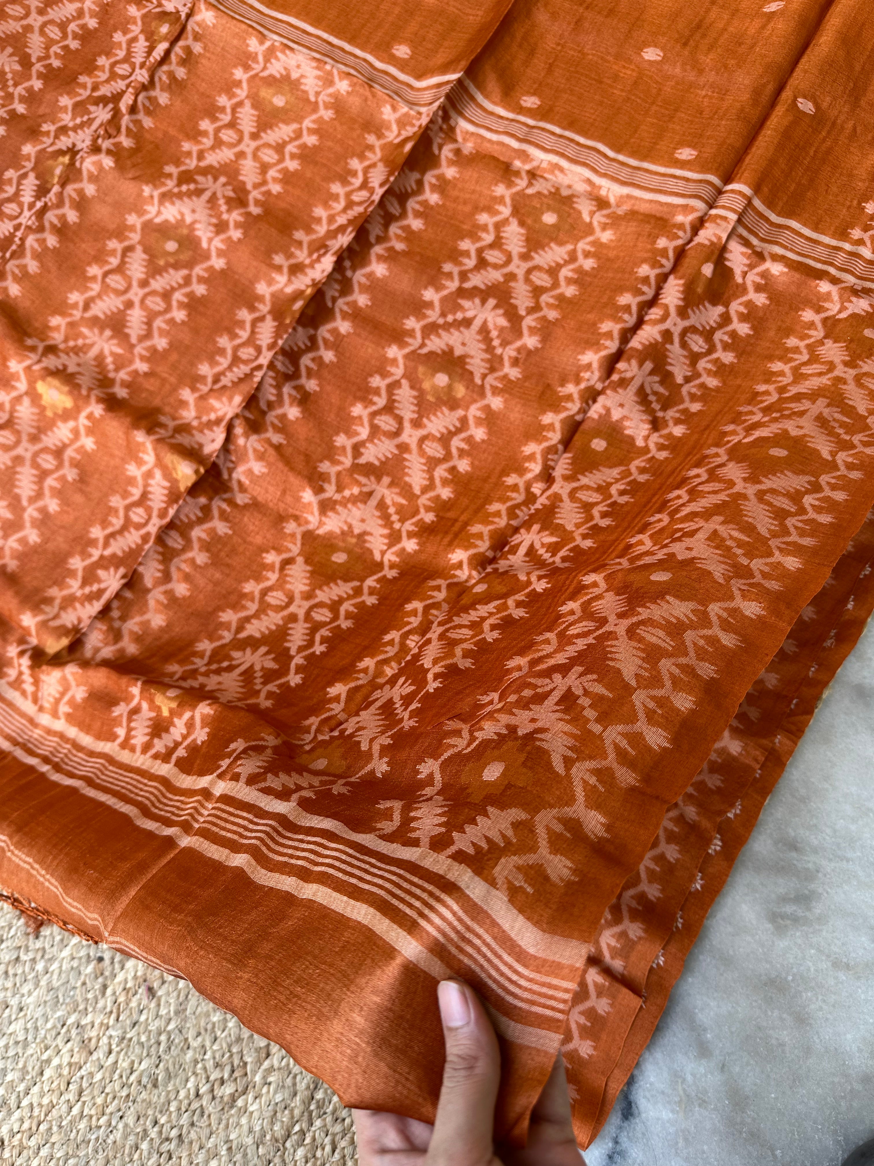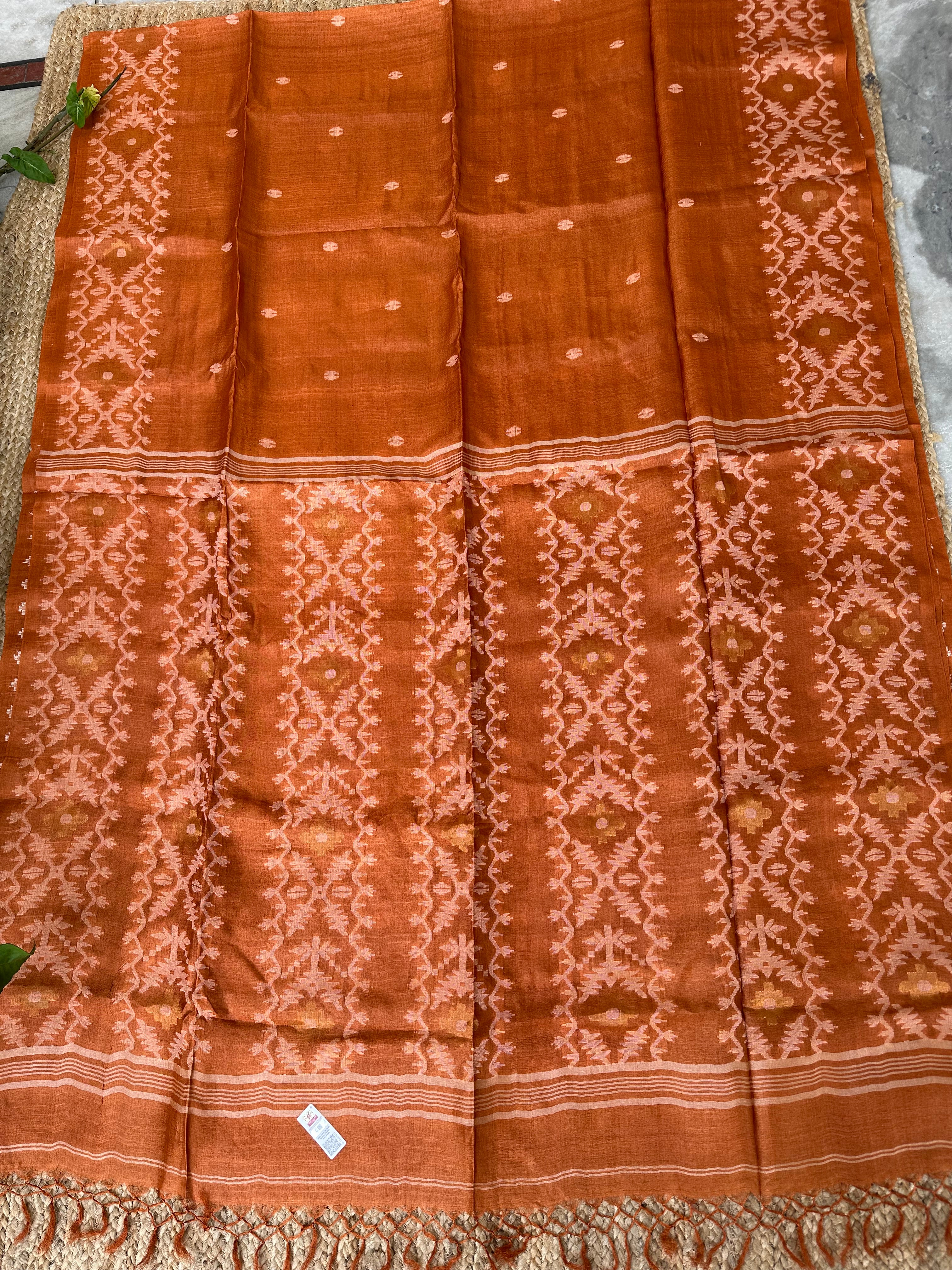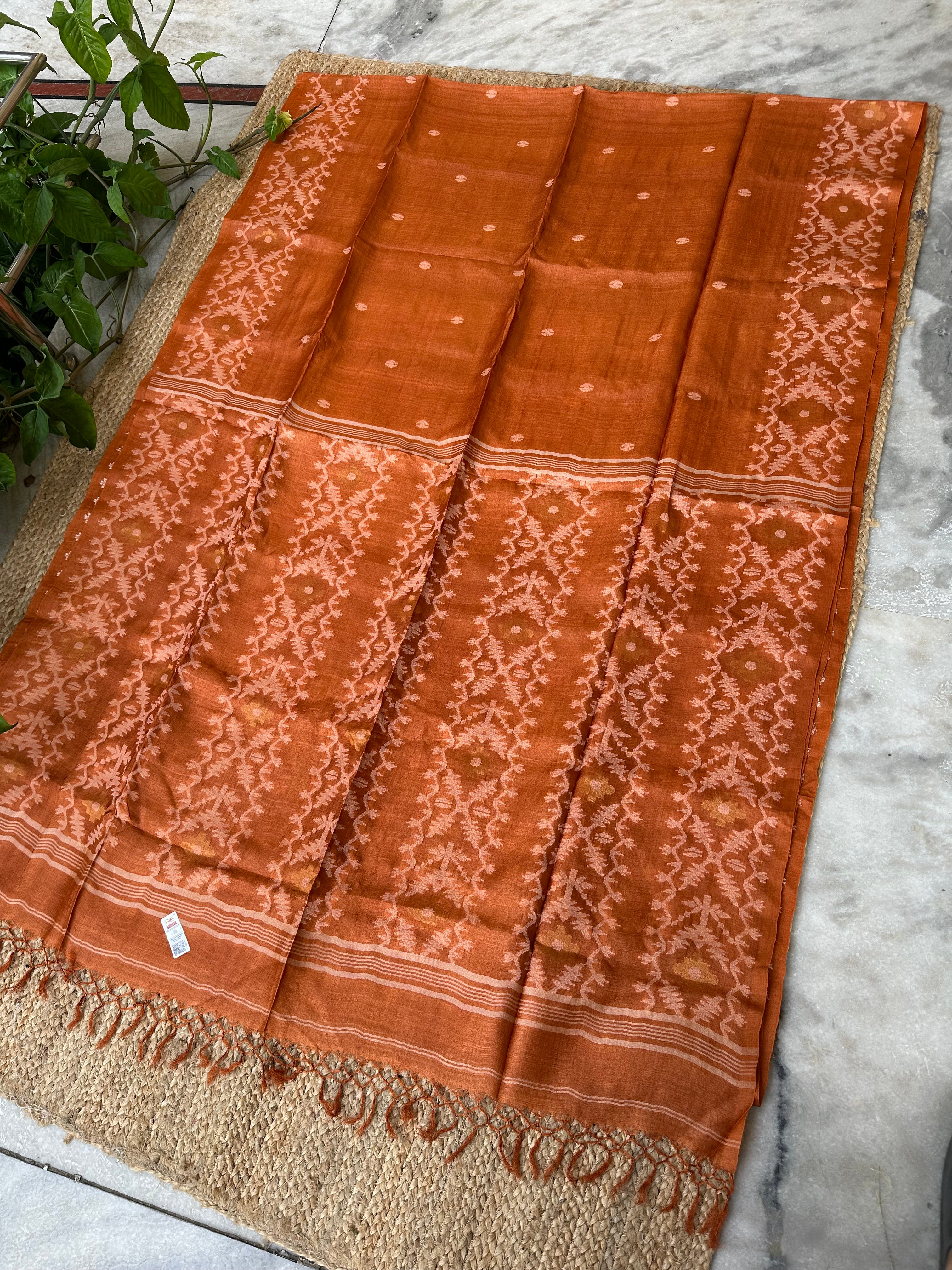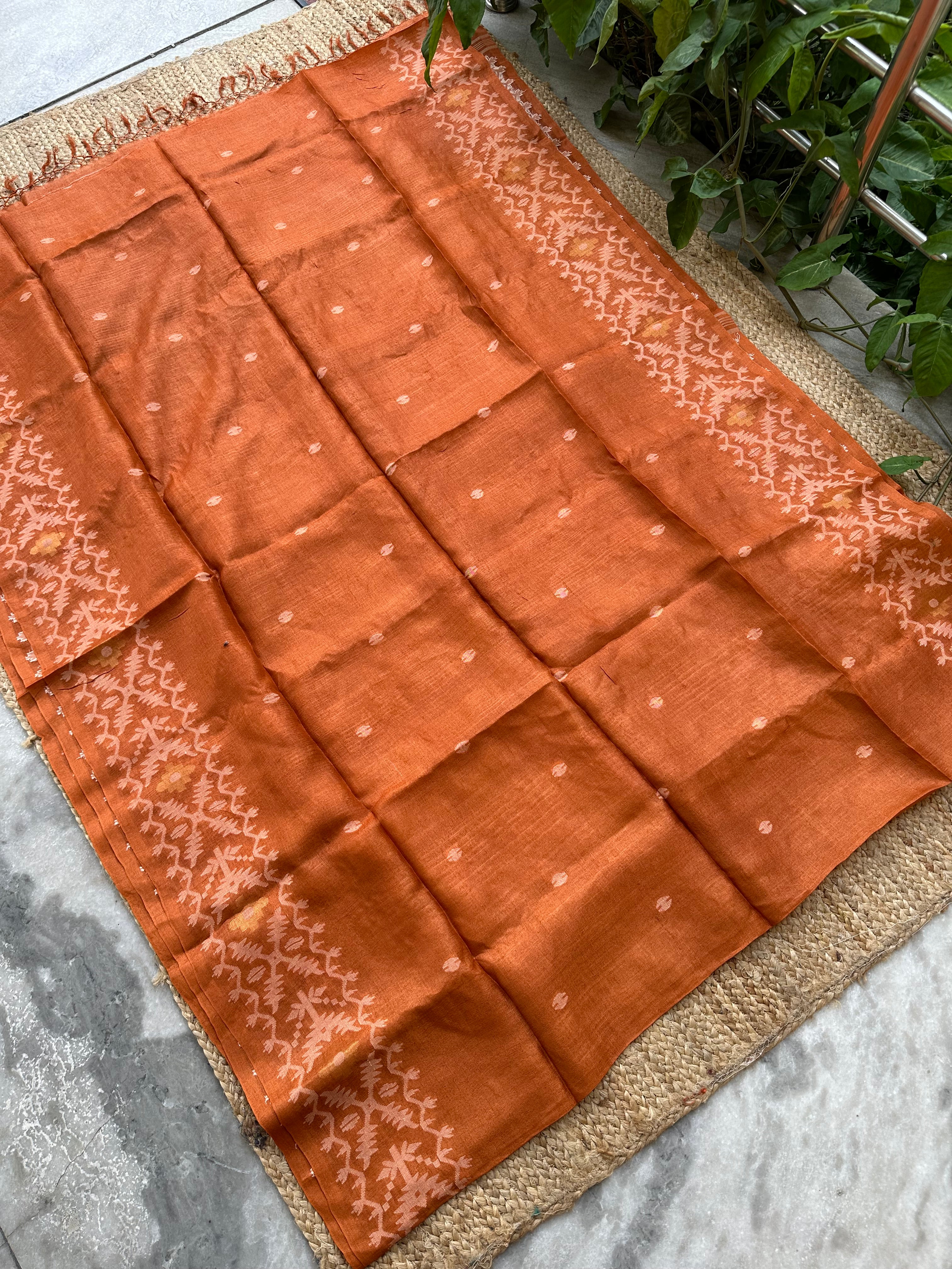 Rust Tusser Jamdani Handloom Saree with Silk mark