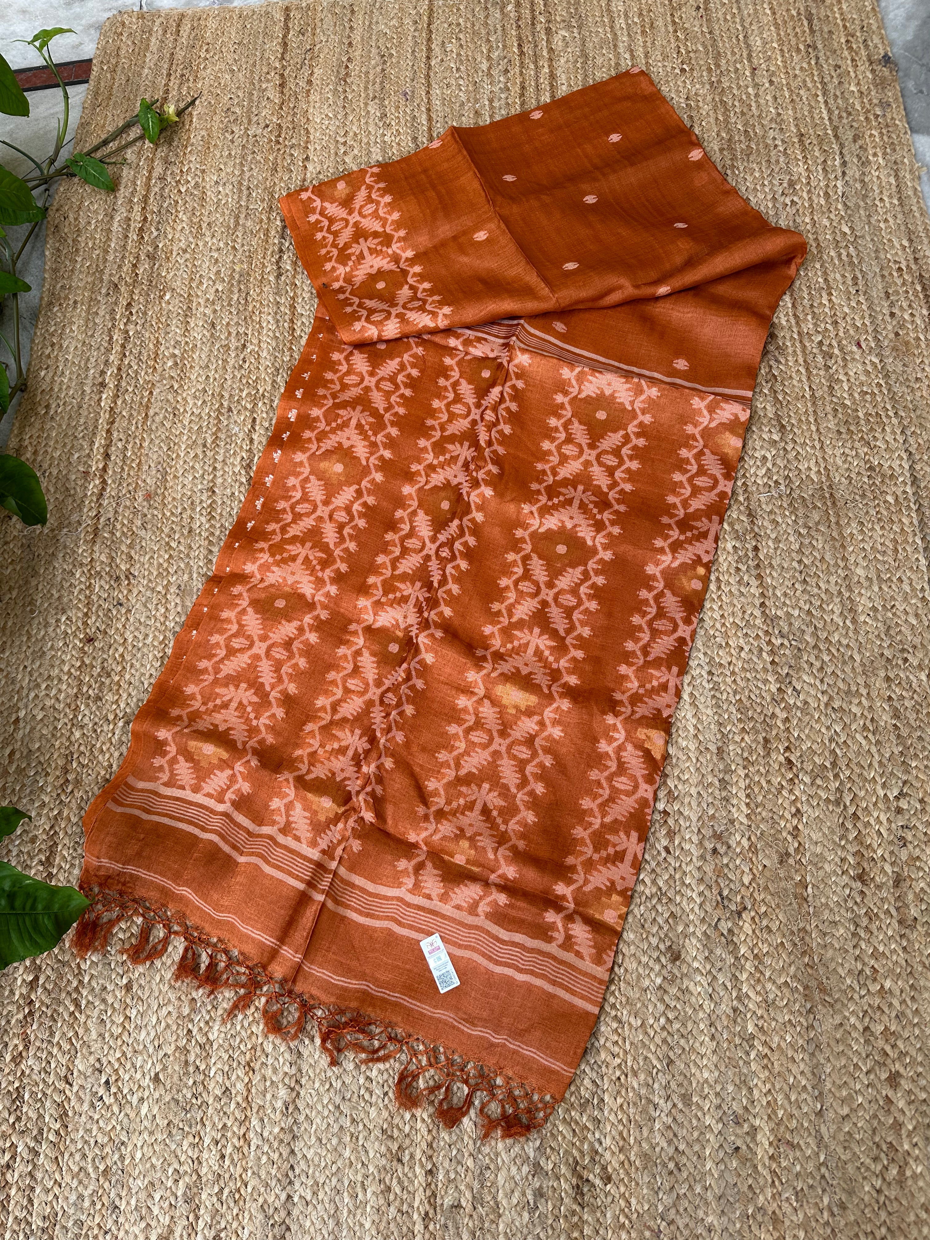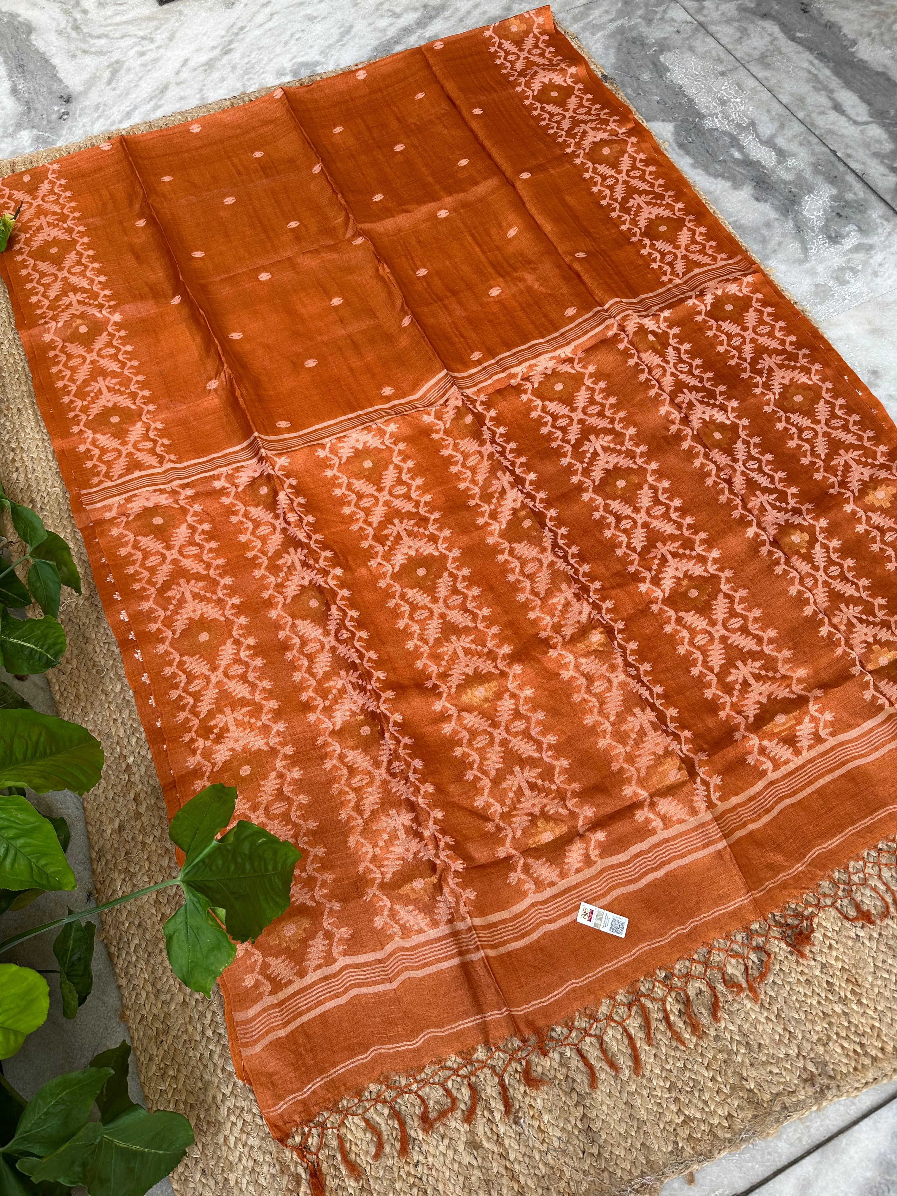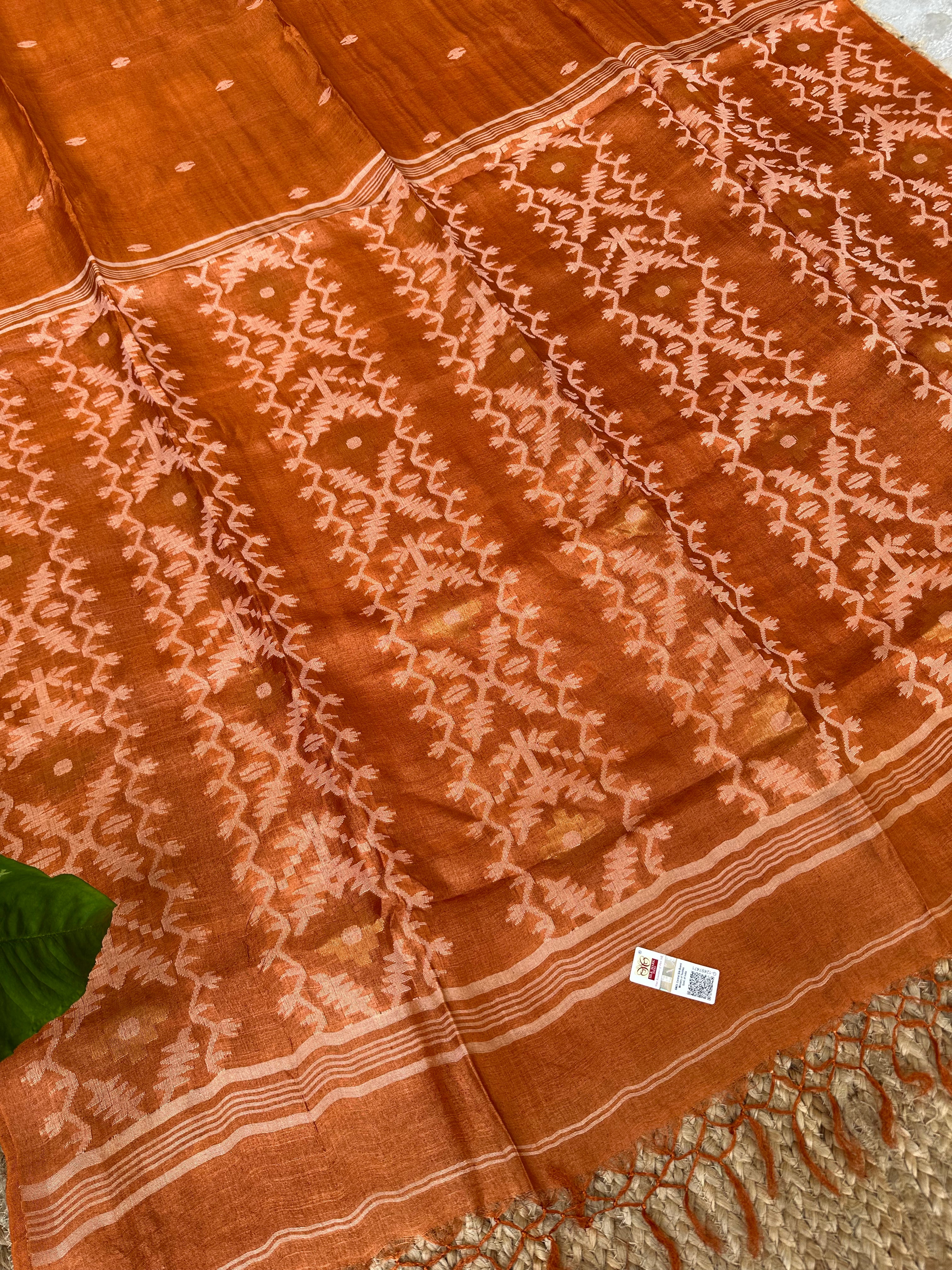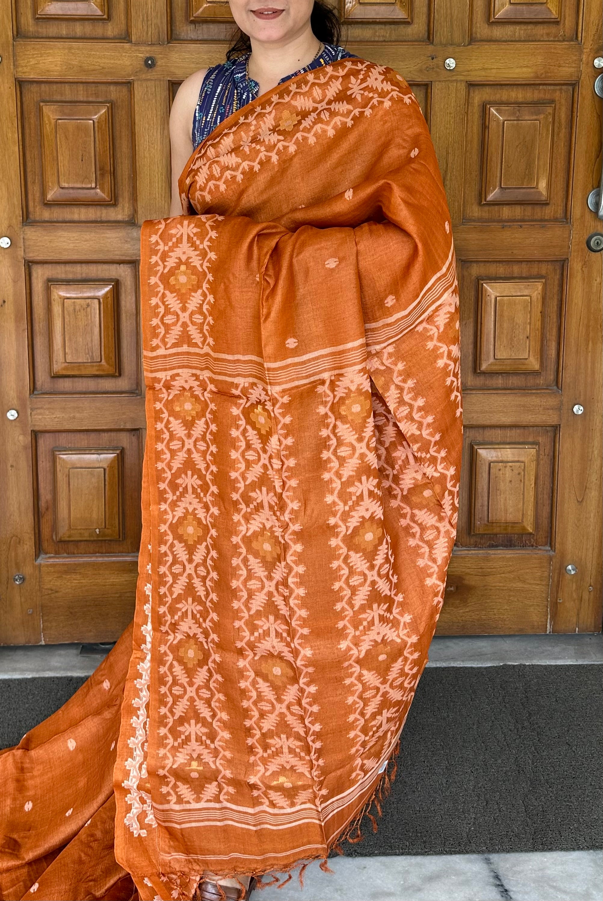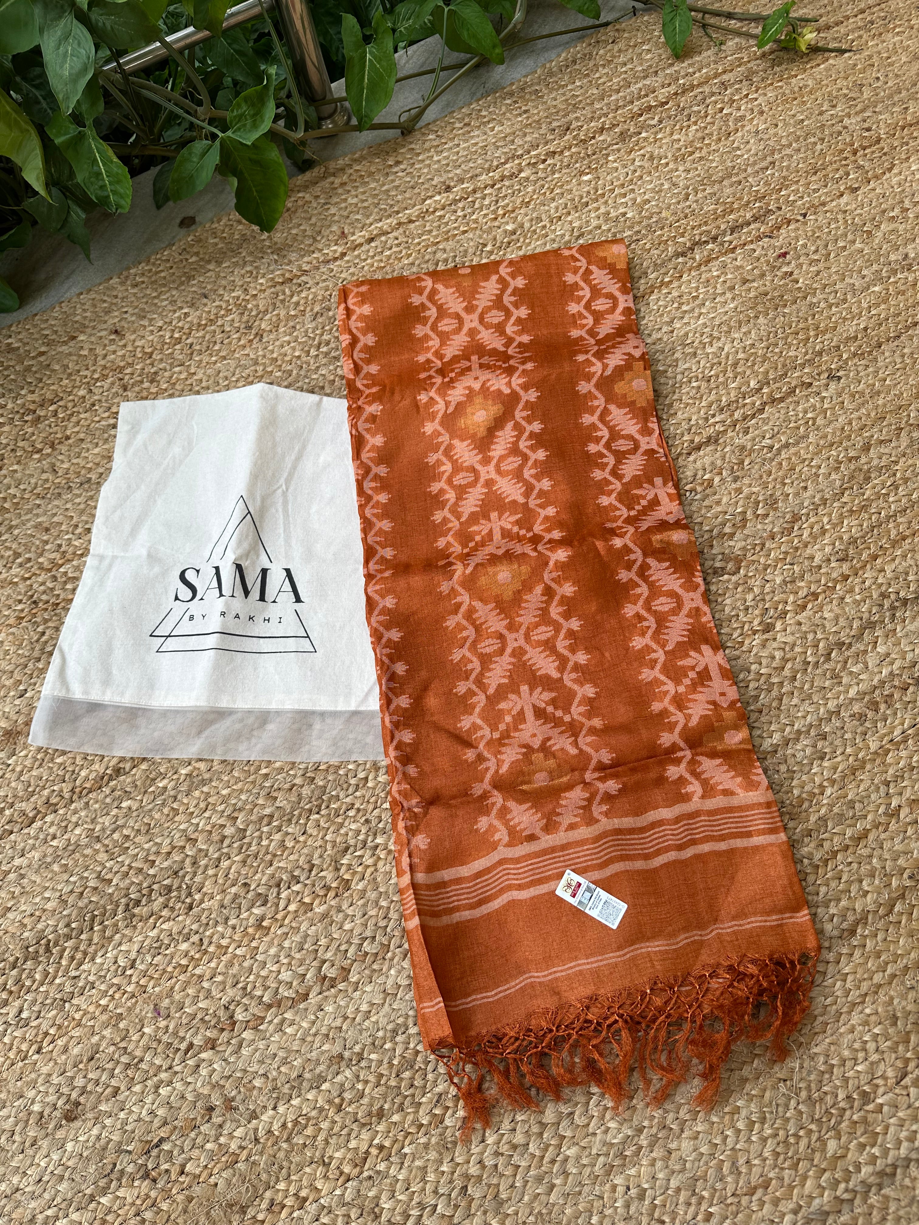 Rust Tusser Jamdani Handloom Saree with Silk mark