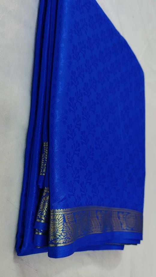 Experience the elegance and comfort of our Semi Crepe saree. Made with self-woven fabric and thin borders, this saree embodies effortless and grace. Perfect for any occasion, let this saree elevate your wardrobe.