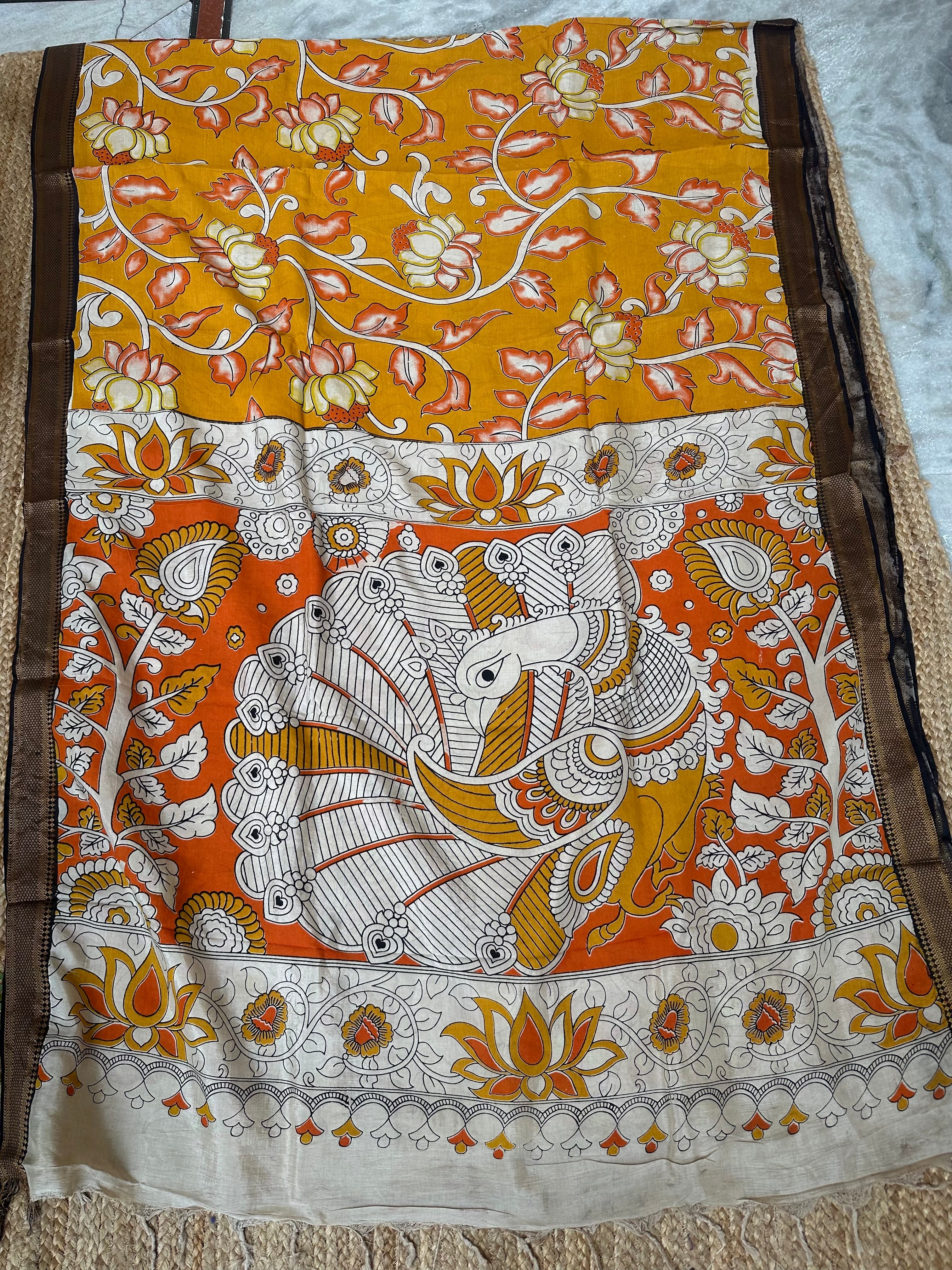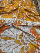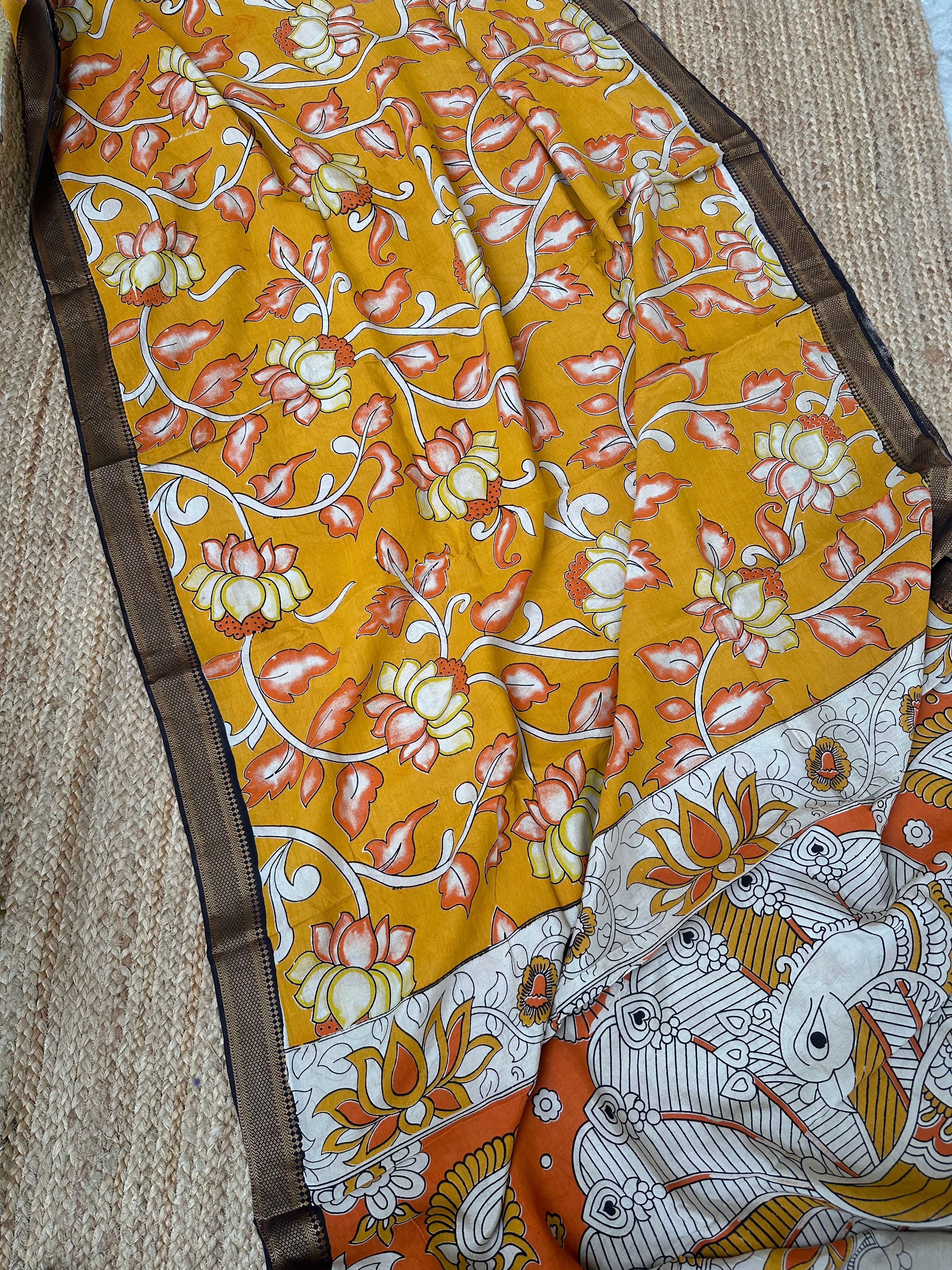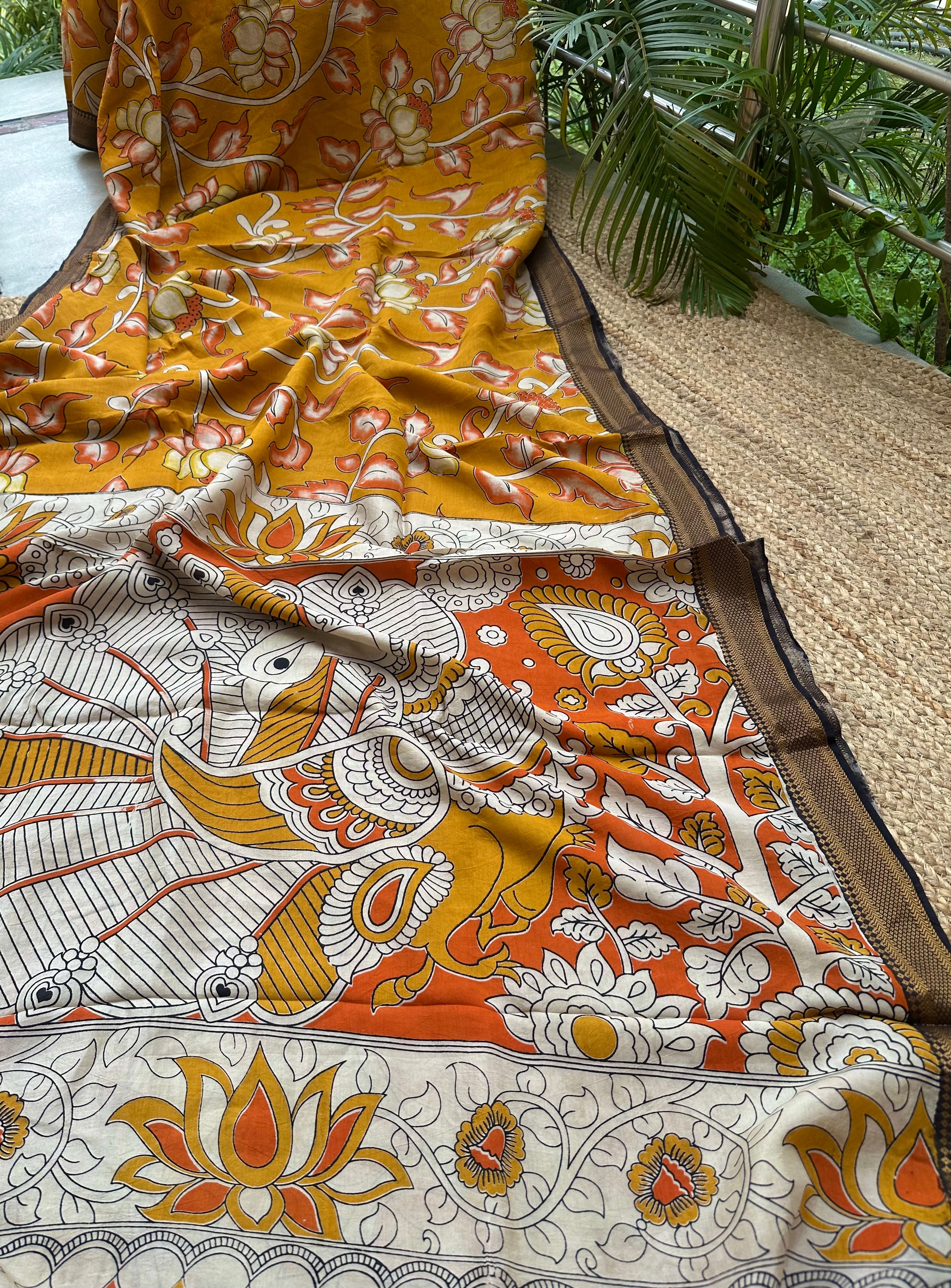 Material: Pure Chennur silk Kalamkari work saree. Very flowy fabric that you can wear in any weather.