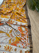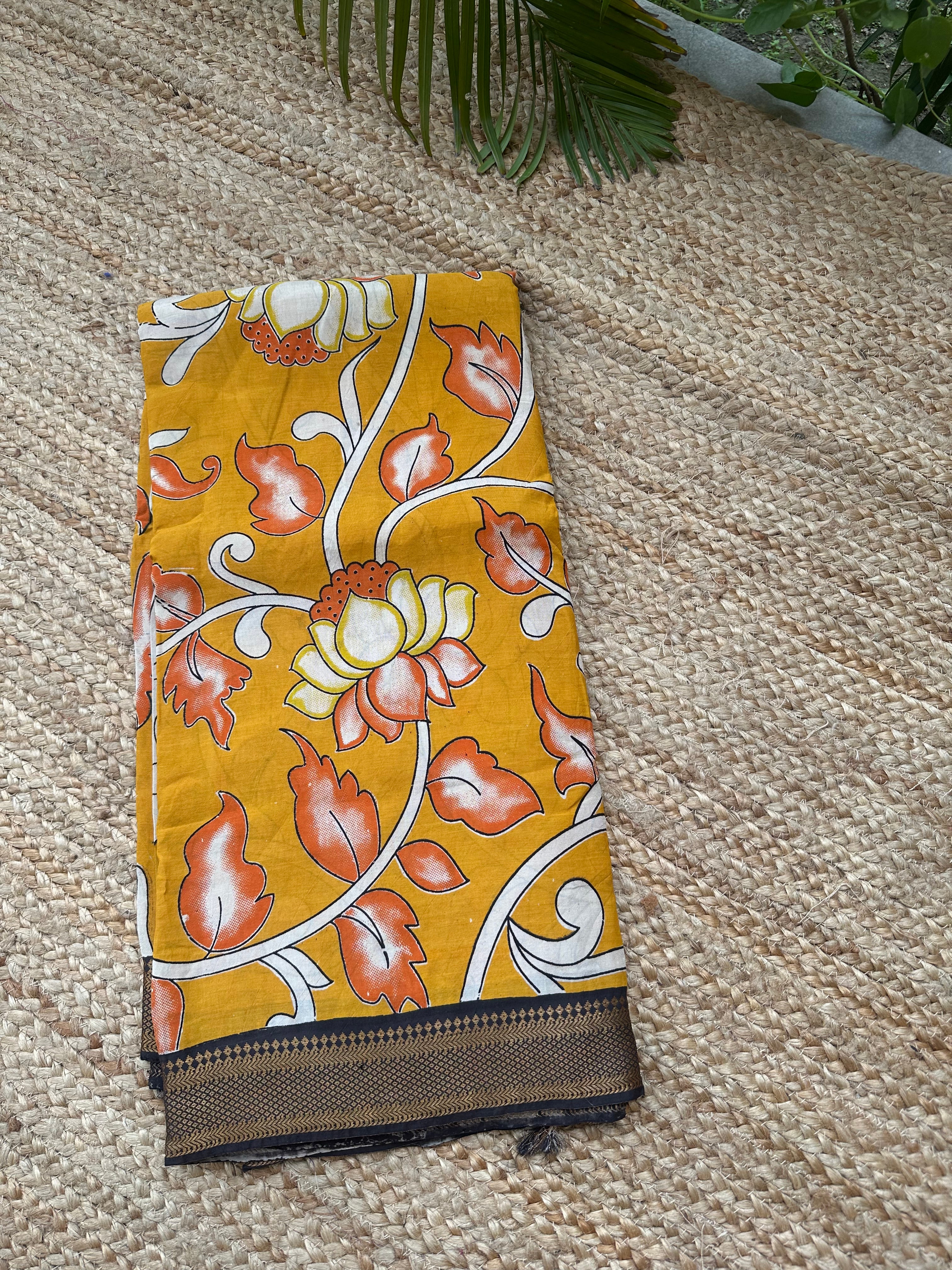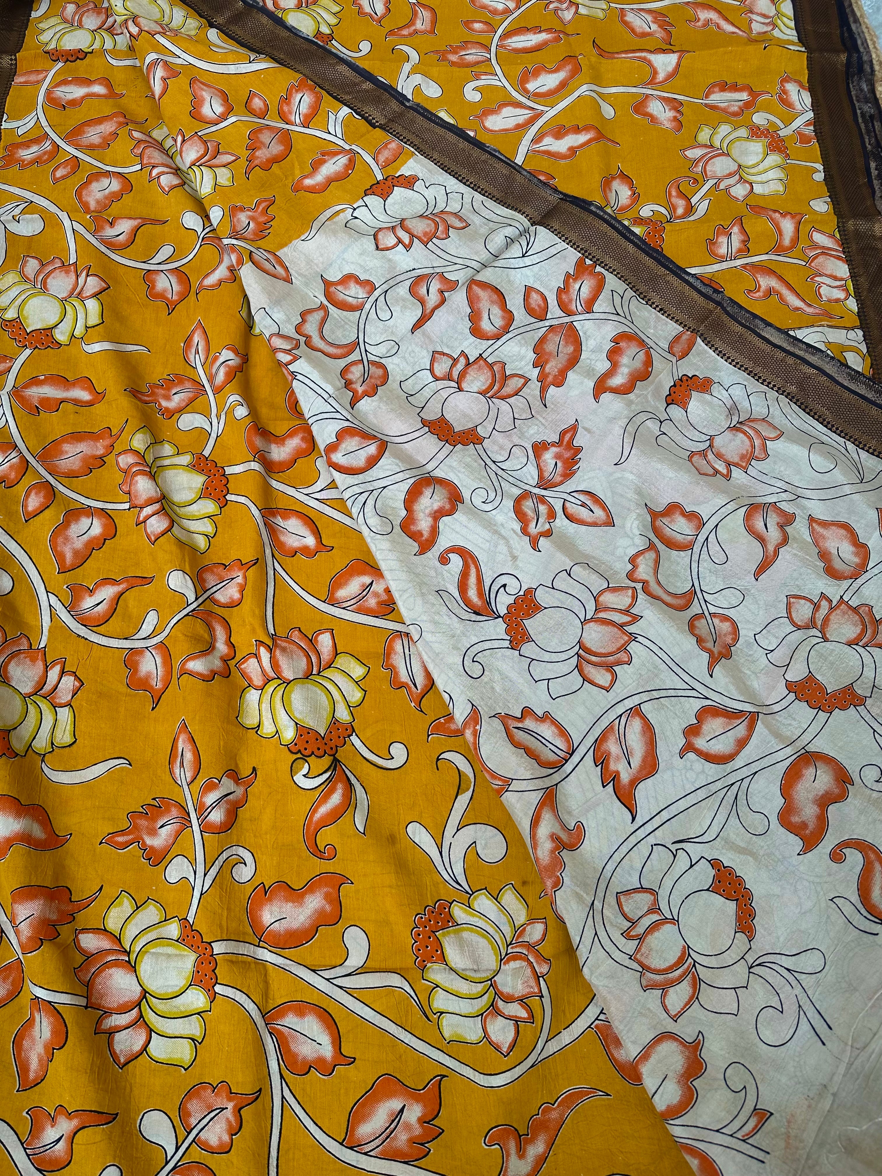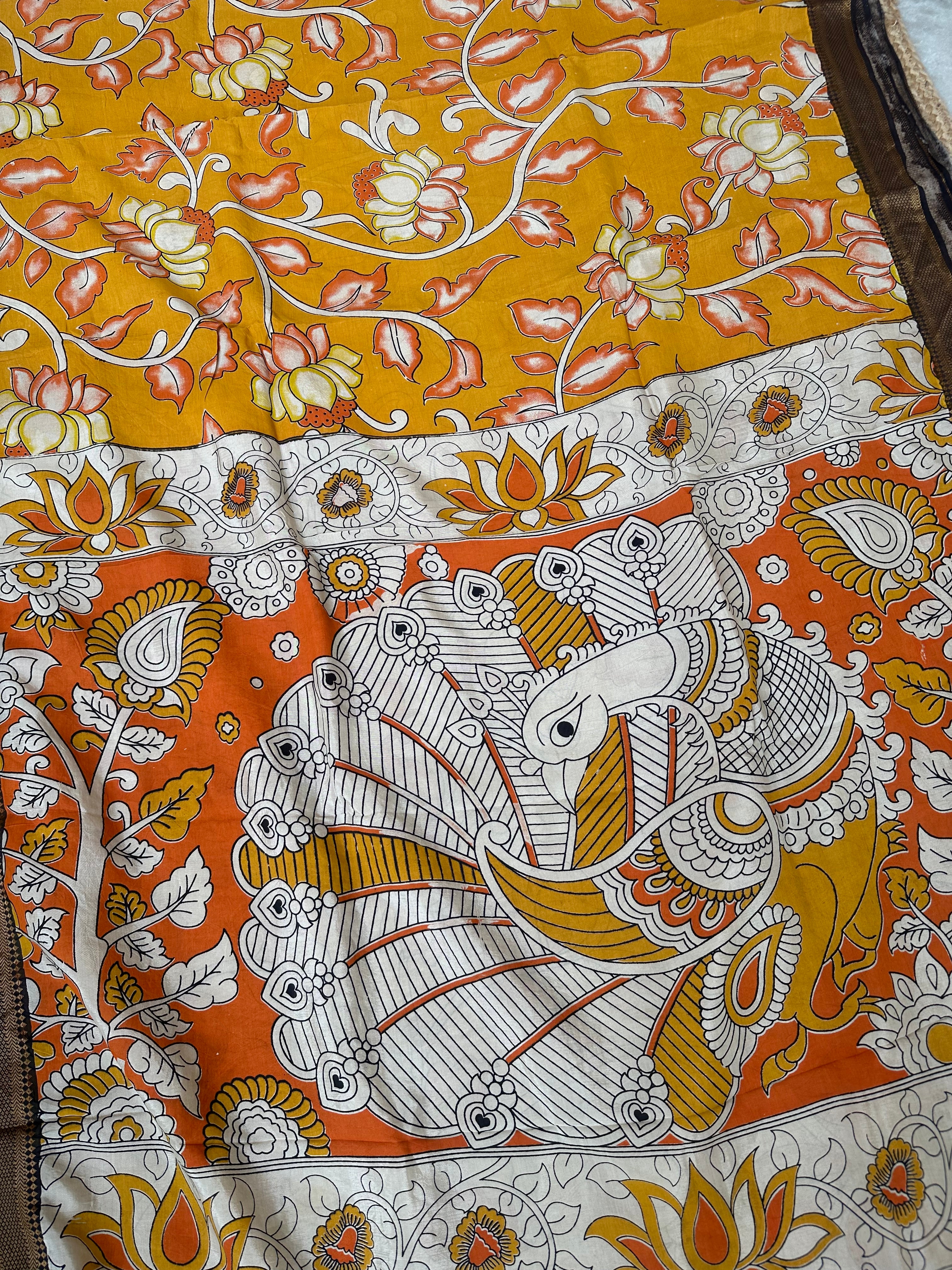 Material: Pure Chennur silk Kalamkari work saree. Very flowy fabric that you can wear in any weather.