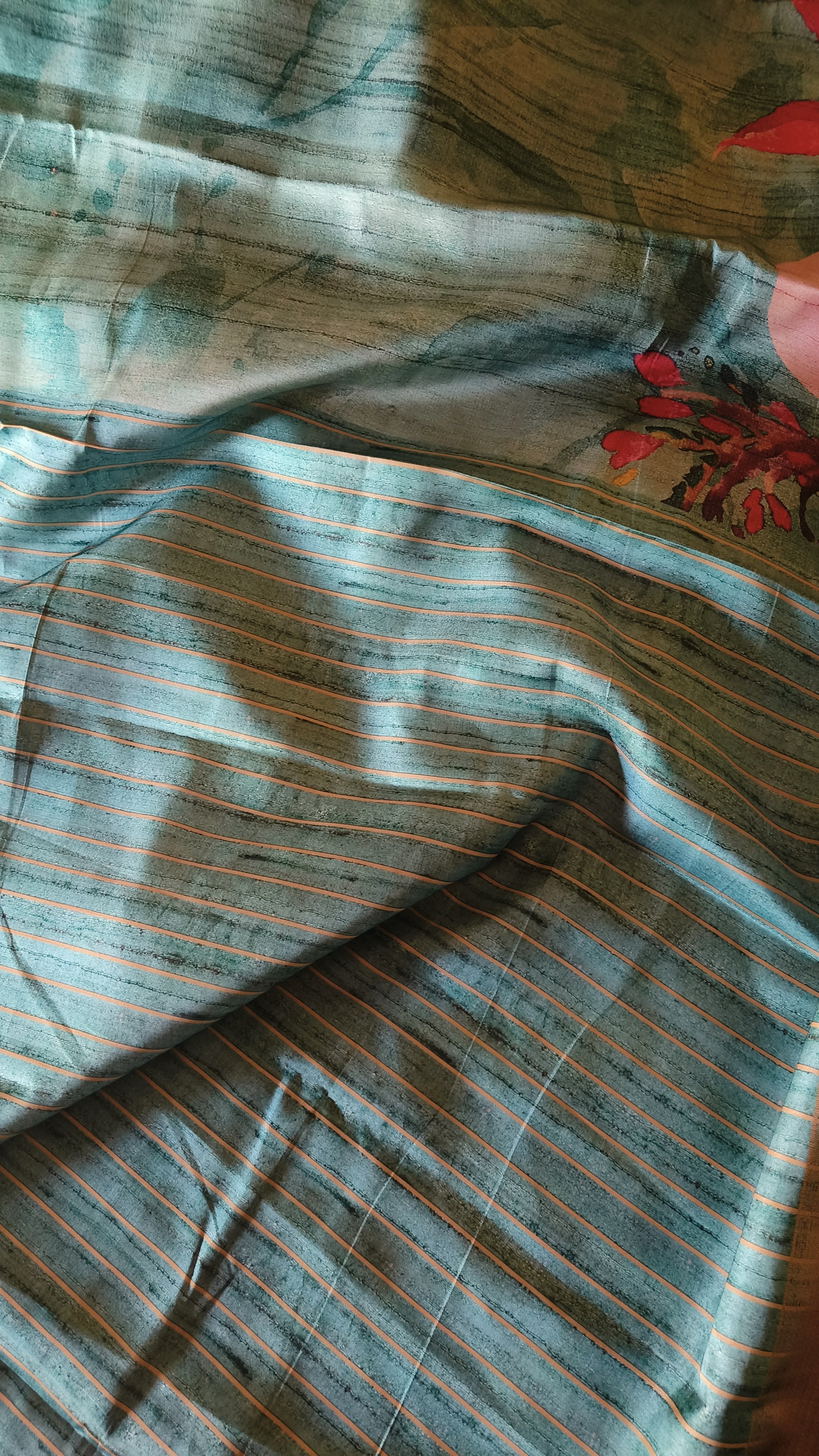 Please keep in mind that colour on ajrakh sarees and suits are natural dyes and they tend to bleed little while washing so wash seperately.