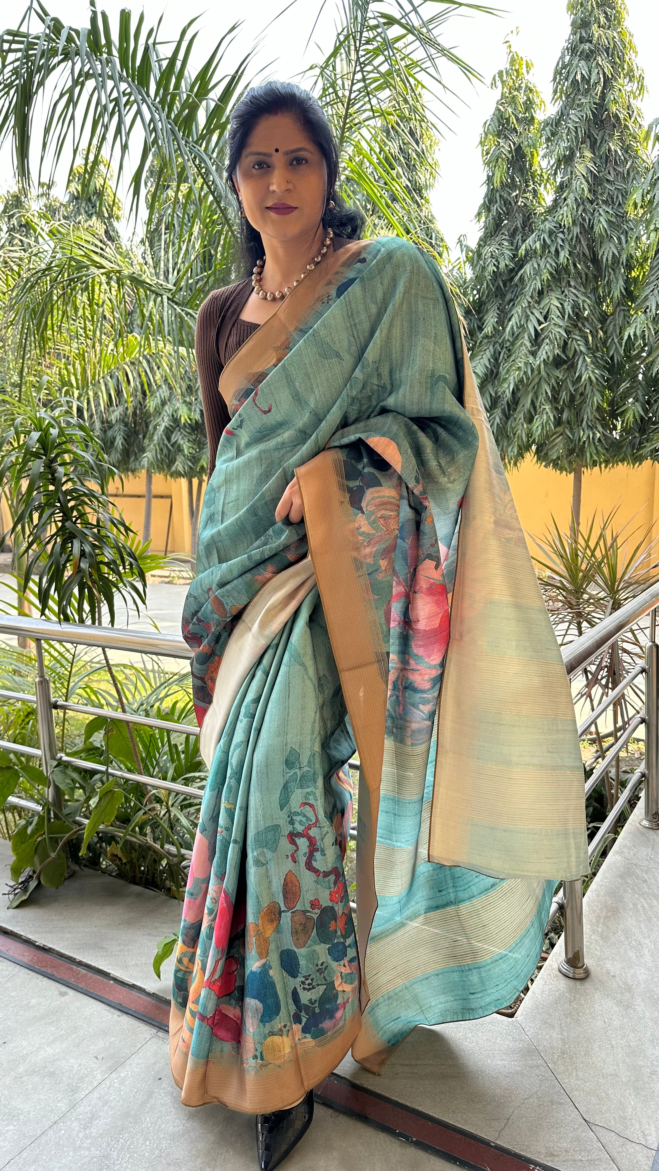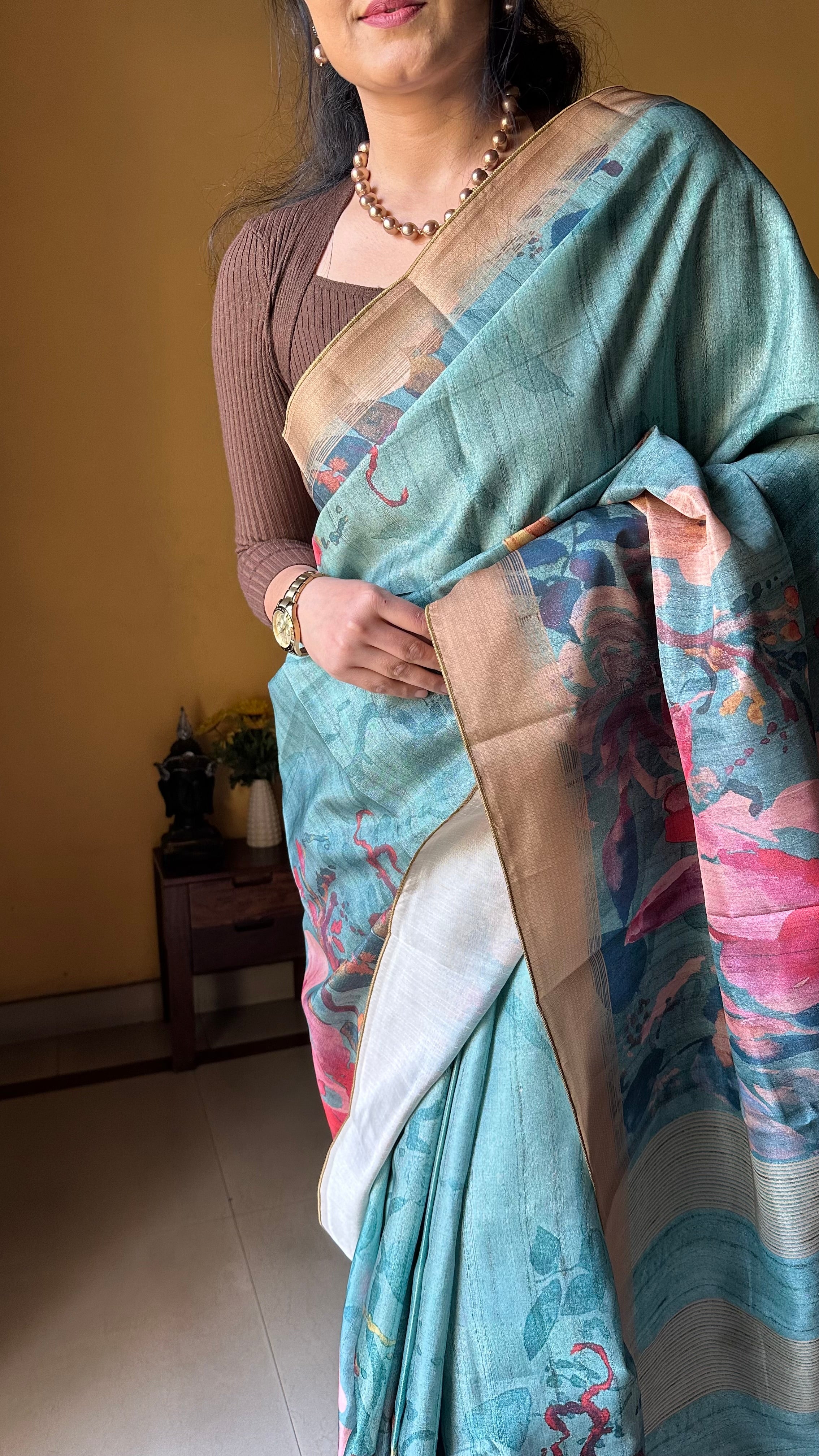 Zia Semi Tusser Saree Sea Blue
