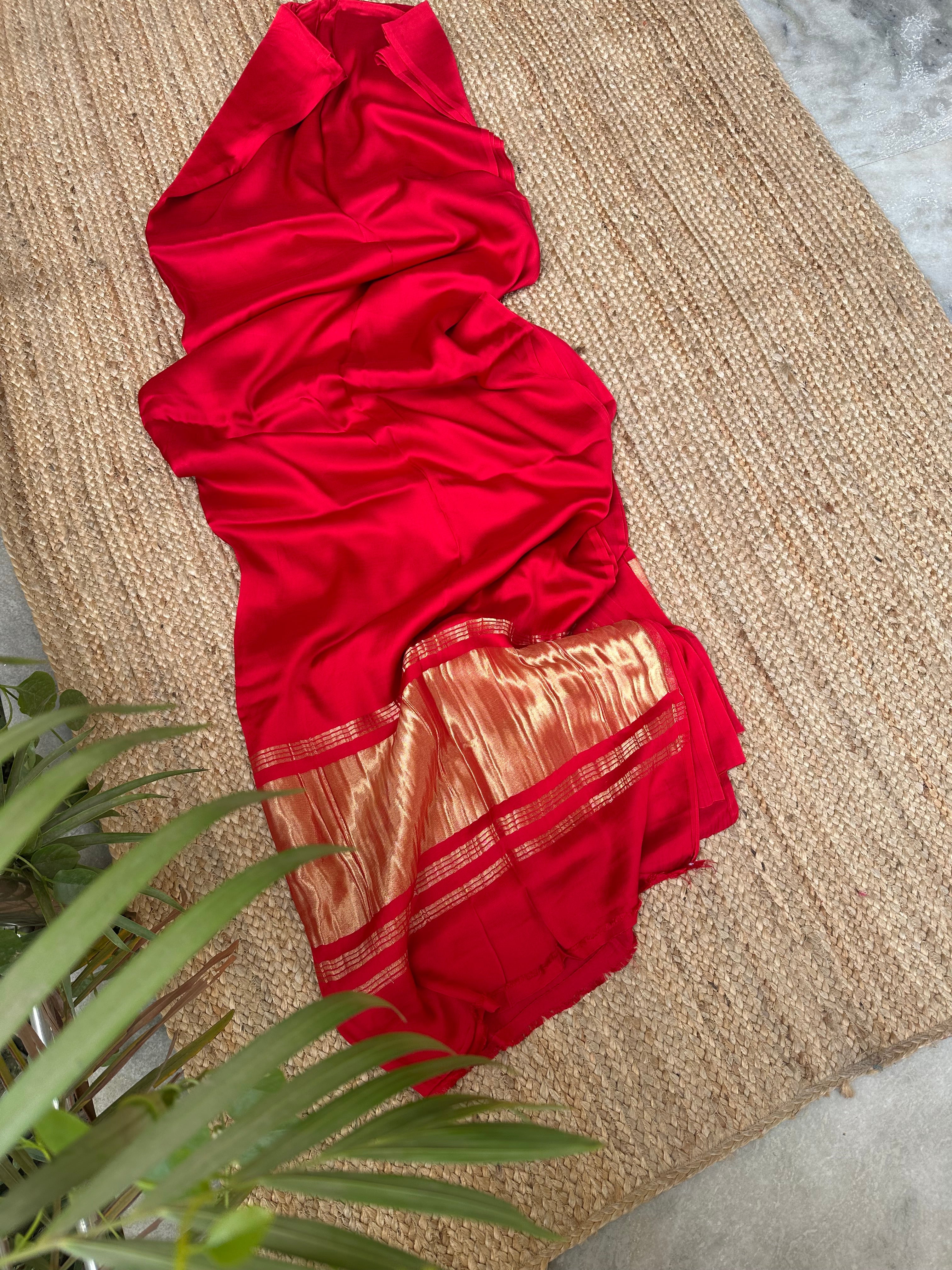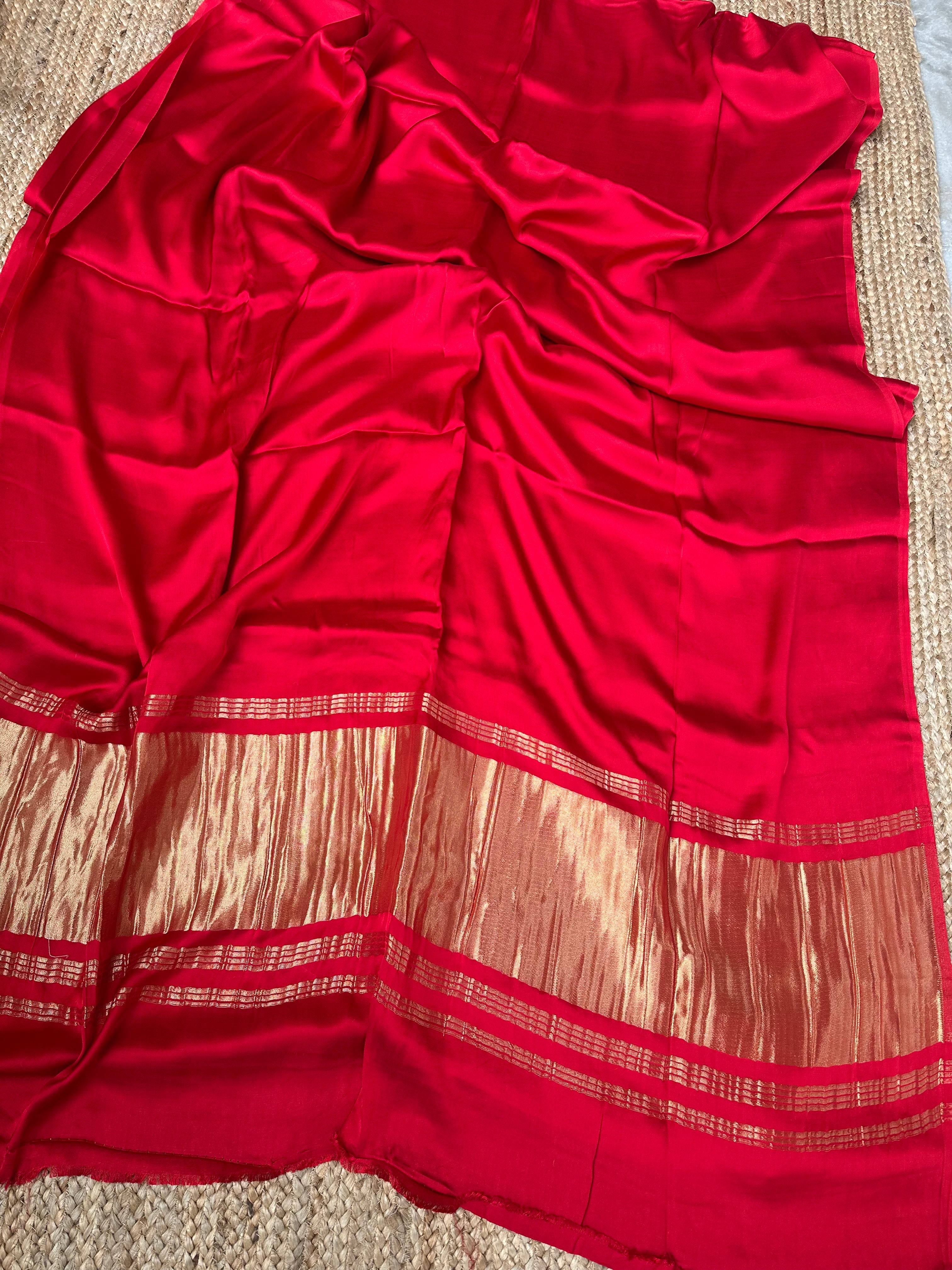 Red Pure Mashru Silk Saree with woven Zari flowers