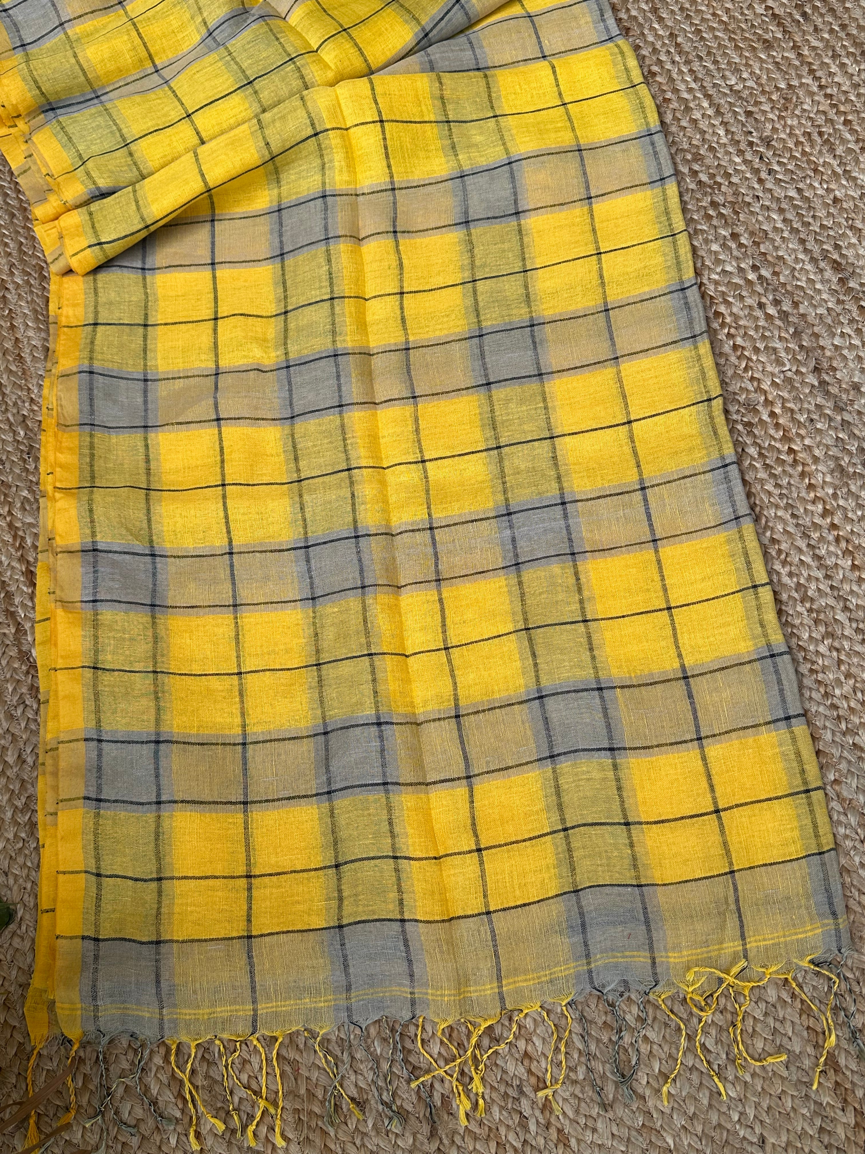 Yellow Linen Tissue Muslin Pallu Handloom Saree