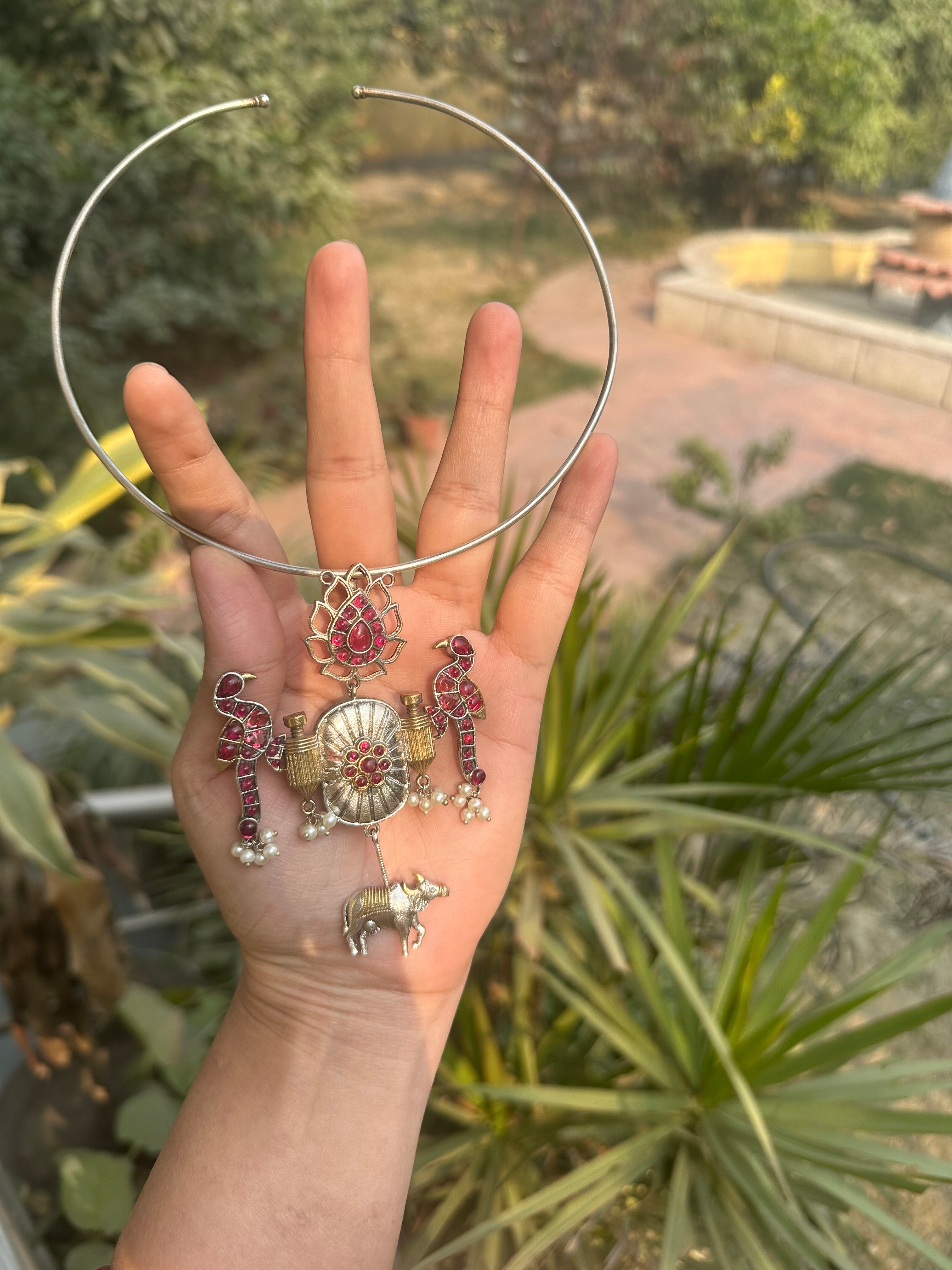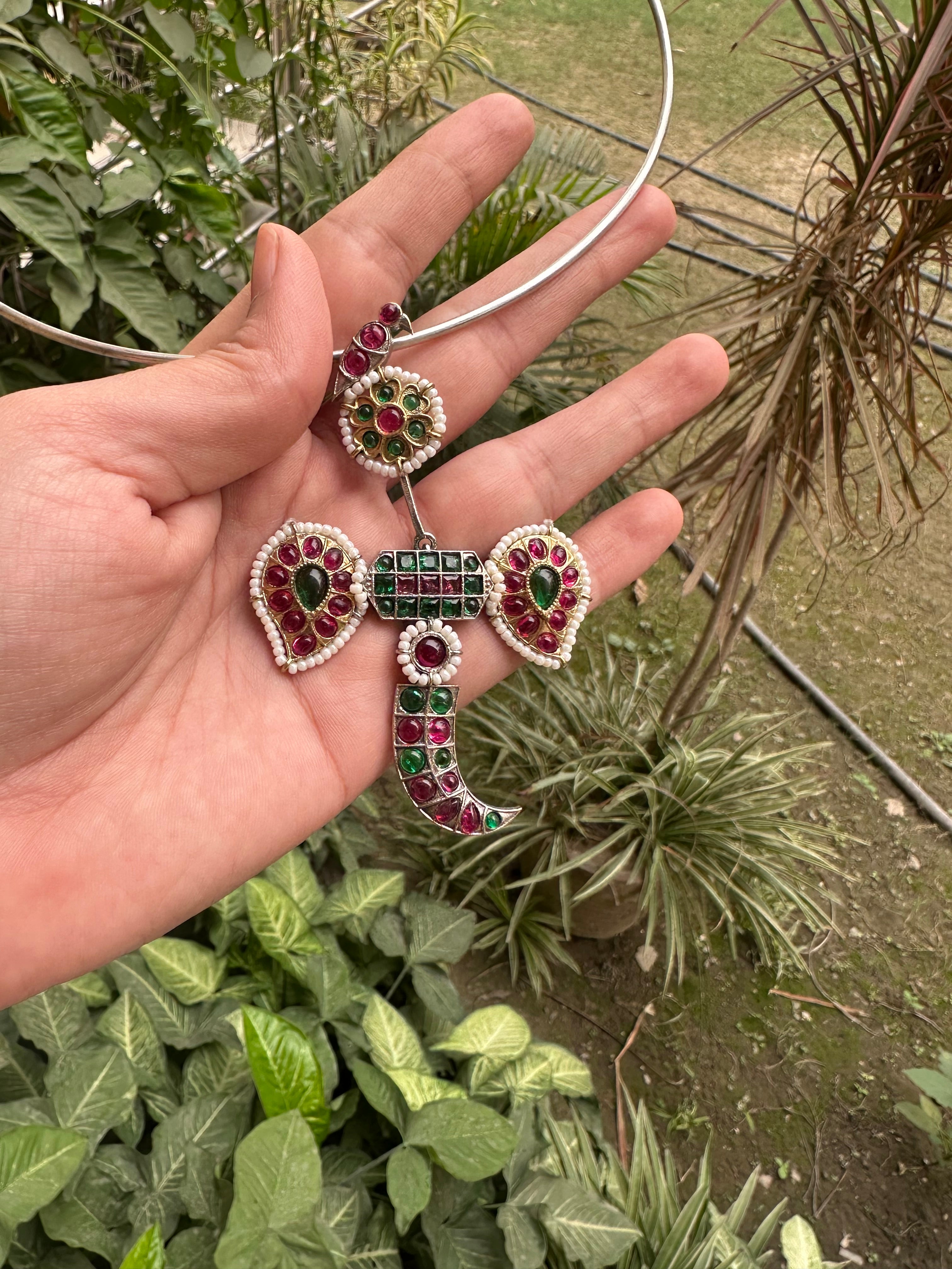 Handcrafted Silver Replica Hasli (Pink Stones)