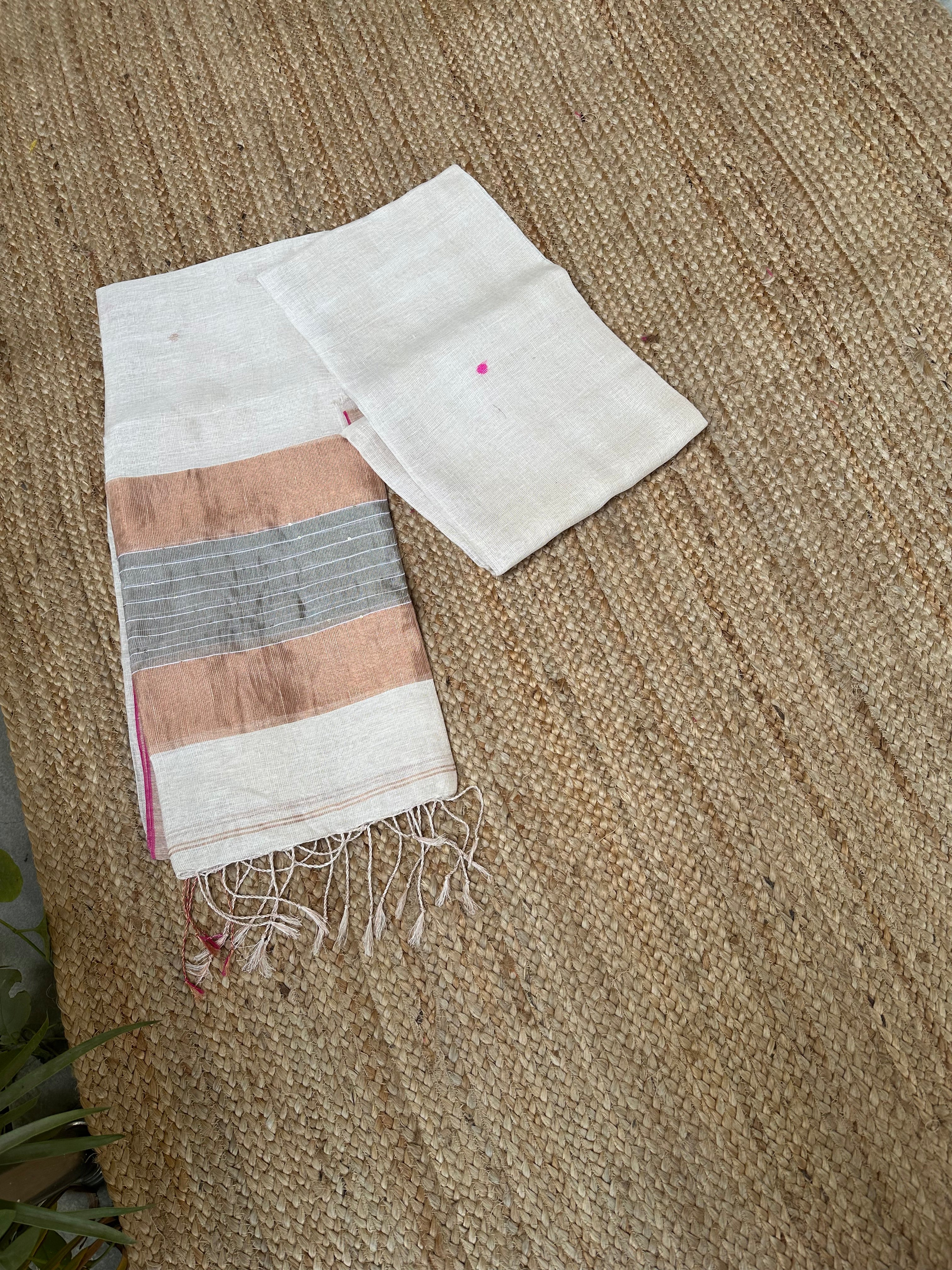 Orange Linen Handloom Jamdani Zari Kurta Dupatta Set