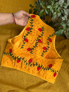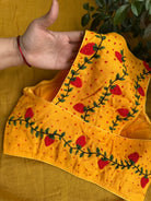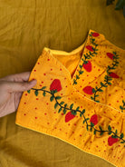 Racer Back French Knots Hand Embroidered Blouse- Yellow