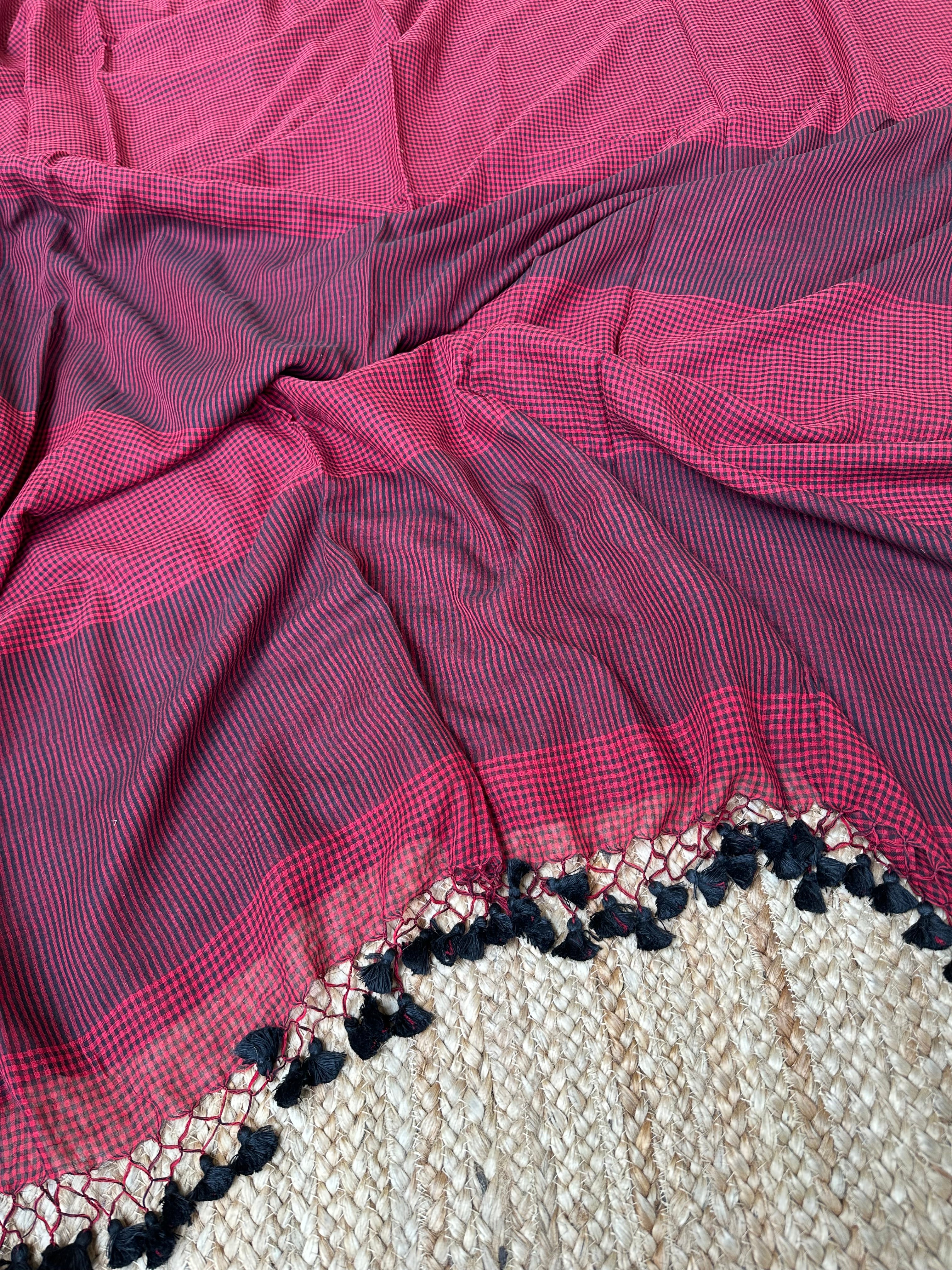 Handloom Gamcha Cotton Sleeveless Lace Work checks Blouse (Maroon)