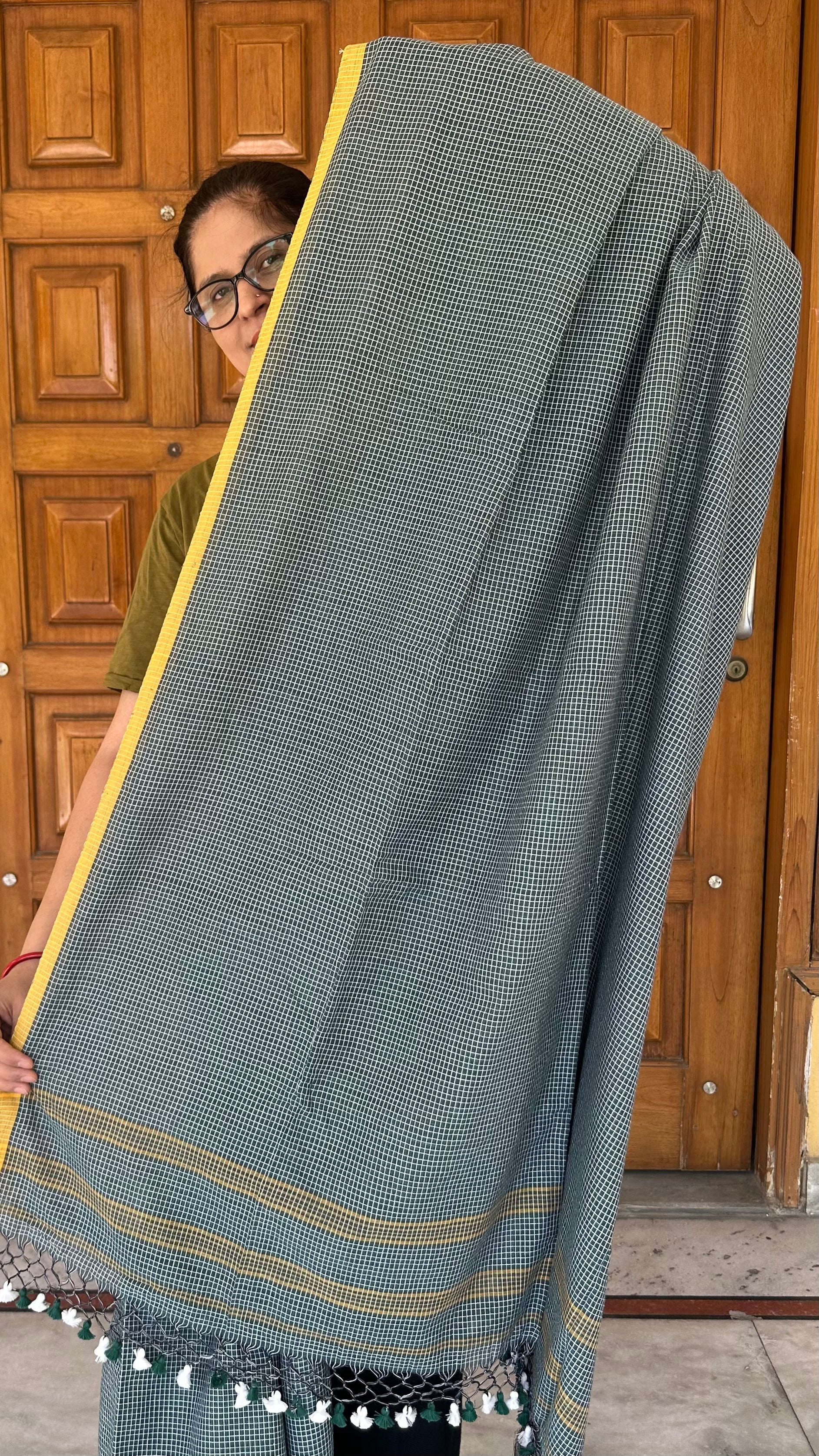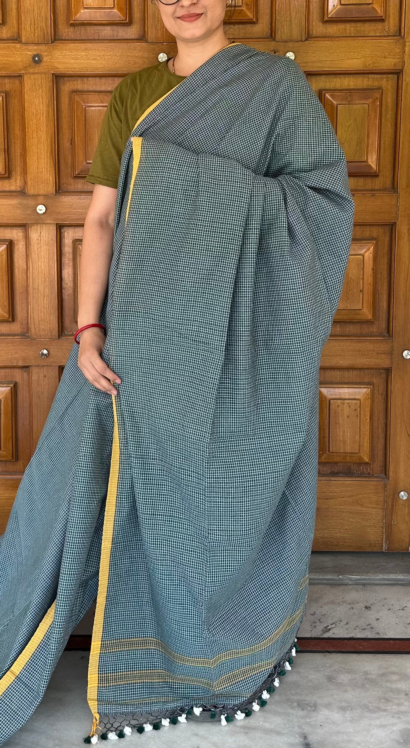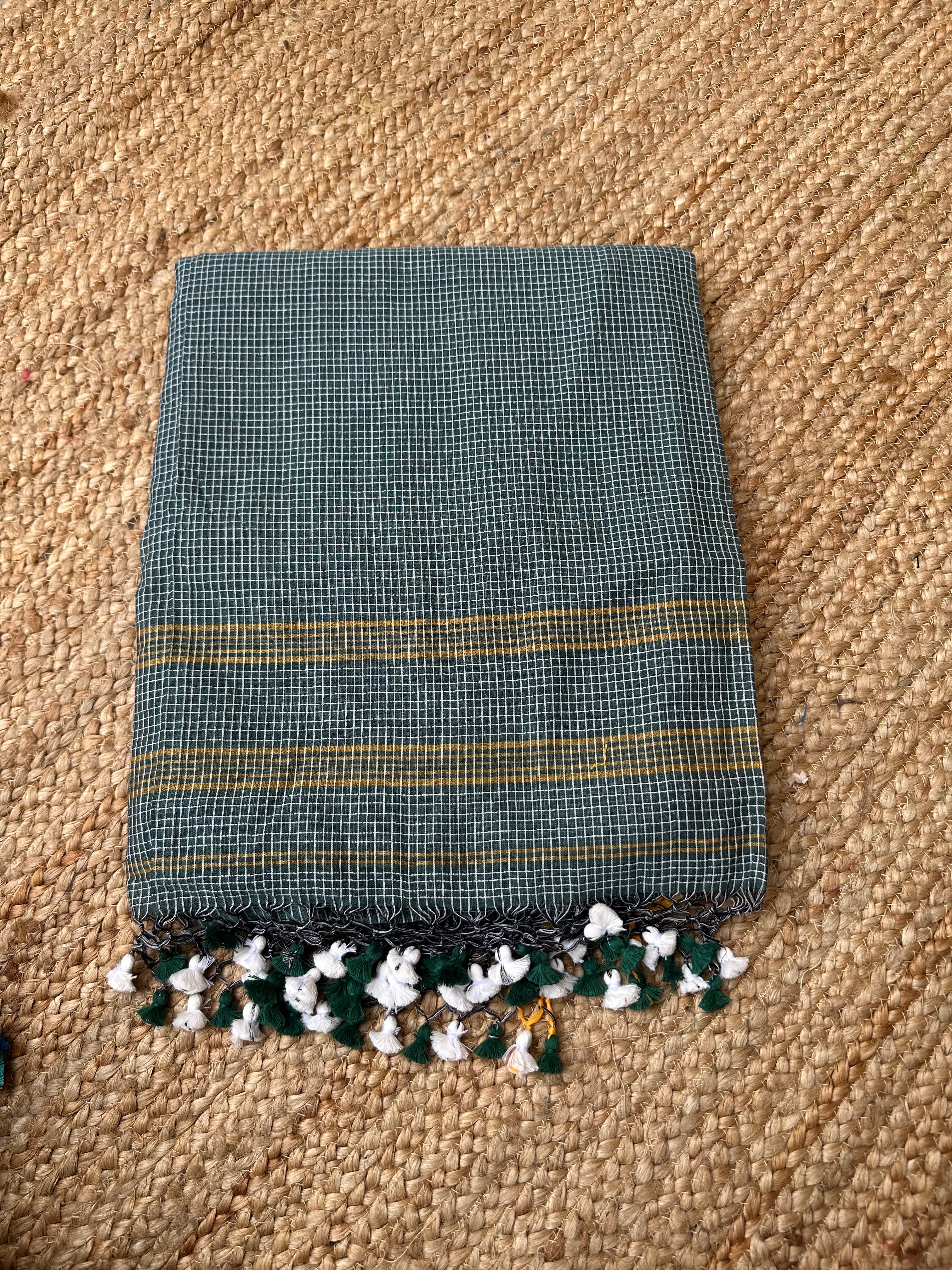 Handloom Cotton Sleeveless Lace Work checks Blouse (Green)