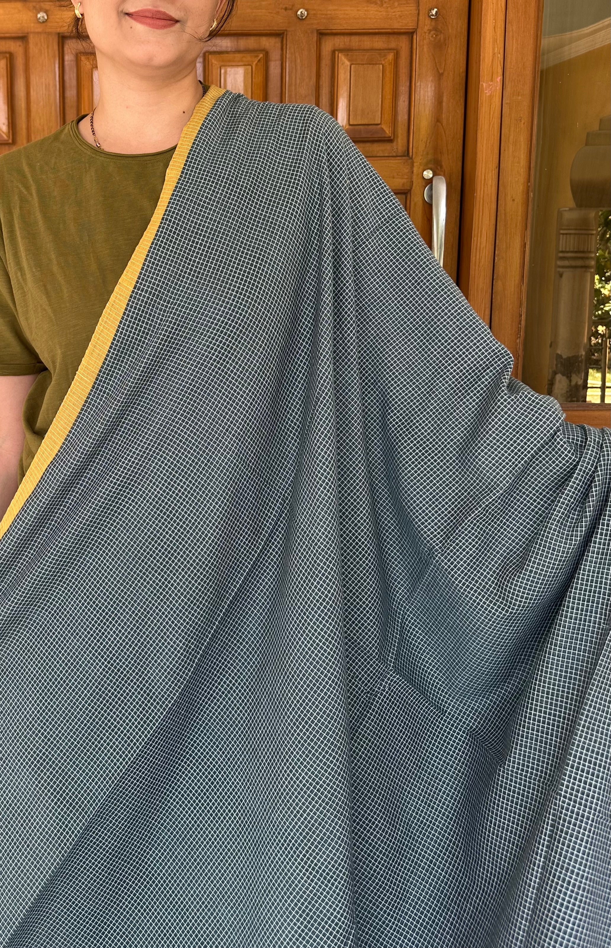 Indigo Modal Silk Handblock Saree (Sale piece)
