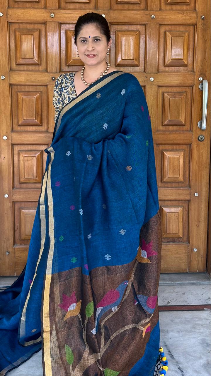 Blue Paithani Linen Handloom Saree