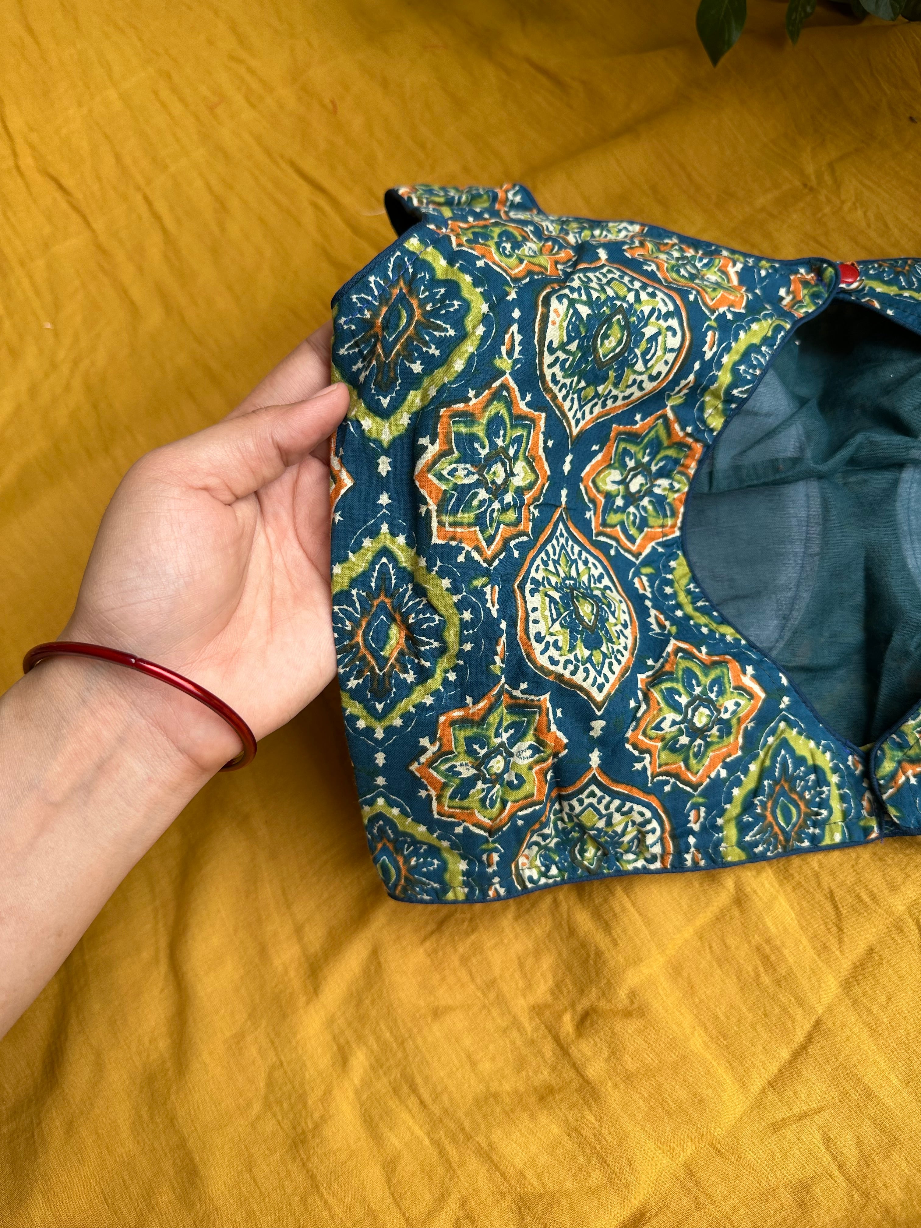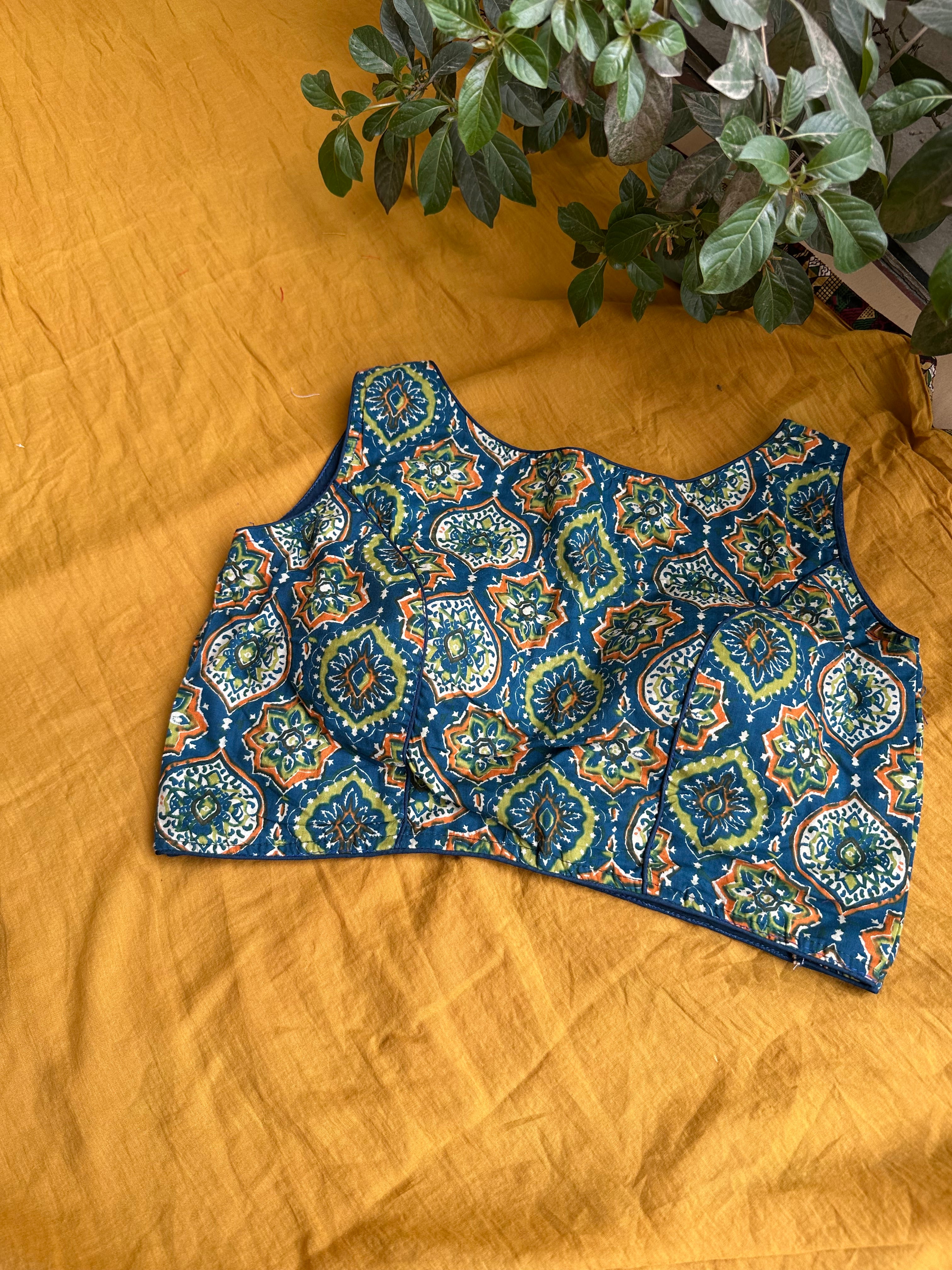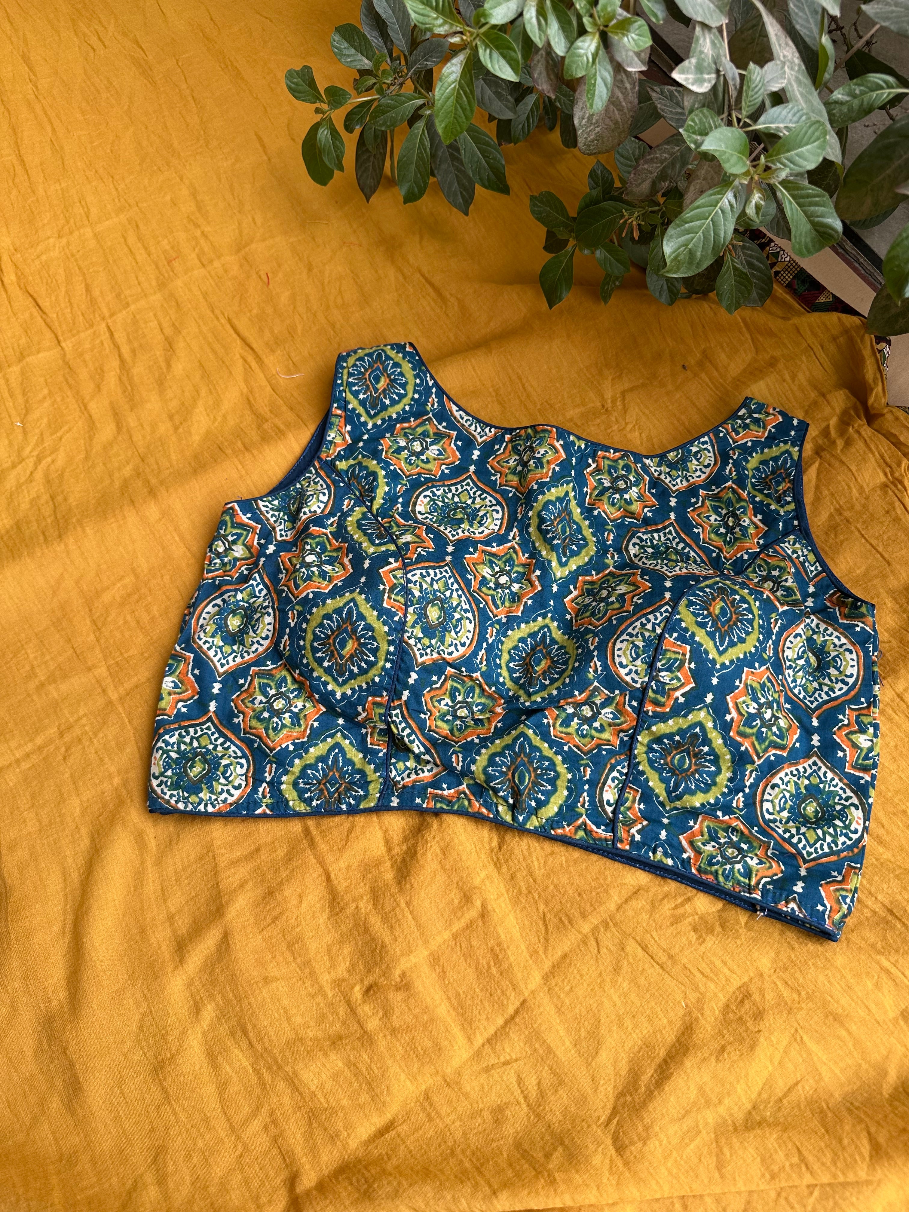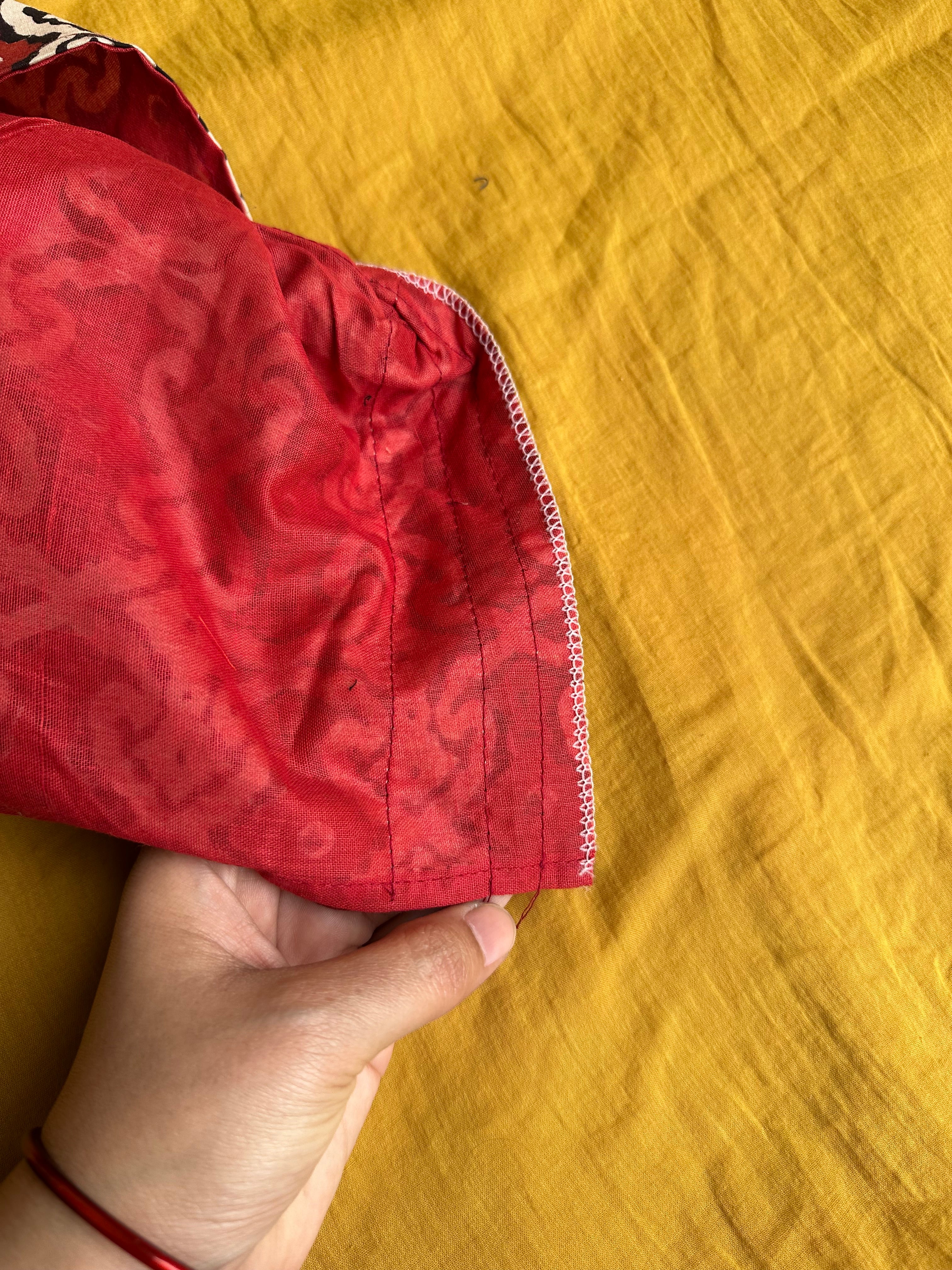 Please keep in mind that colour on ajrakh sarees and suits are natural dyes and they tend to bleed little while washing so wash seperately.