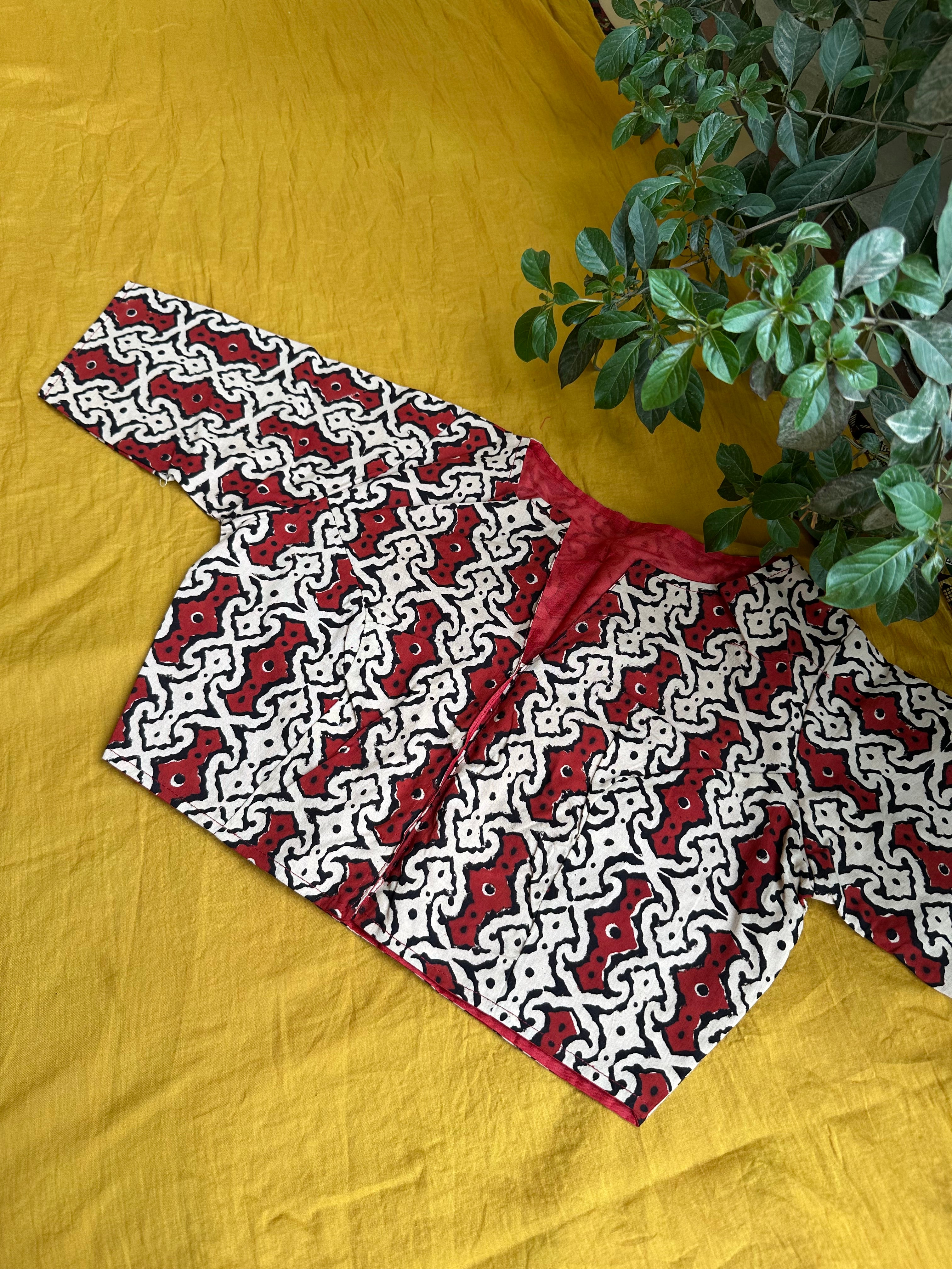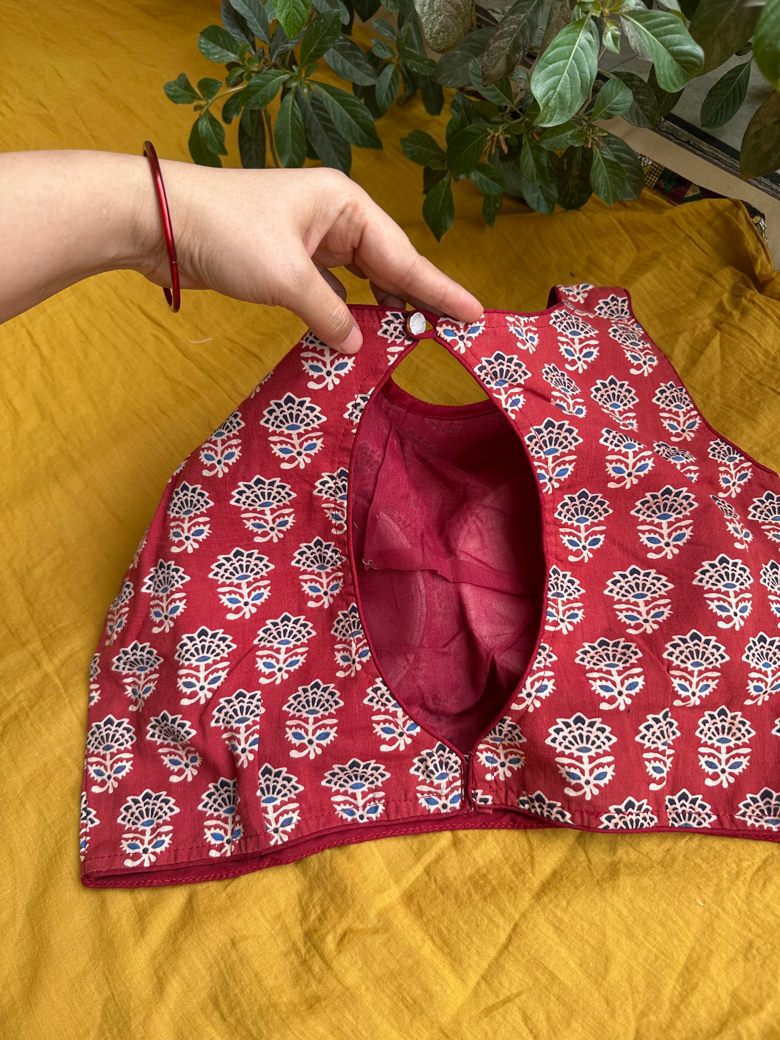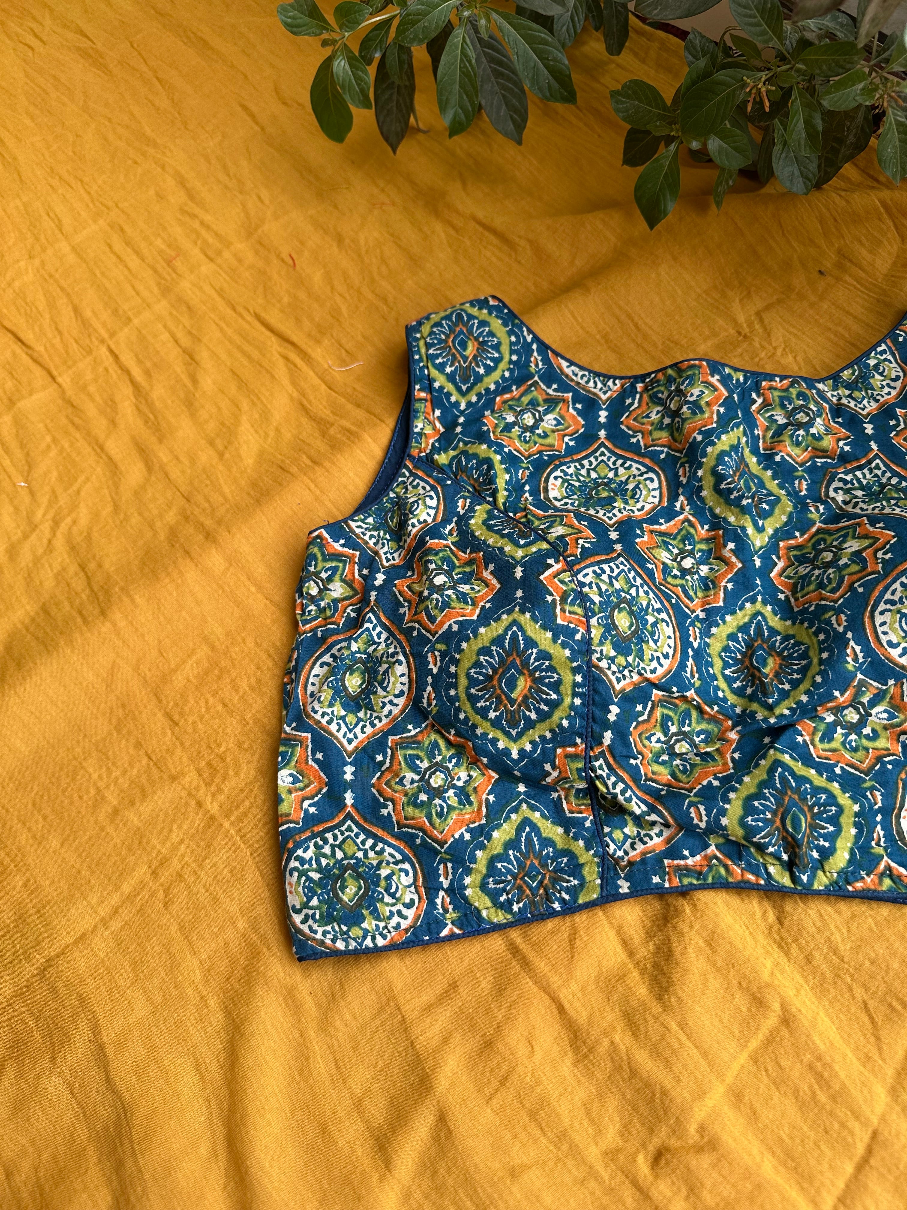 Please keep in mind that colour on ajrakh sarees and suits are natural dyes and they tend to bleed little while washing so wash seperately.