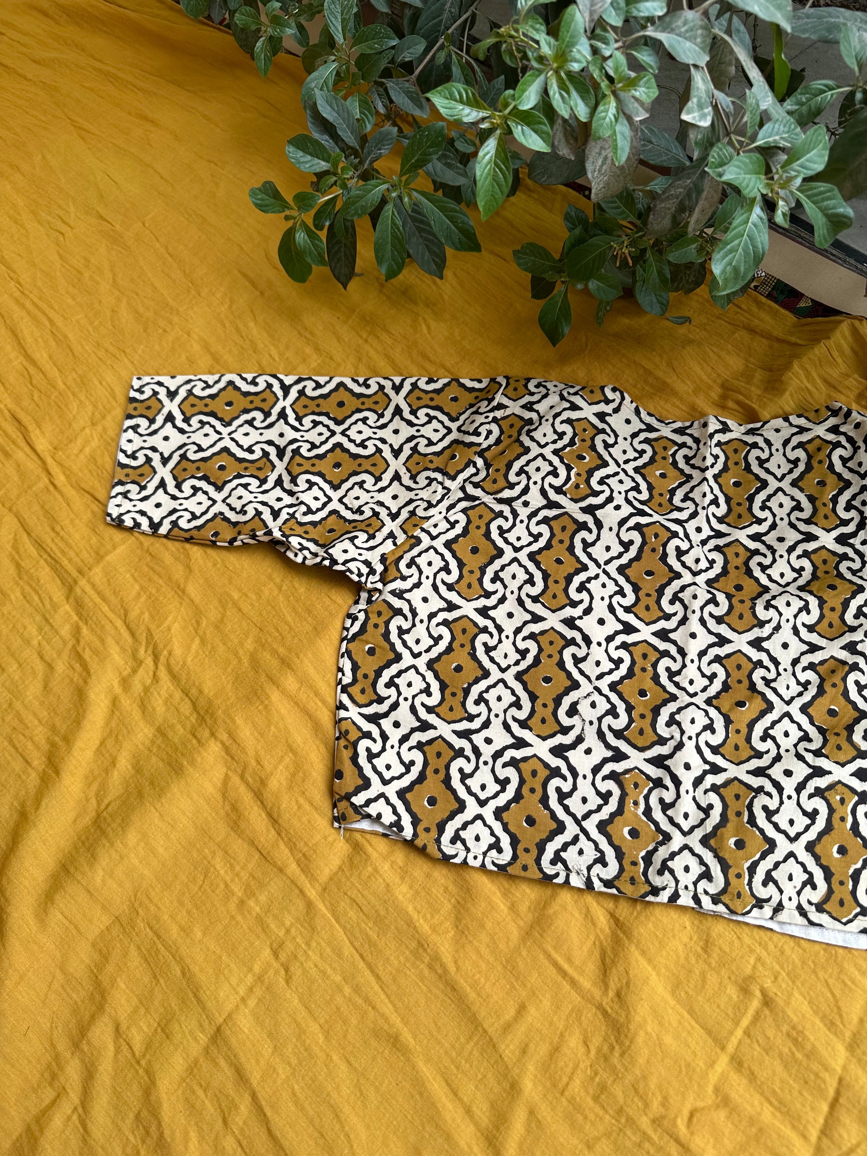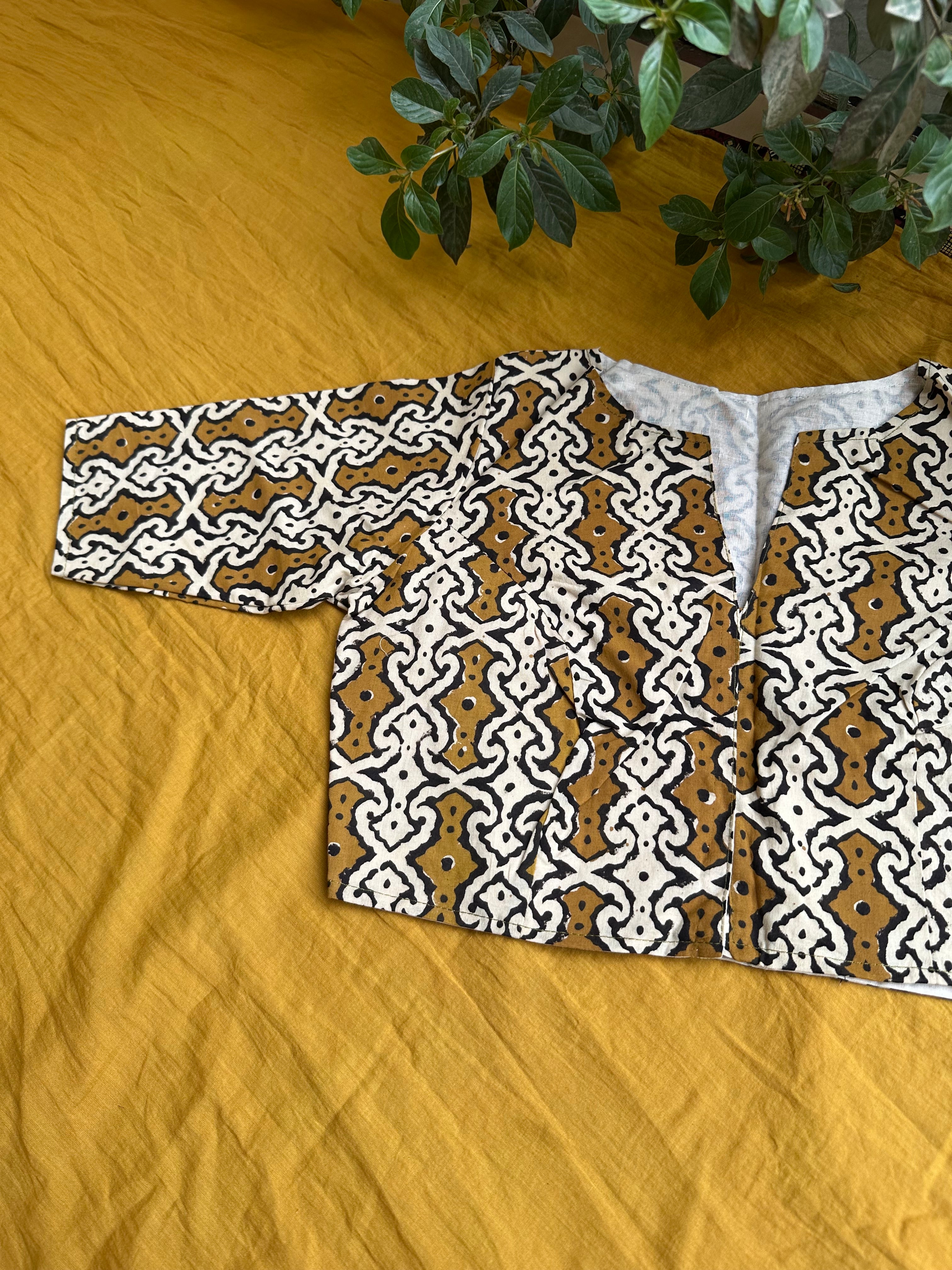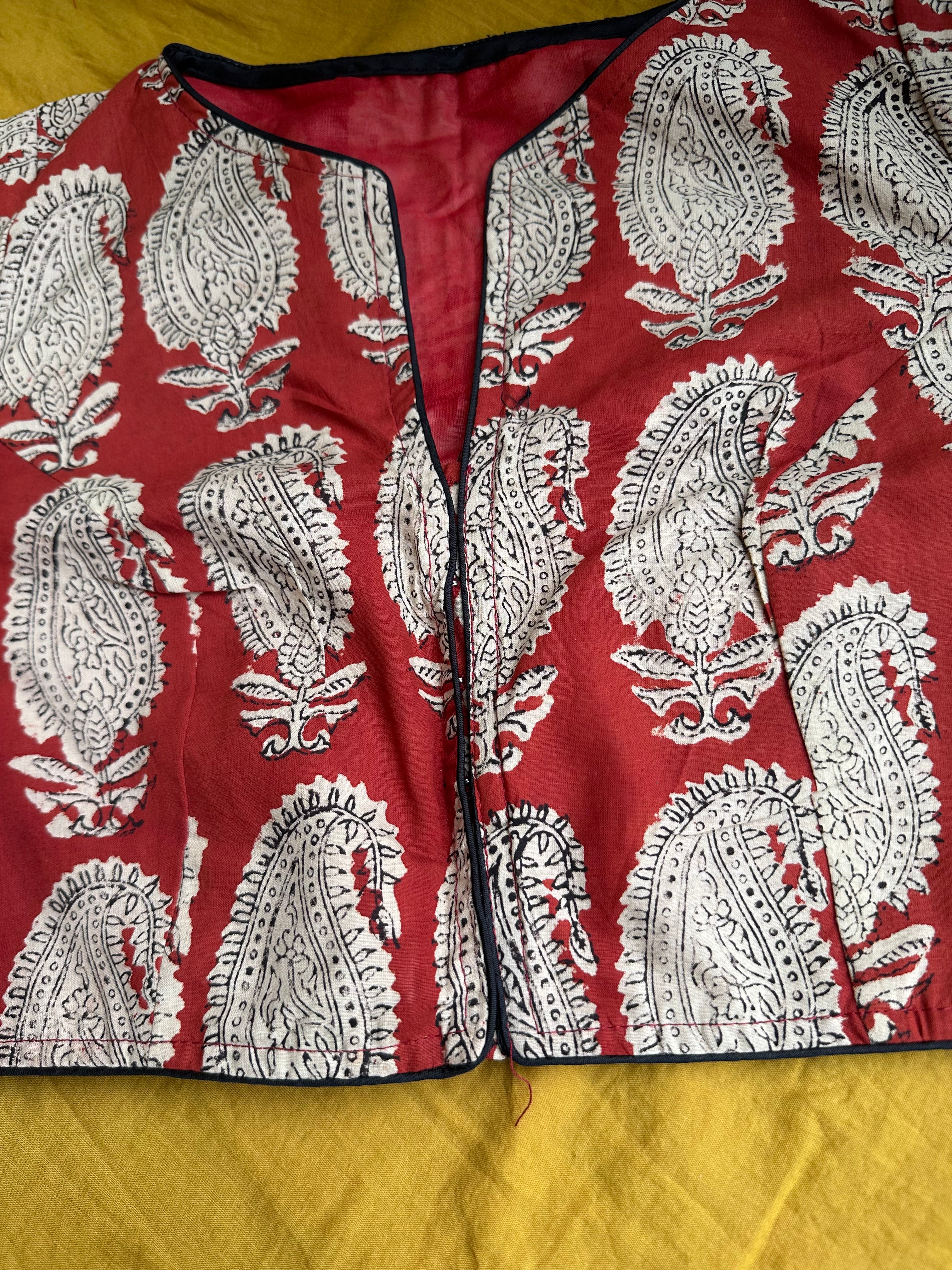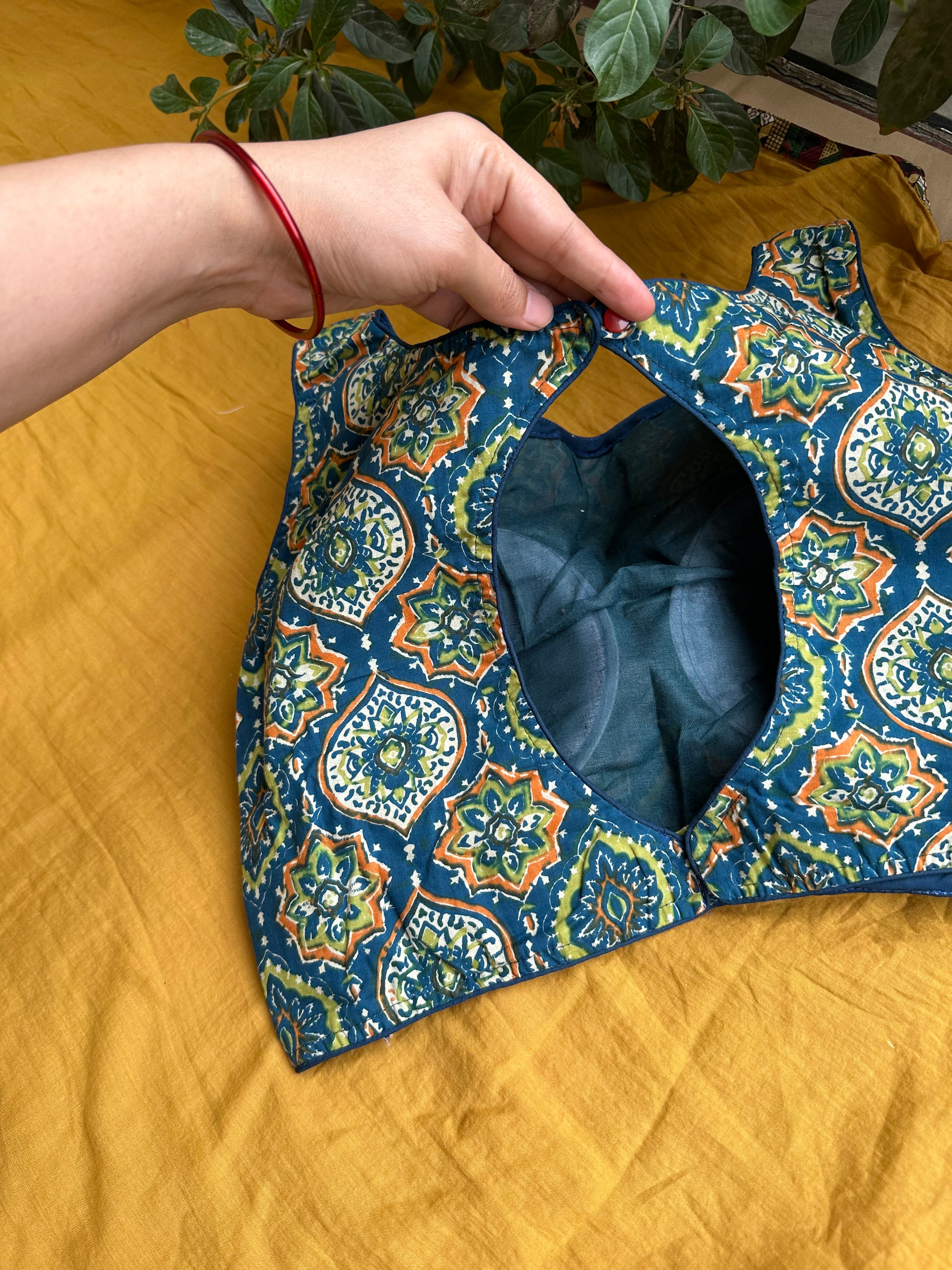 Please keep in mind that colour on ajrakh sarees and suits are natural dyes and they tend to bleed little while washing so wash seperately.