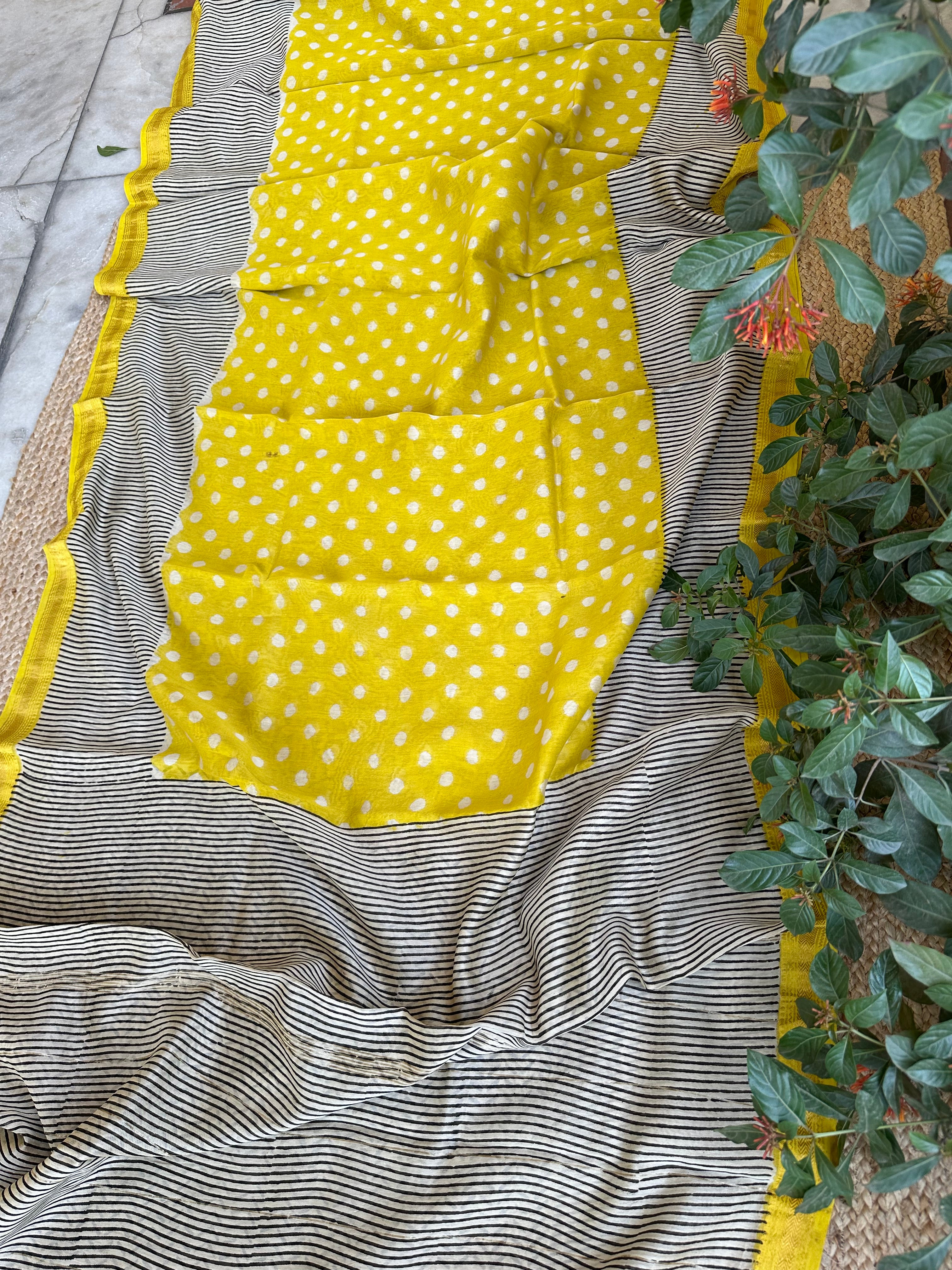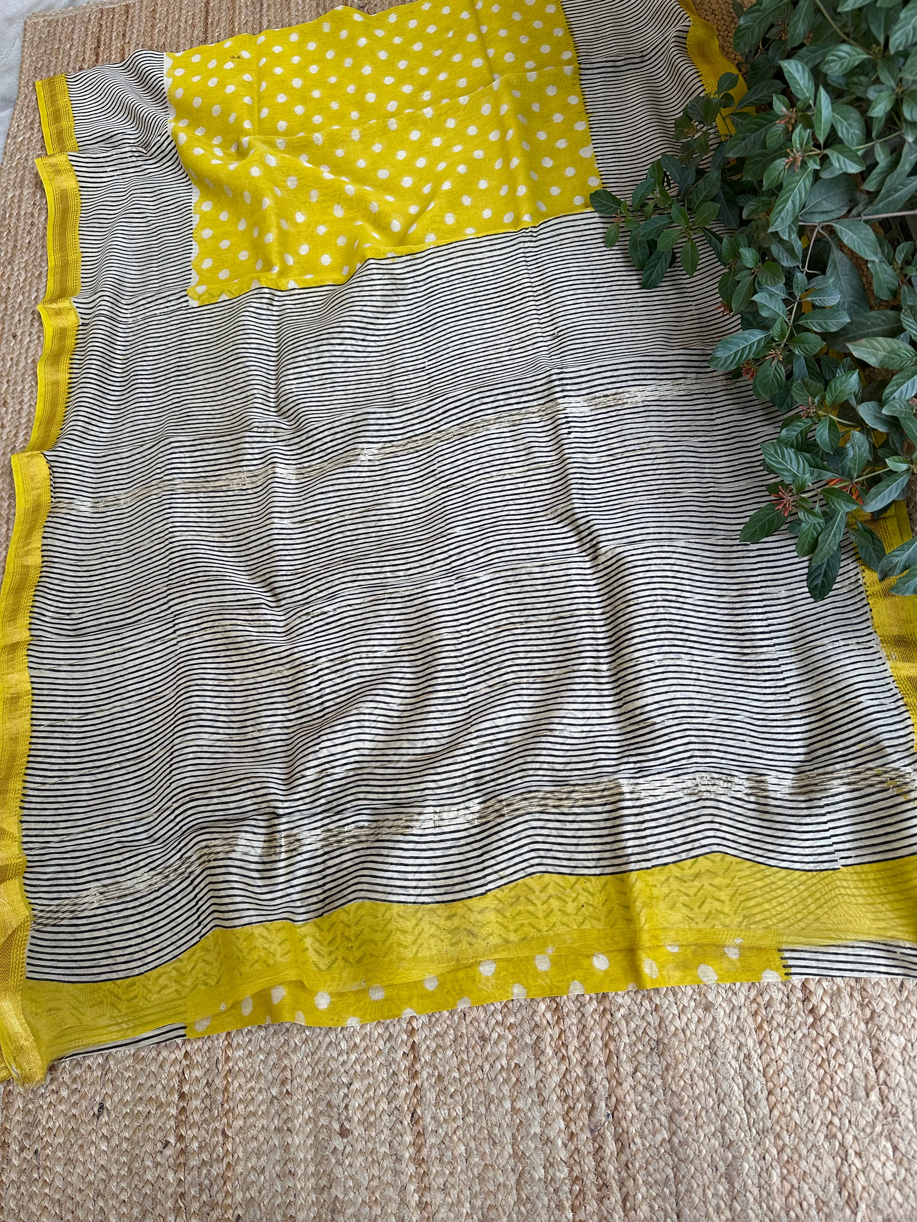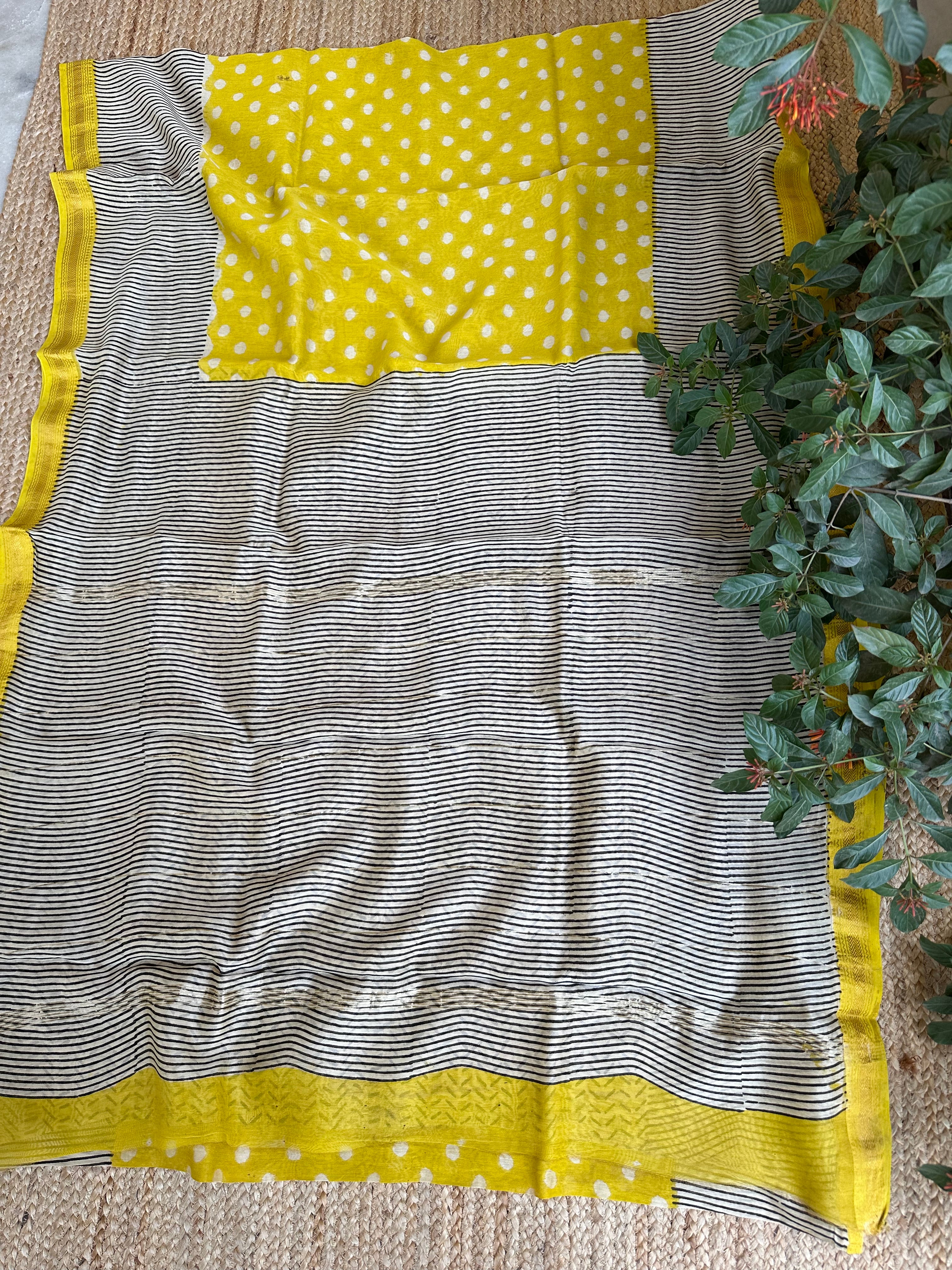 Maheshwari Handblock Printed Yellow Saree (Sale piece)