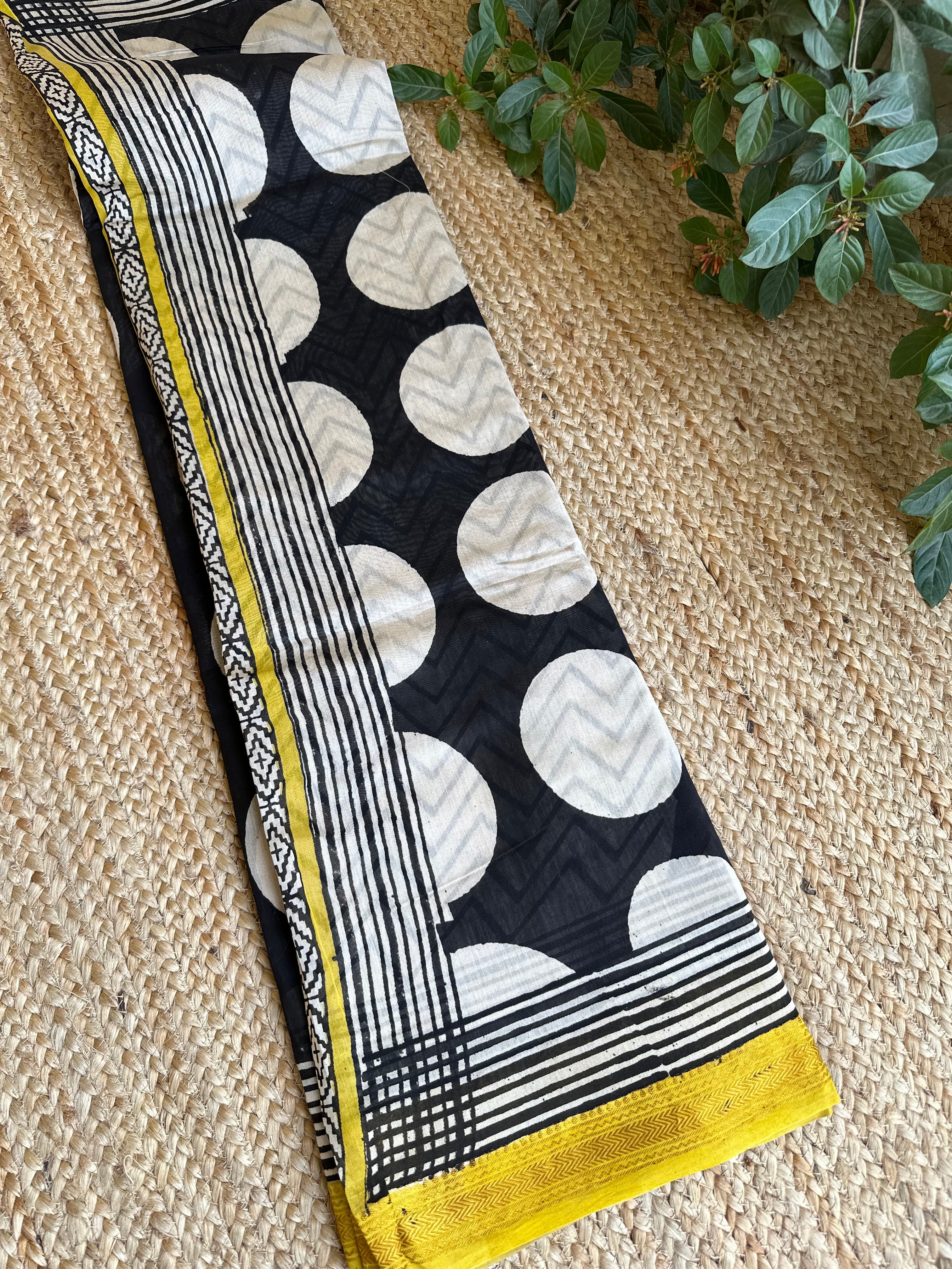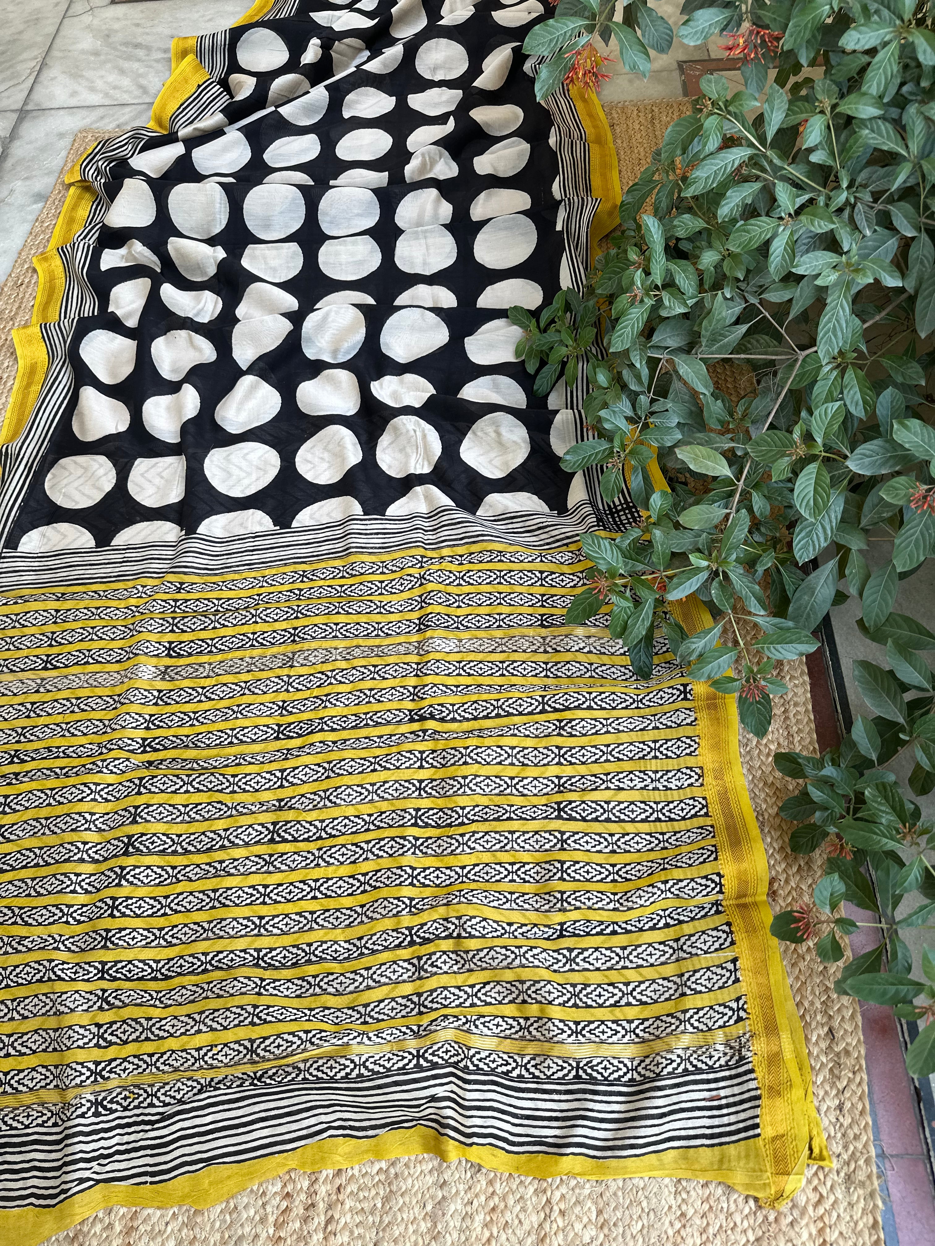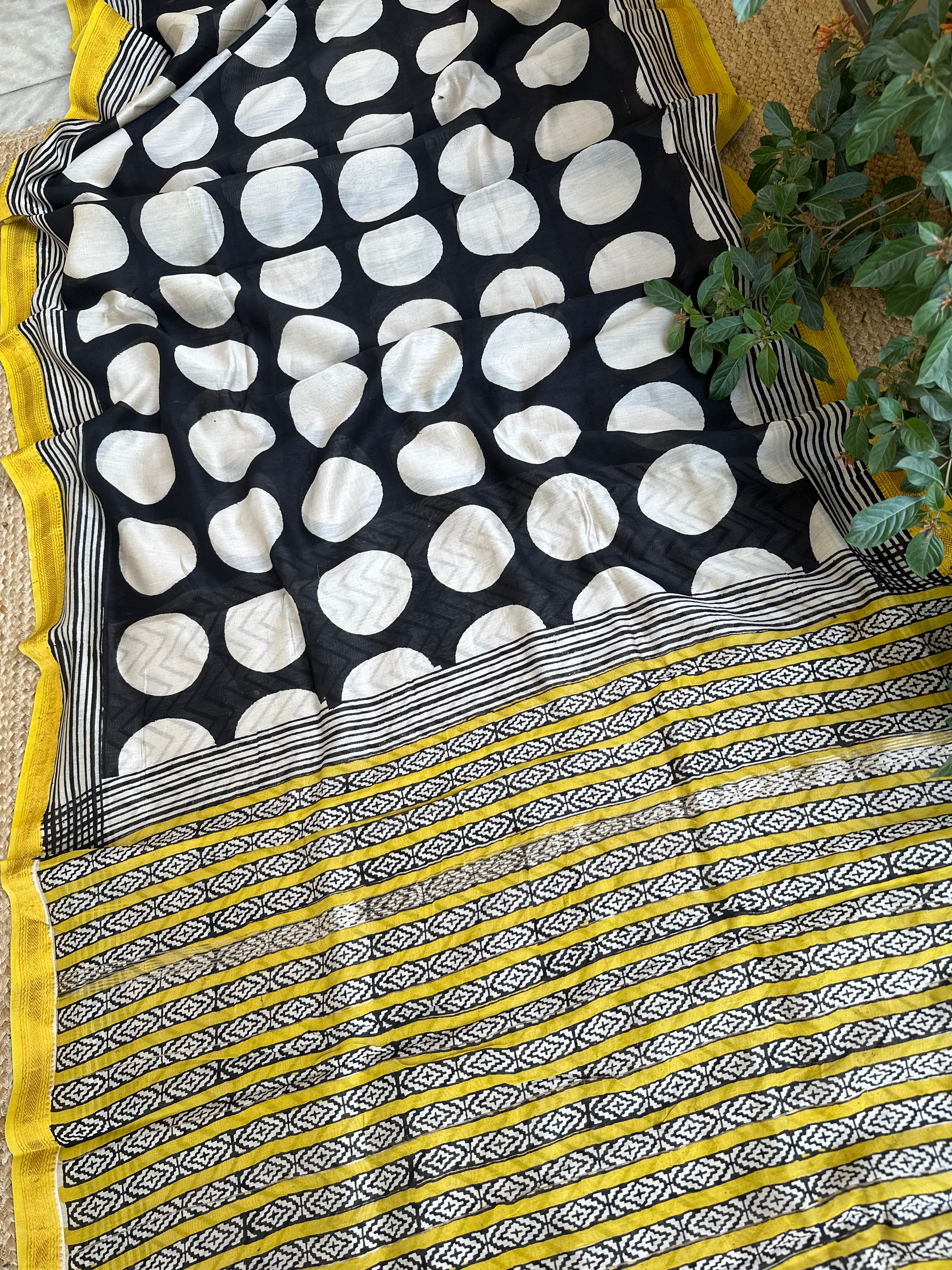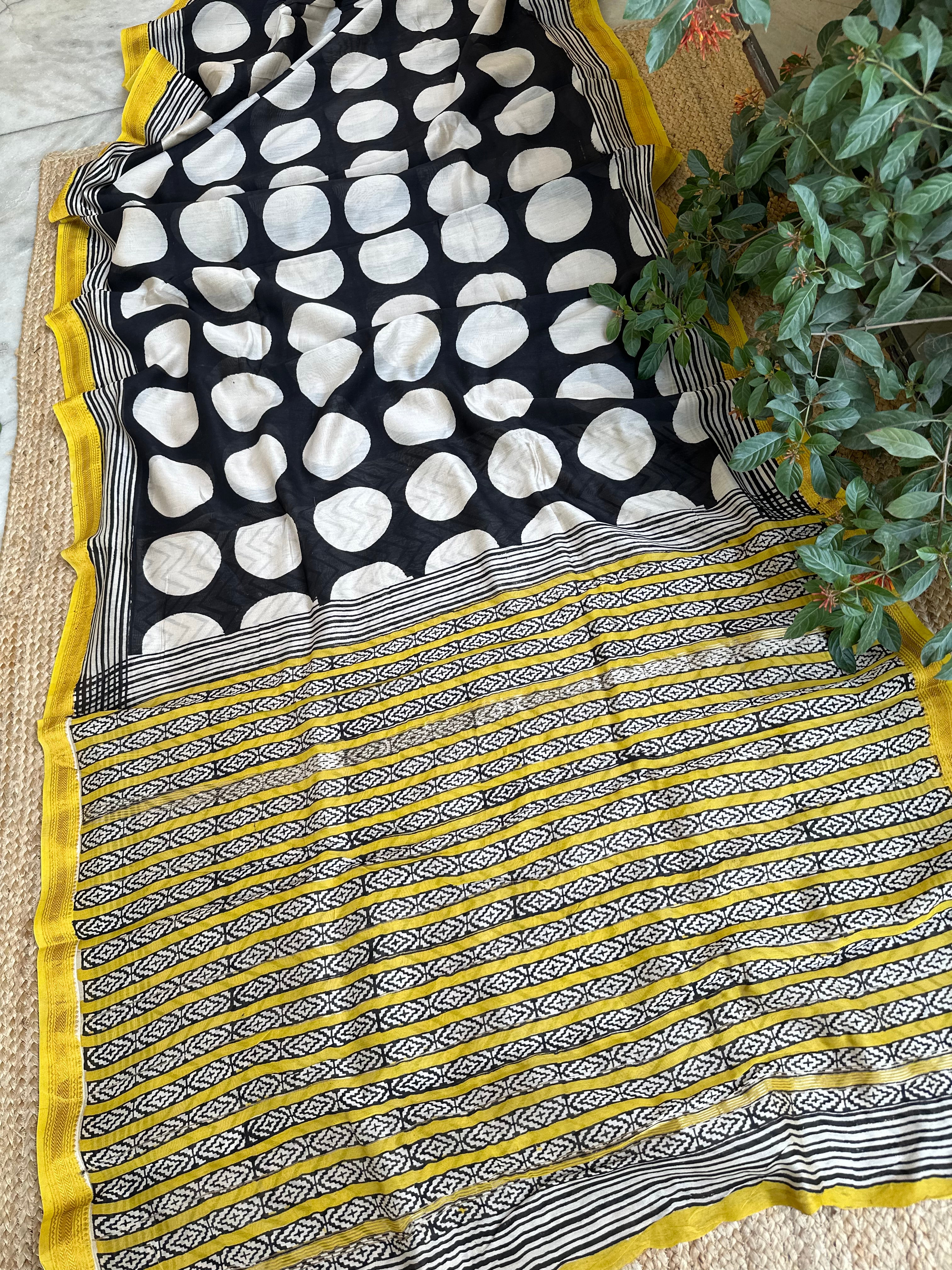 Maheshwari Handblock Printed Black Polka Saree
