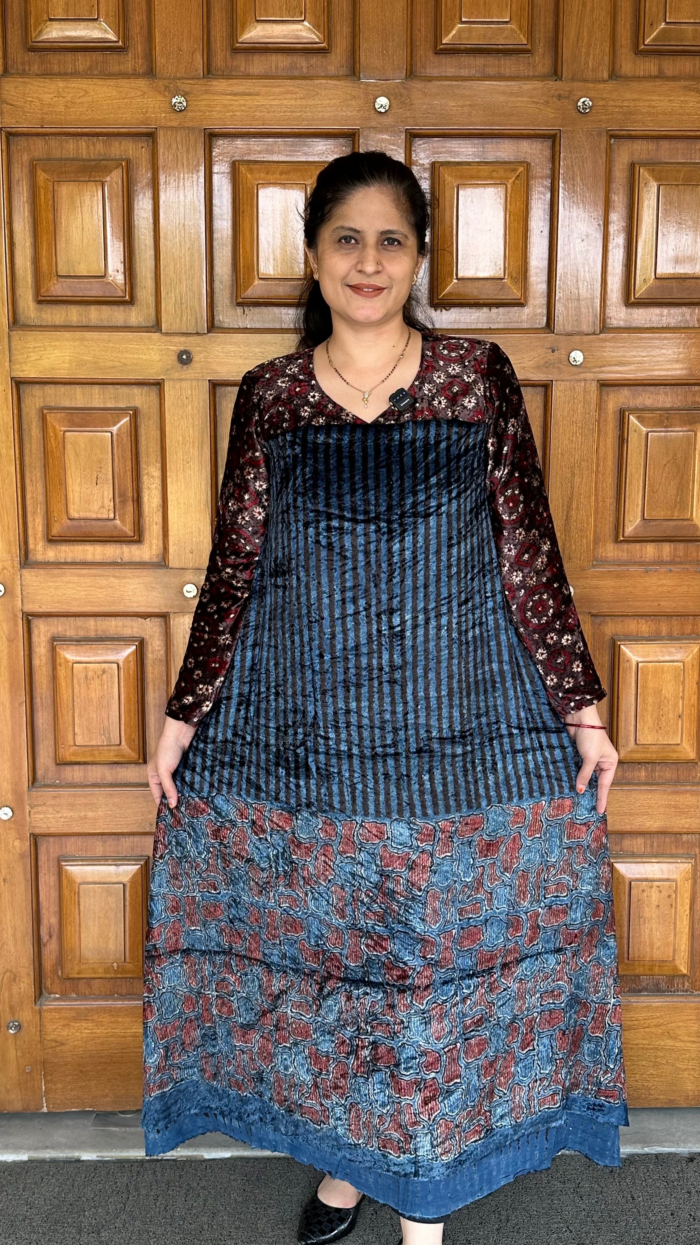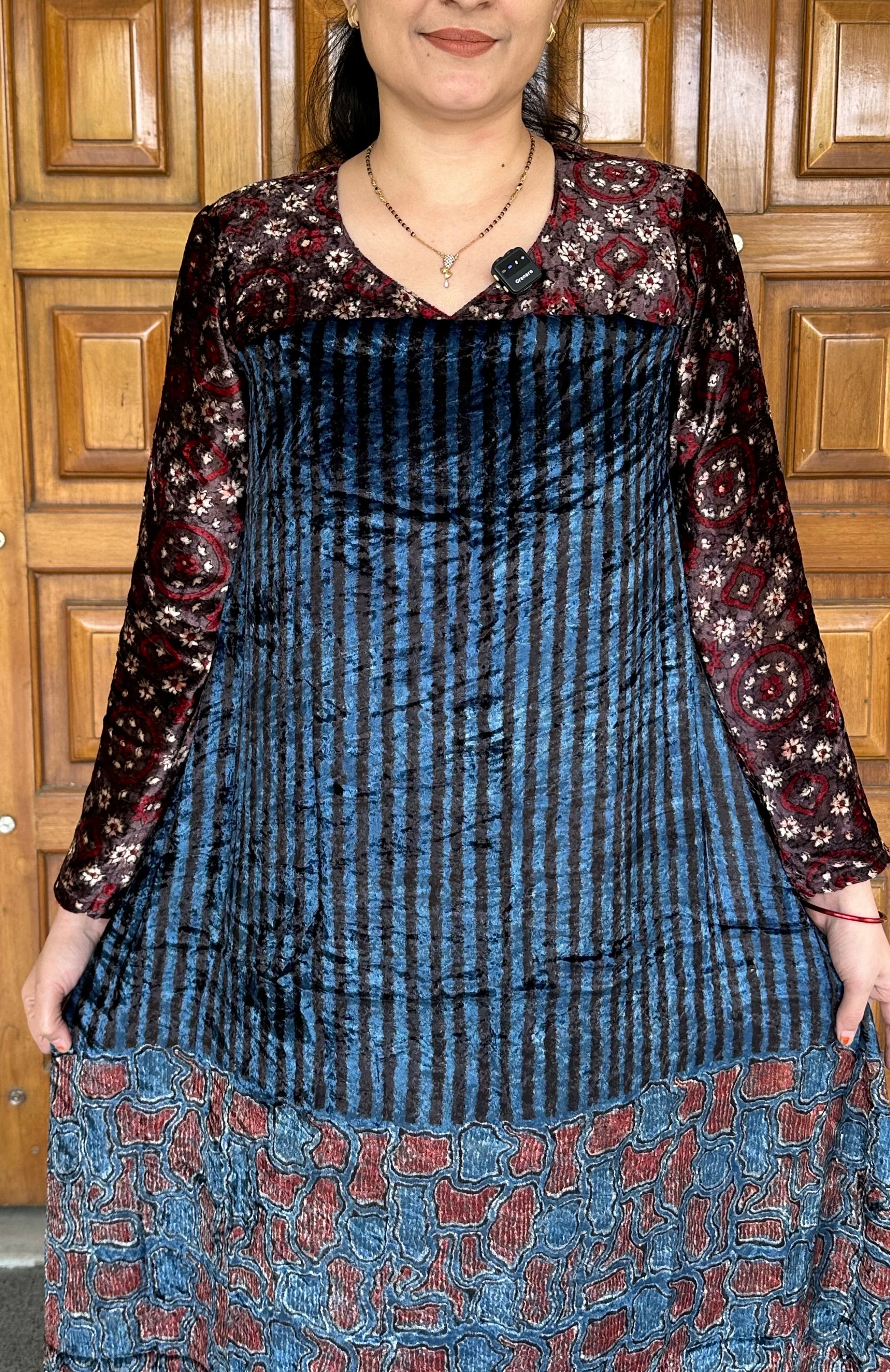Pure Ajrakh Handblock Printed Velvet Kurta fabric.