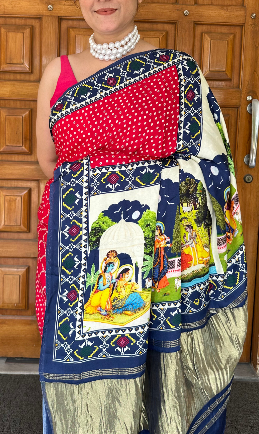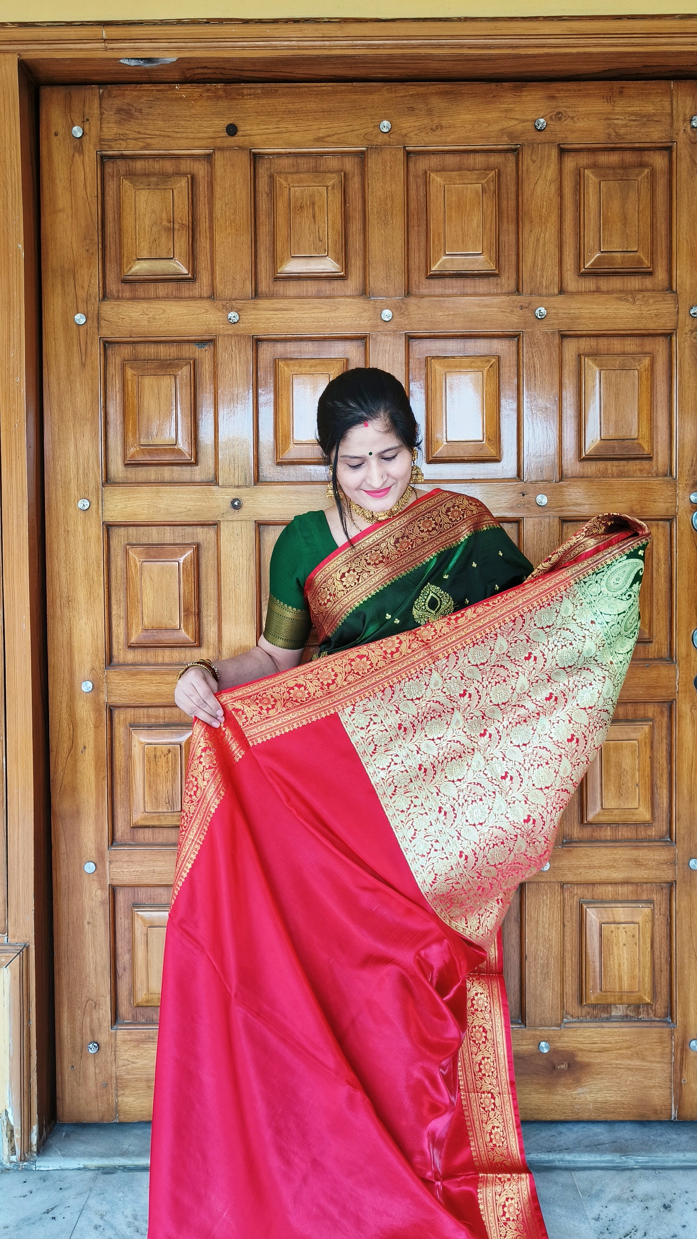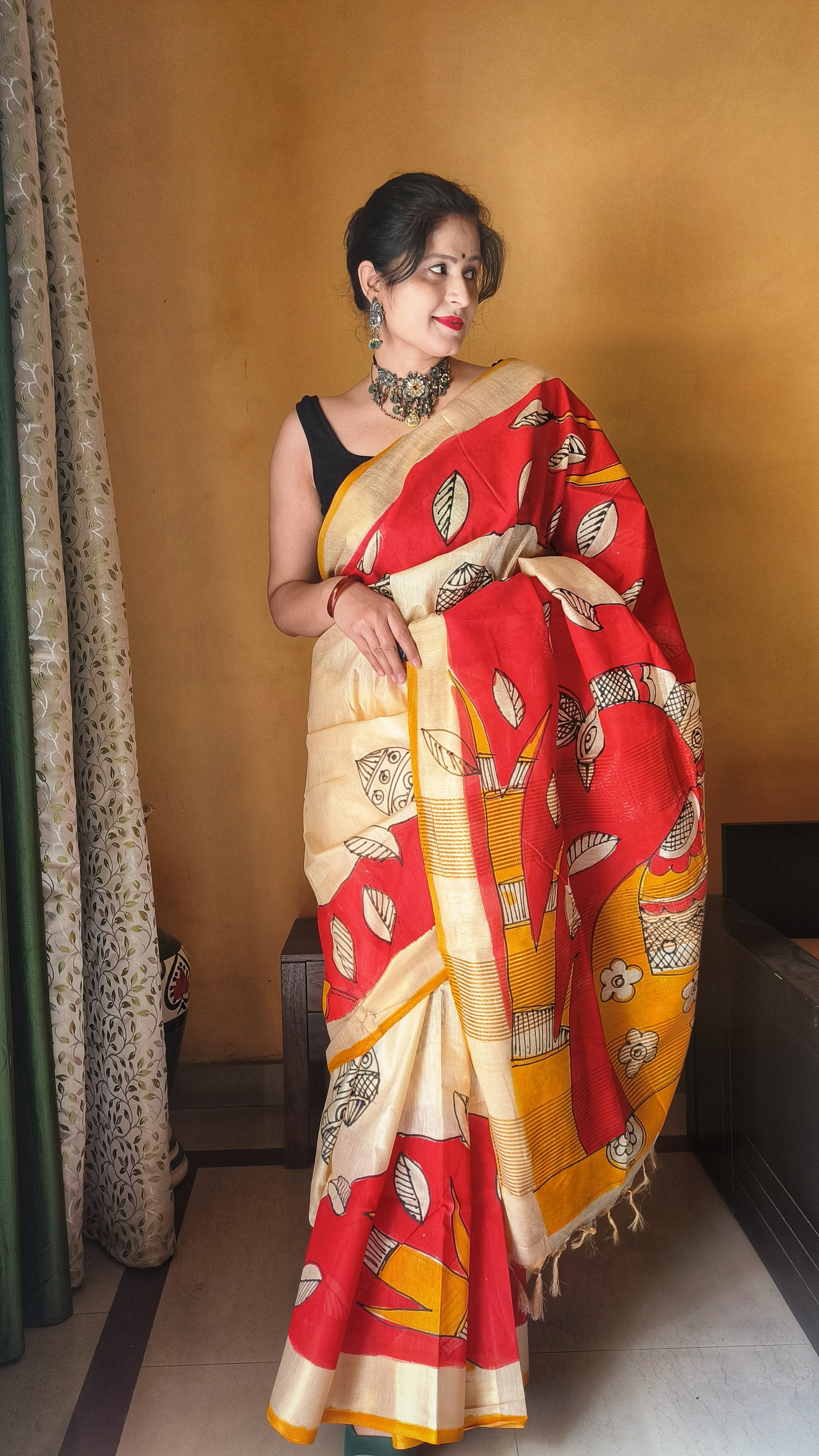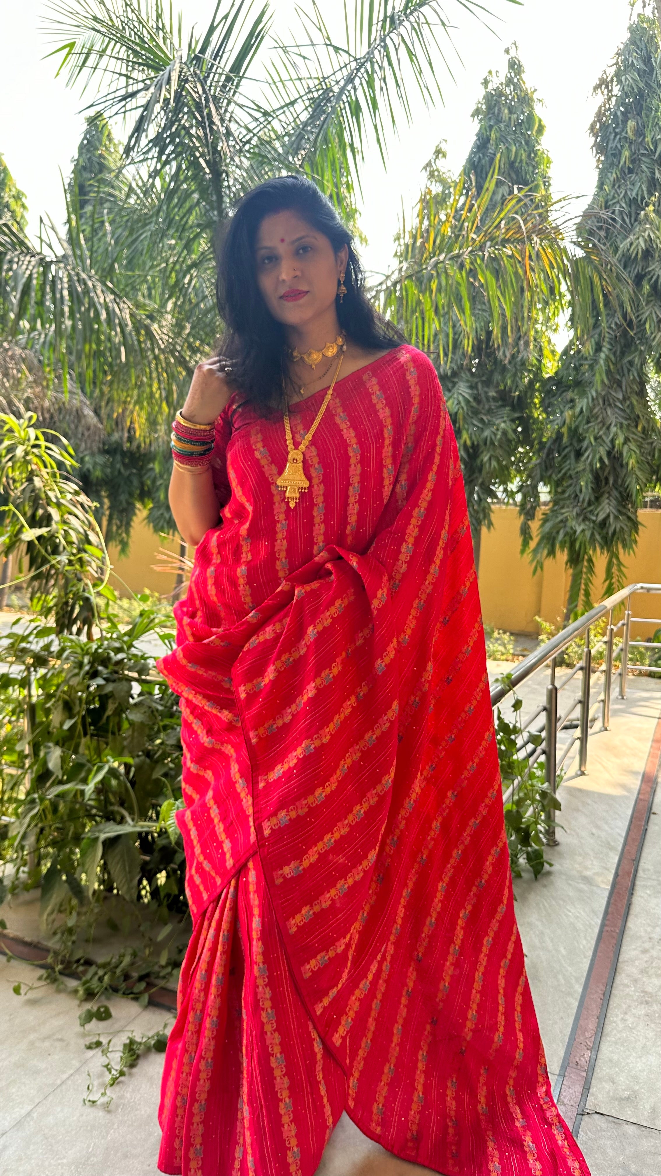 Handloom Gamcha Cotton Sleeveless Lace Work checks Blouse (Red)