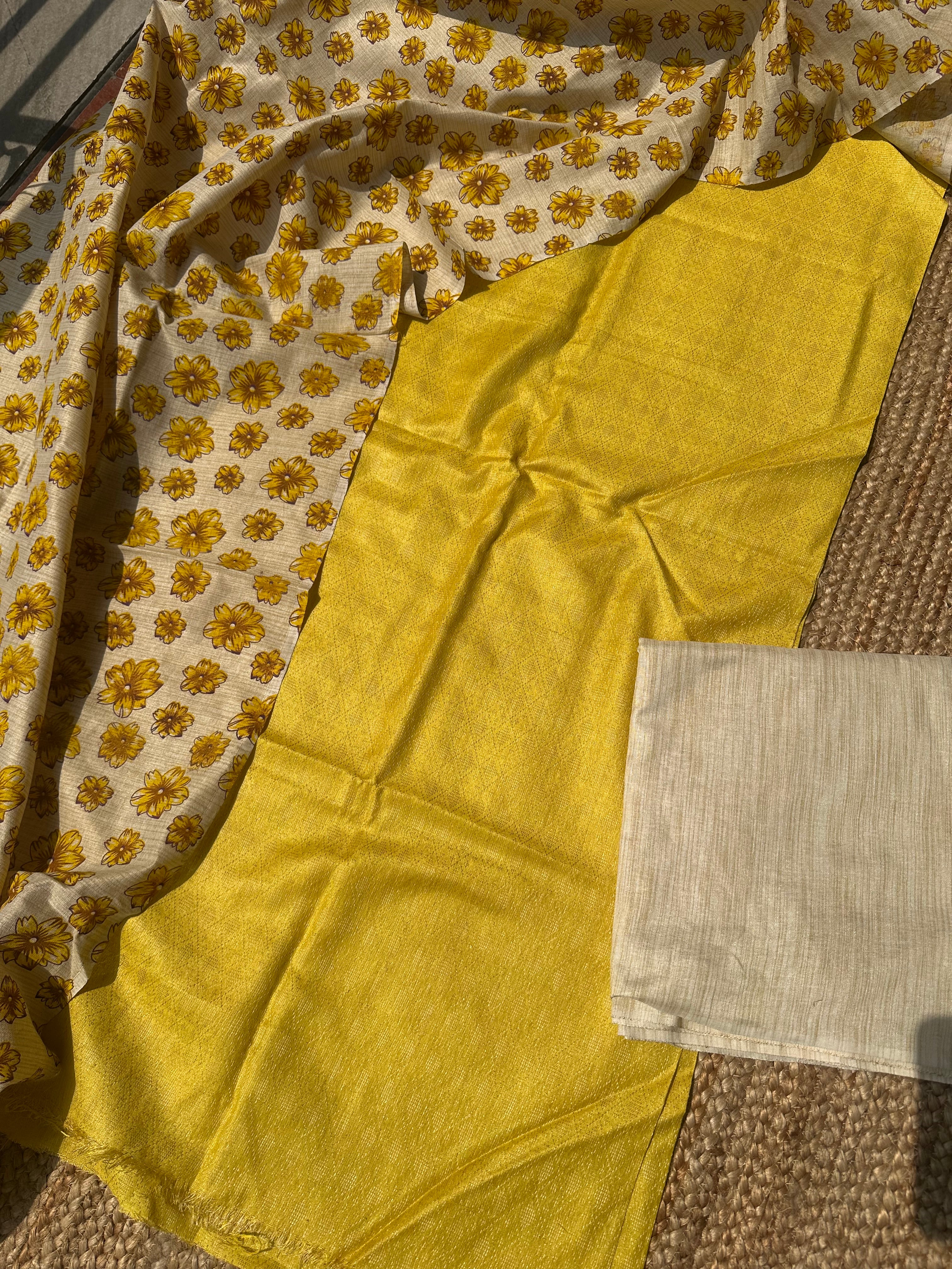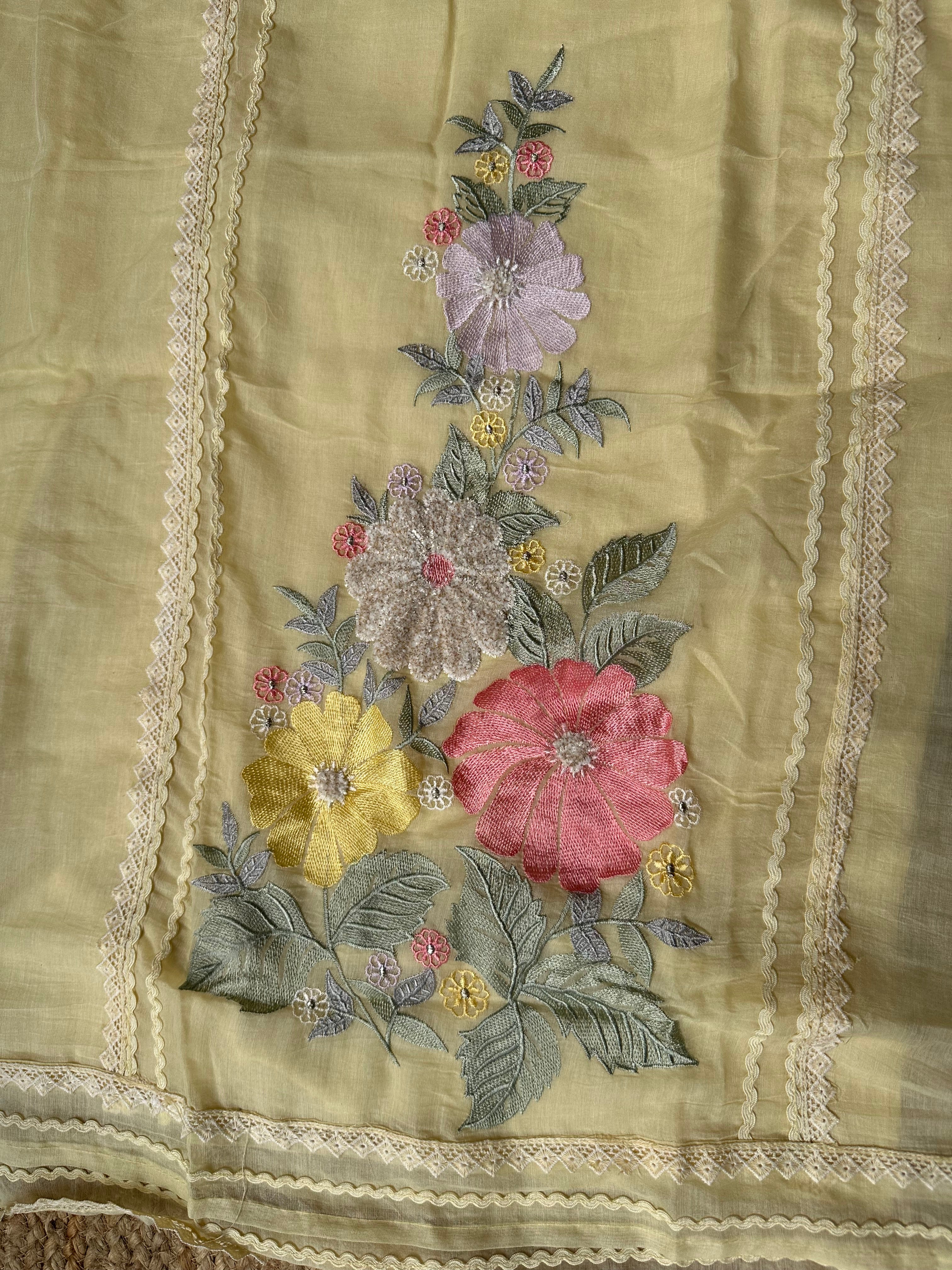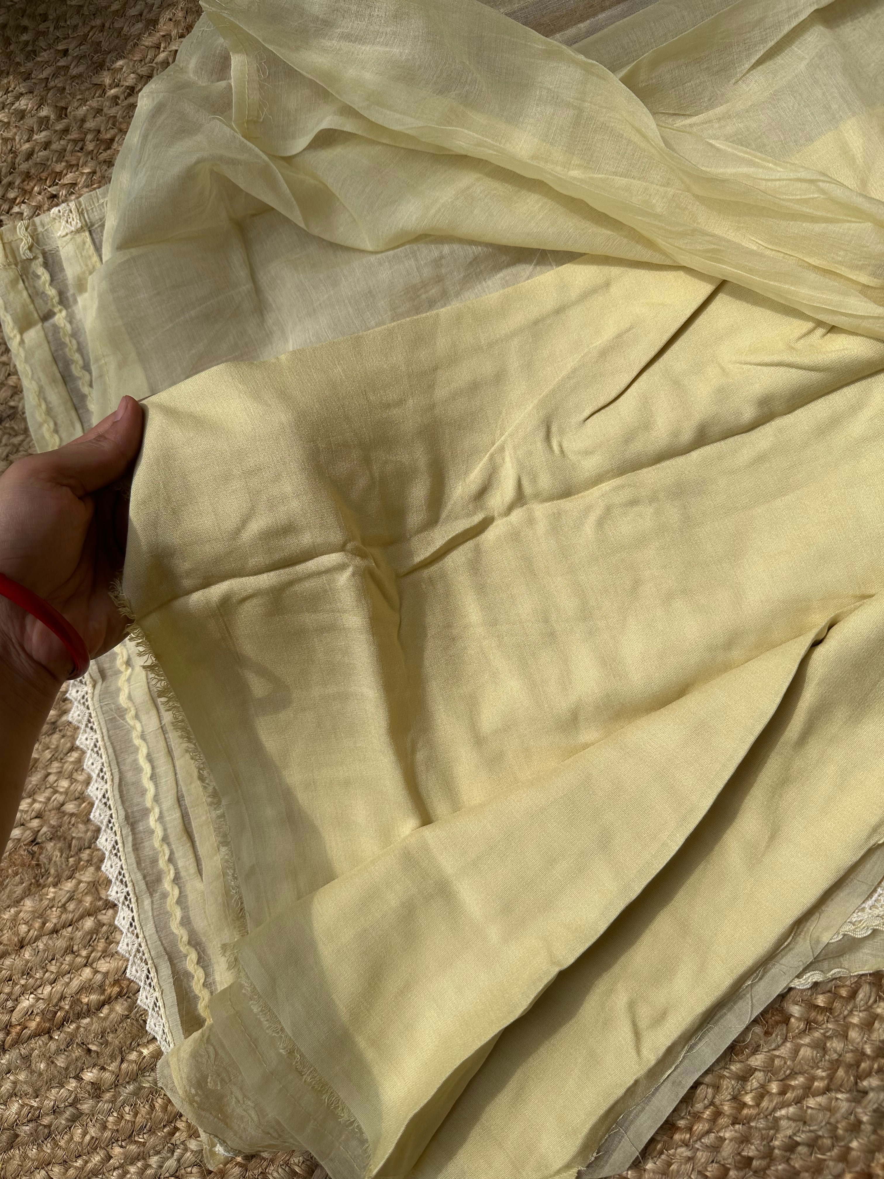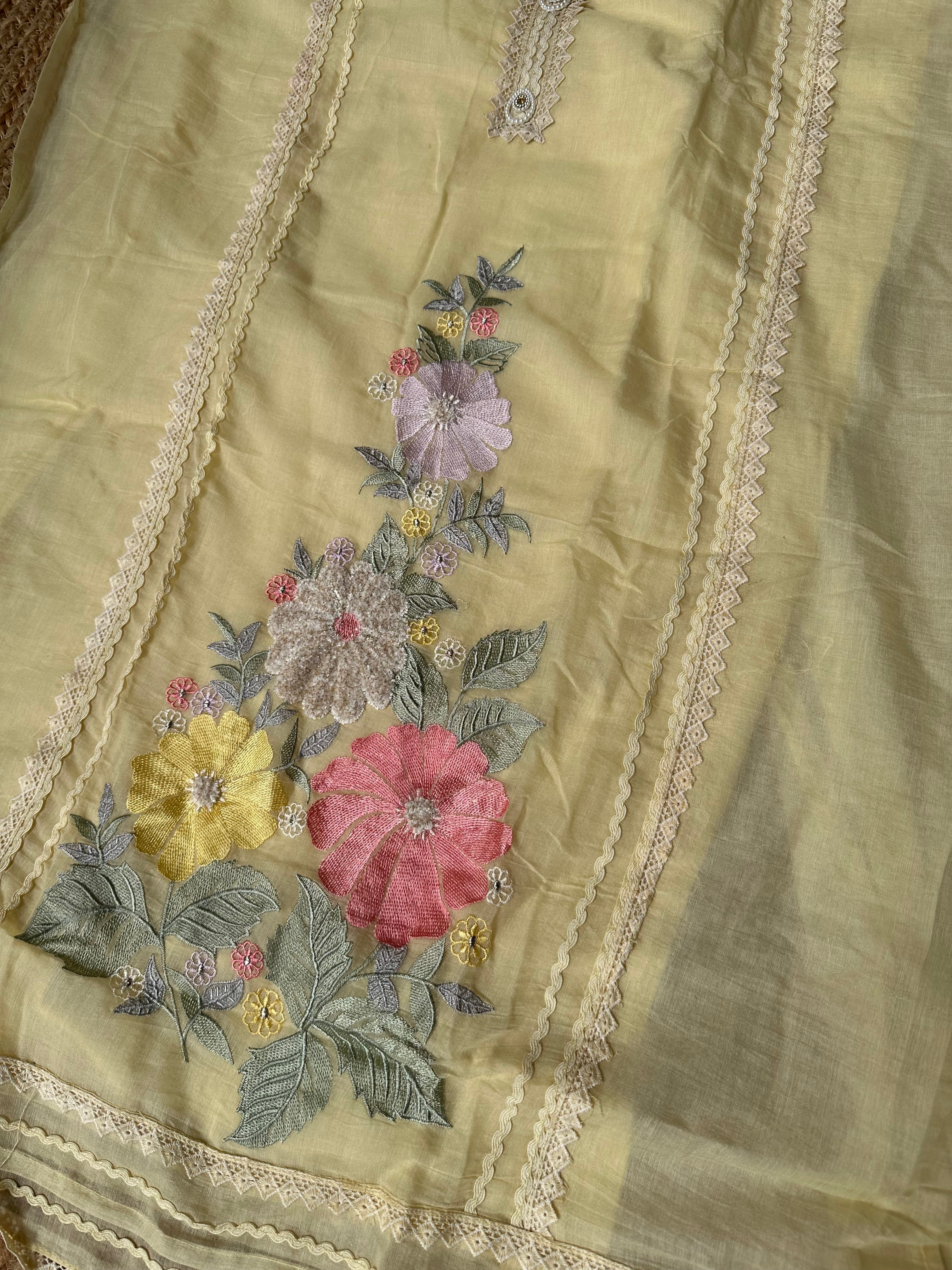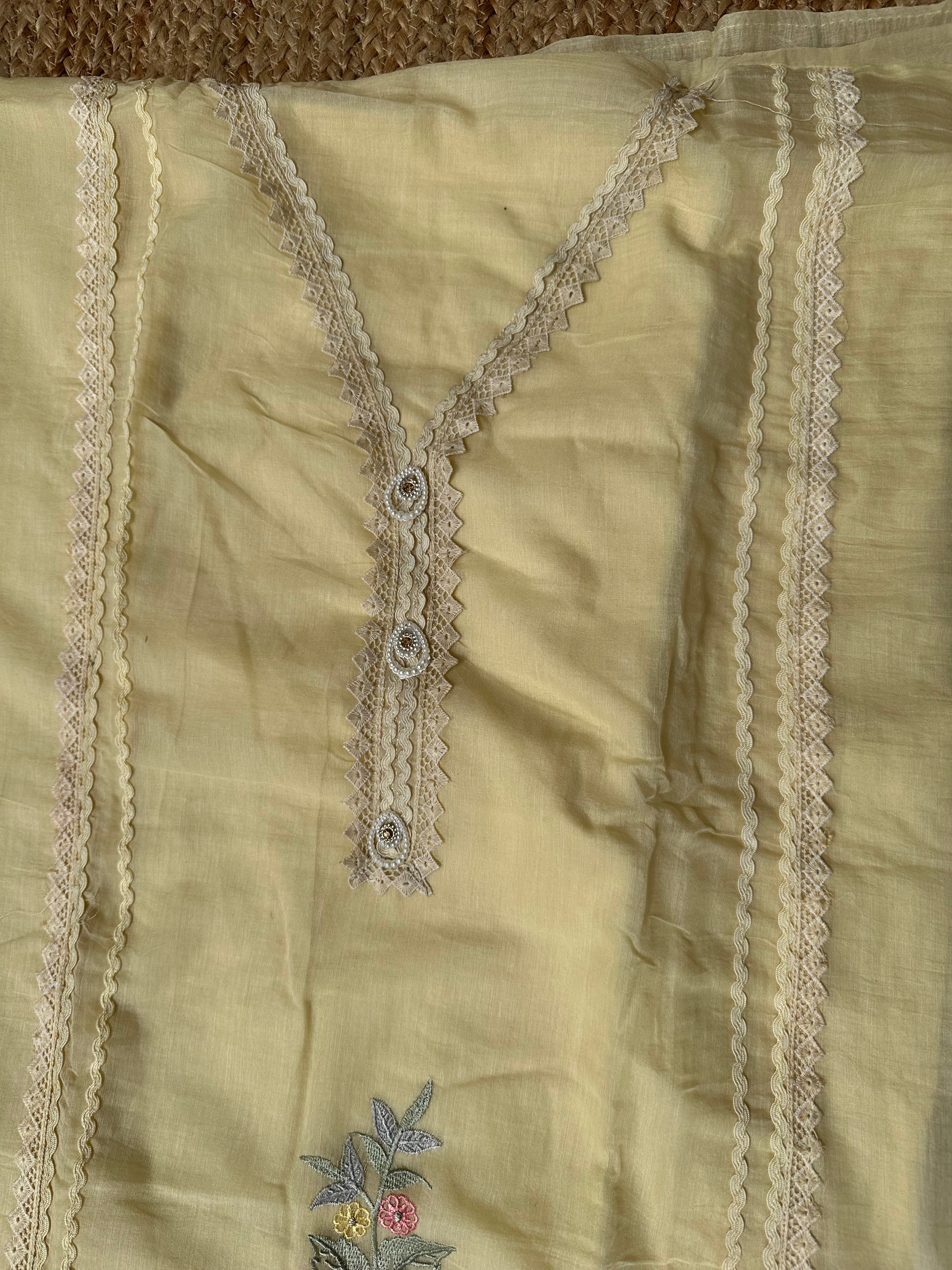 Light Lemon Mul Chanderi Embroidered Suit Set