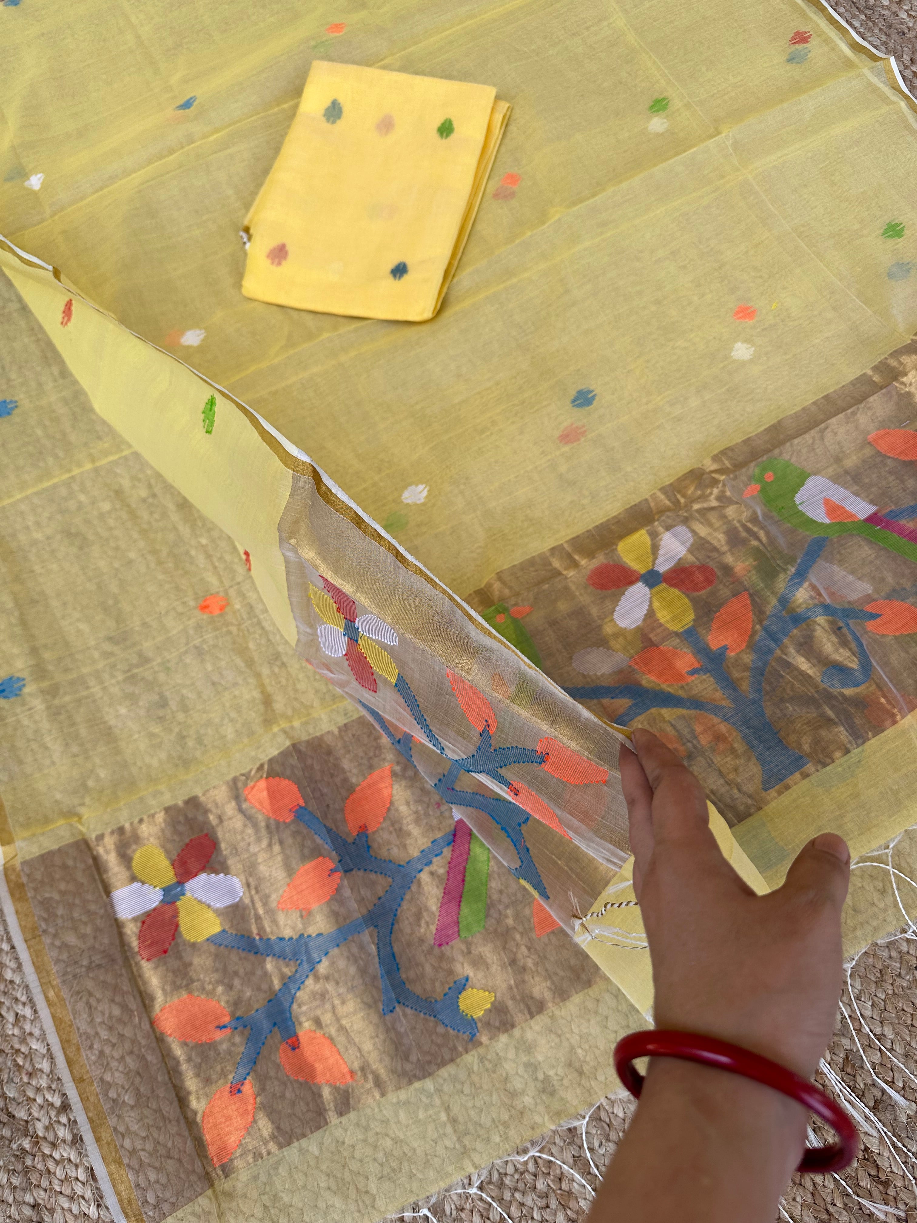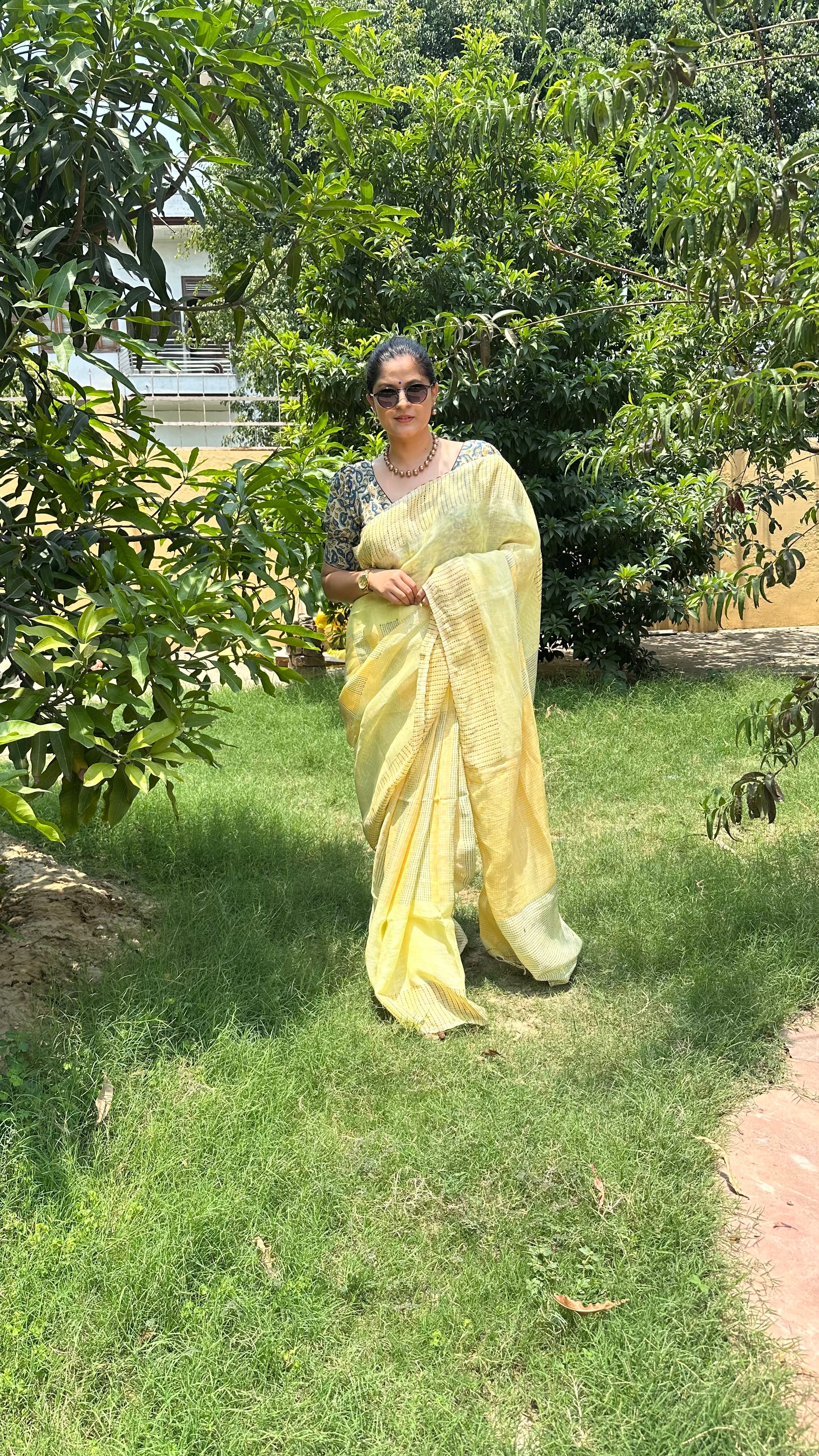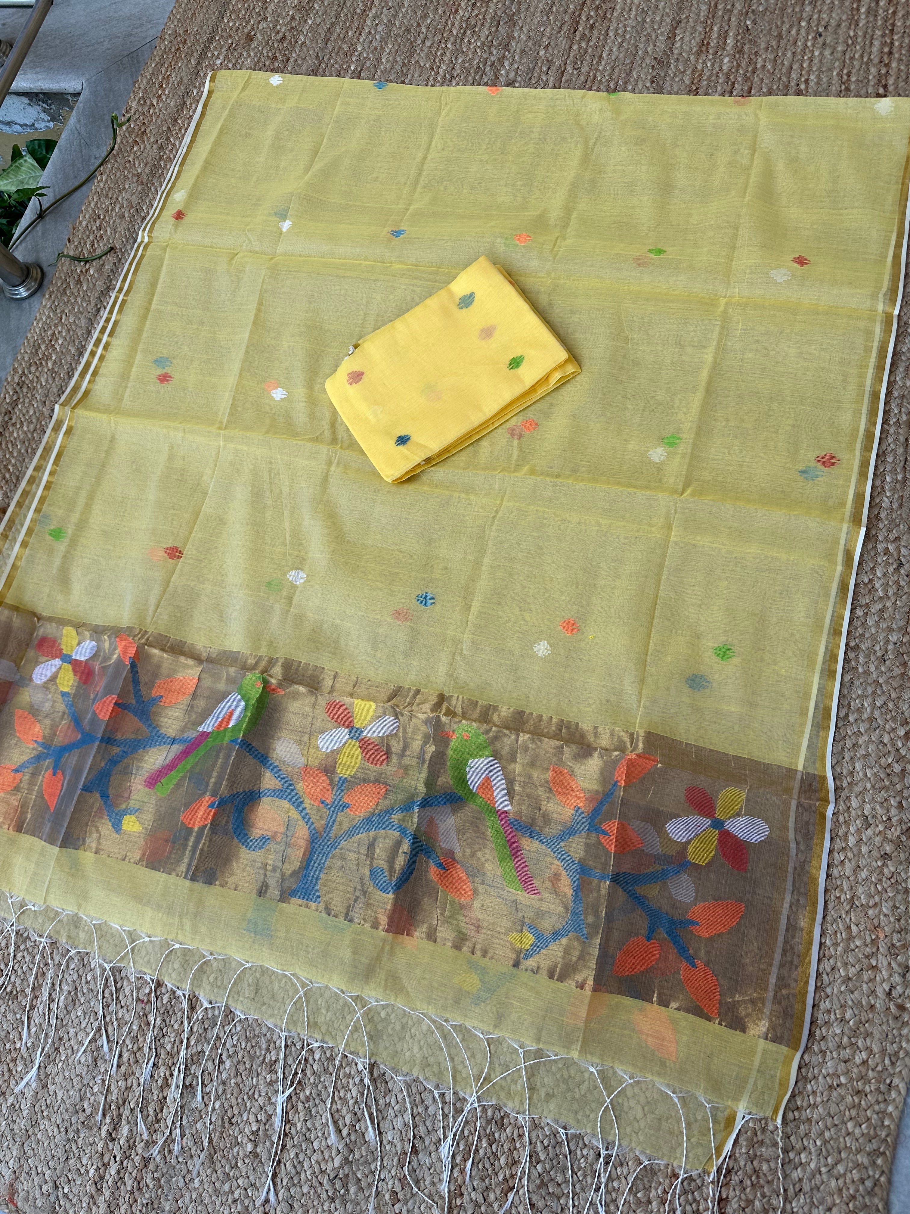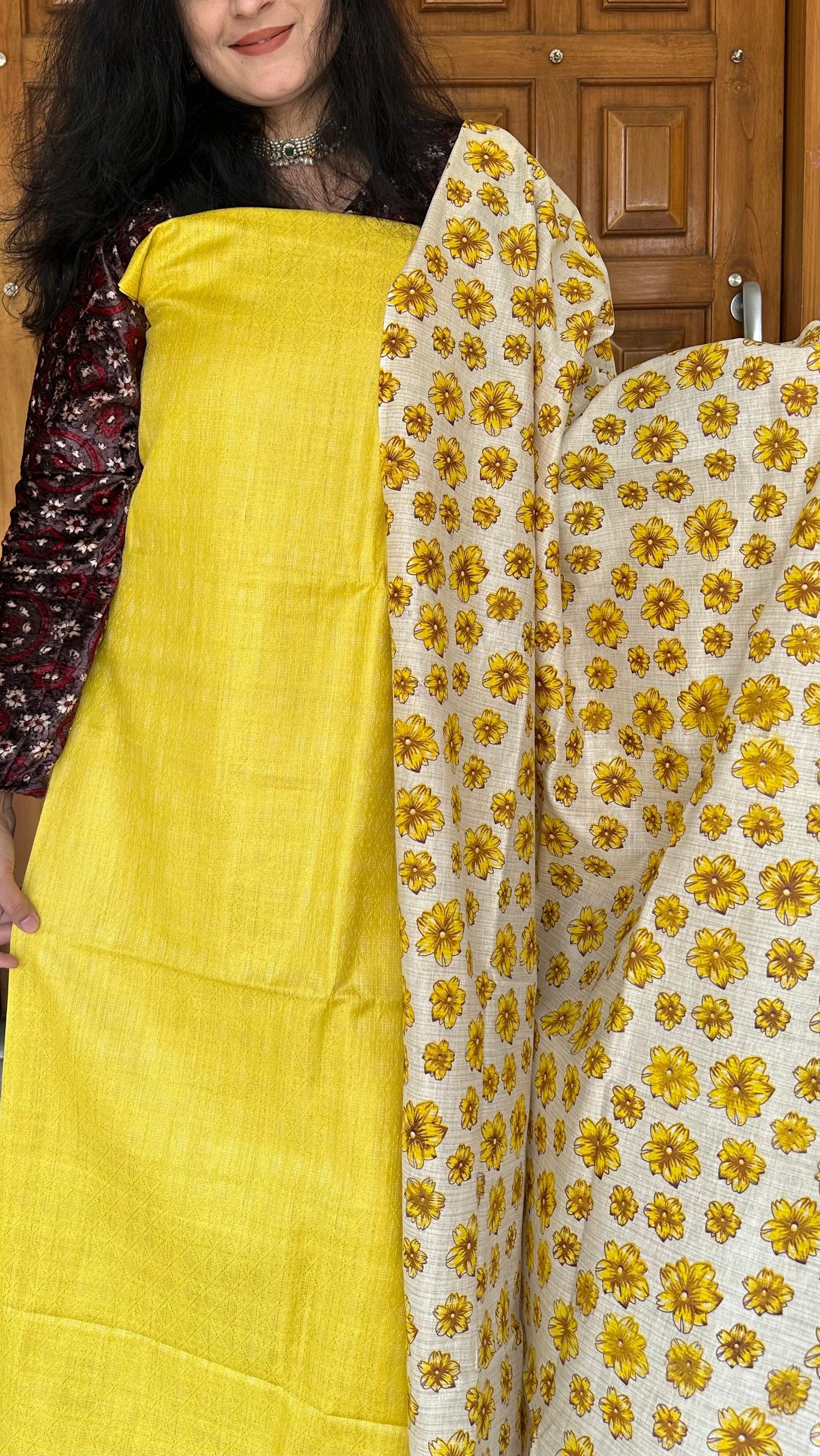 Light Lemon Mul Chanderi Embroidered Suit Set