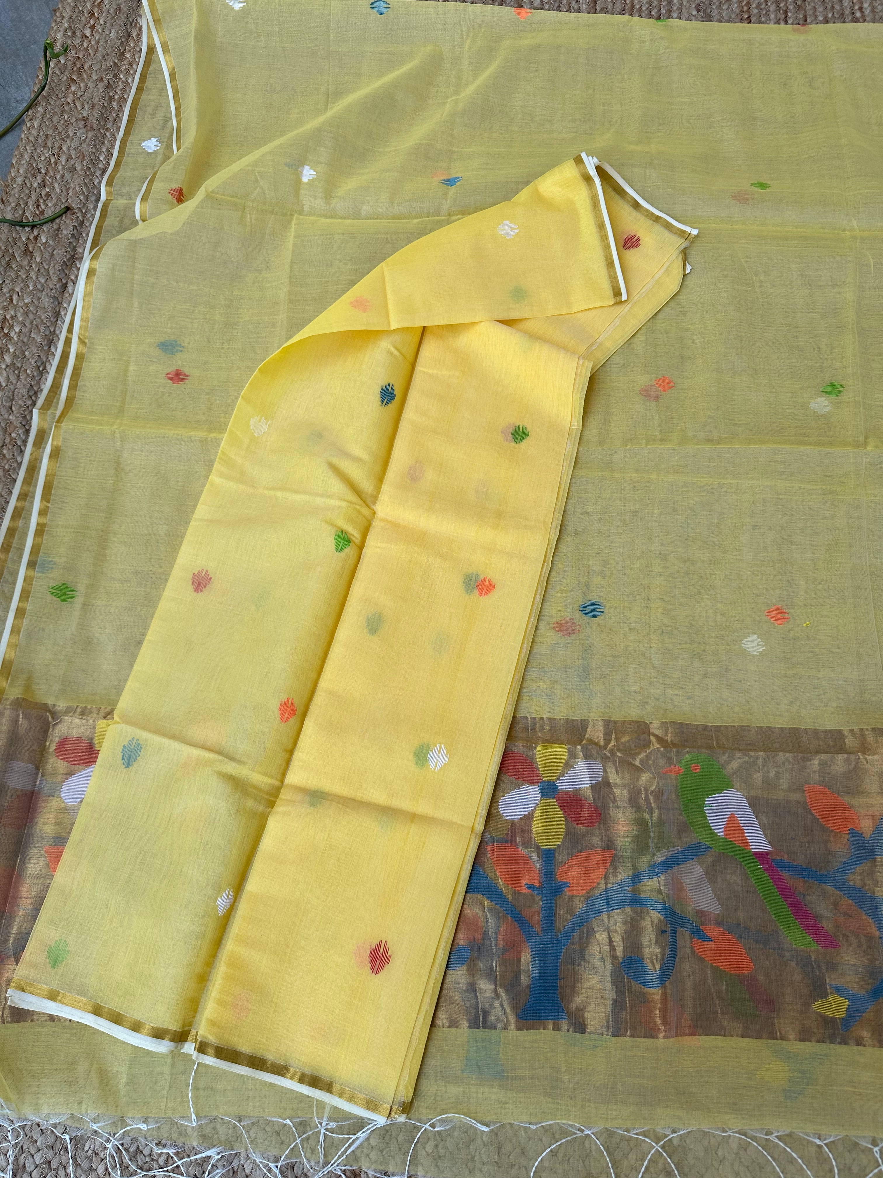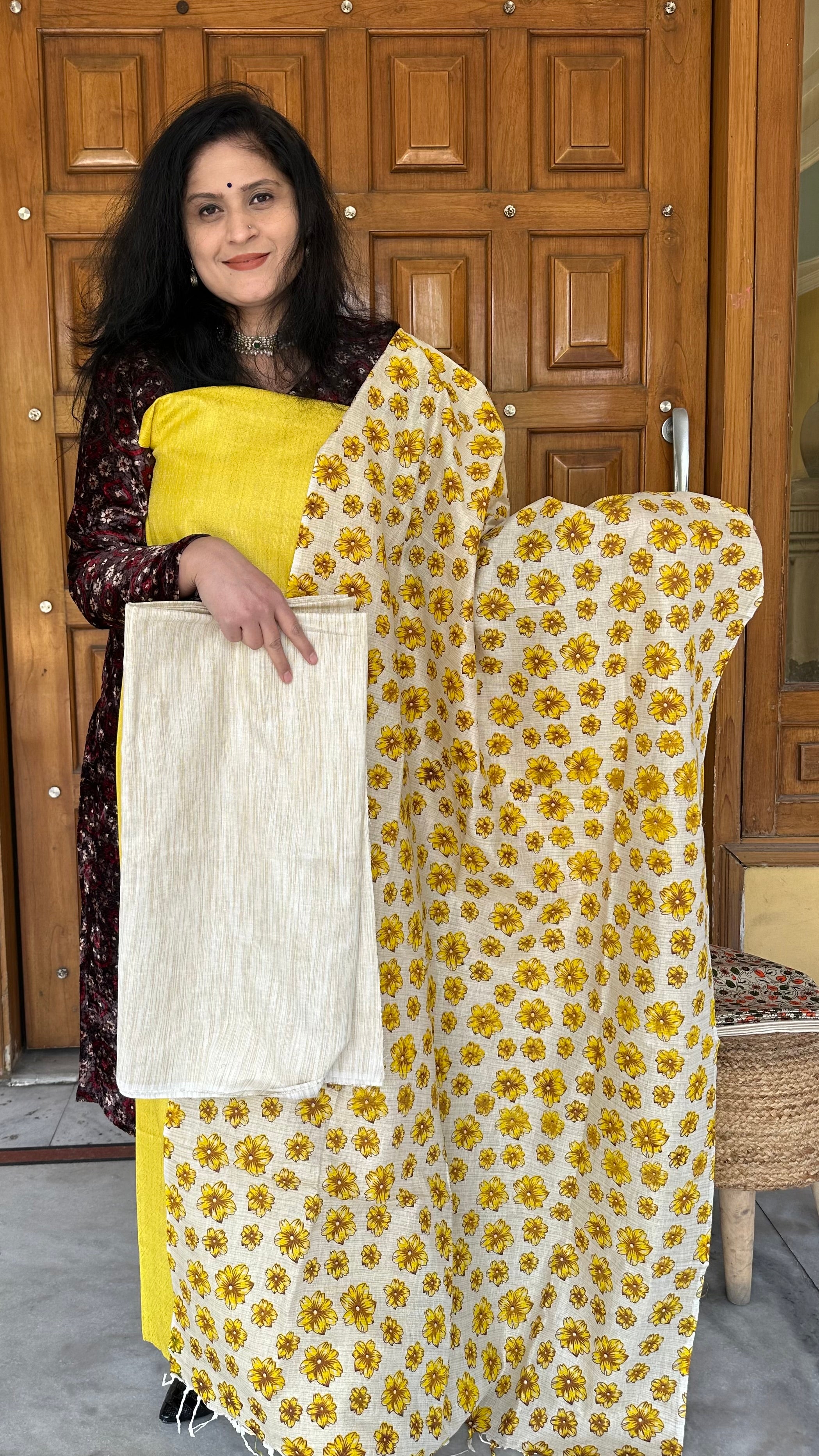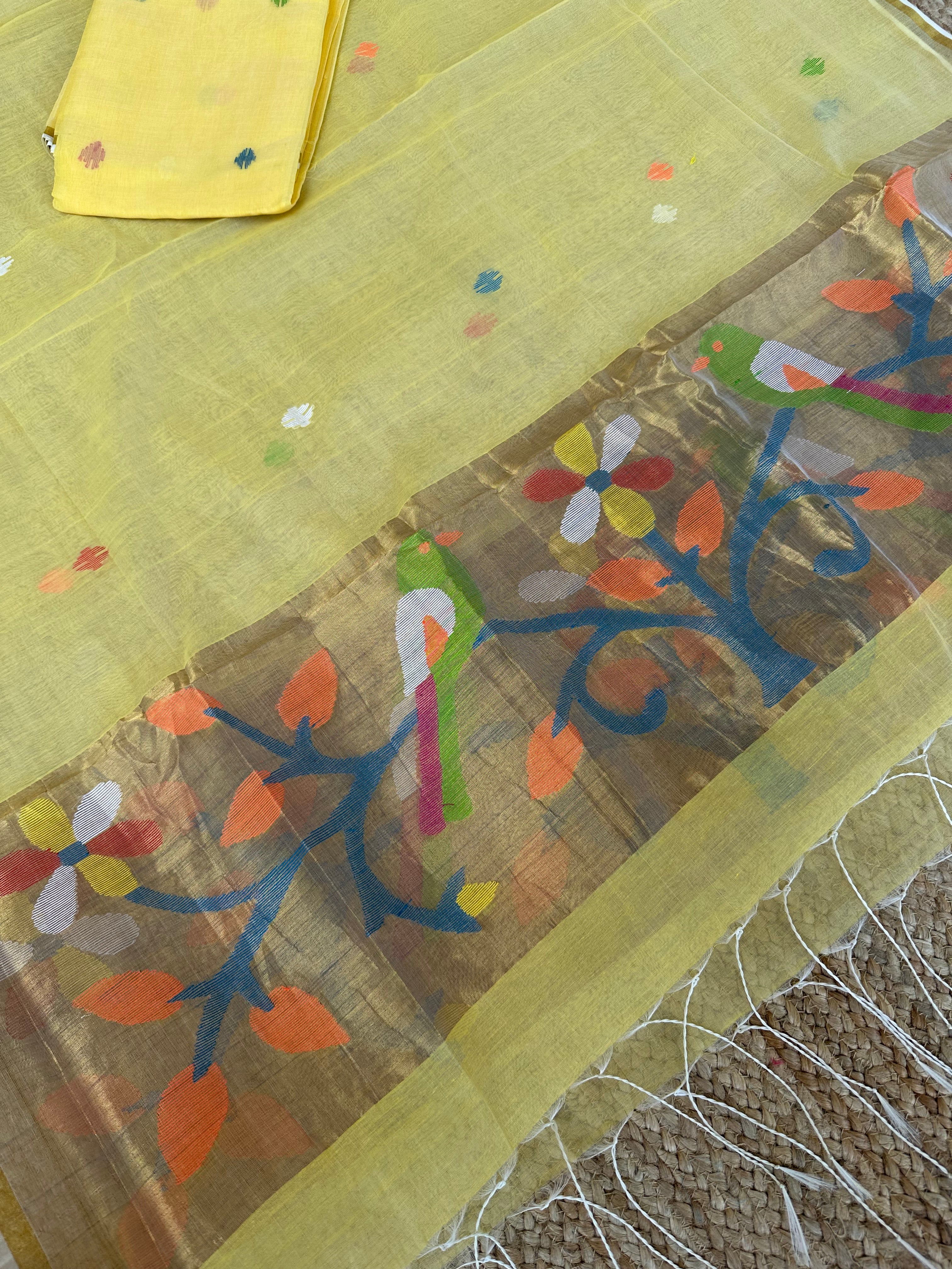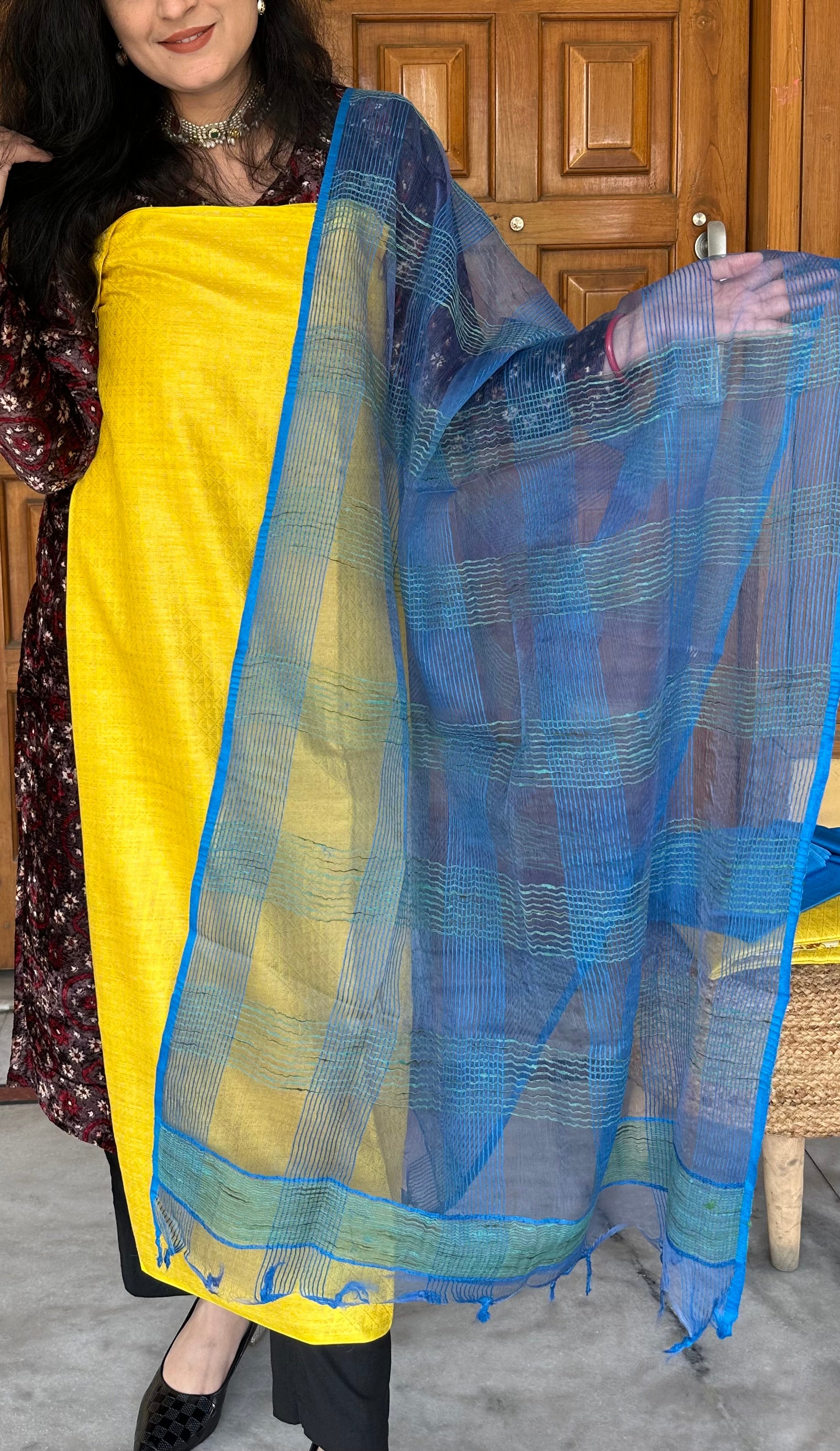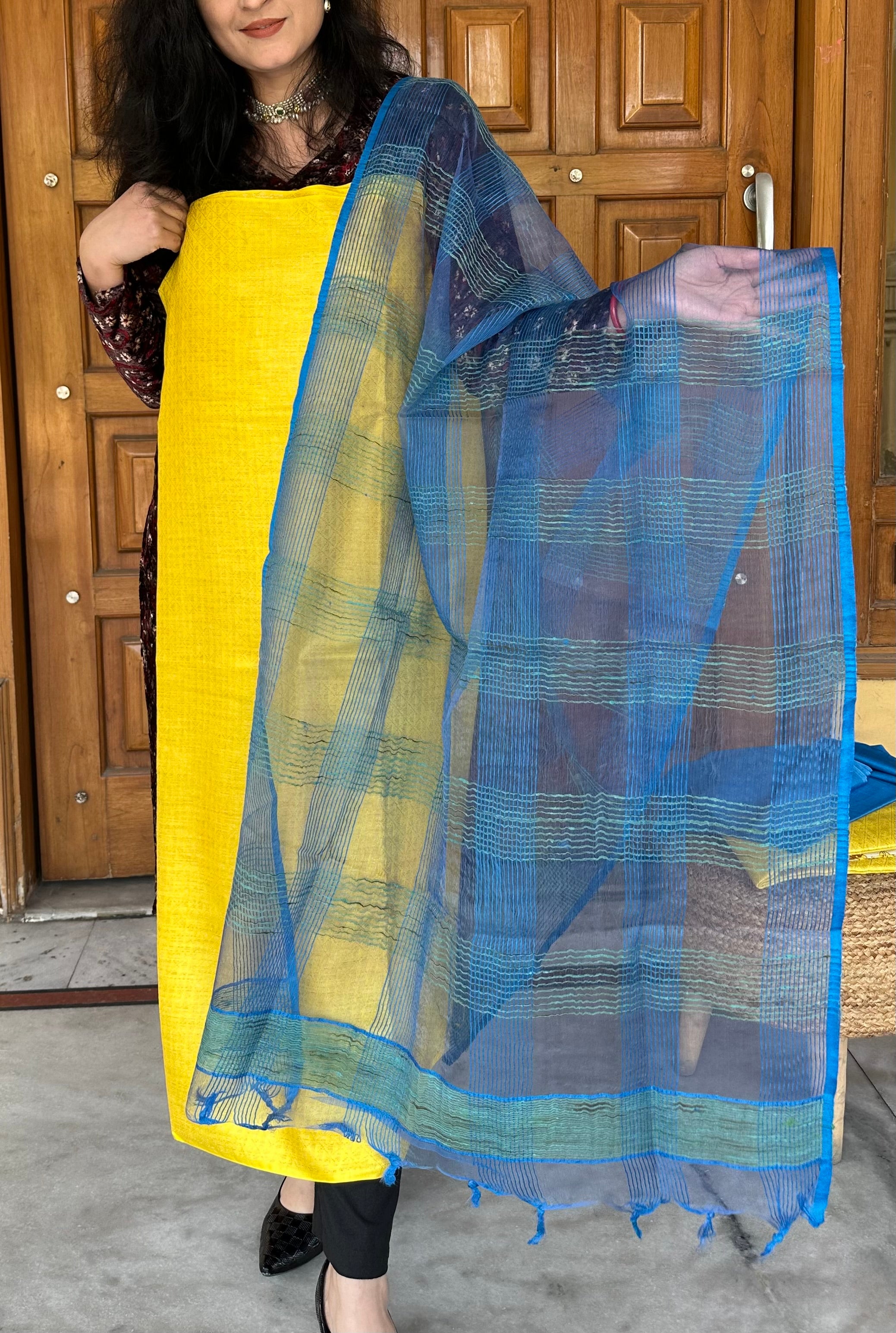 Light Lemon Mul Chanderi Embroidered Suit Set