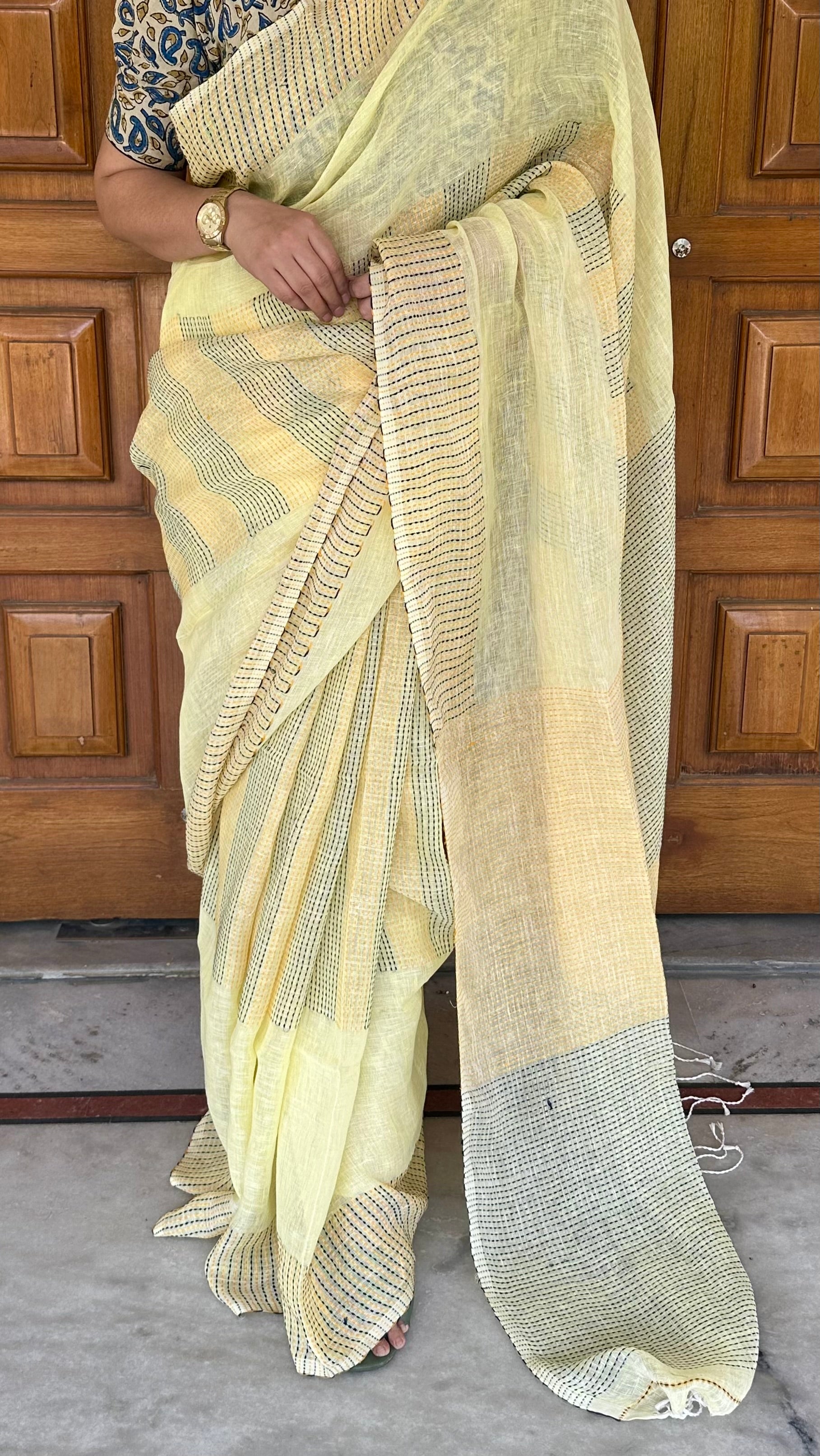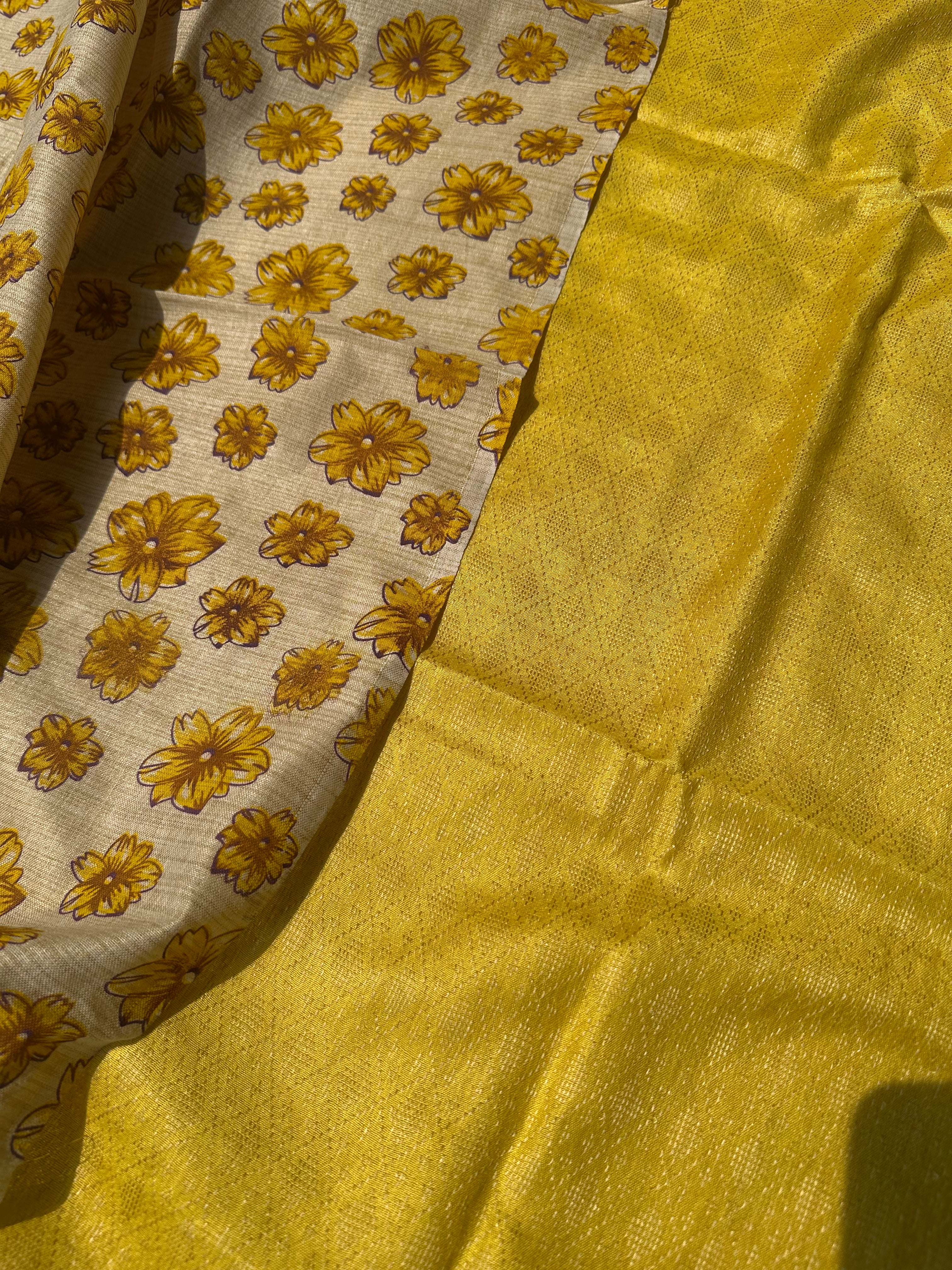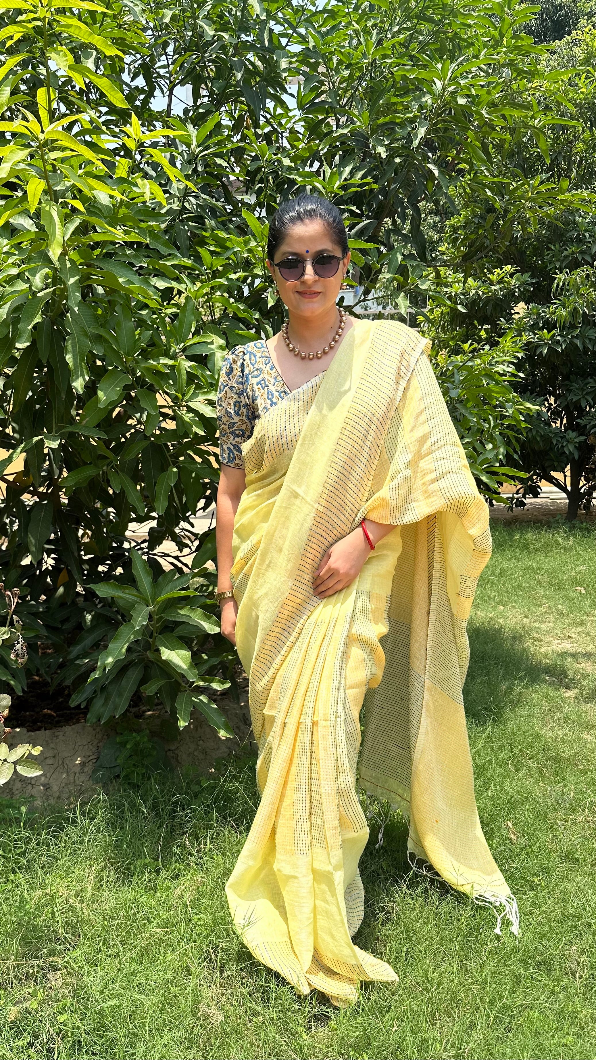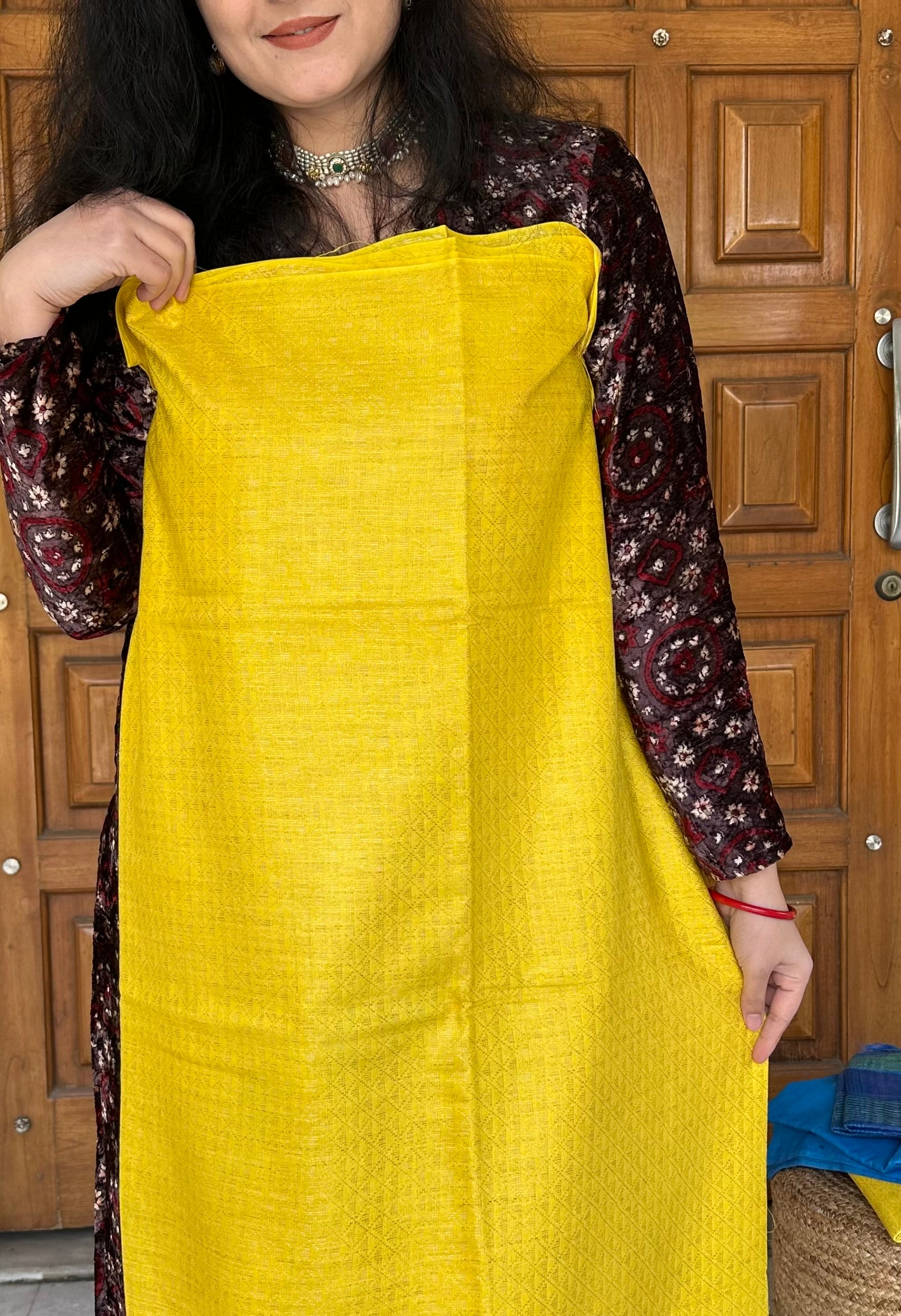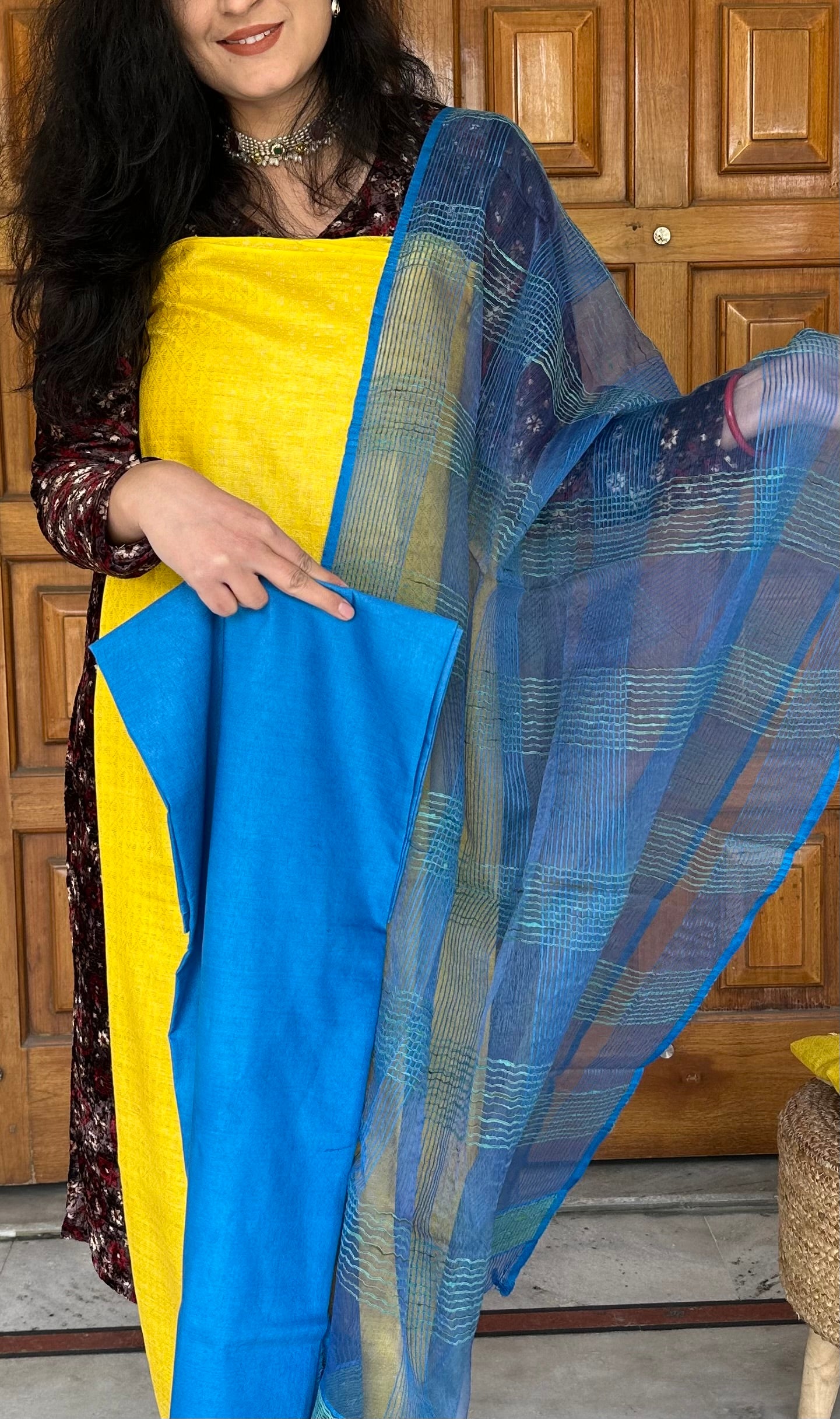 Light Lemon Mul Chanderi Embroidered Suit Set