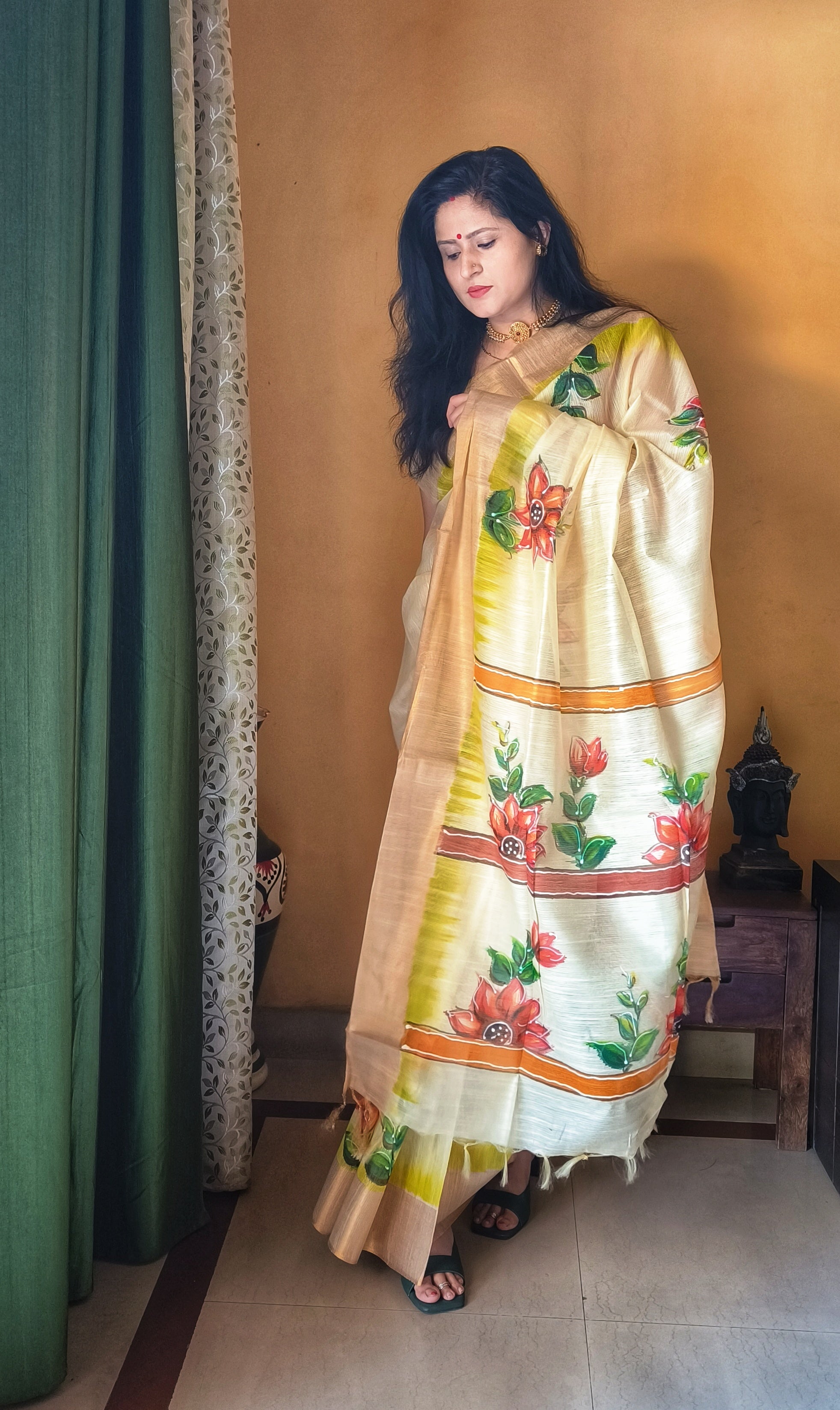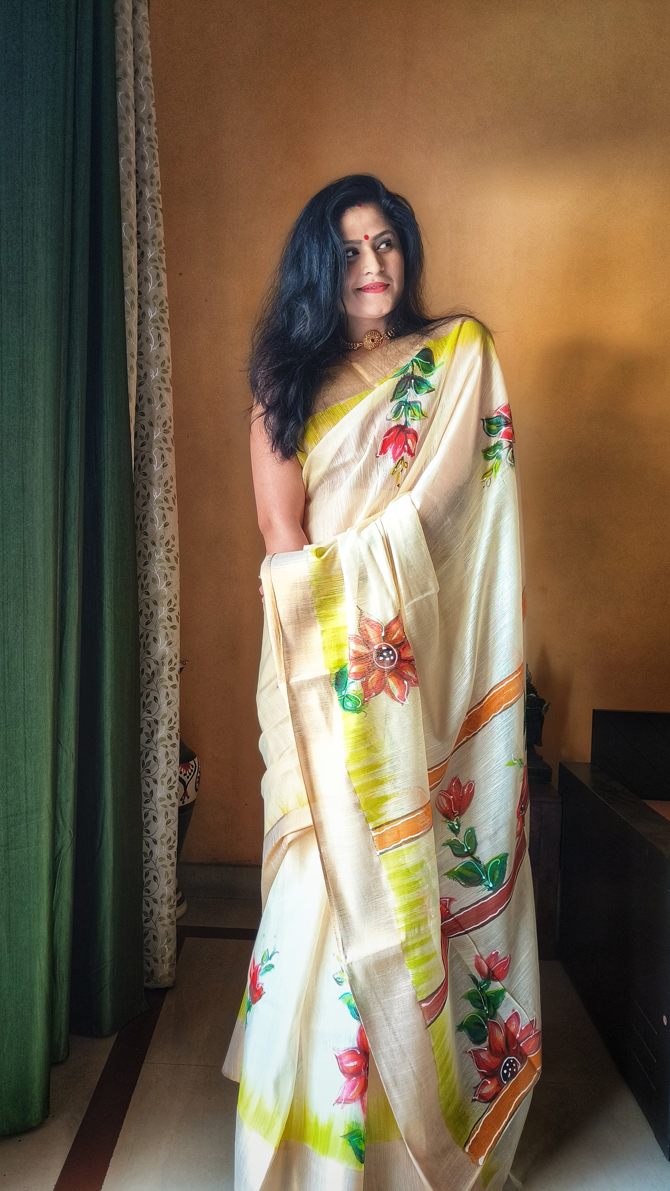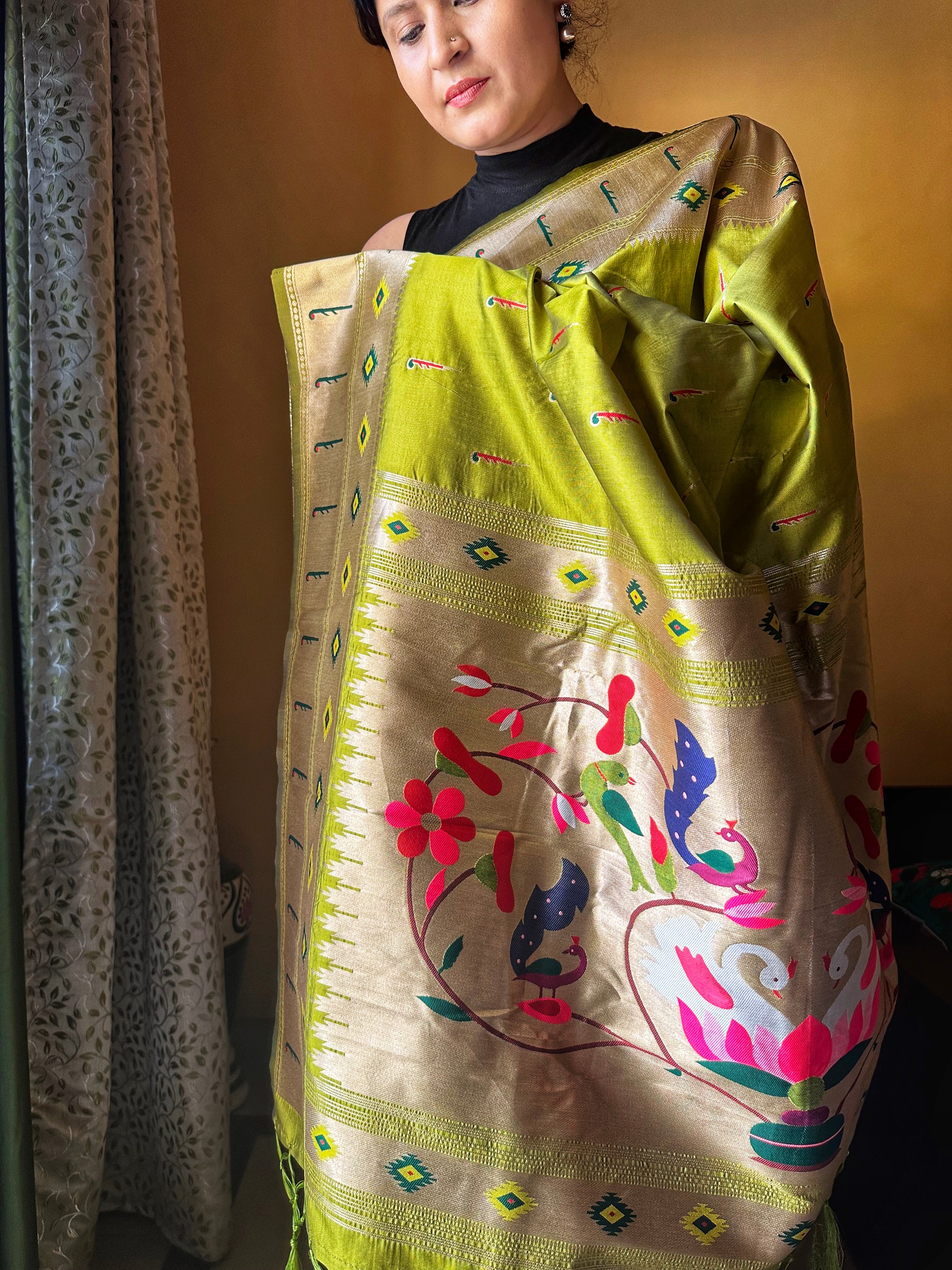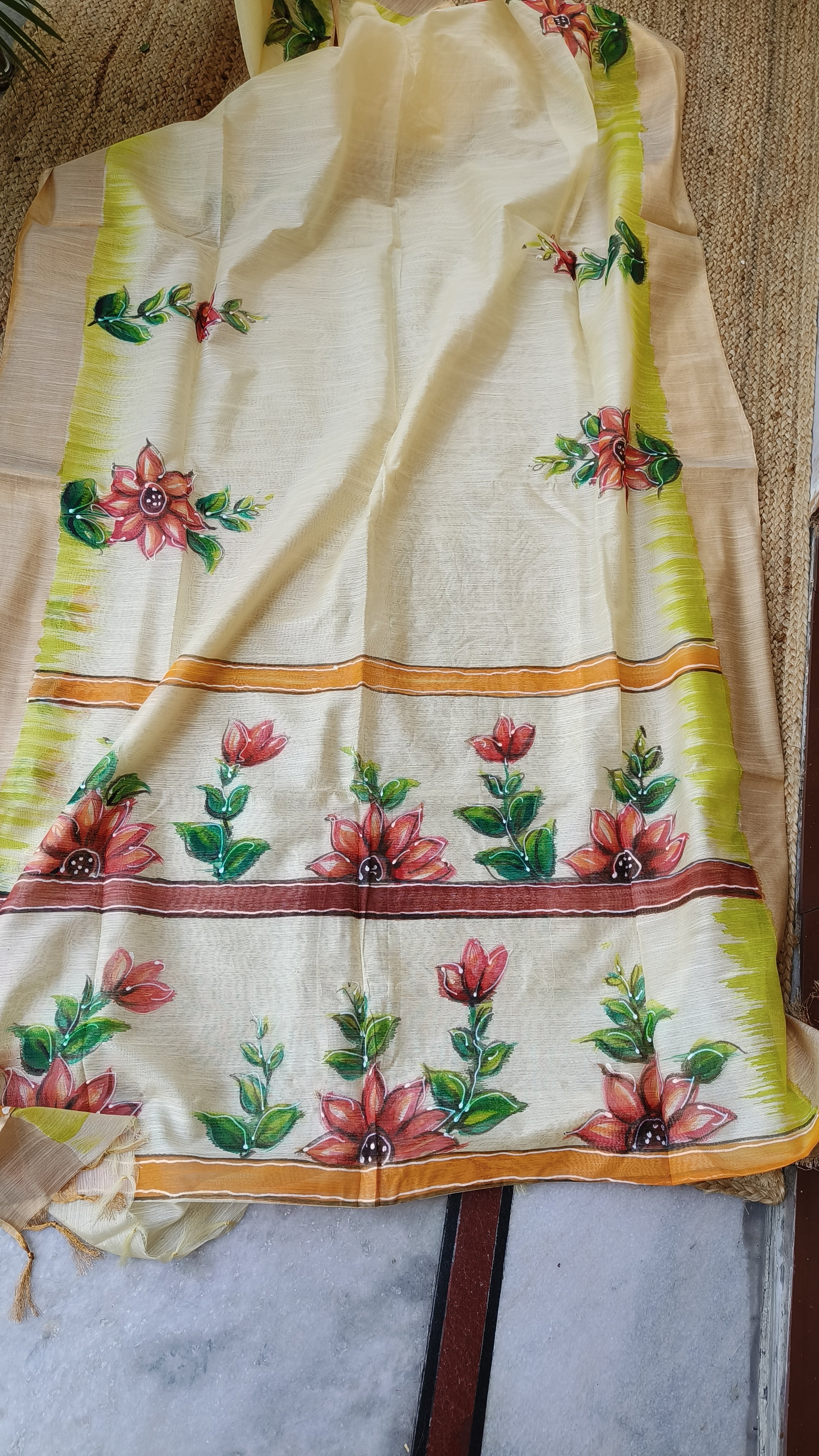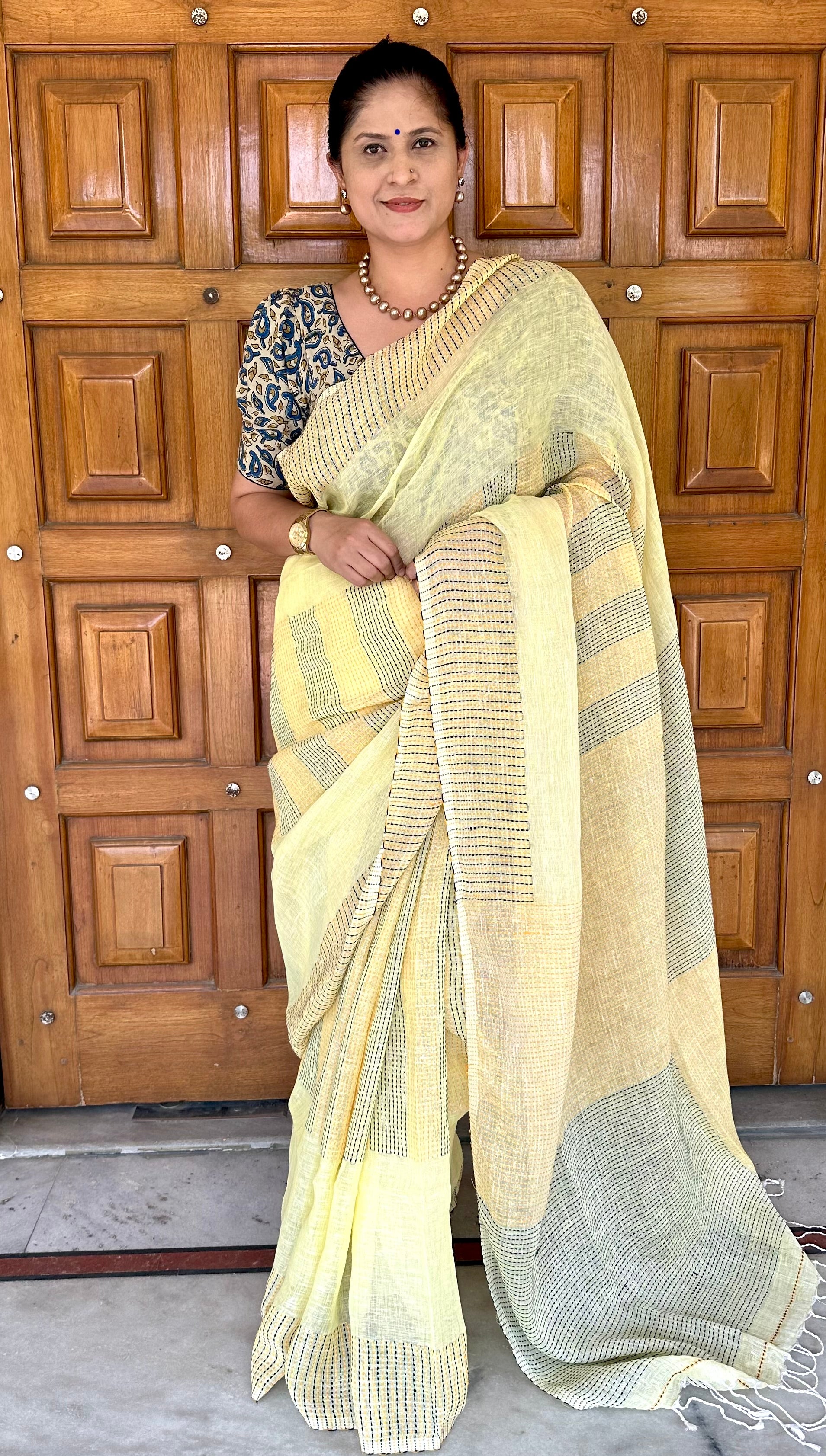 Light Lemon Mul Chanderi Embroidered Suit Set