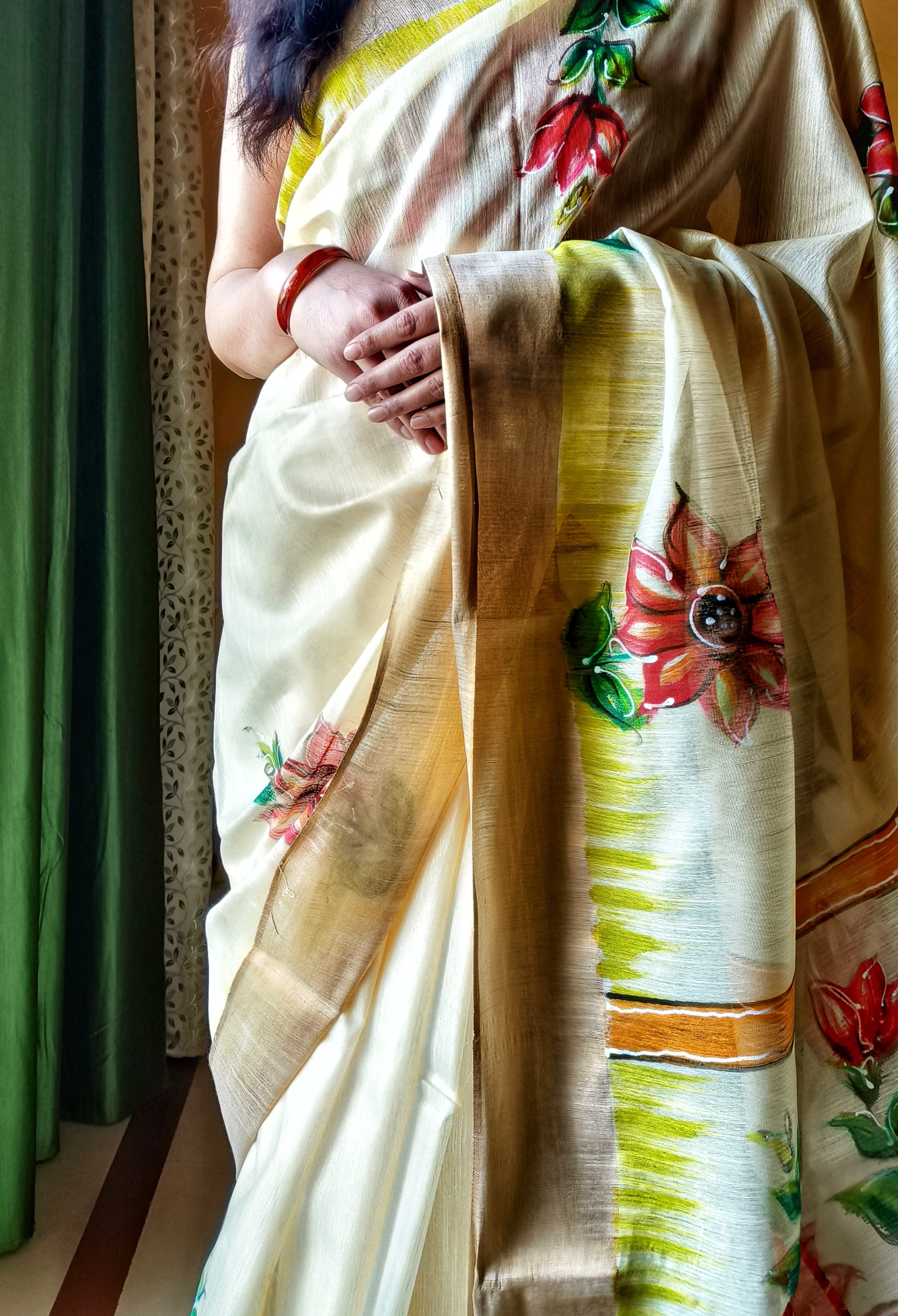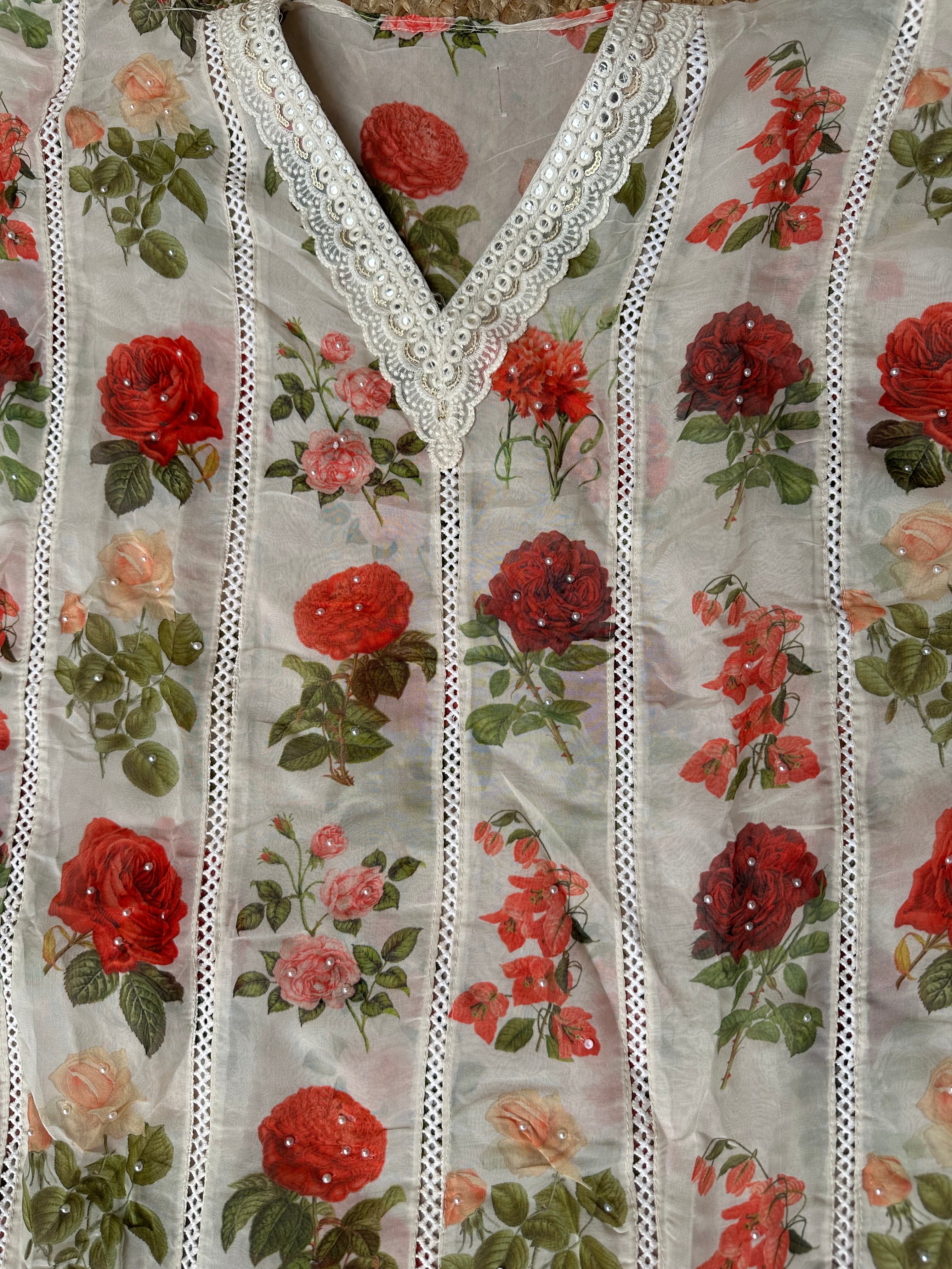 Crush Tissue Embroidered Sleeveless Blouse (Cream)