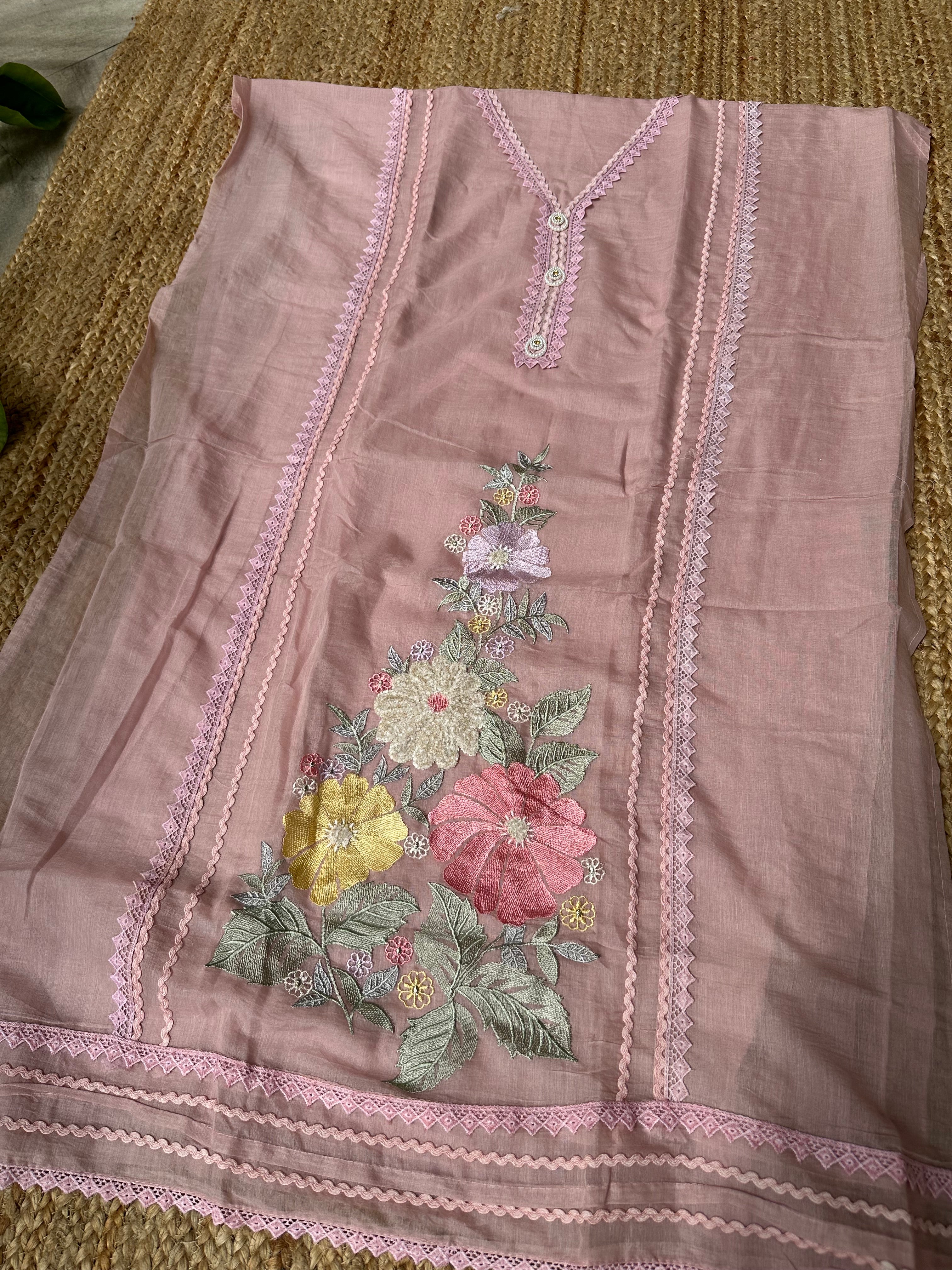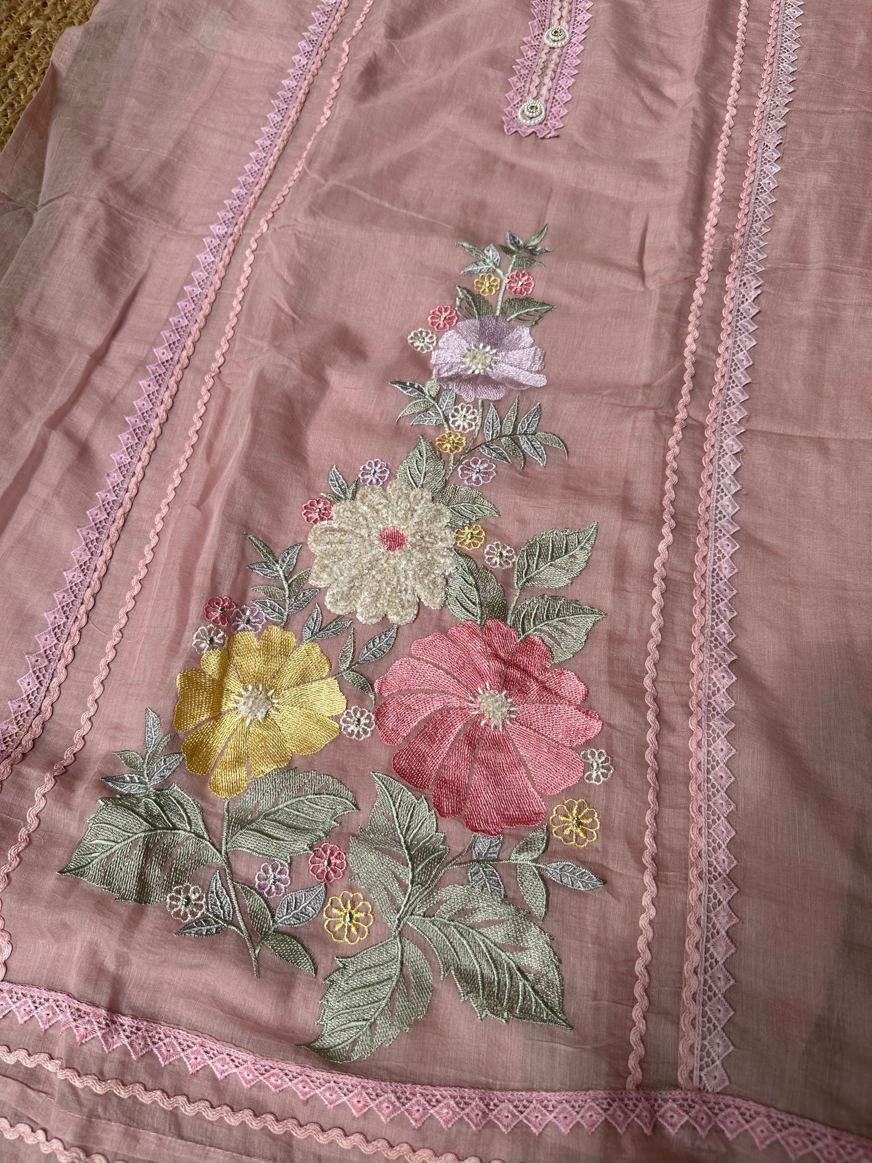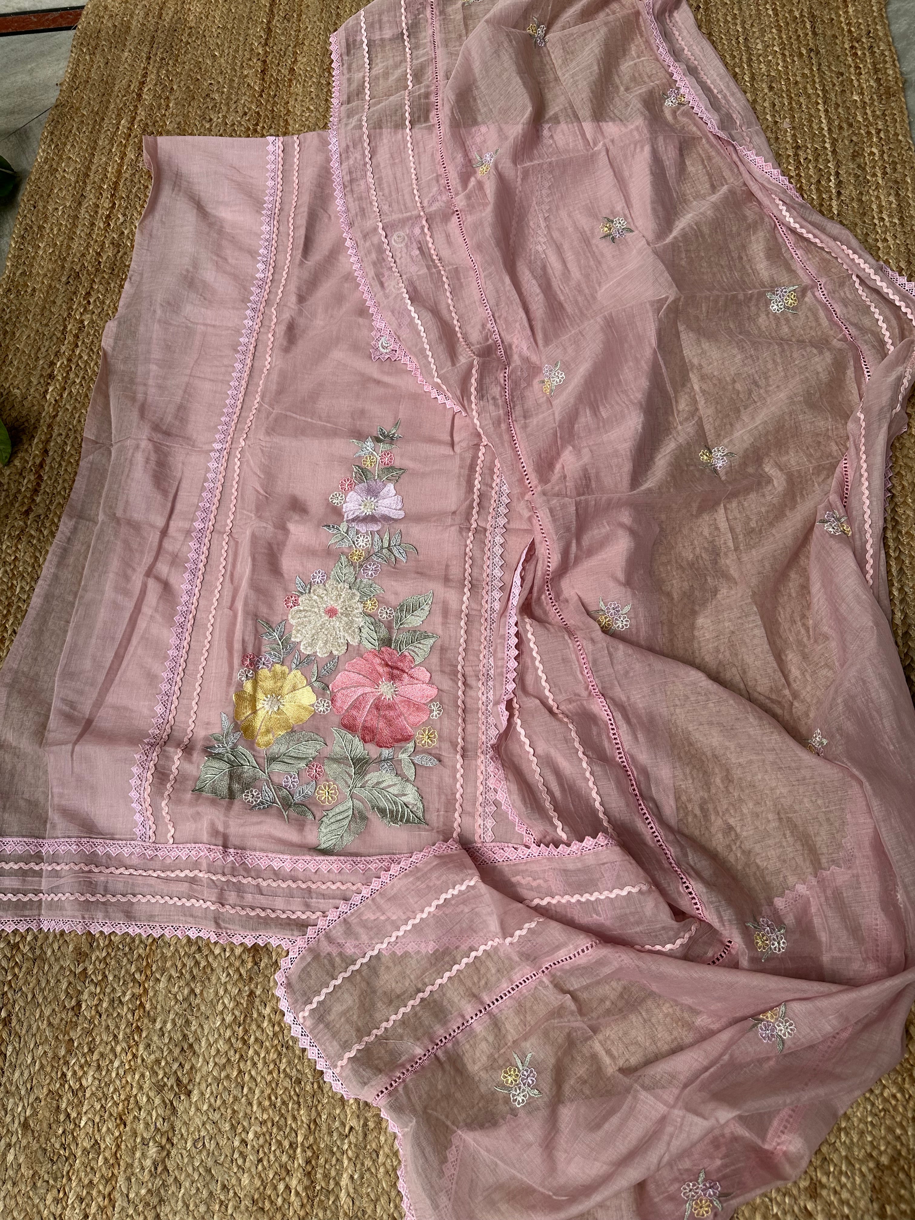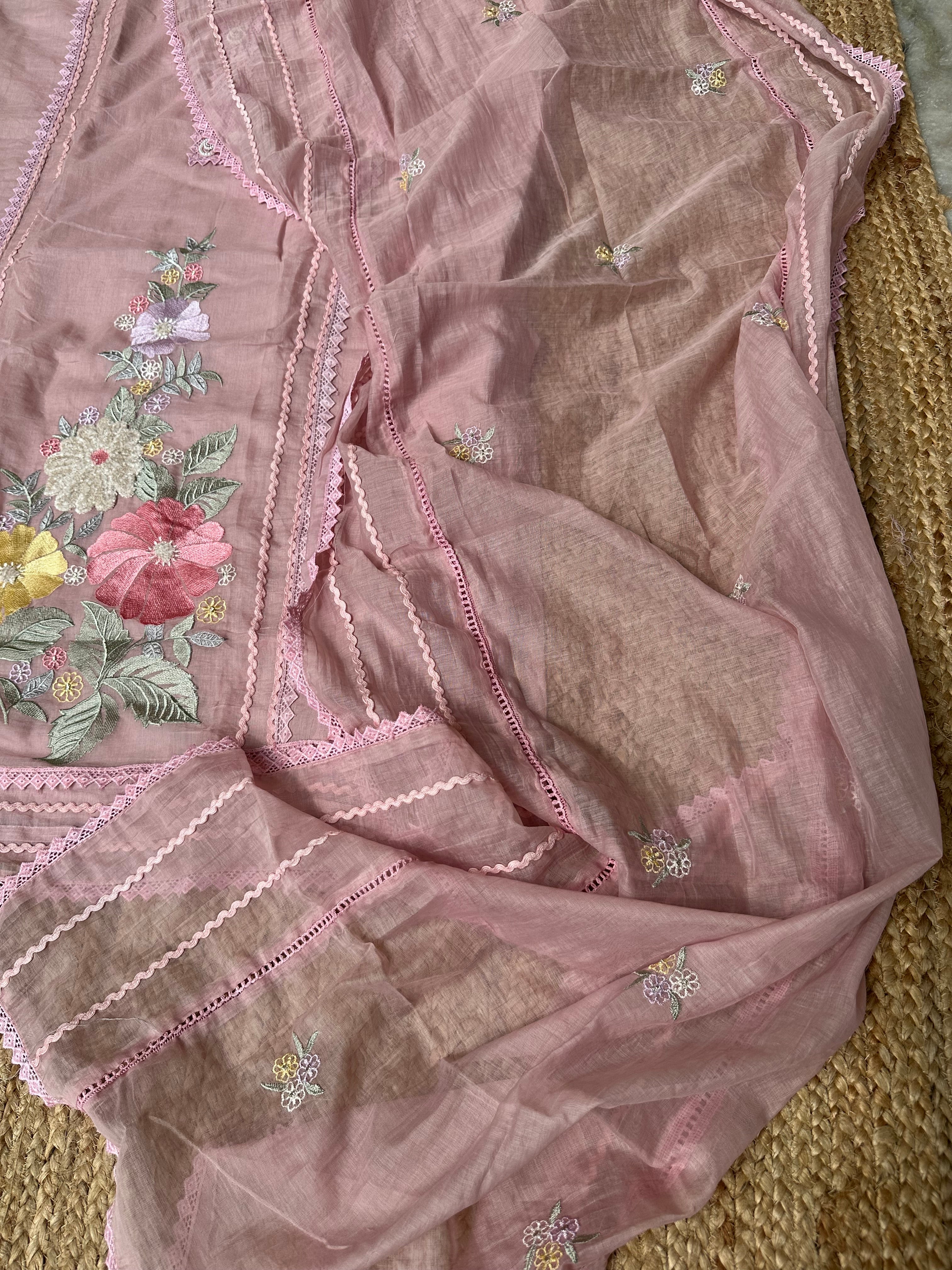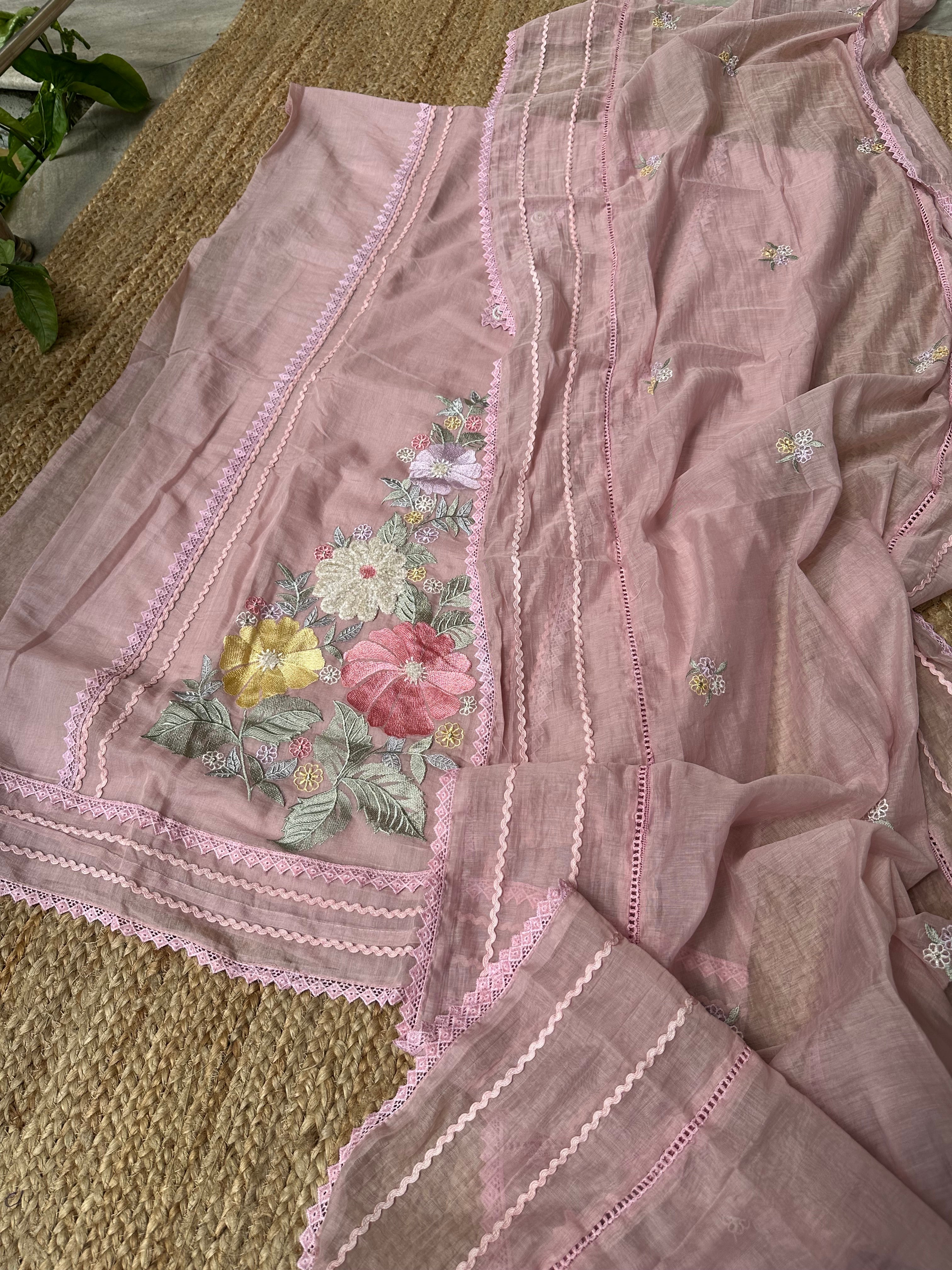 Rose Pink Mul Chanderi Embroidered Suit Set