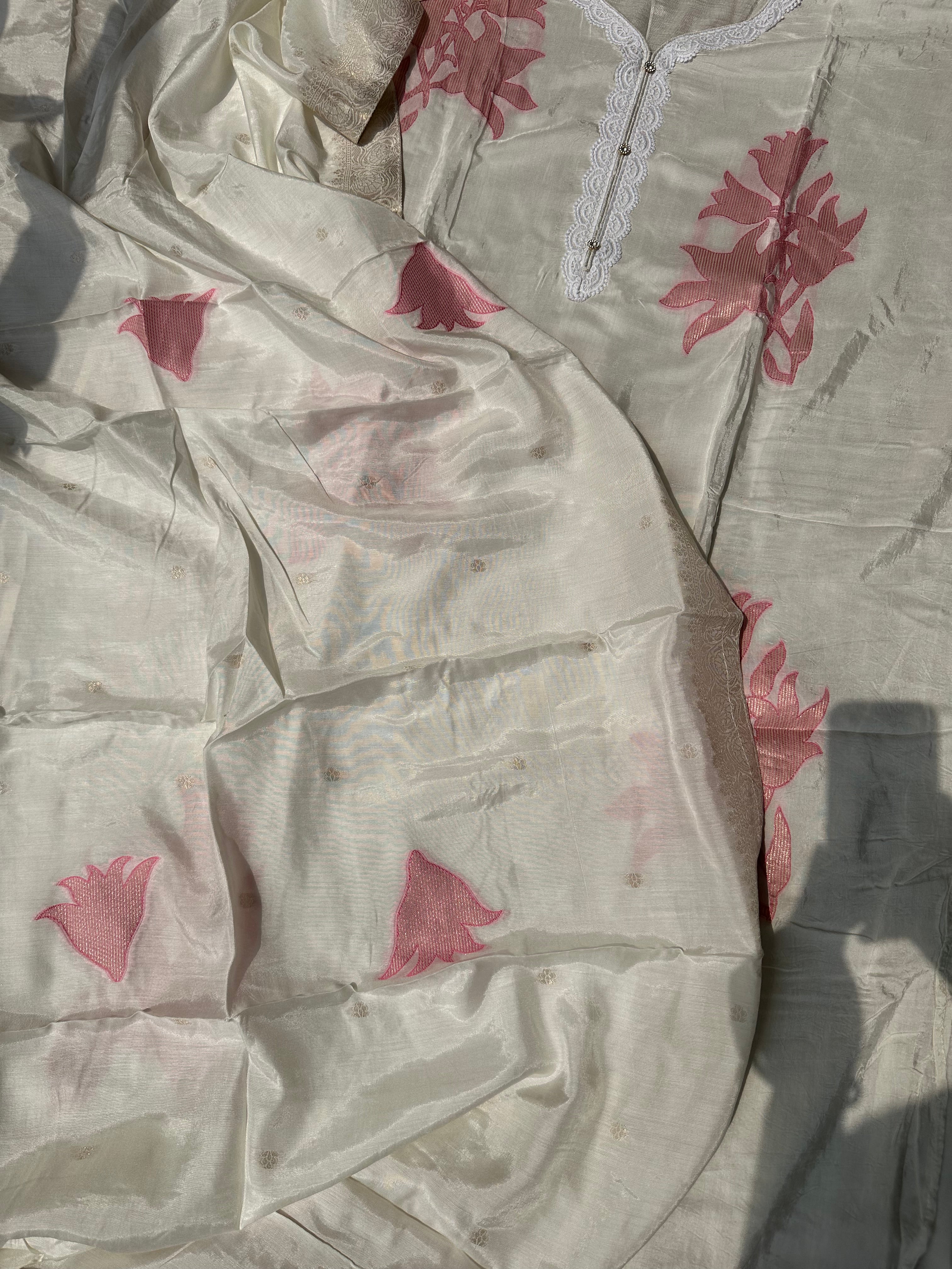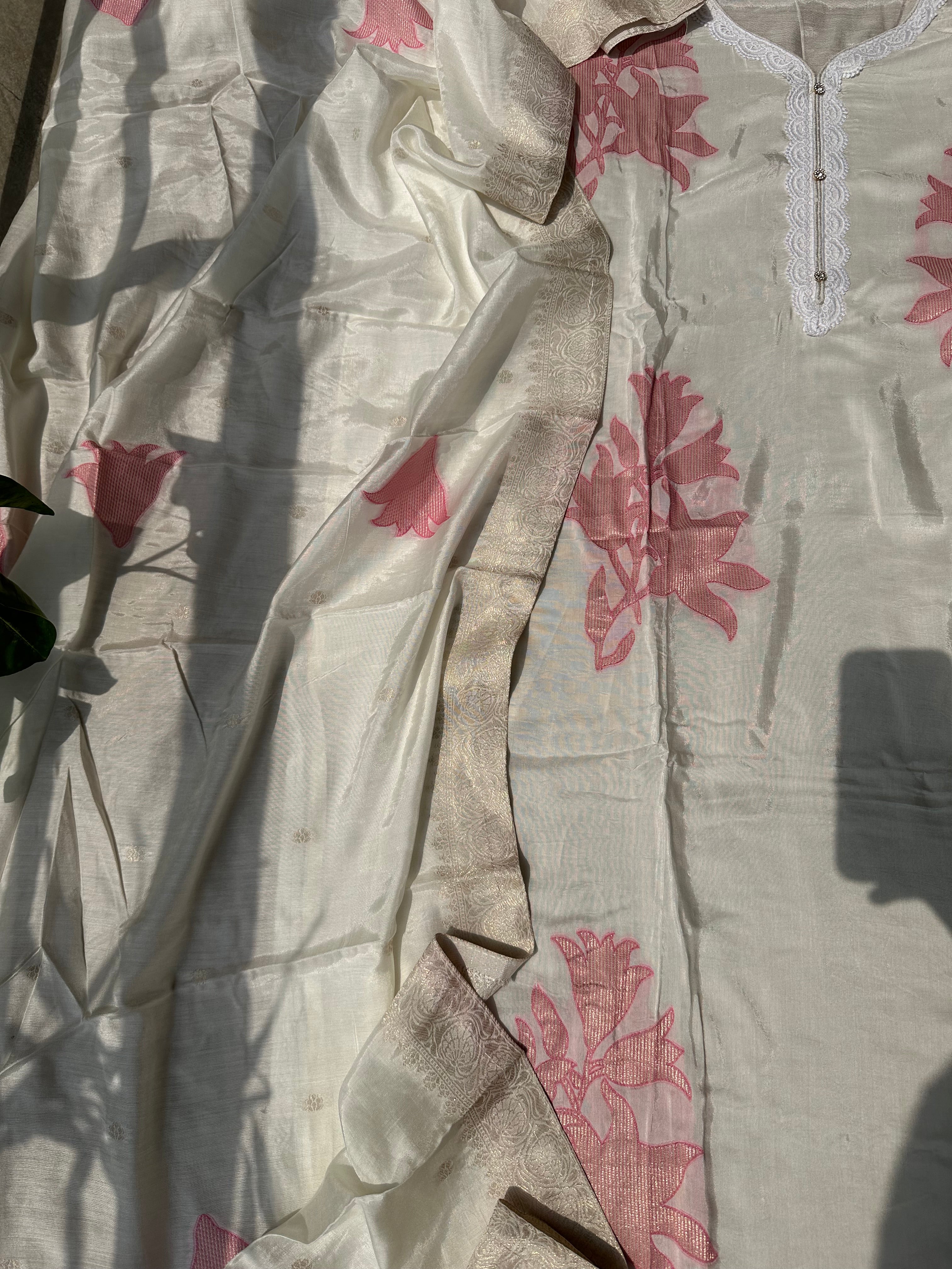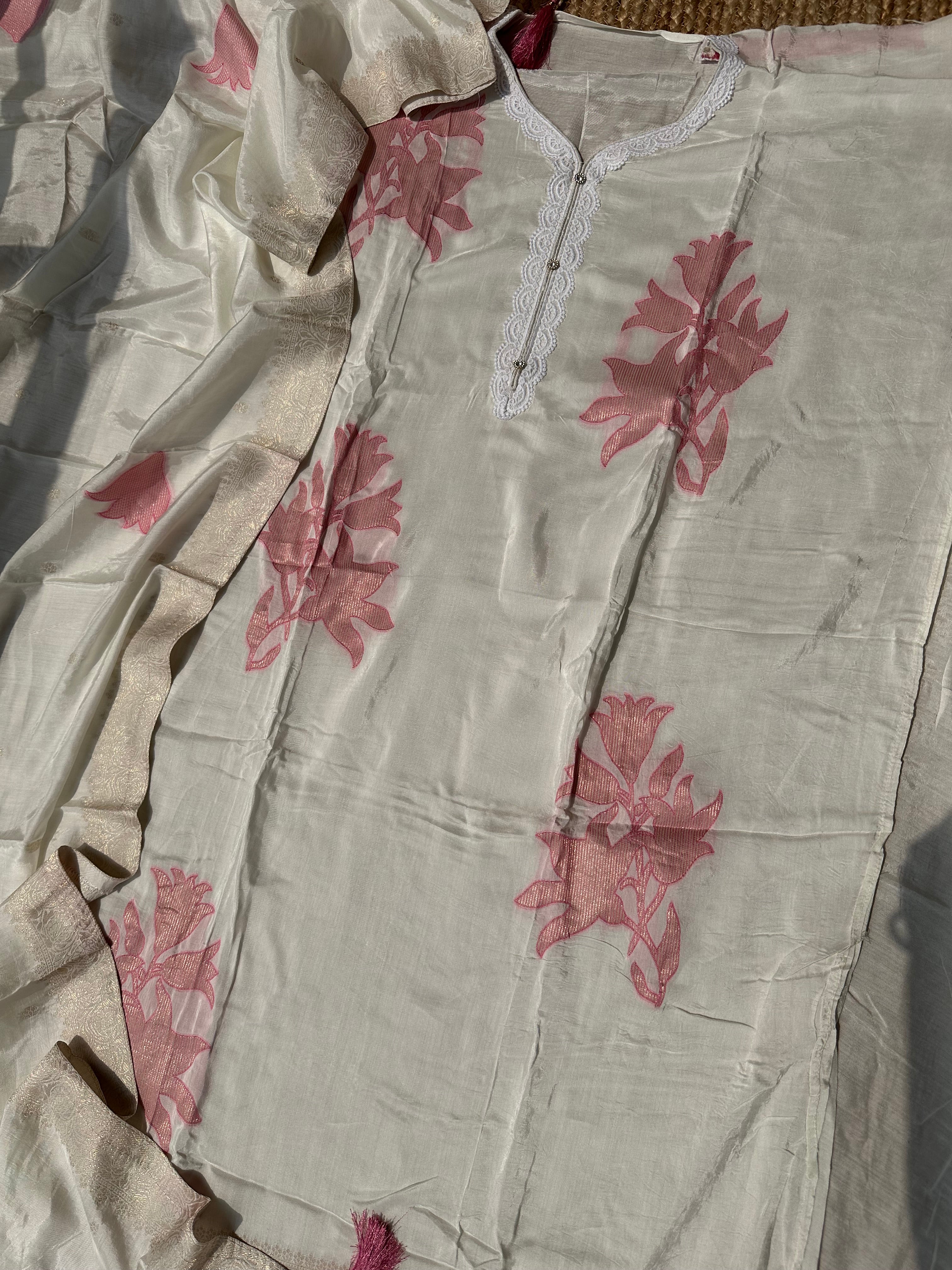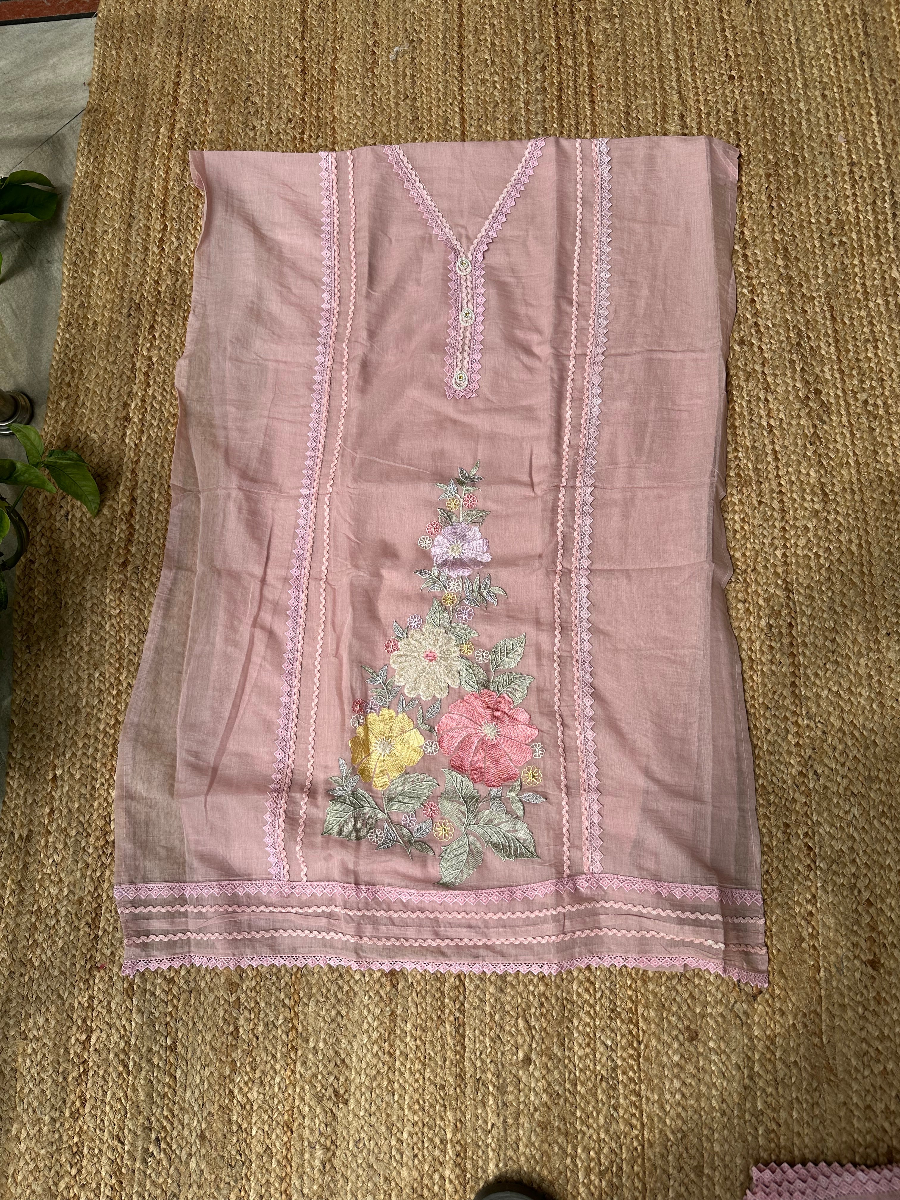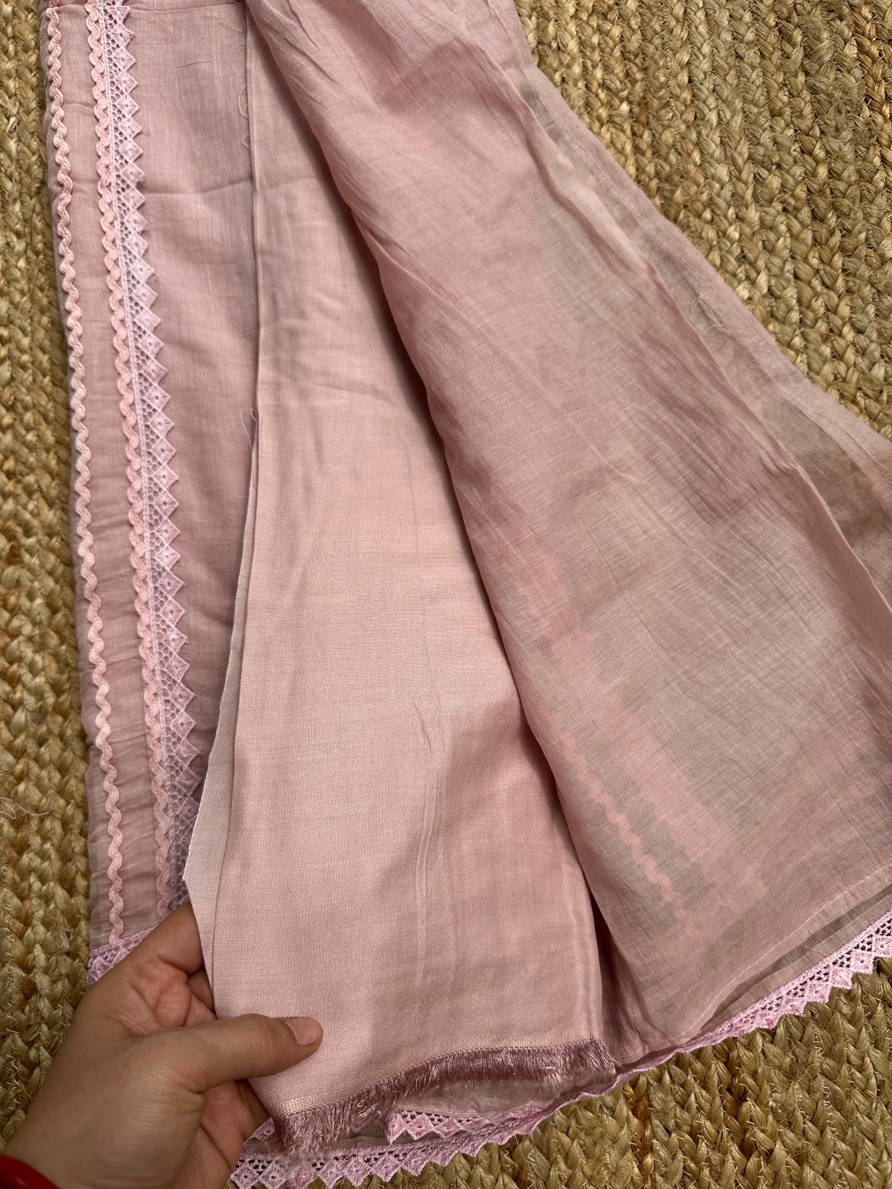Rose Pink Mul Chanderi Embroidered Suit Set