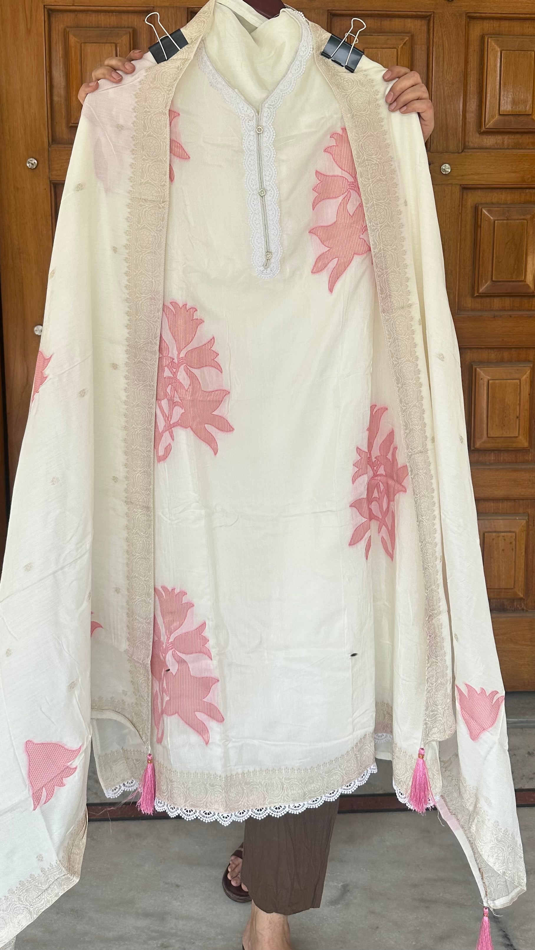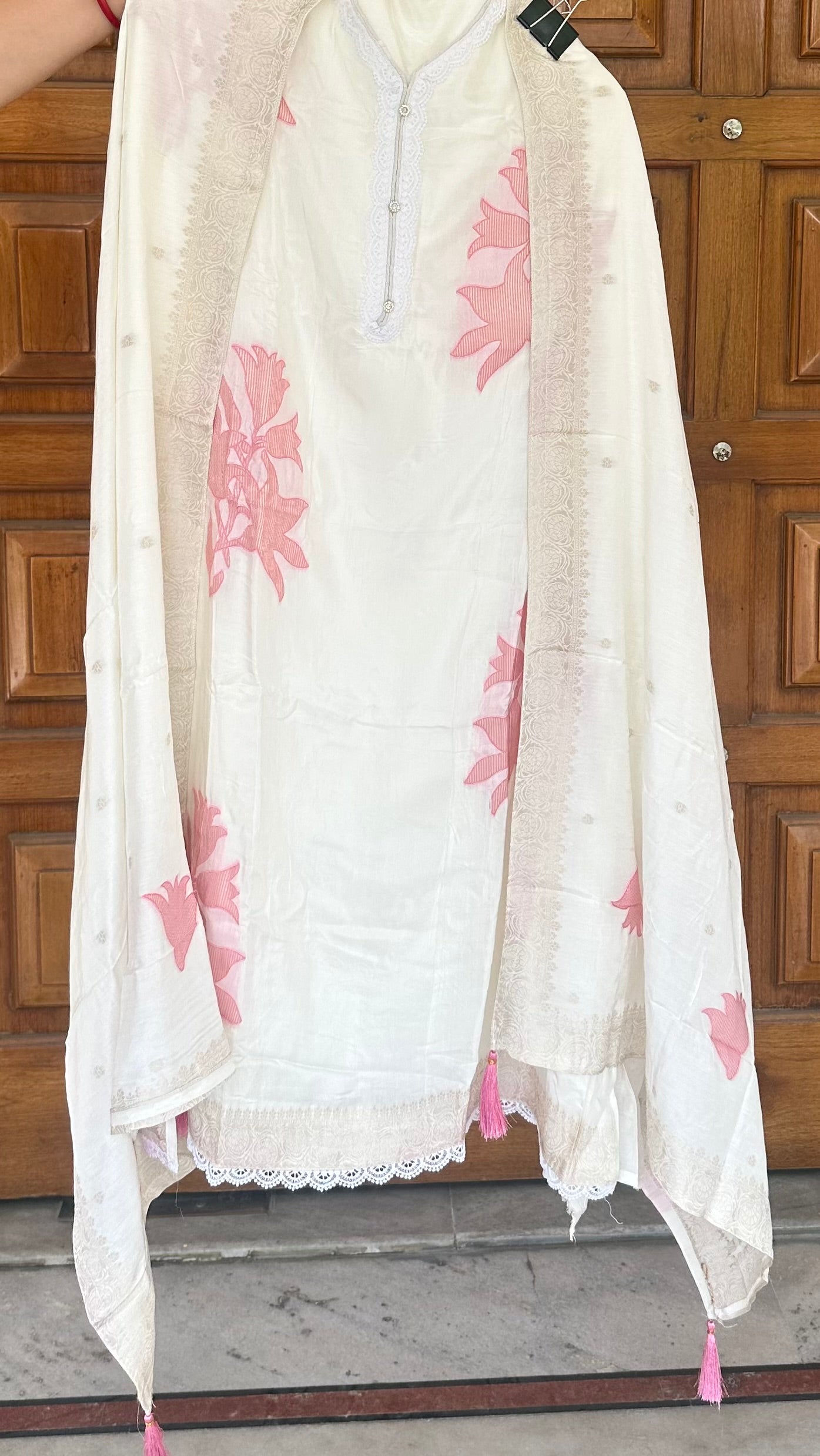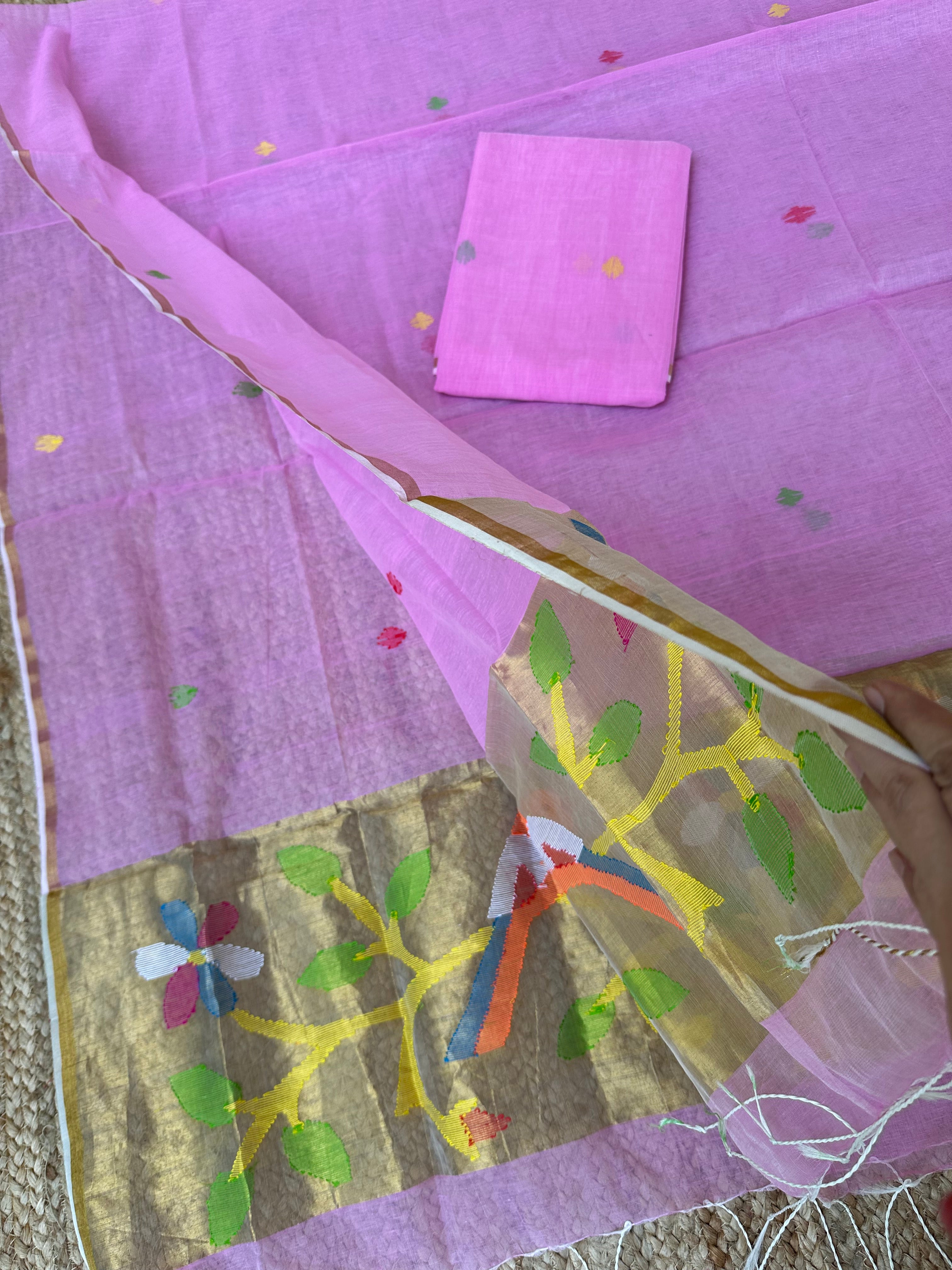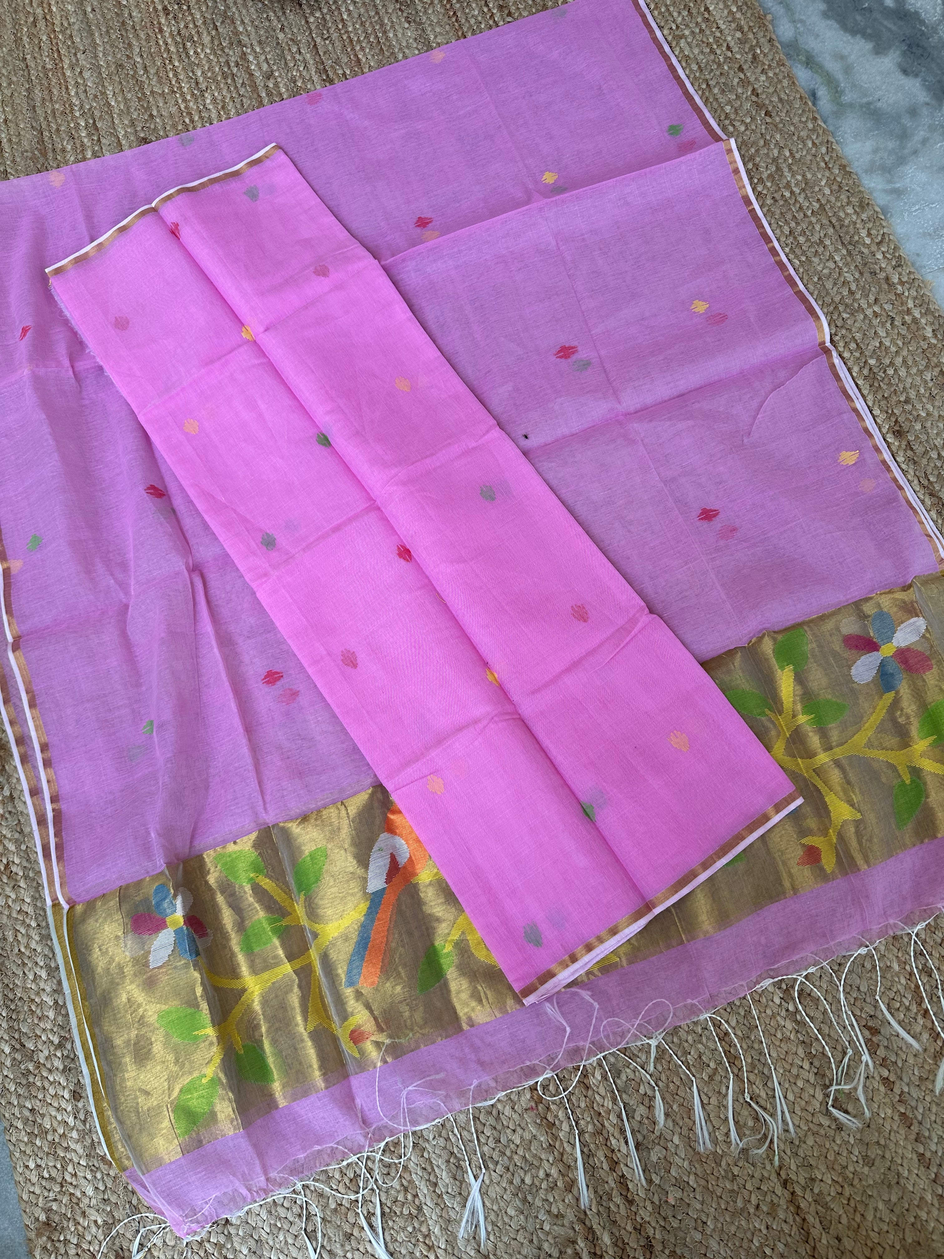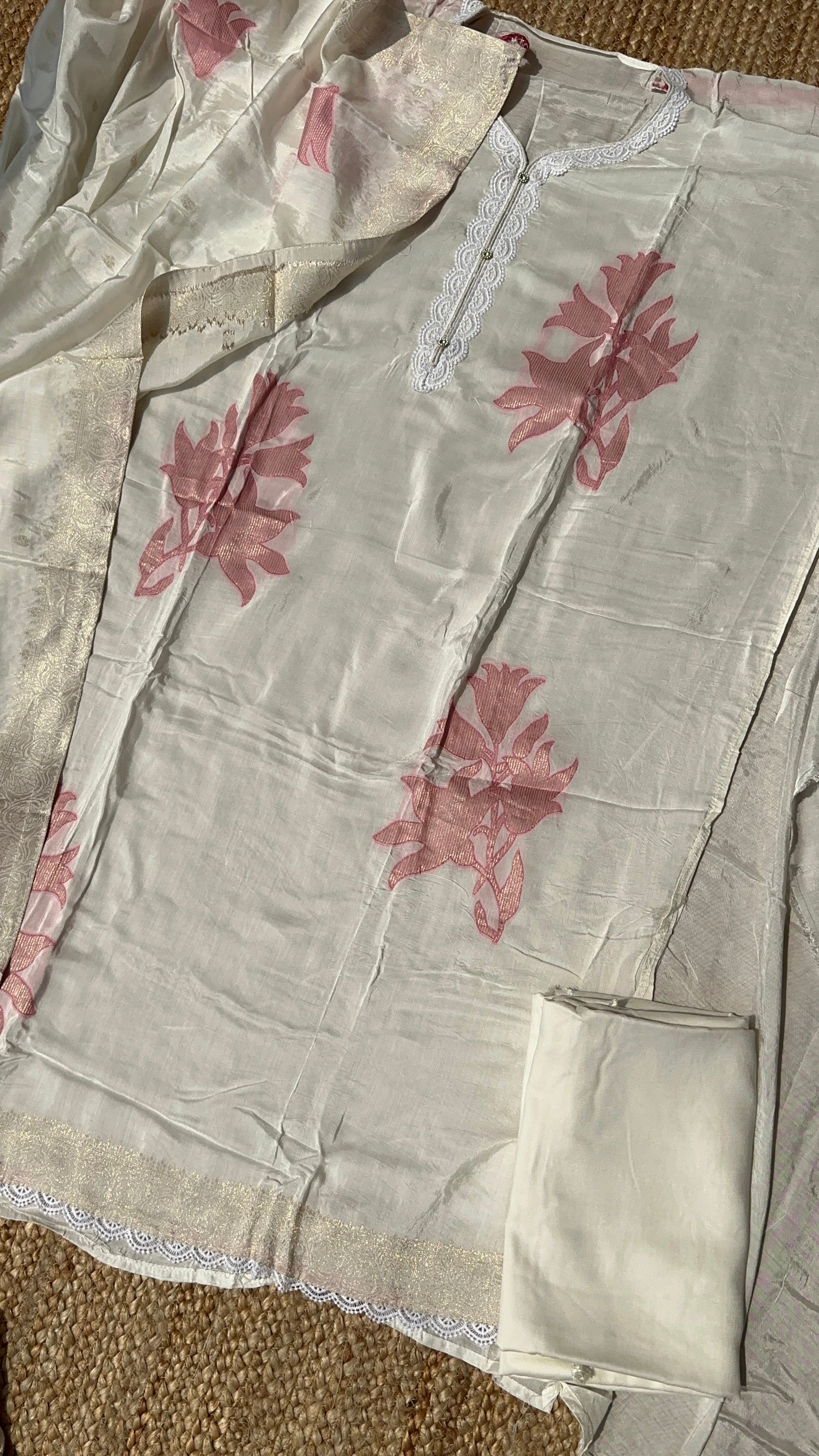 Rose Pink Mul Chanderi Embroidered Suit Set