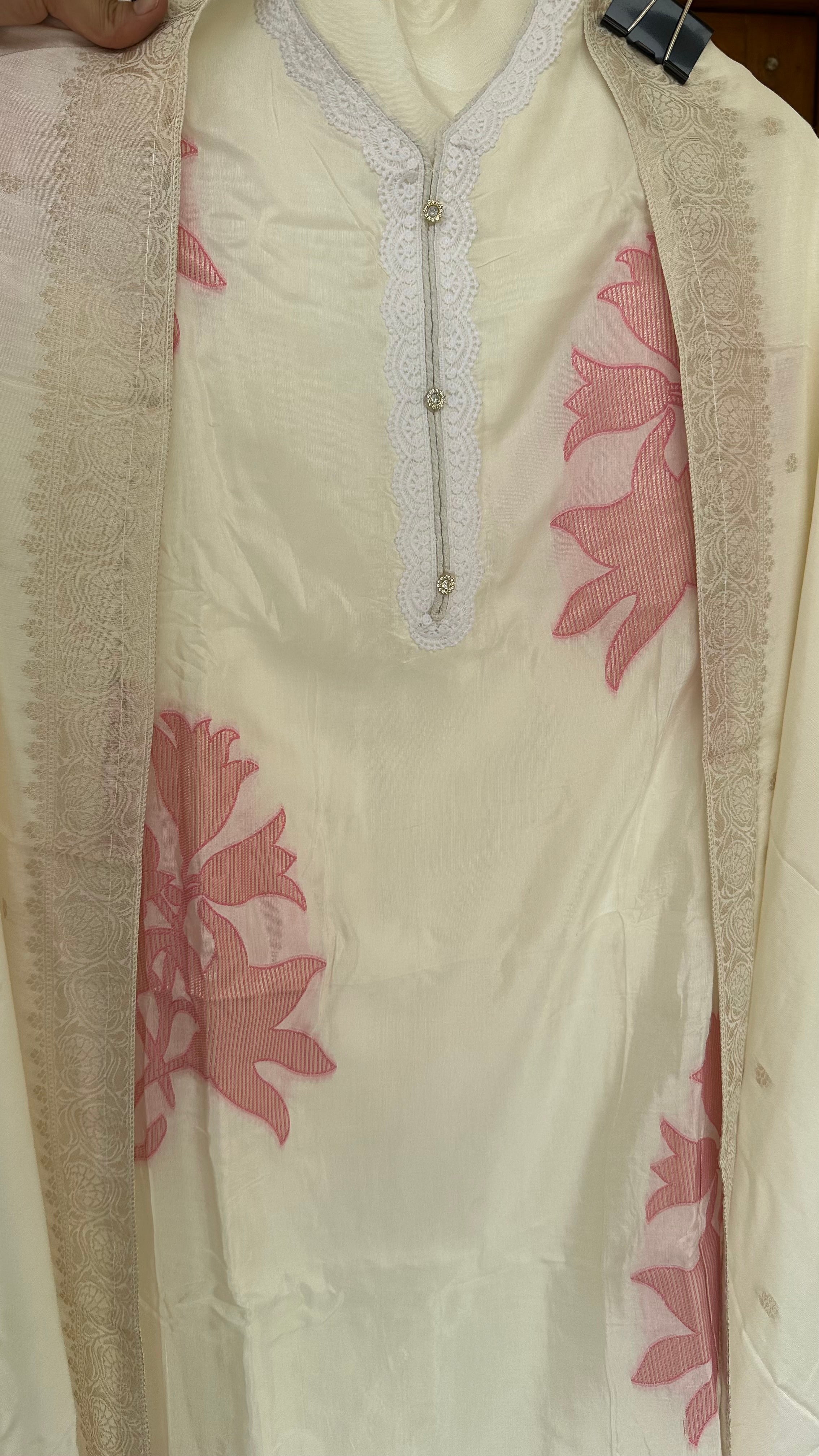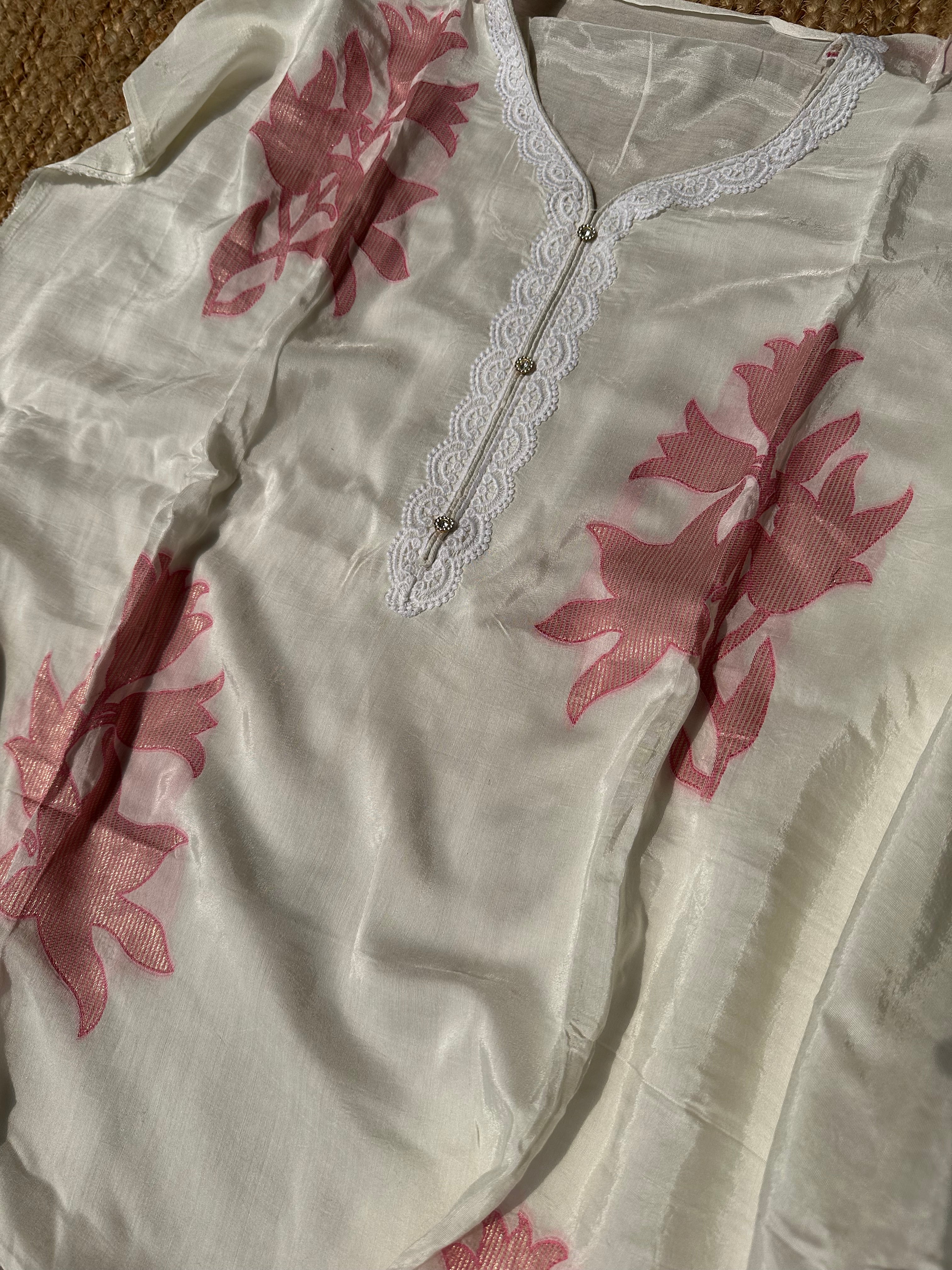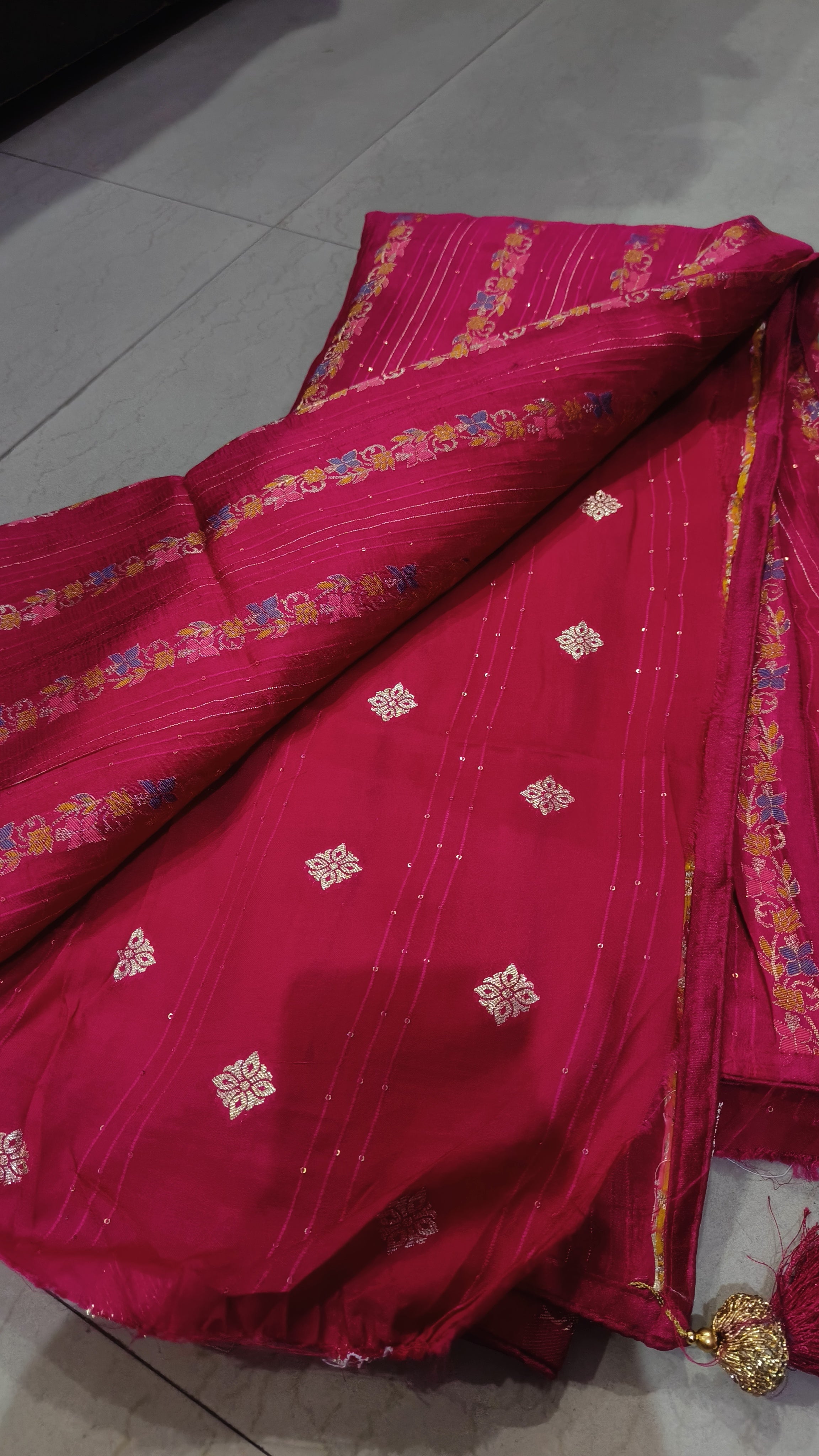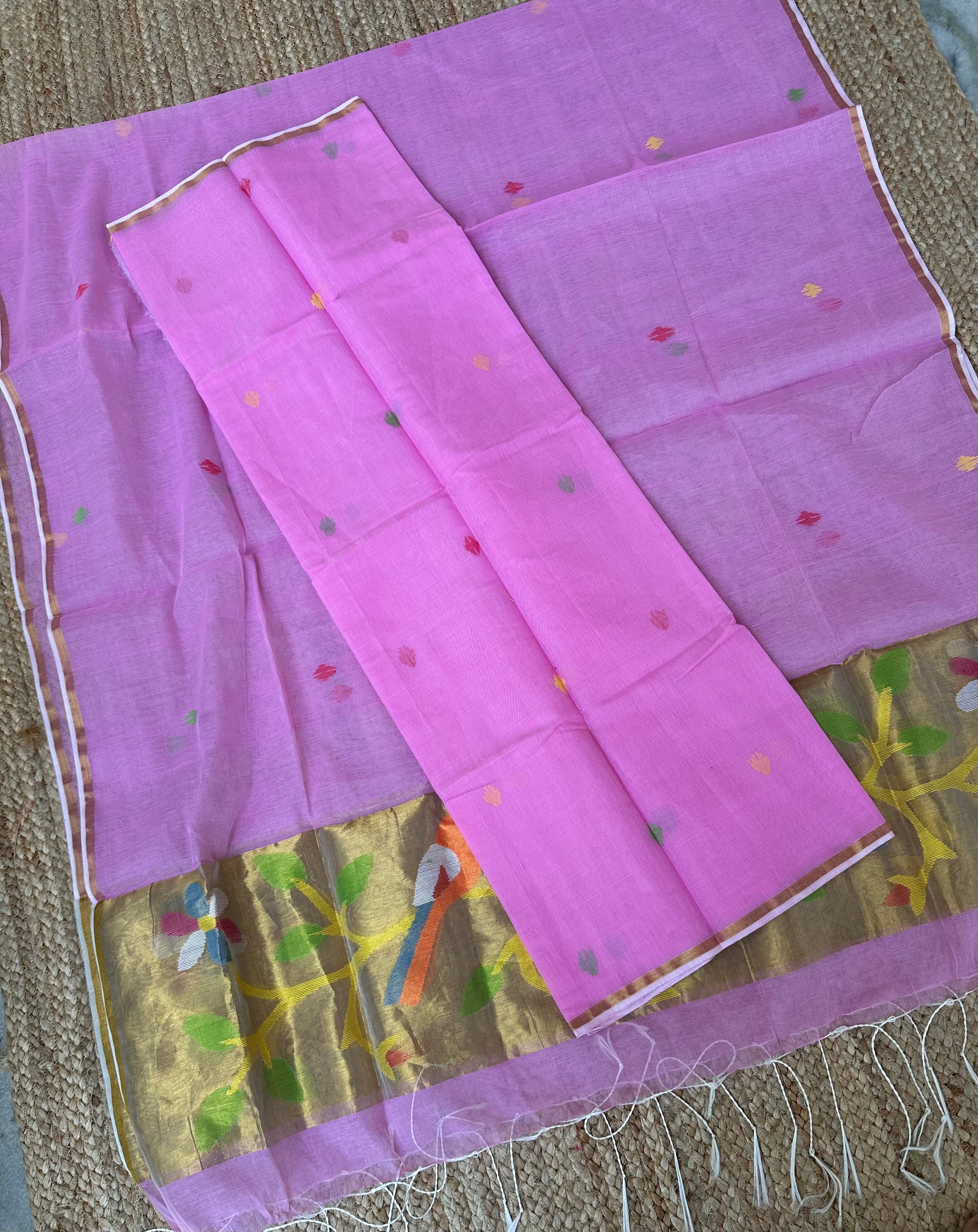 Rose Pink Mul Chanderi Embroidered Suit Set
