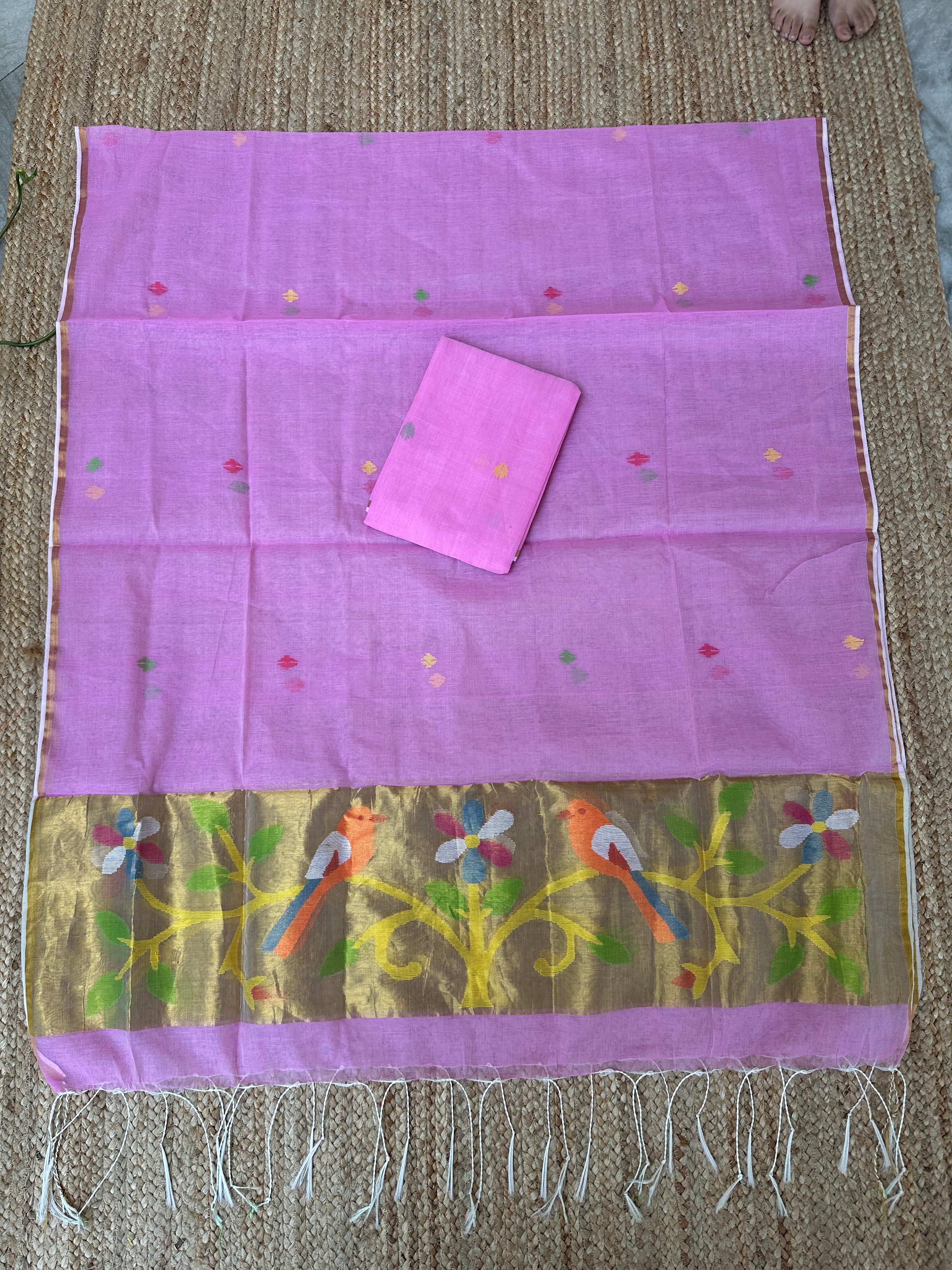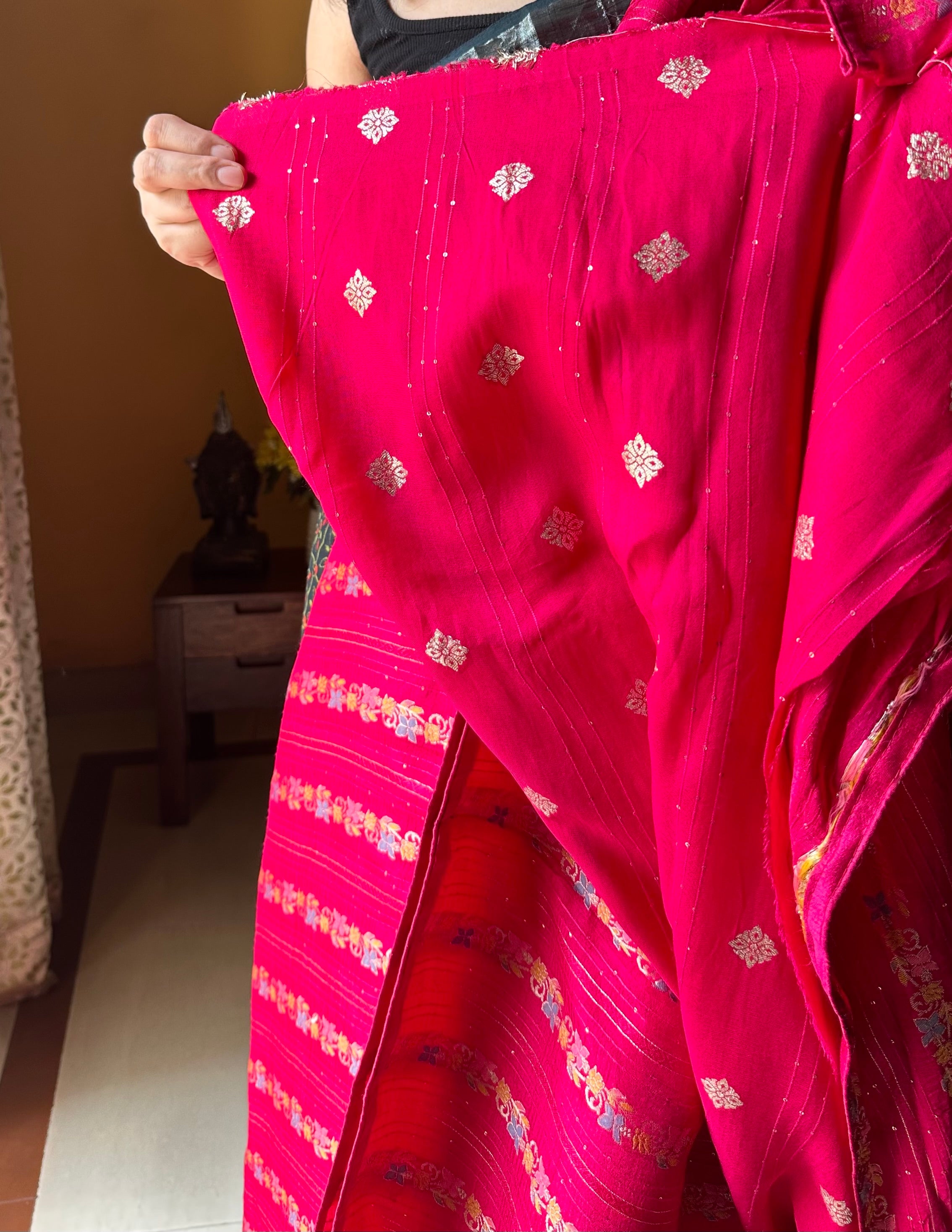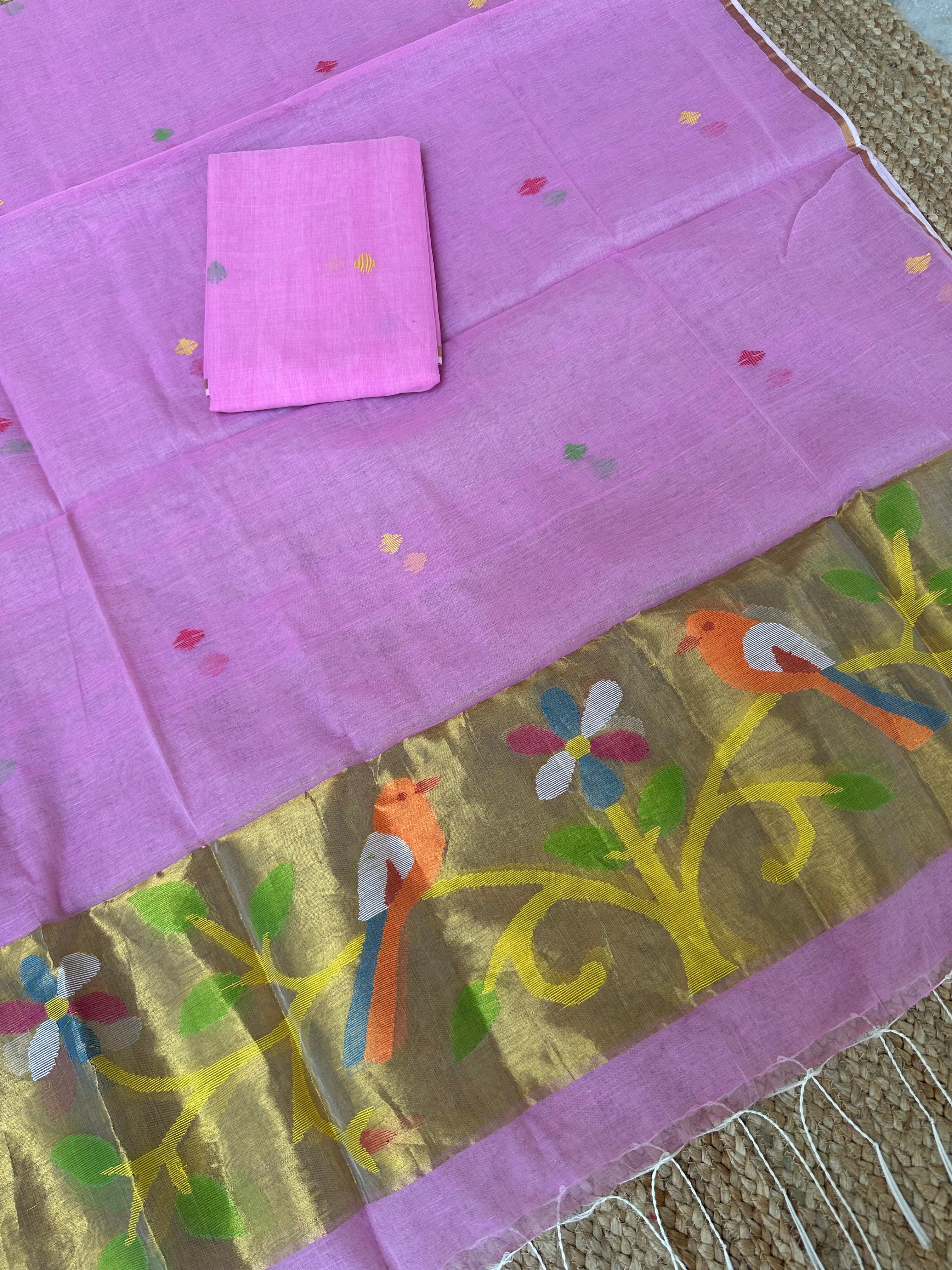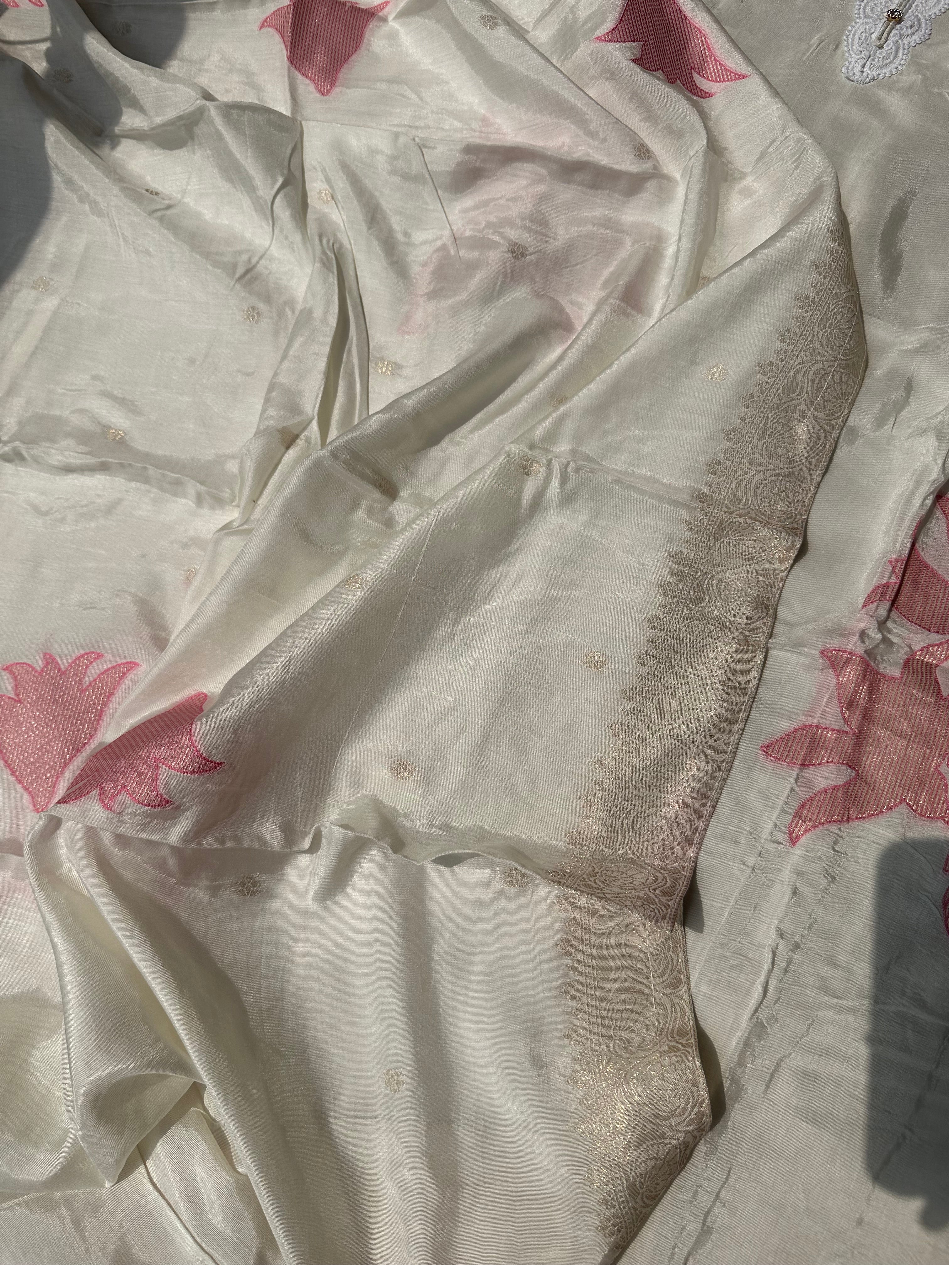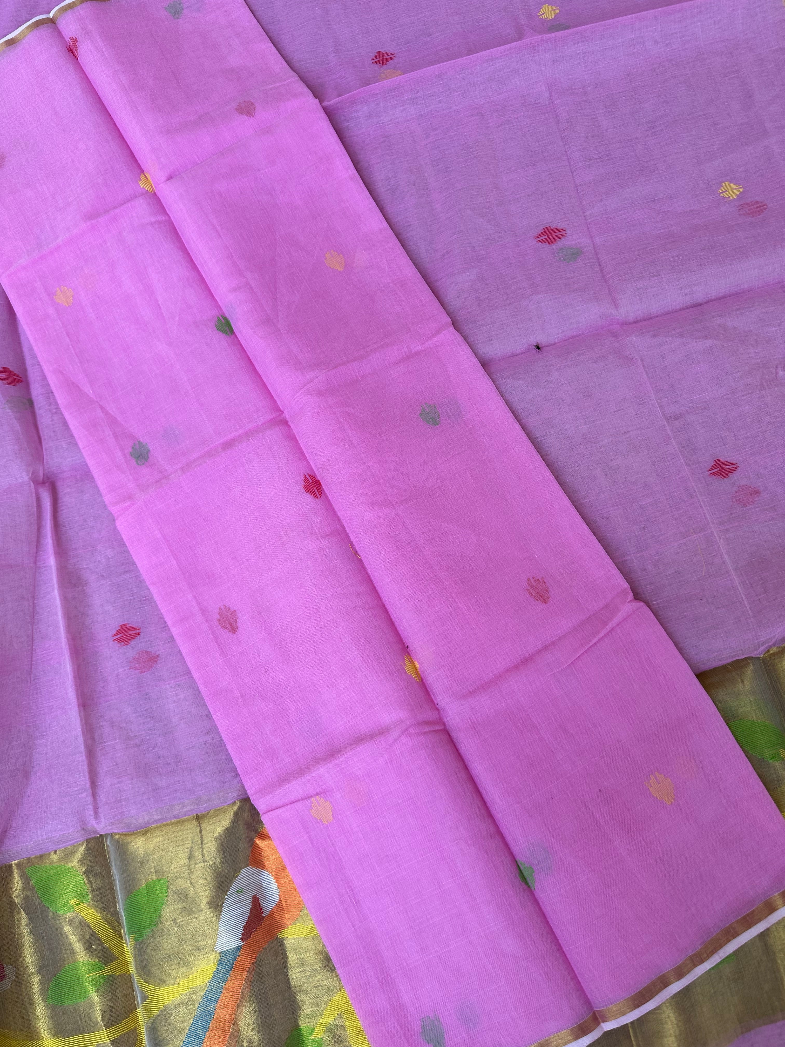 Rose Pink Mul Chanderi Embroidered Suit Set
