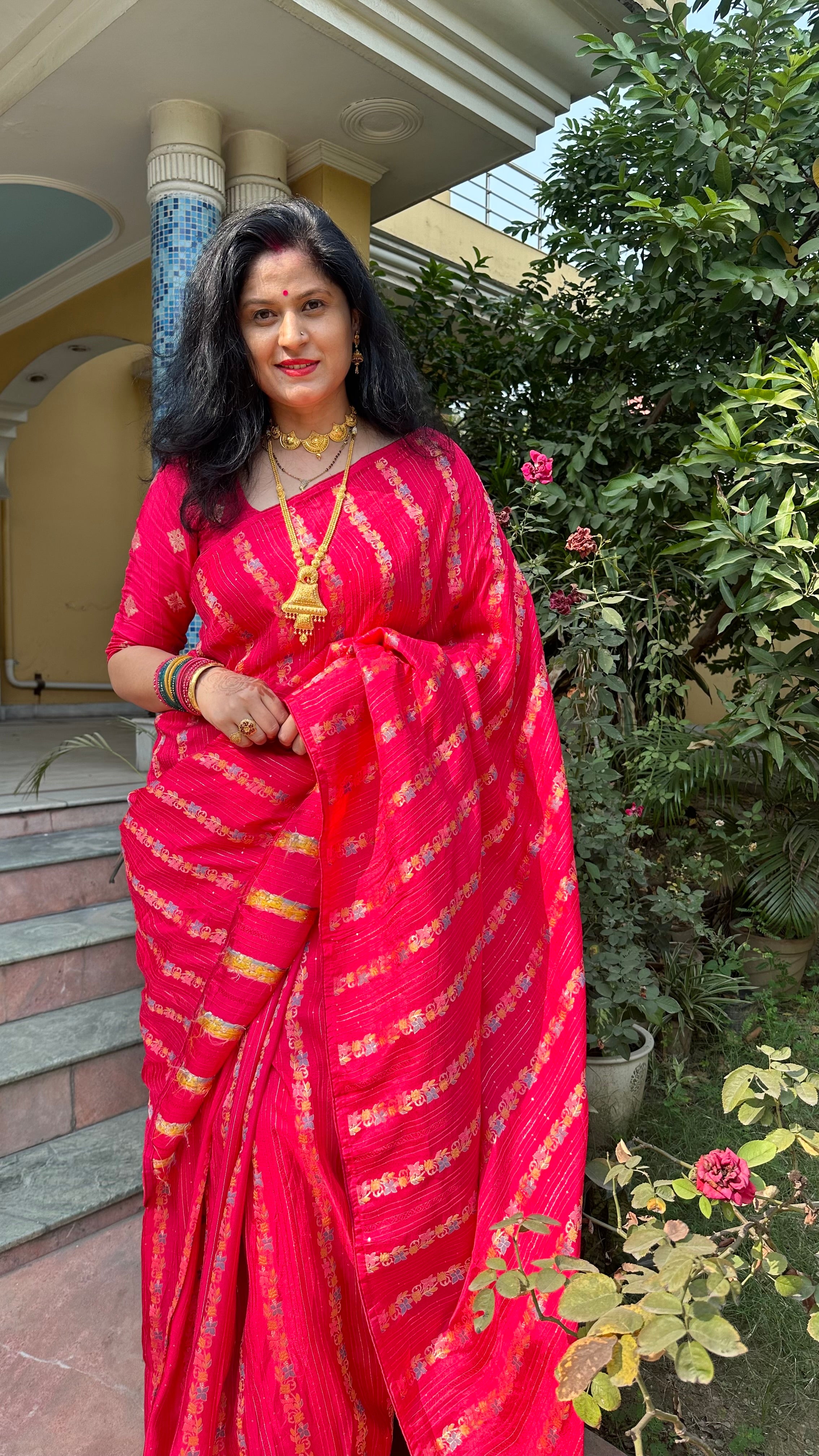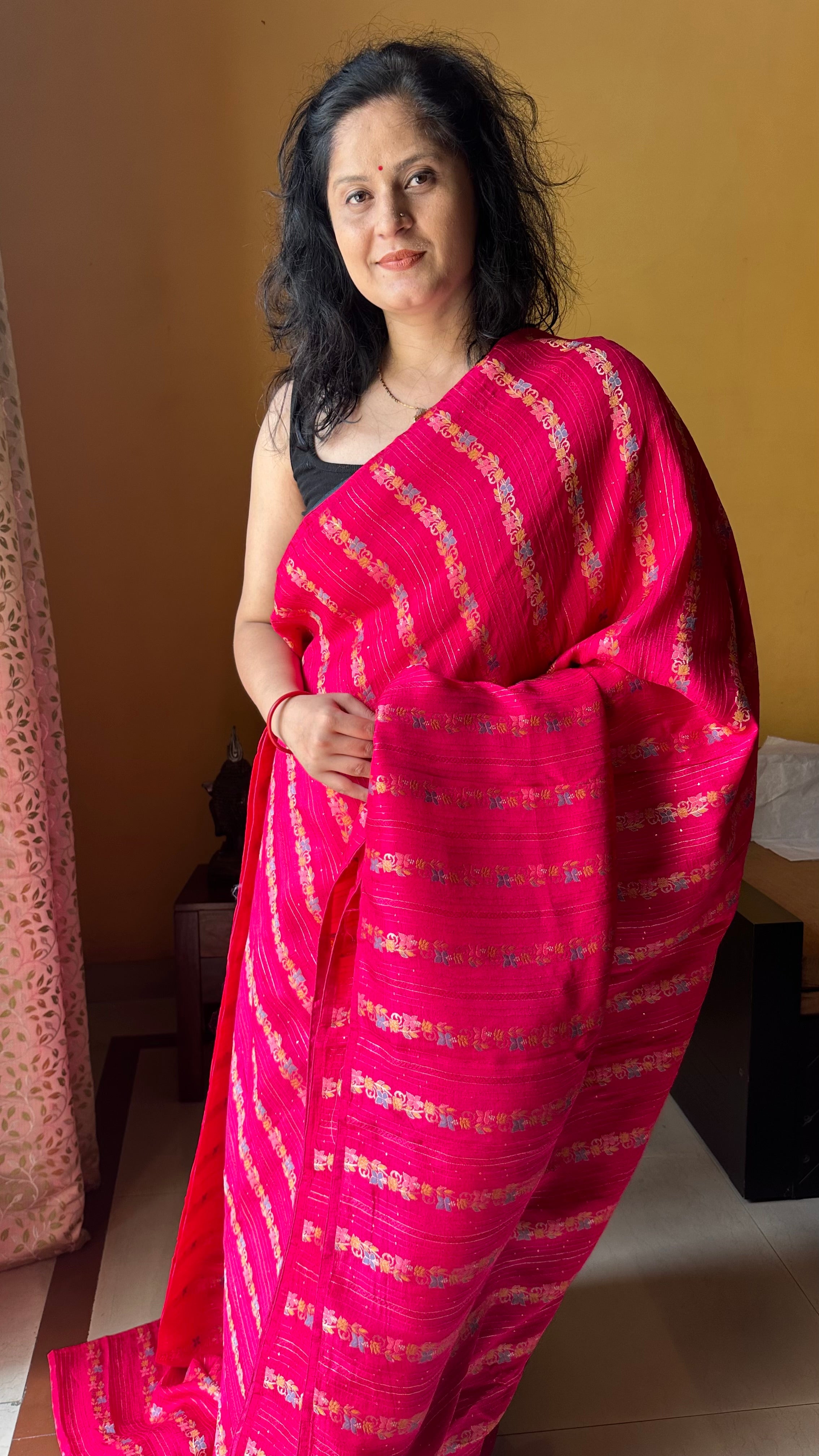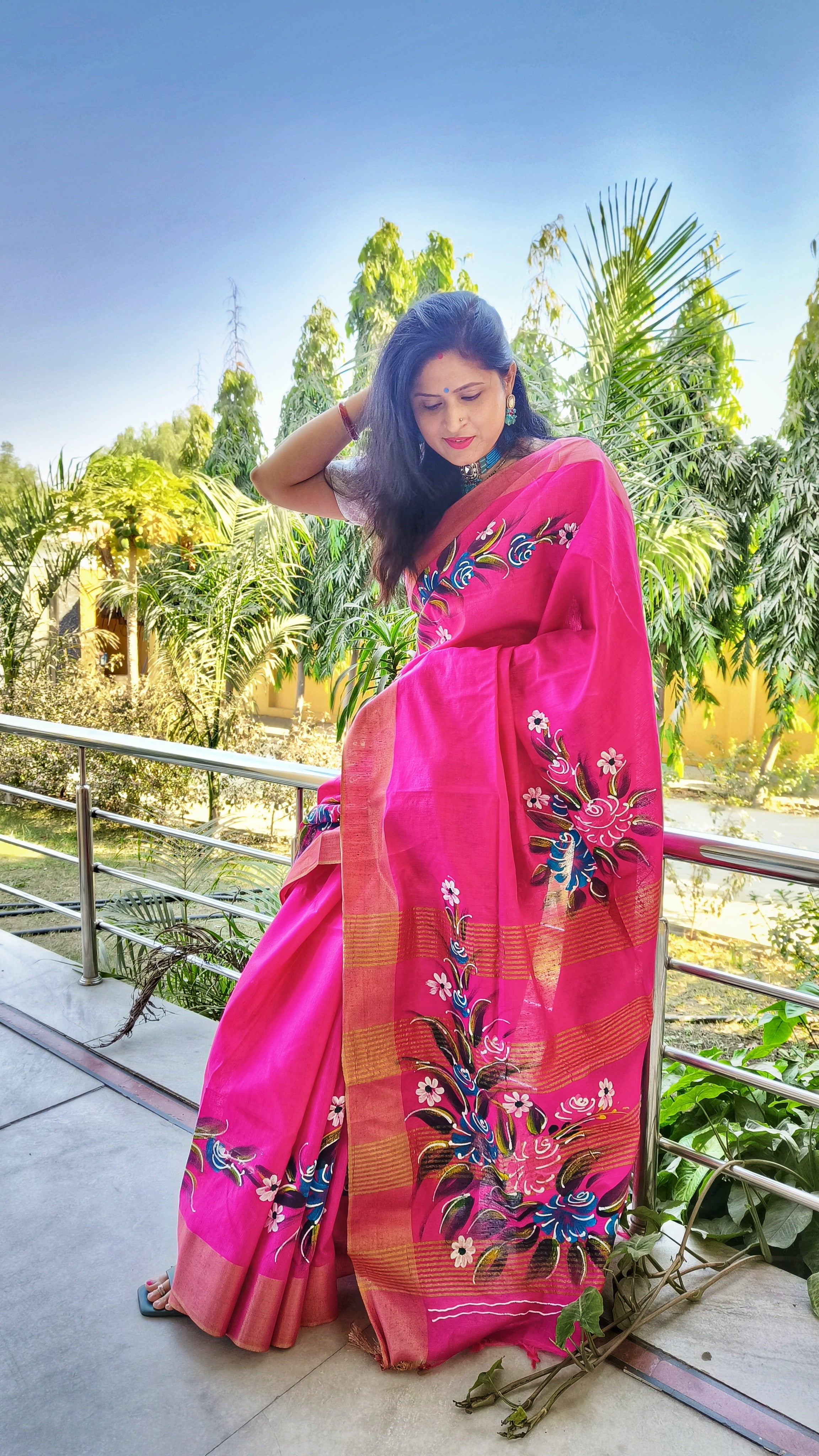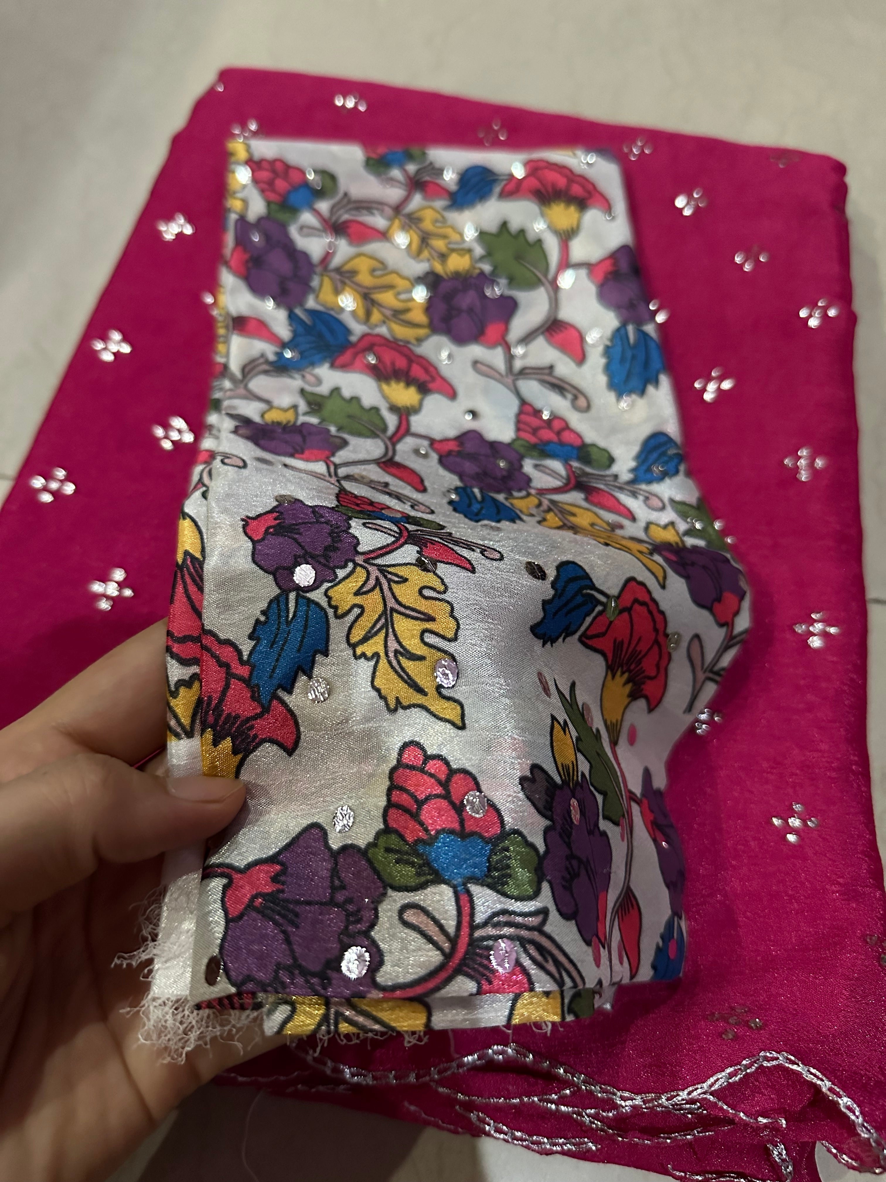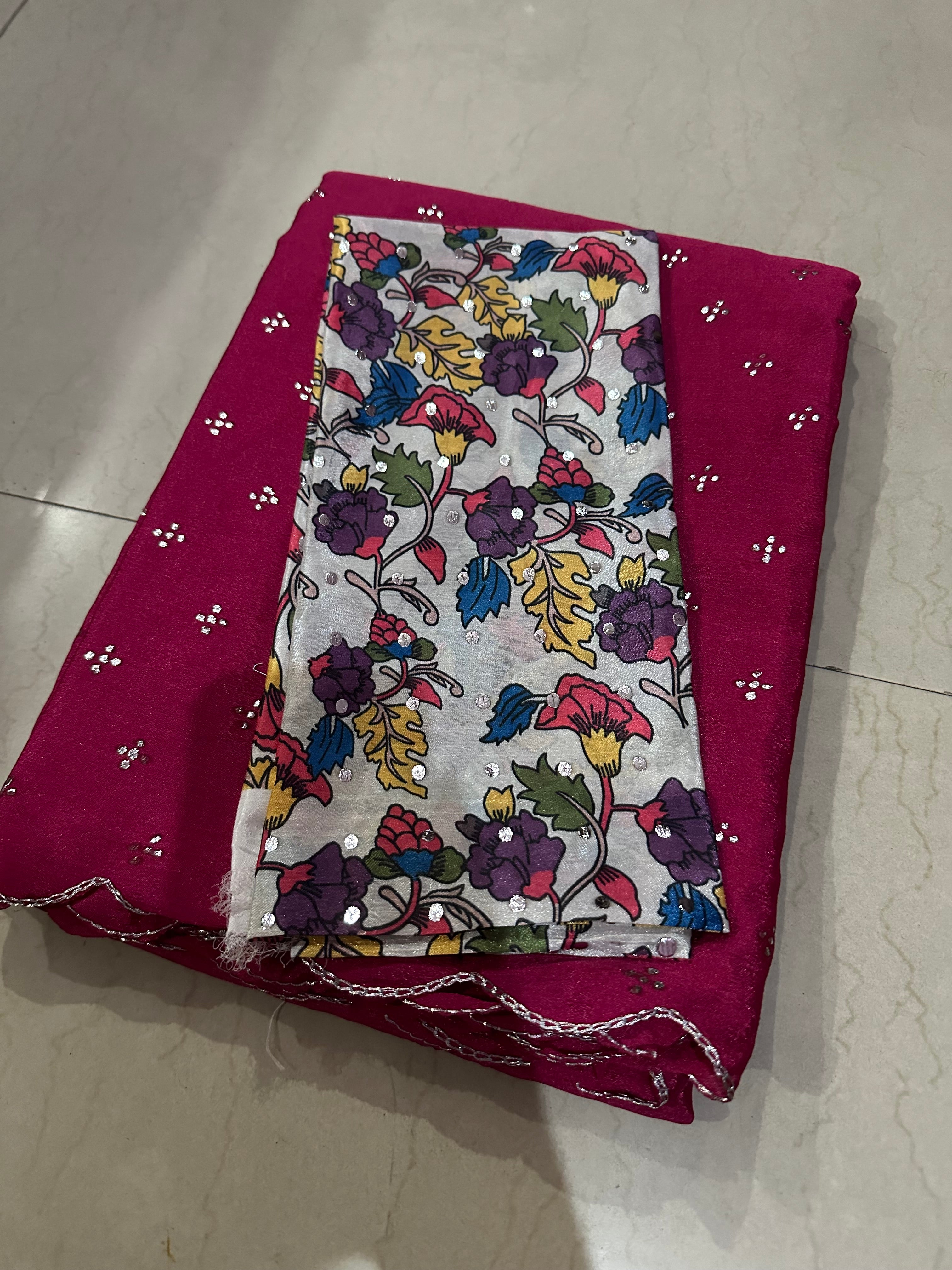 Rose Pink Mul Chanderi Embroidered Suit Set