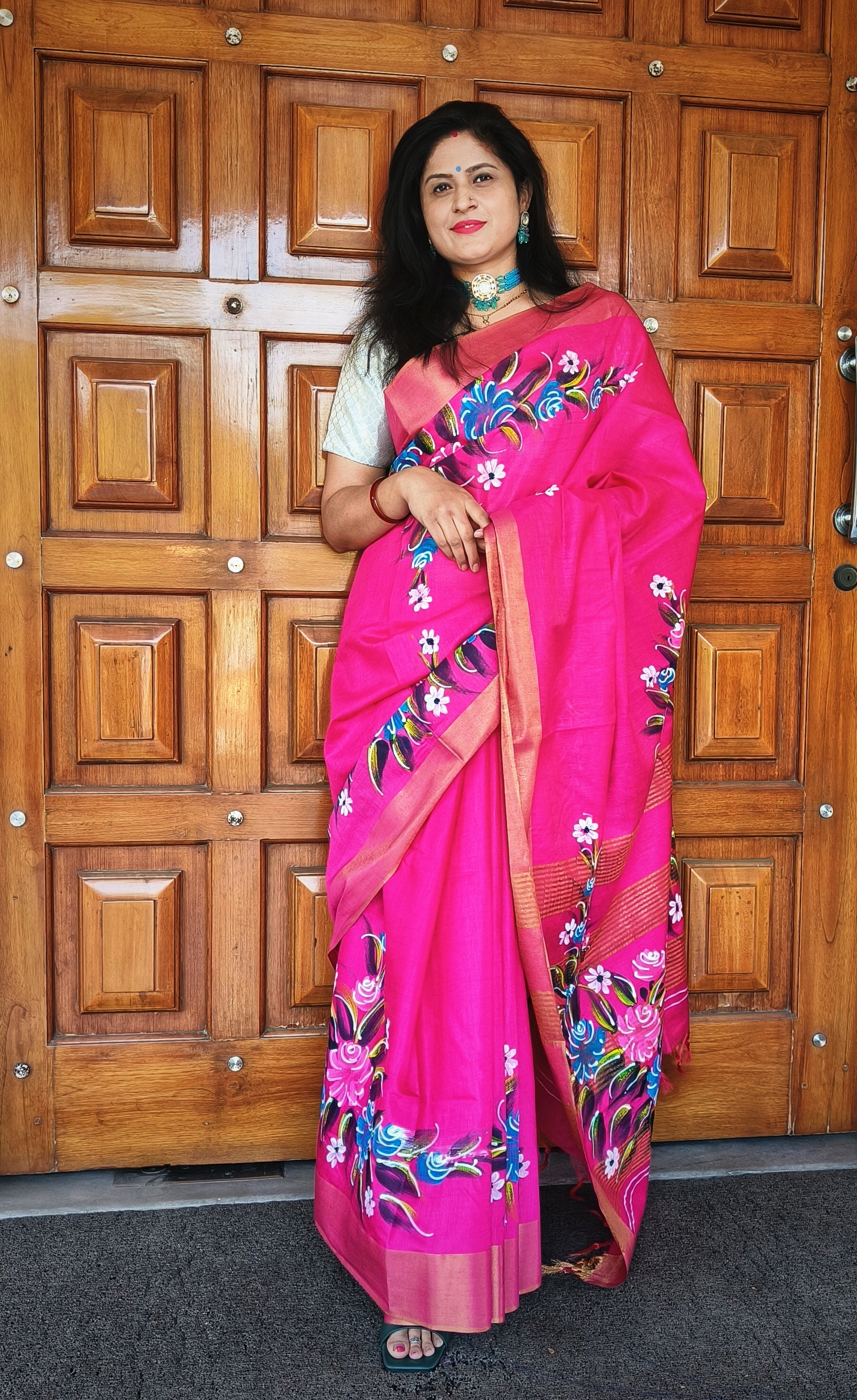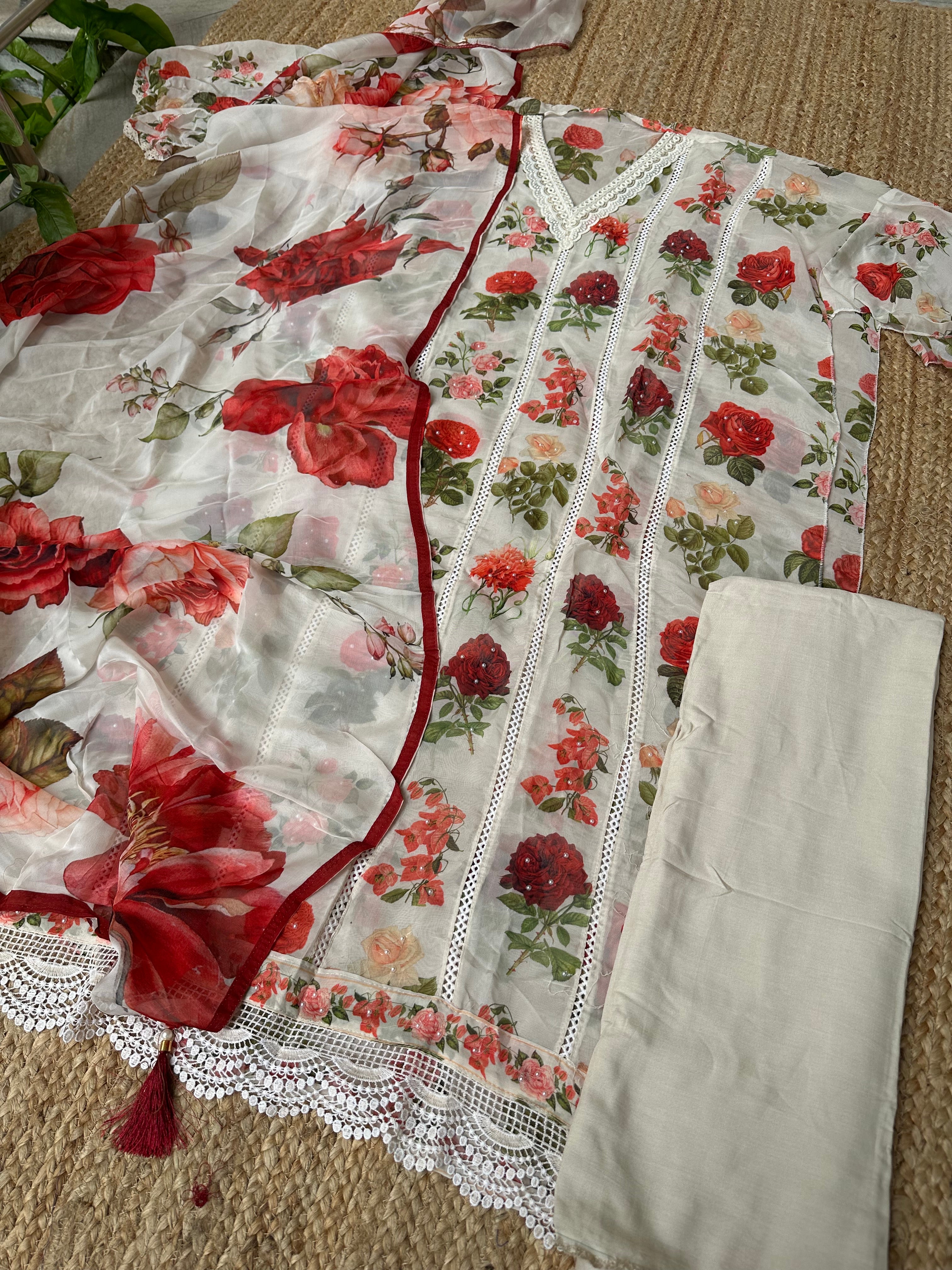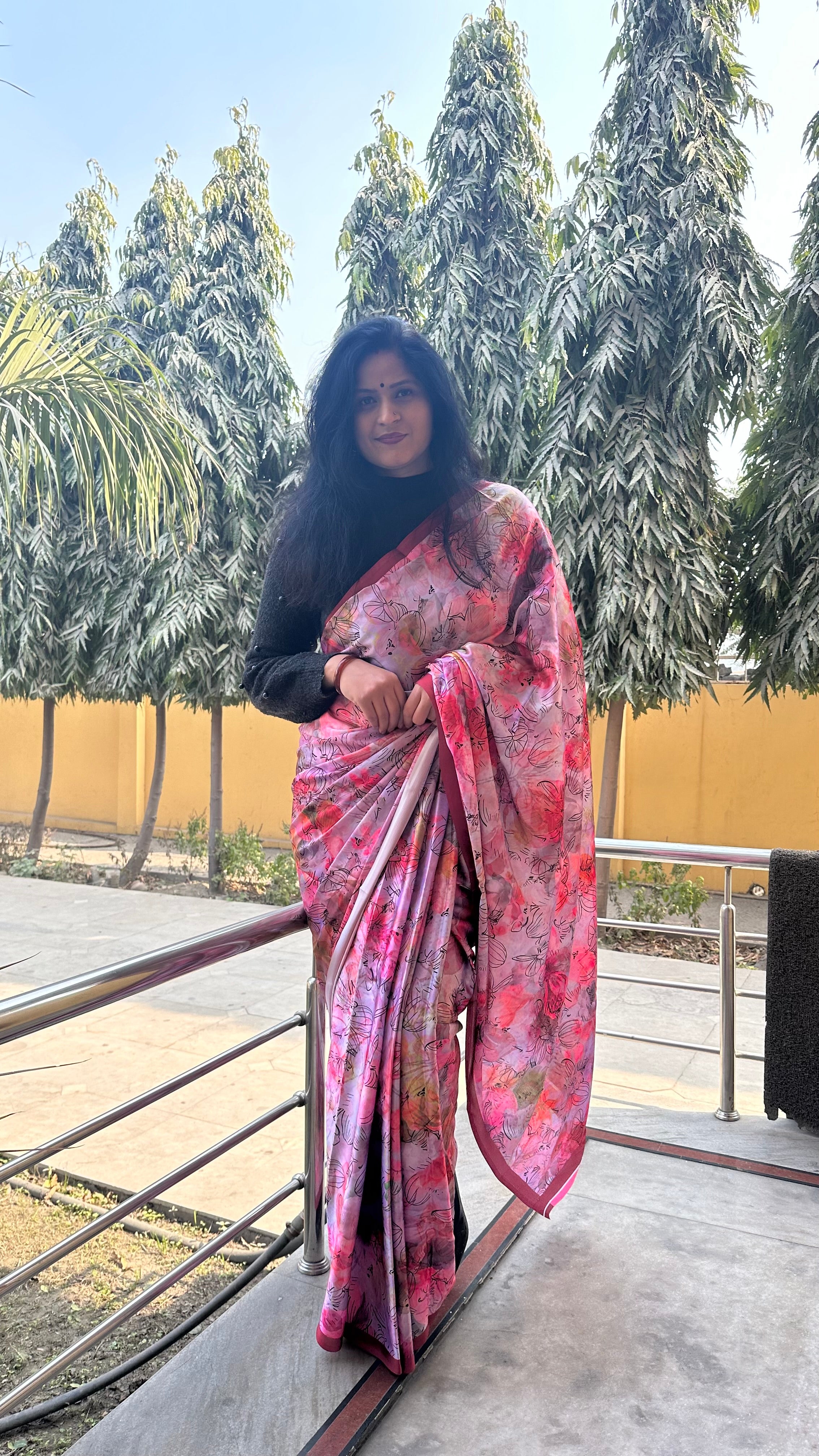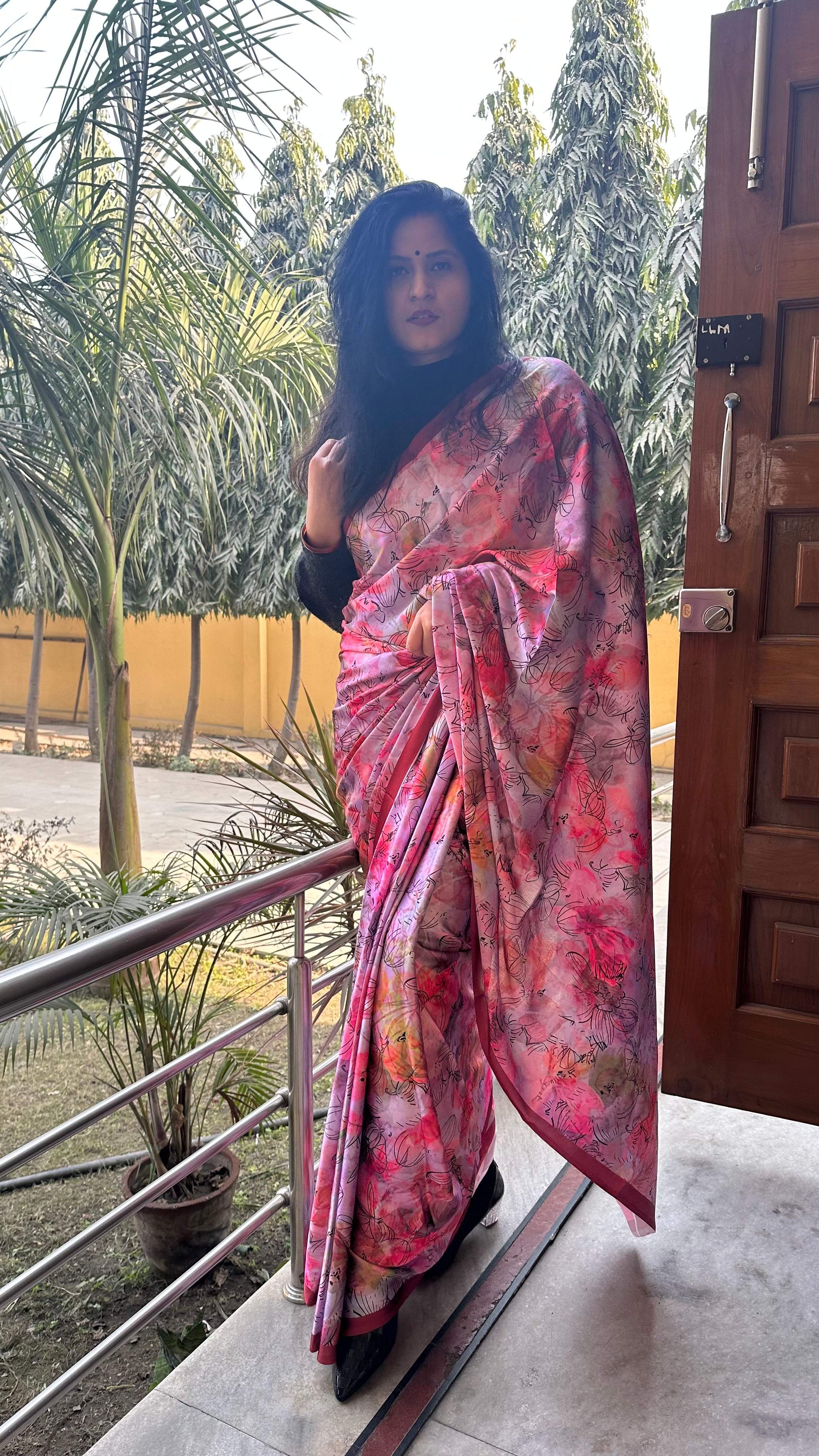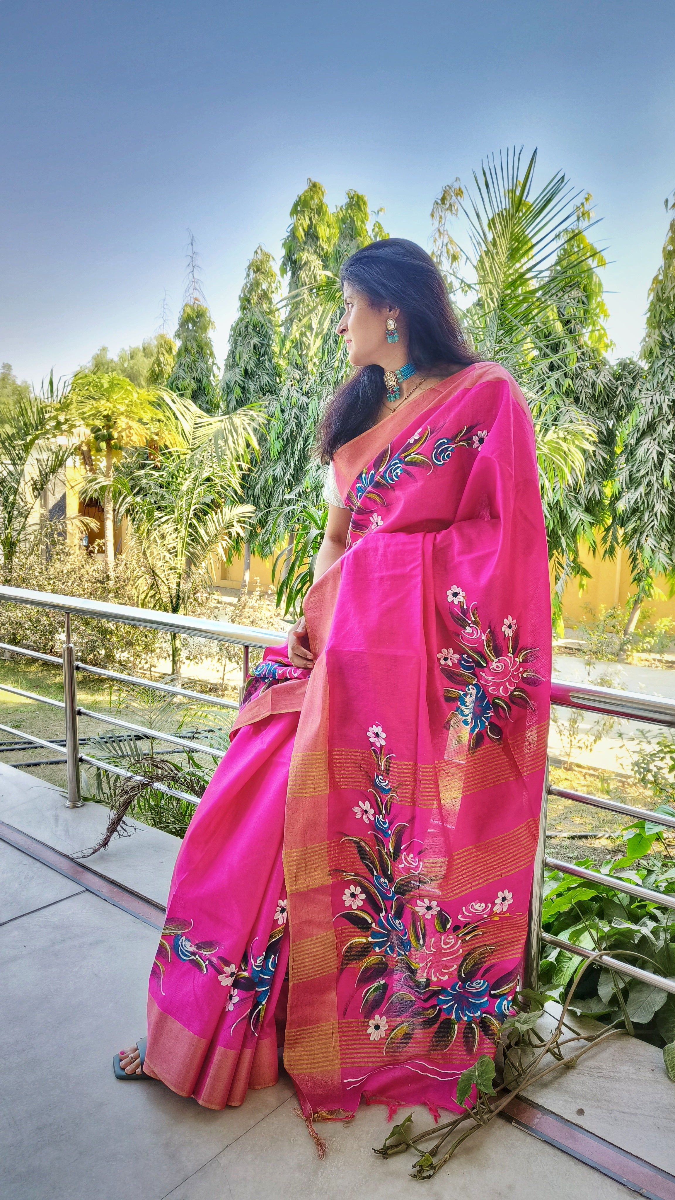 Rose Pink Mul Chanderi Embroidered Suit Set