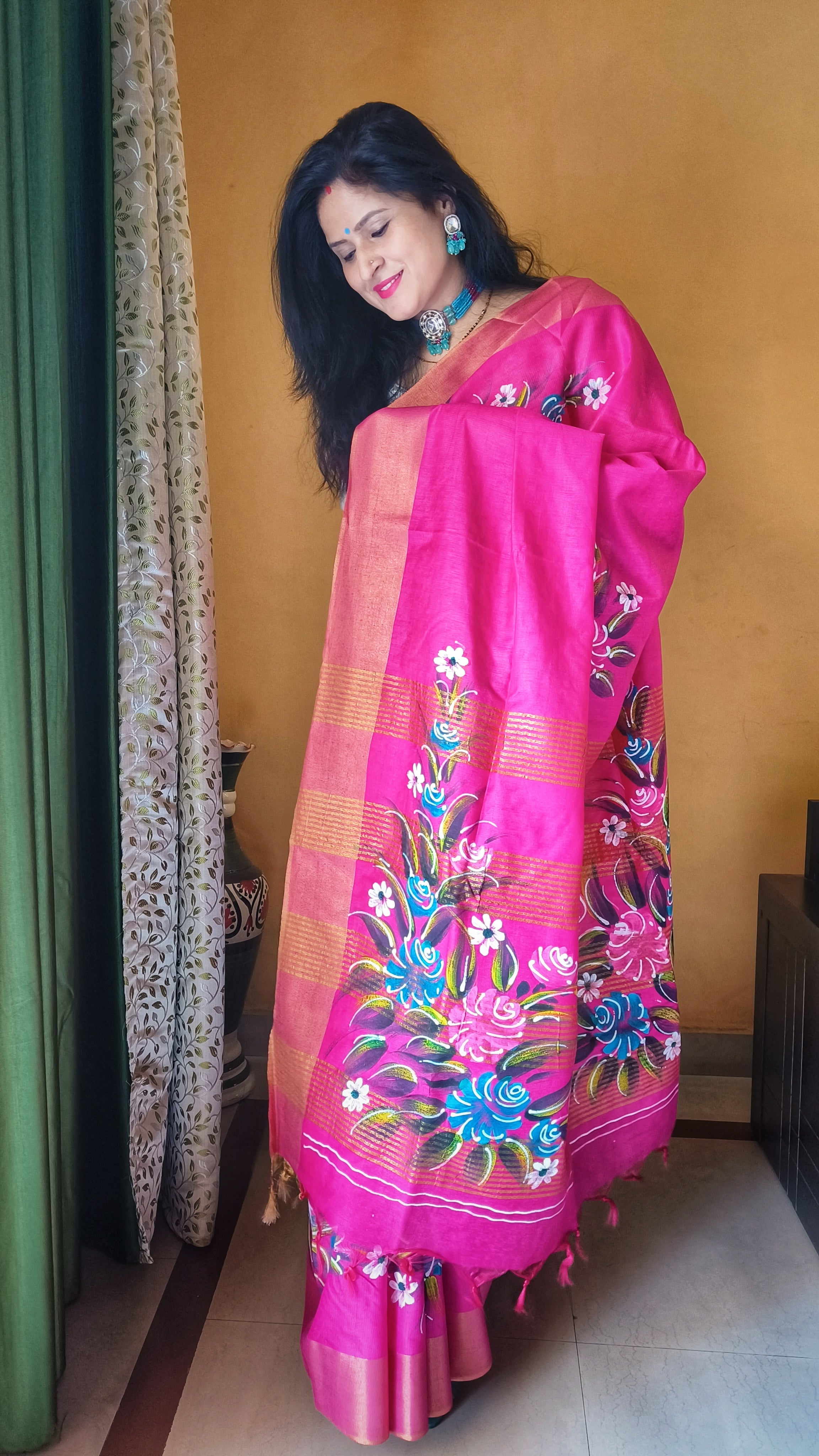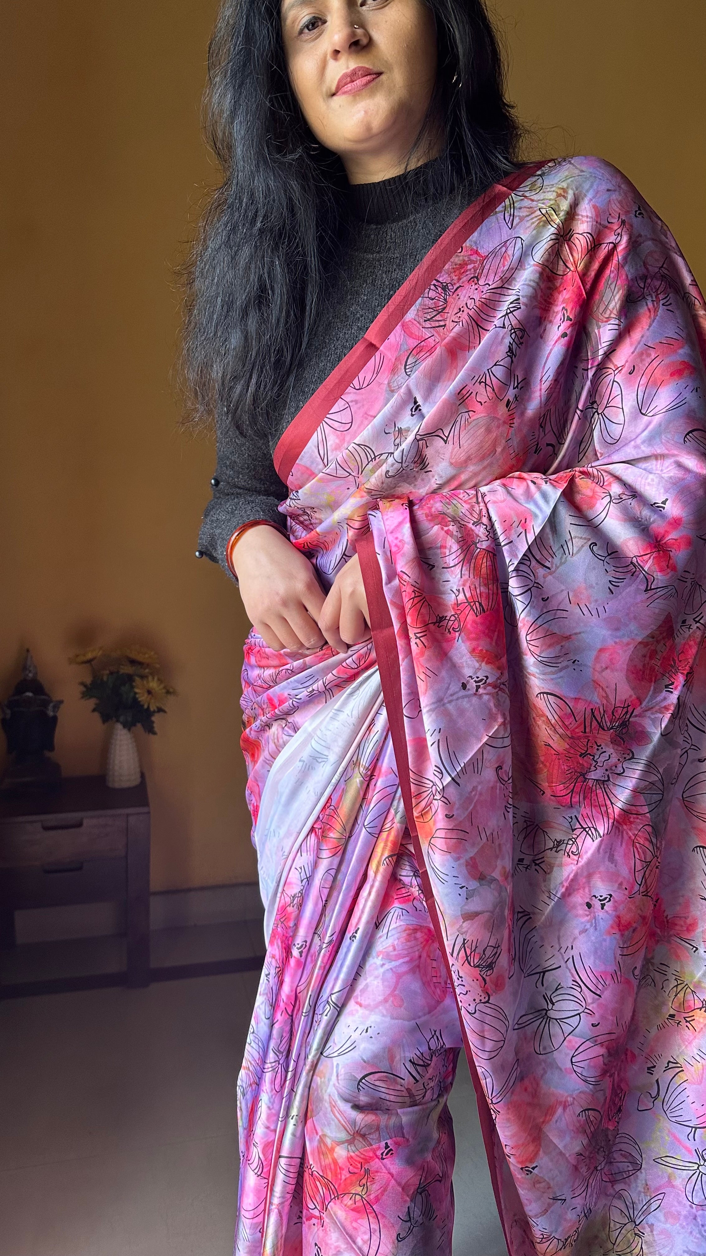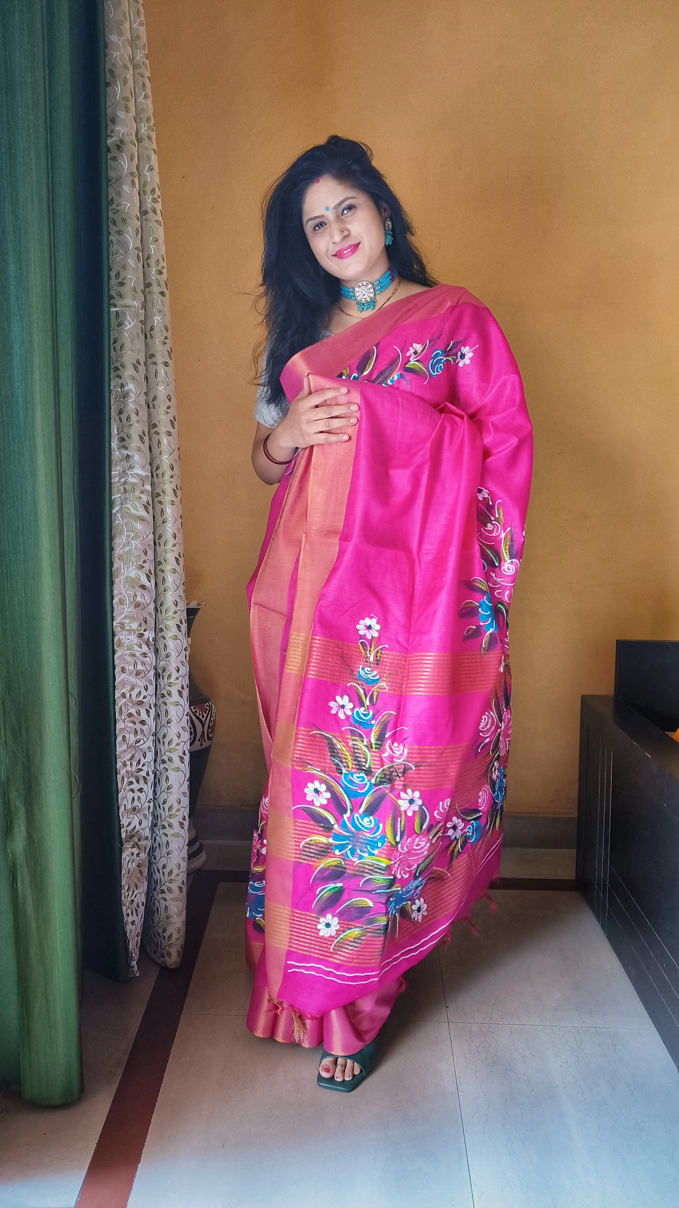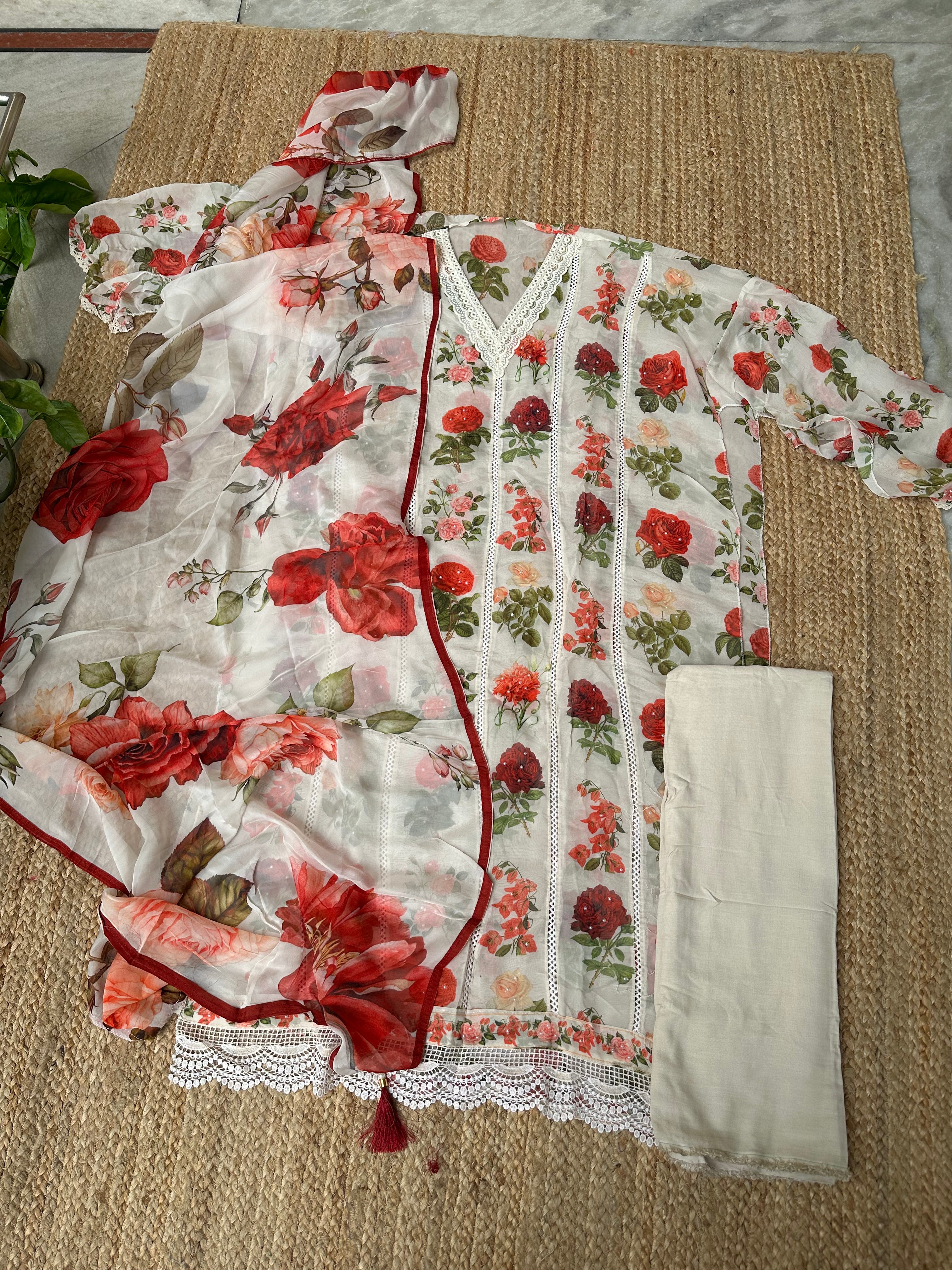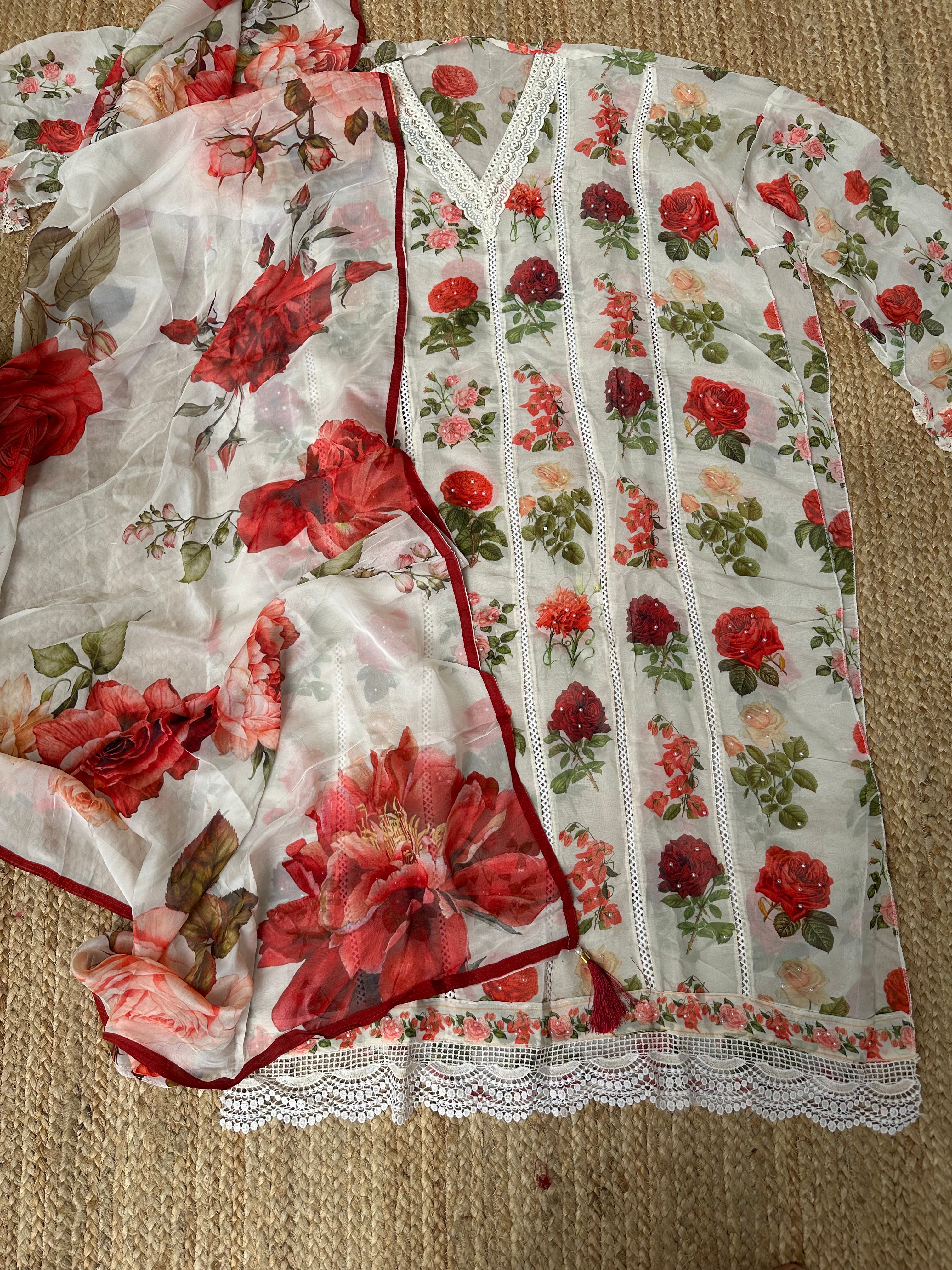 Rose Pink Mul Chanderi Embroidered Suit Set