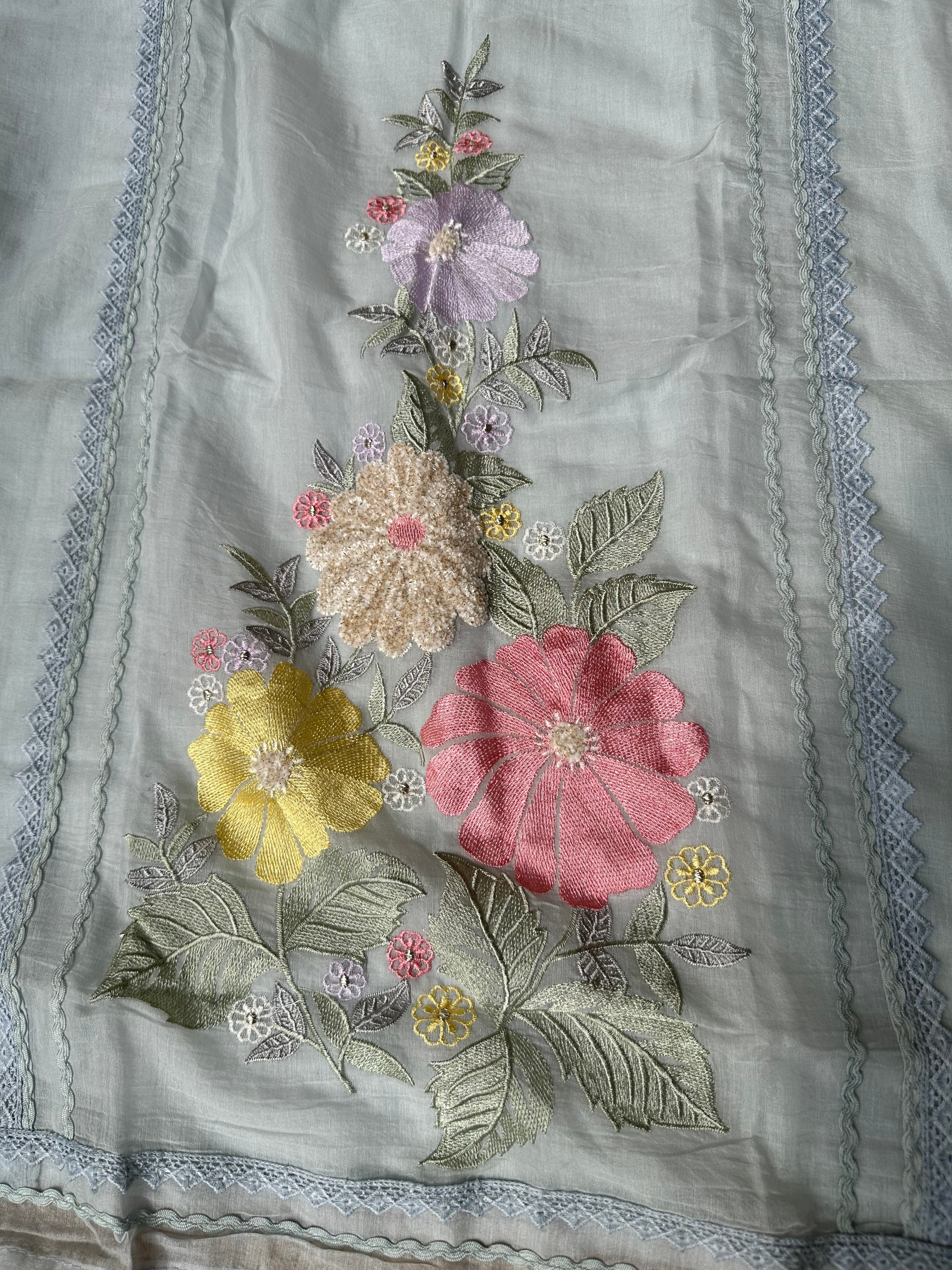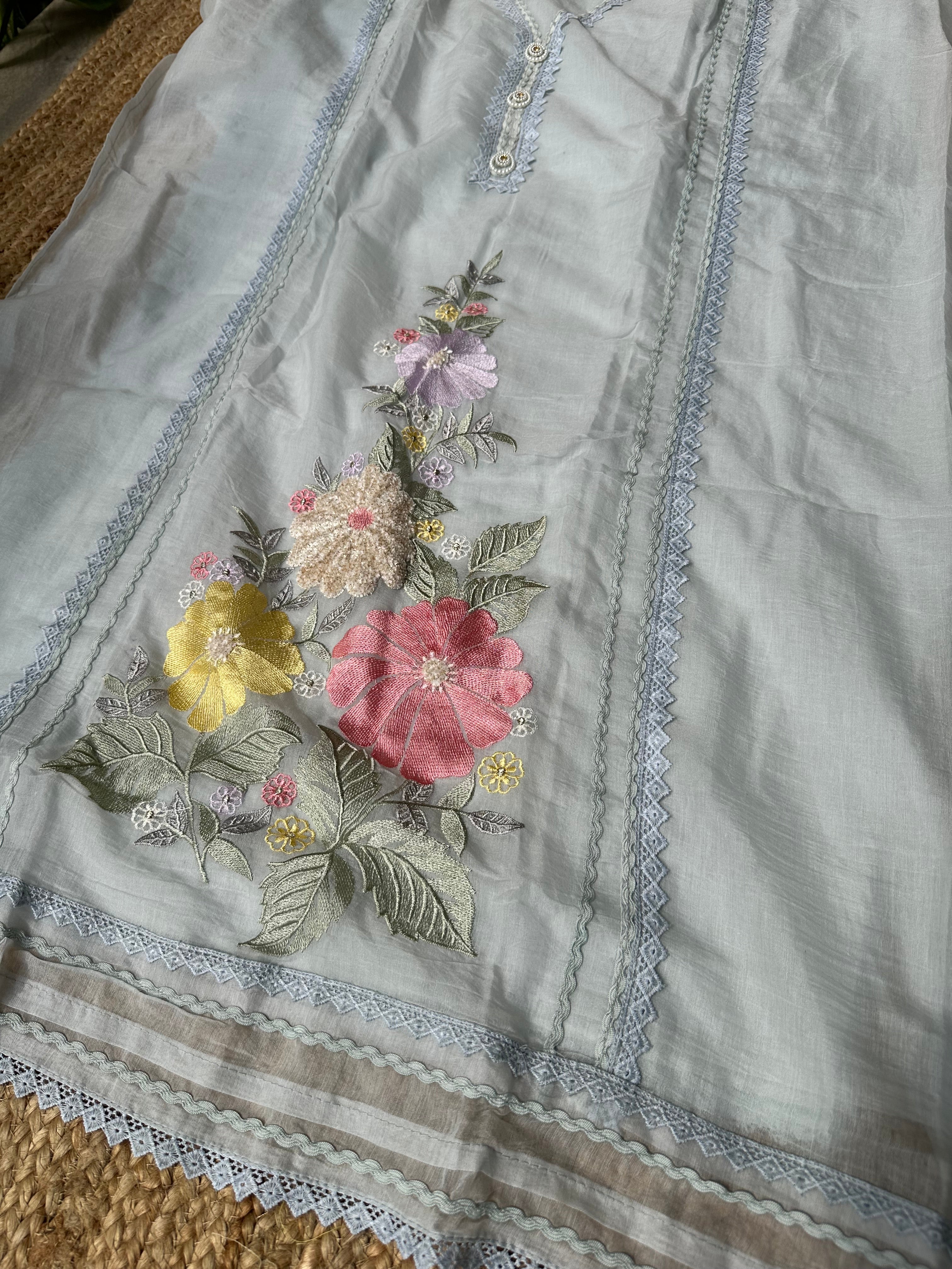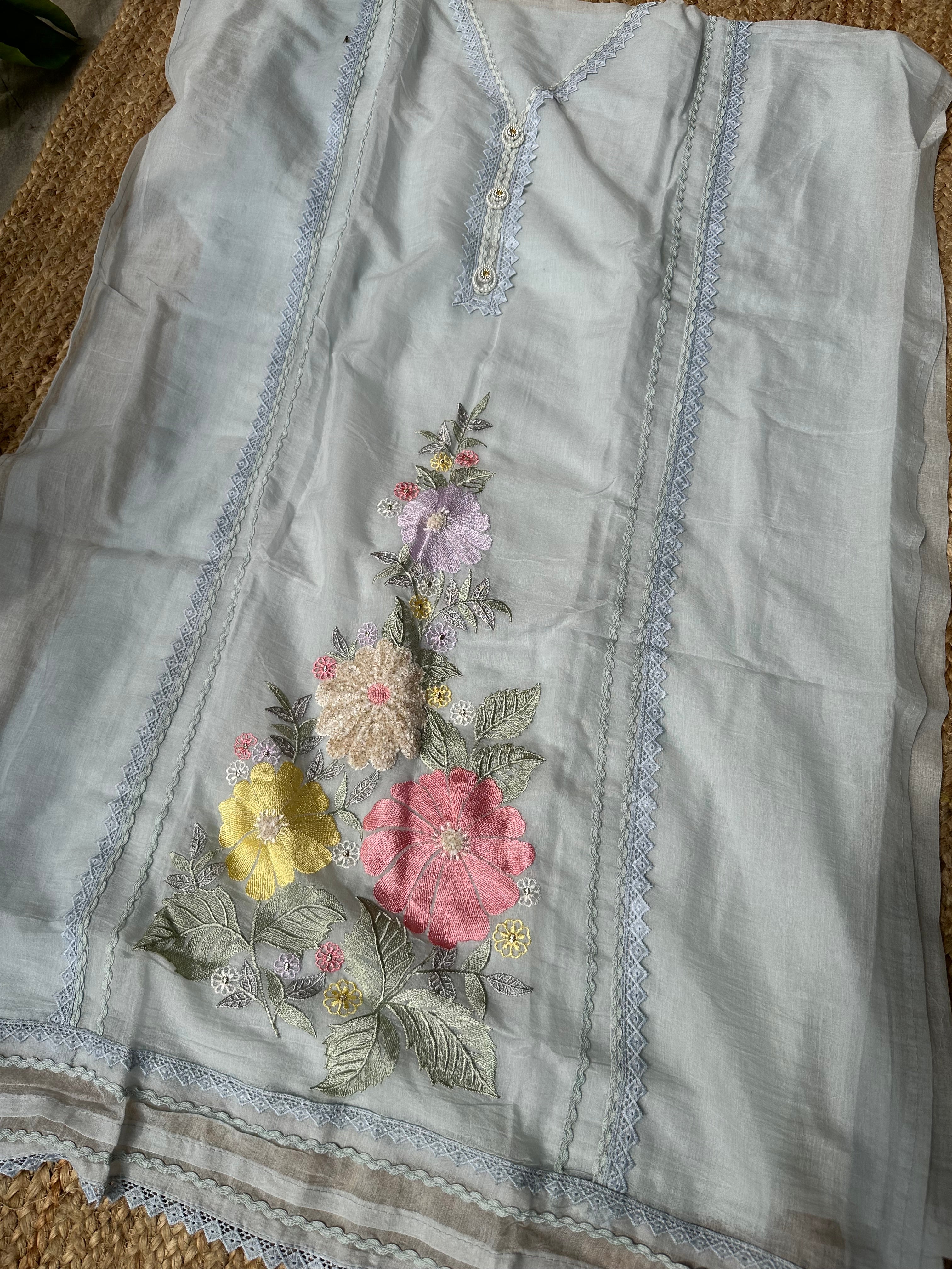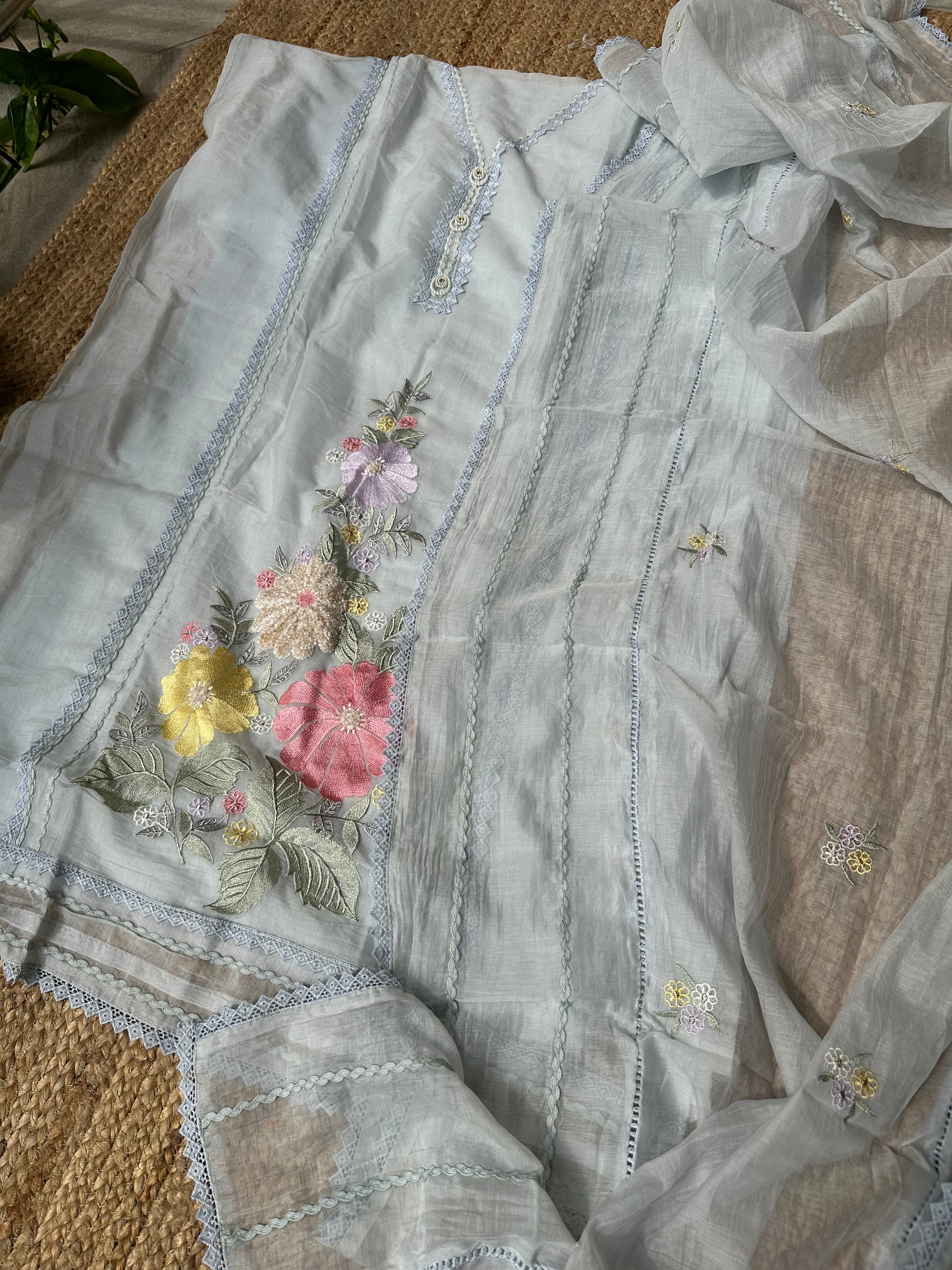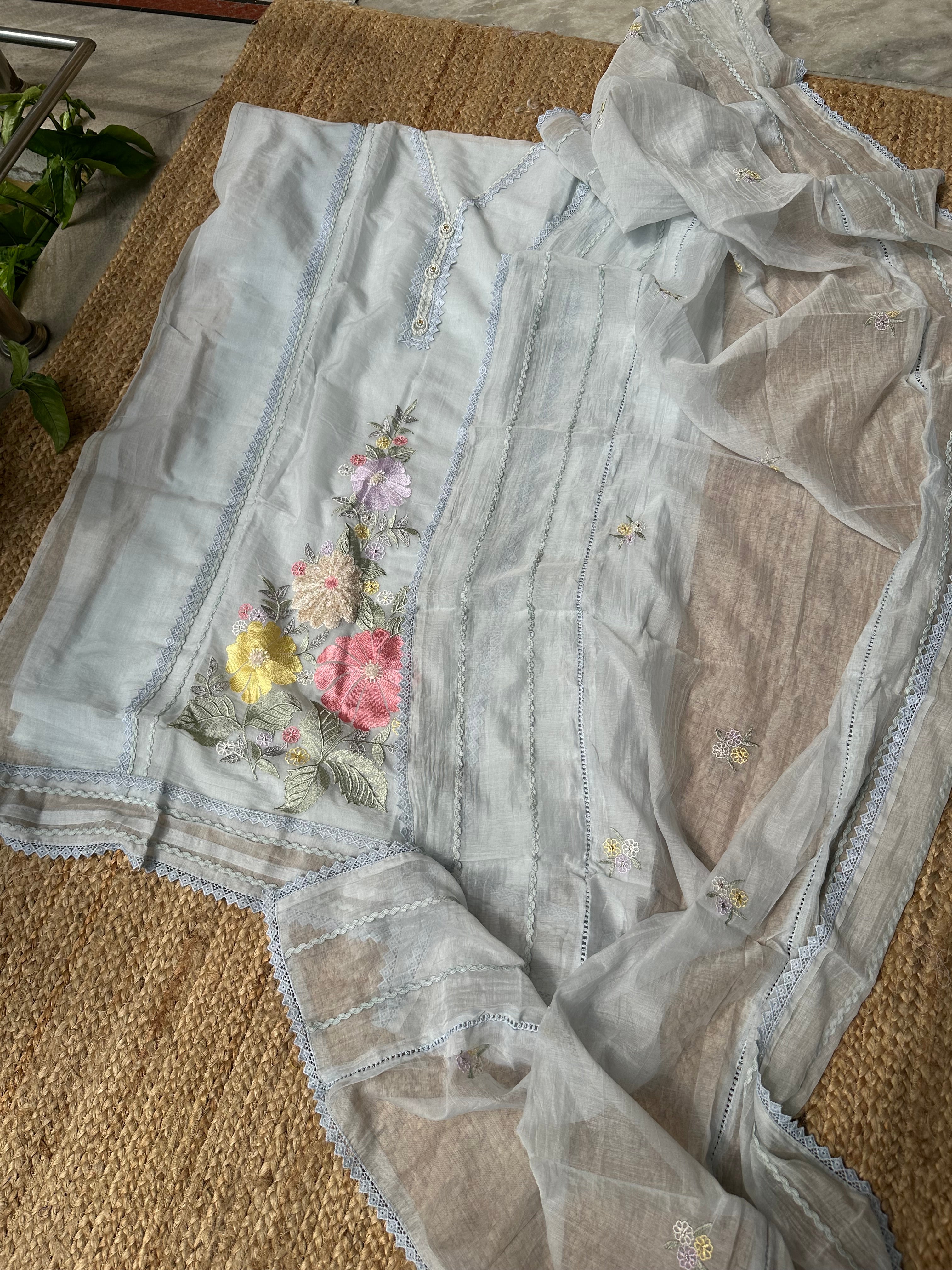 Powder Blue Mul Chanderi Embroidered Suit Set