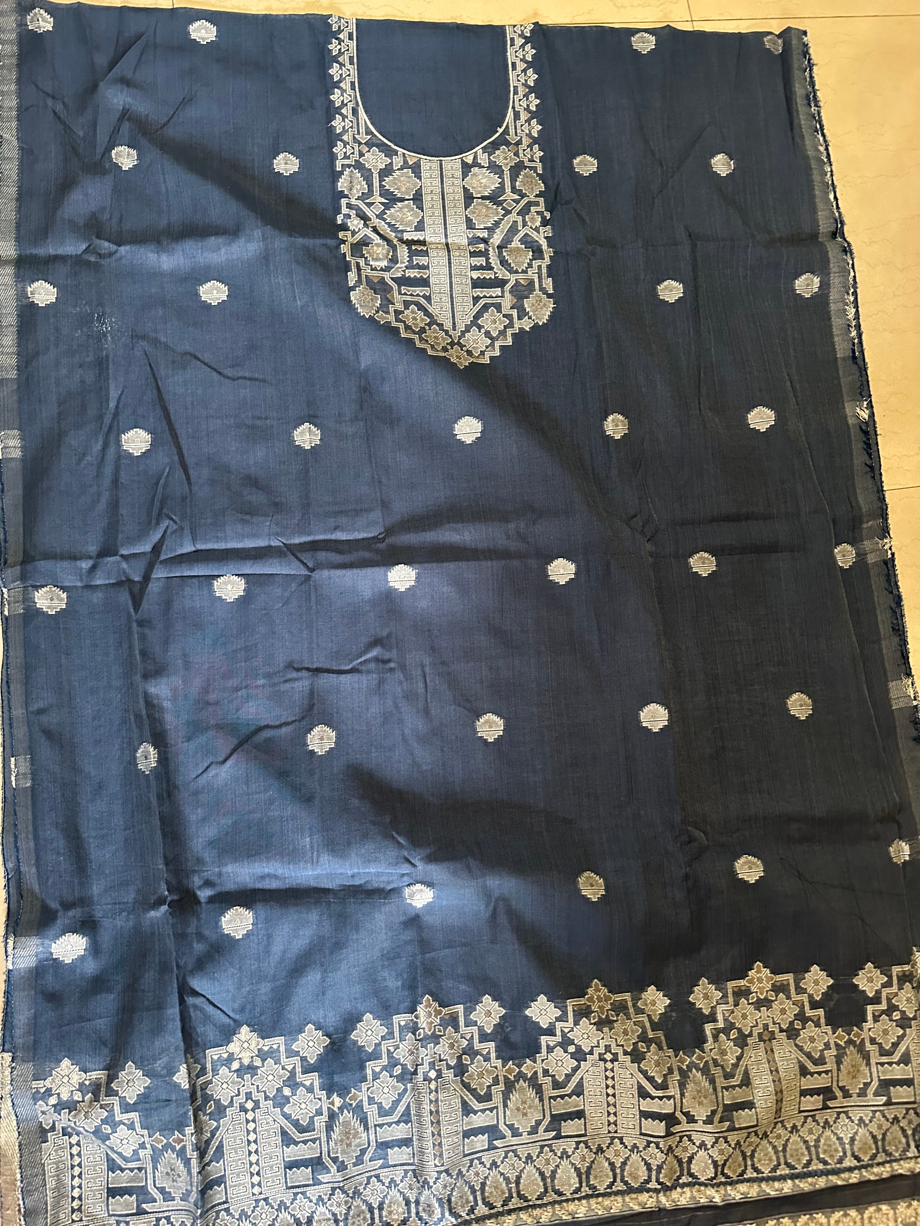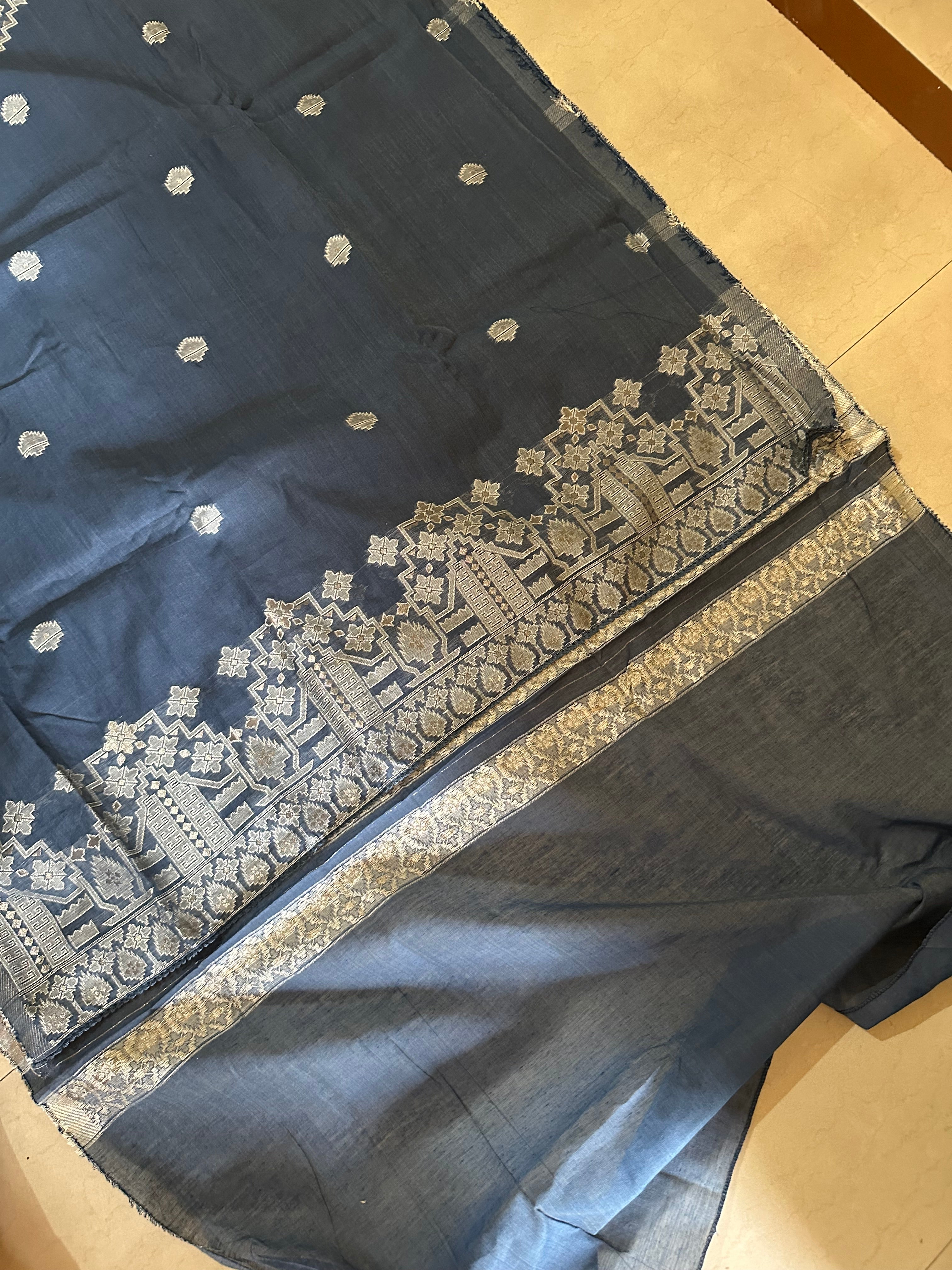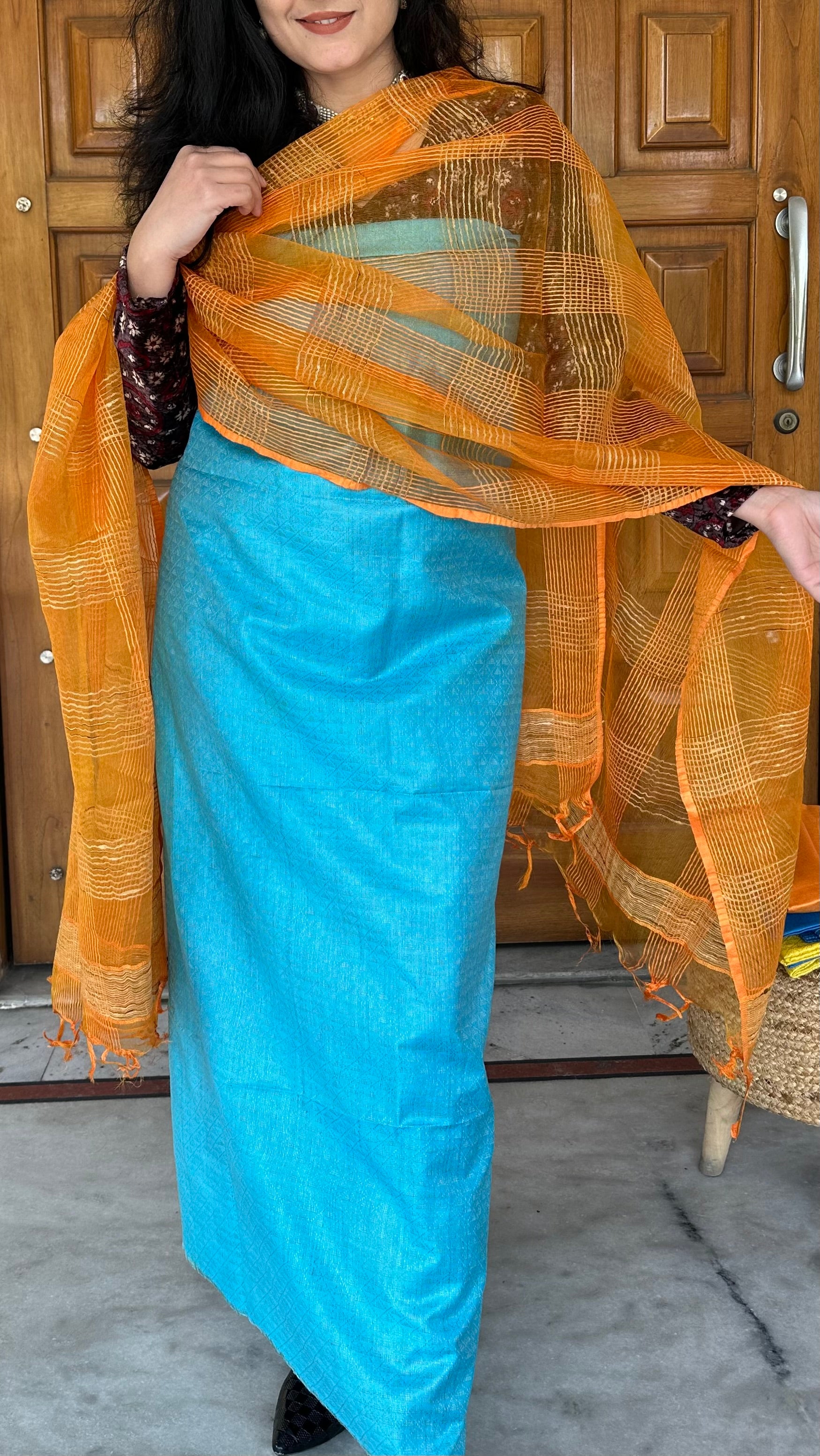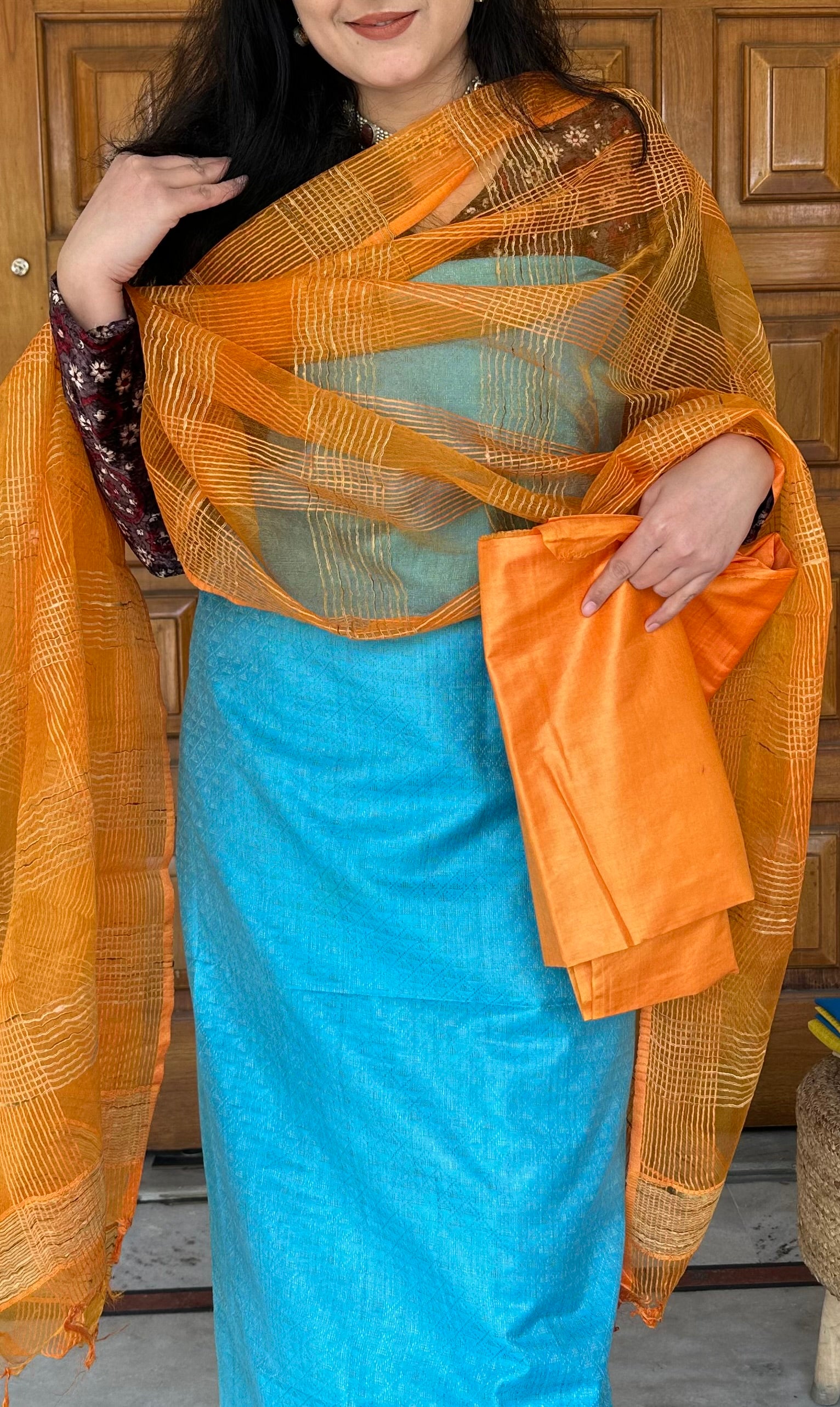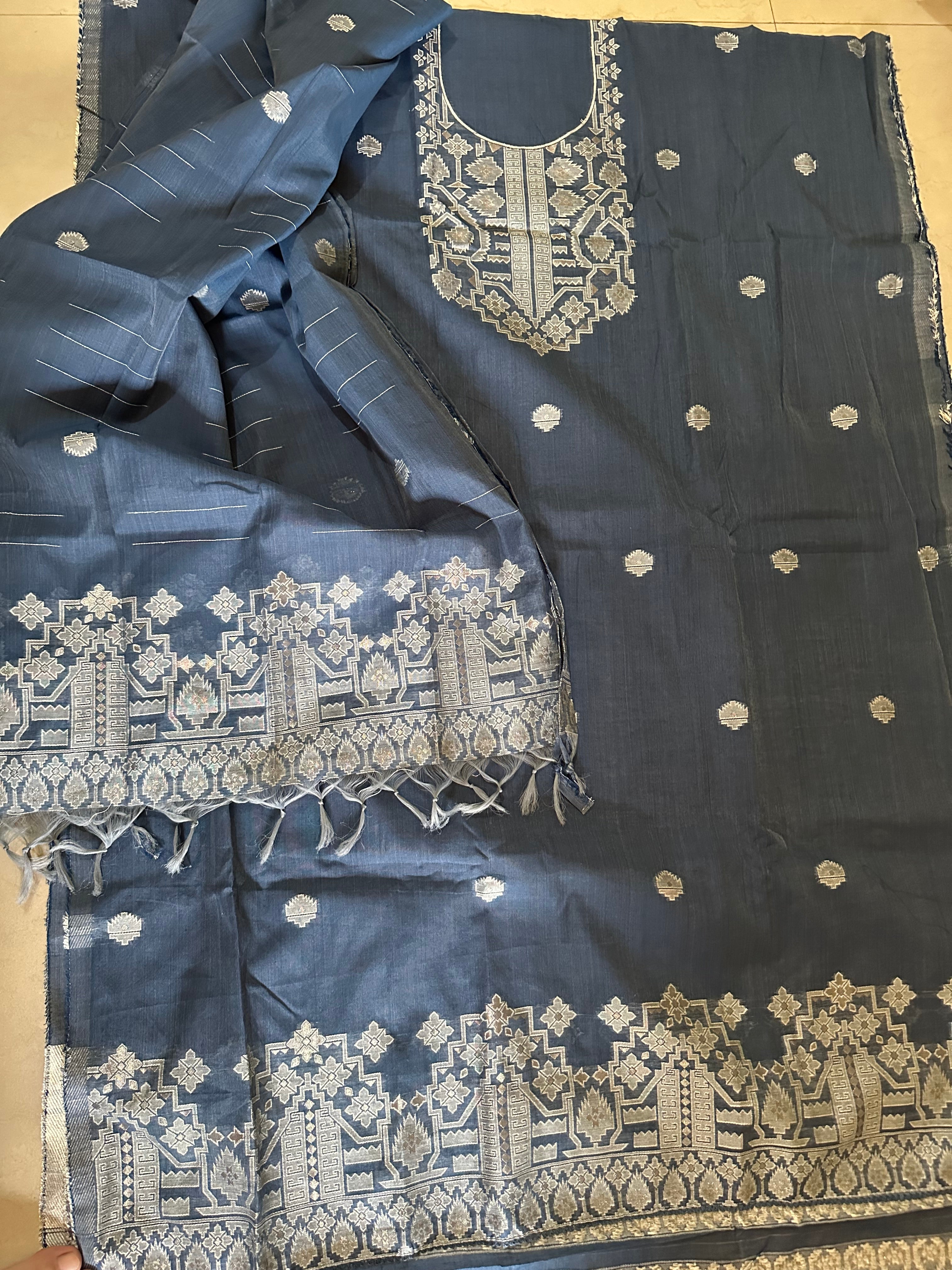 Powder Blue Mul Chanderi Embroidered Suit Set
