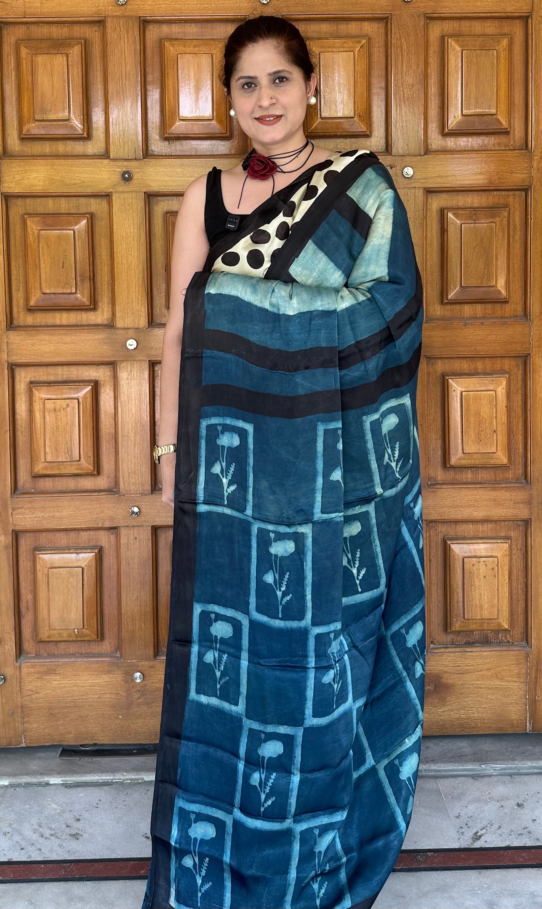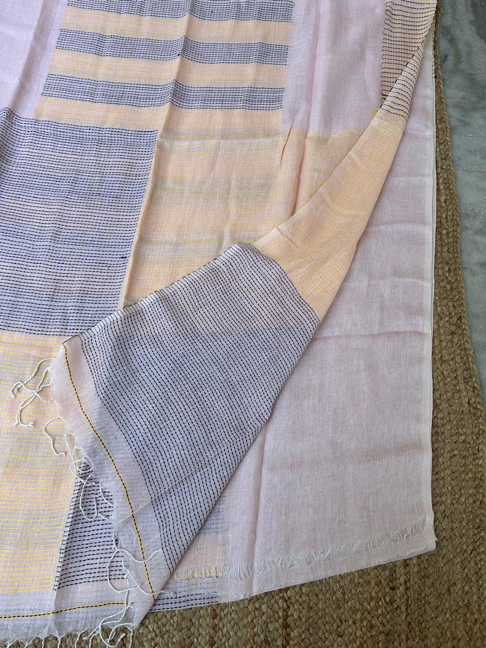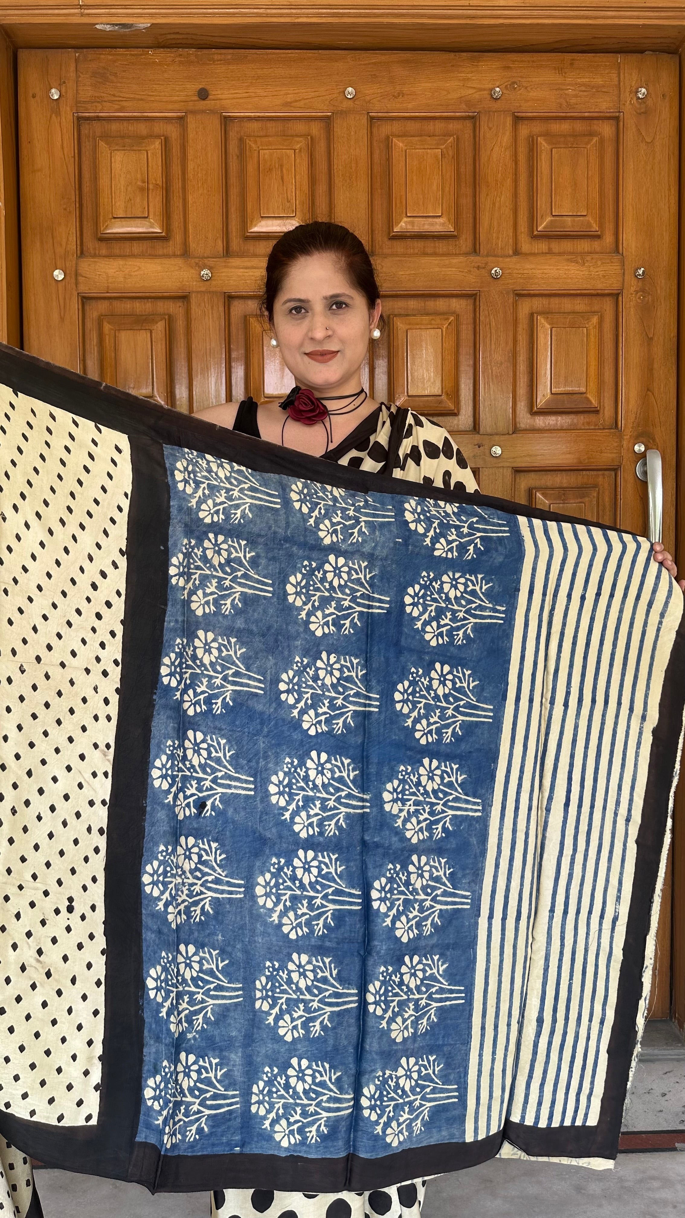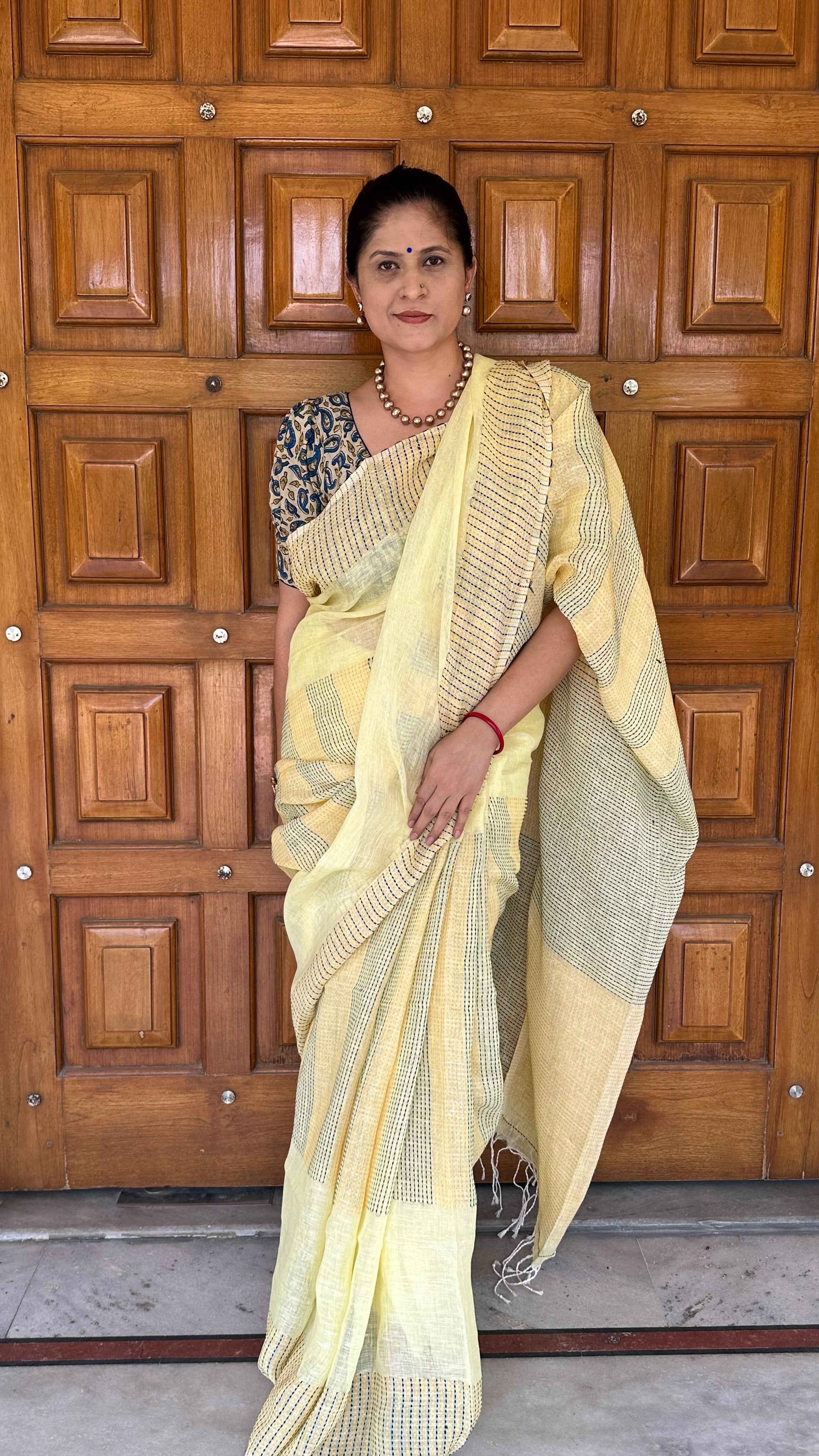 Handloom Cotton Sleeveless Lace Work checks Blouse (Blue)