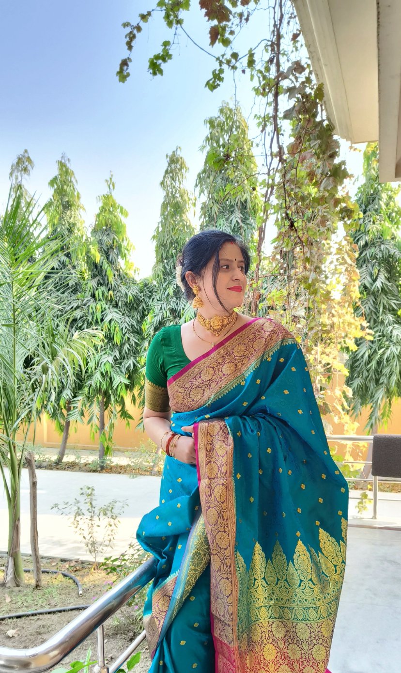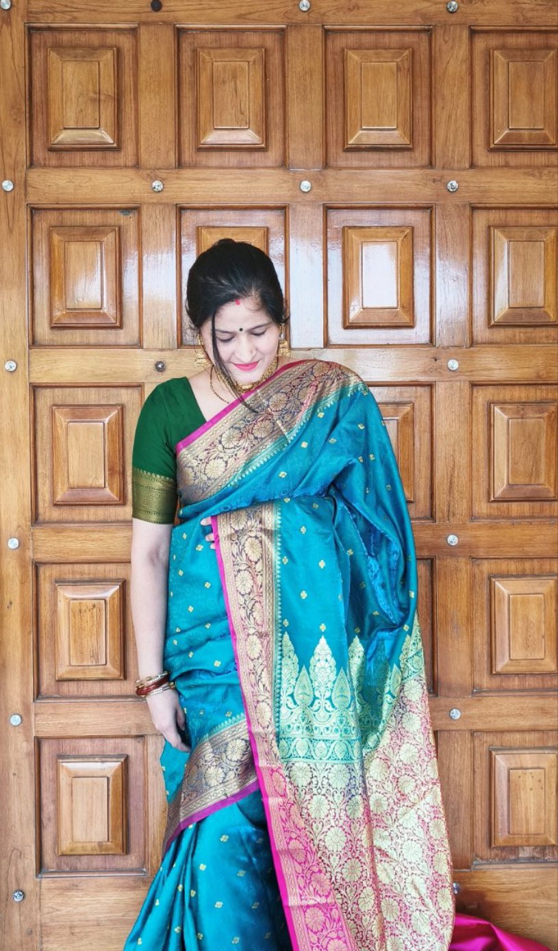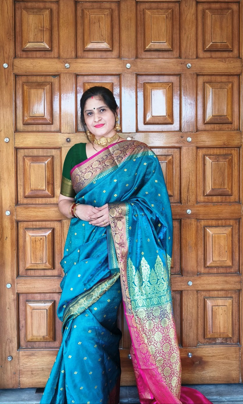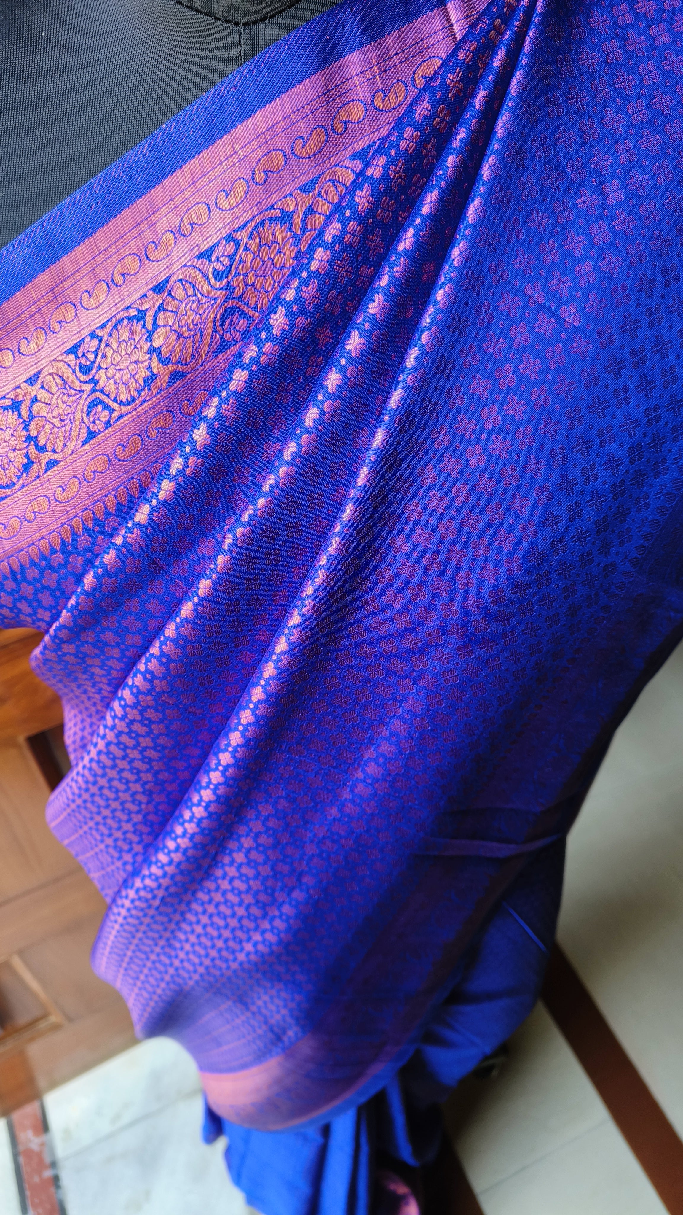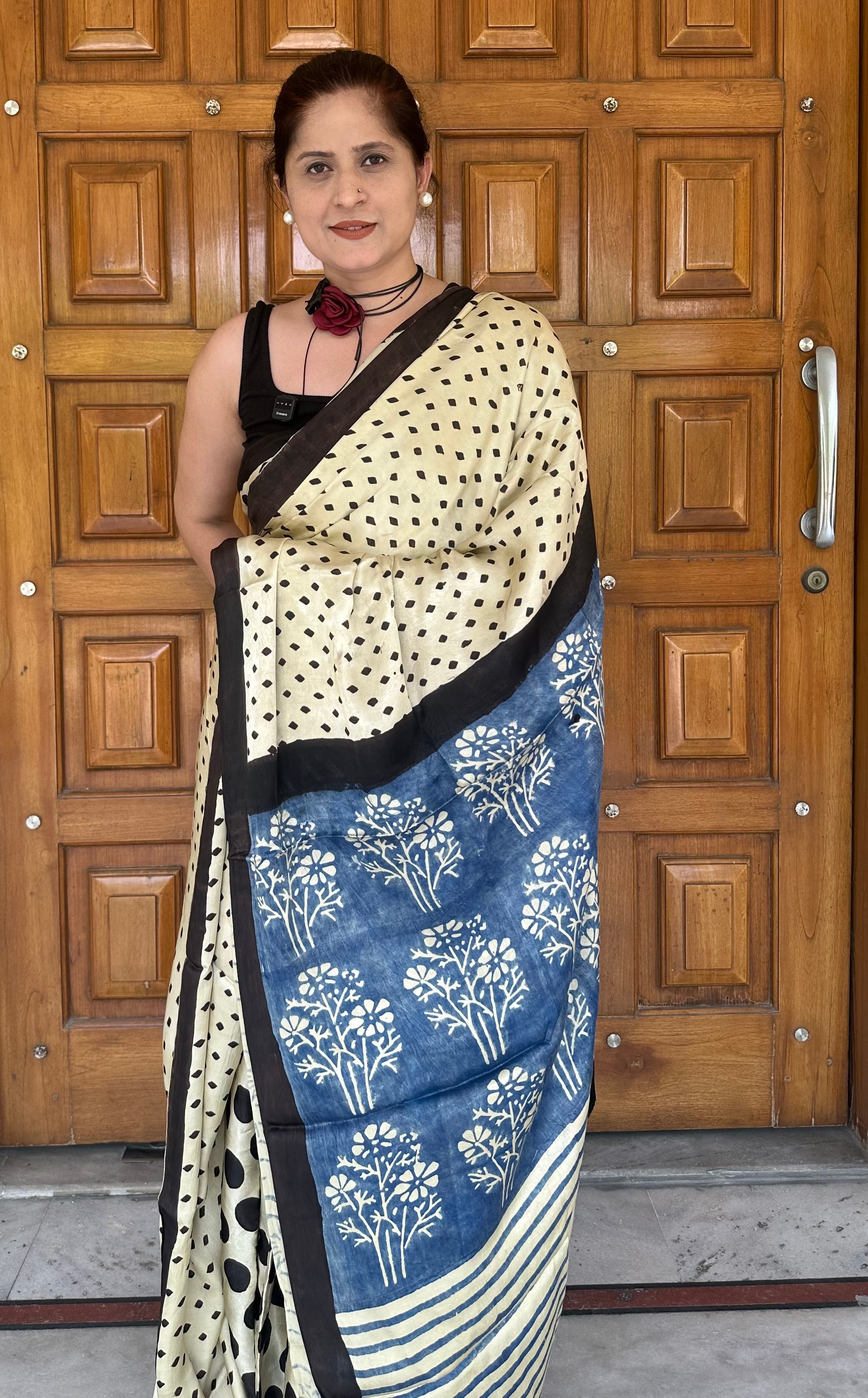 Handloom Cotton Sleeveless Lace Work checks Blouse (Blue)