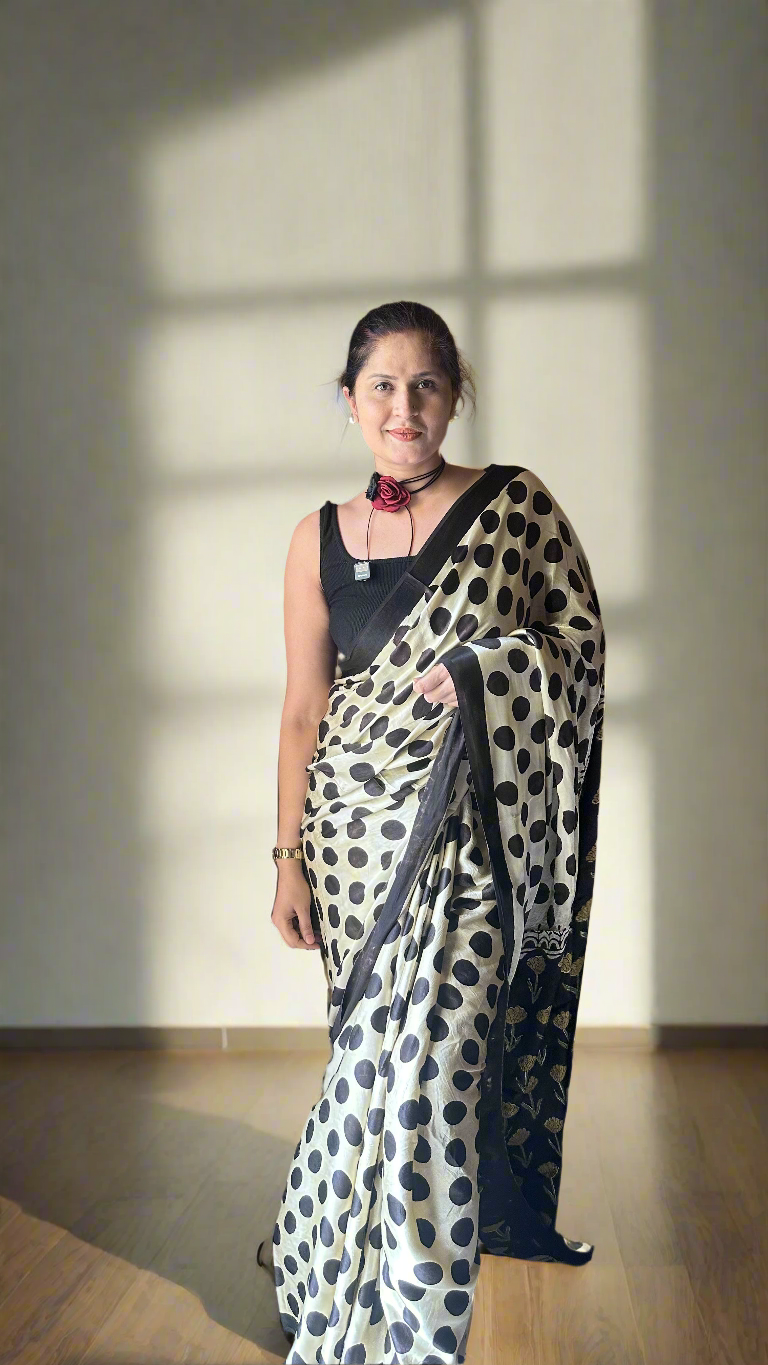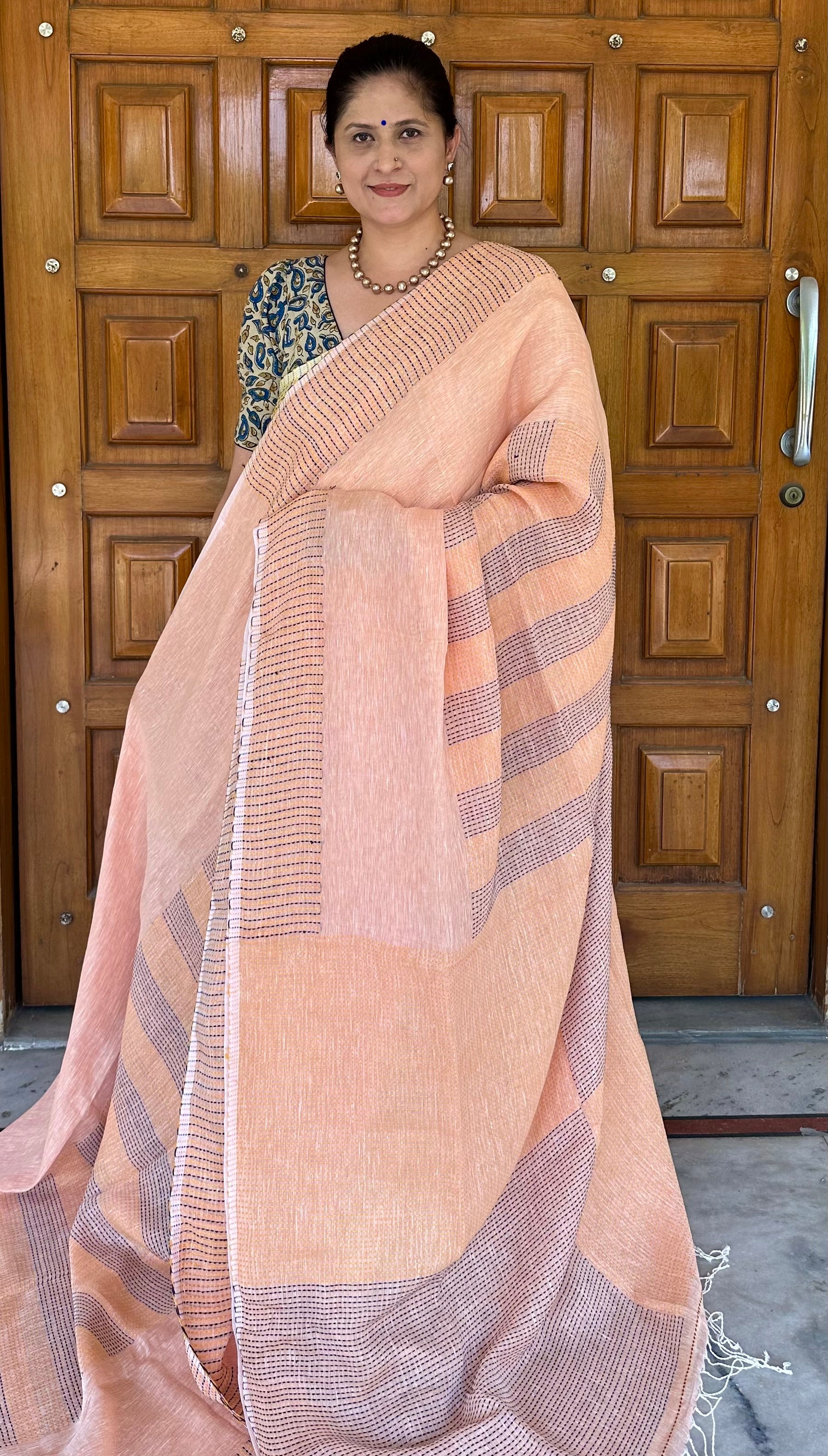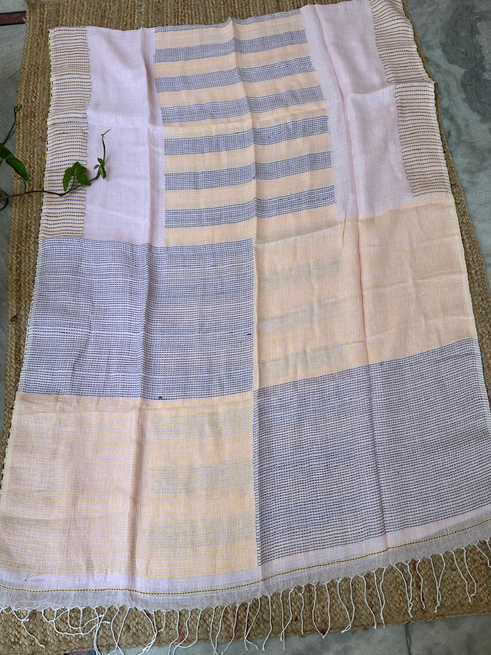 Handloom Gamcha Cotton Sleeveless Lace Work checks Blouse (Black)