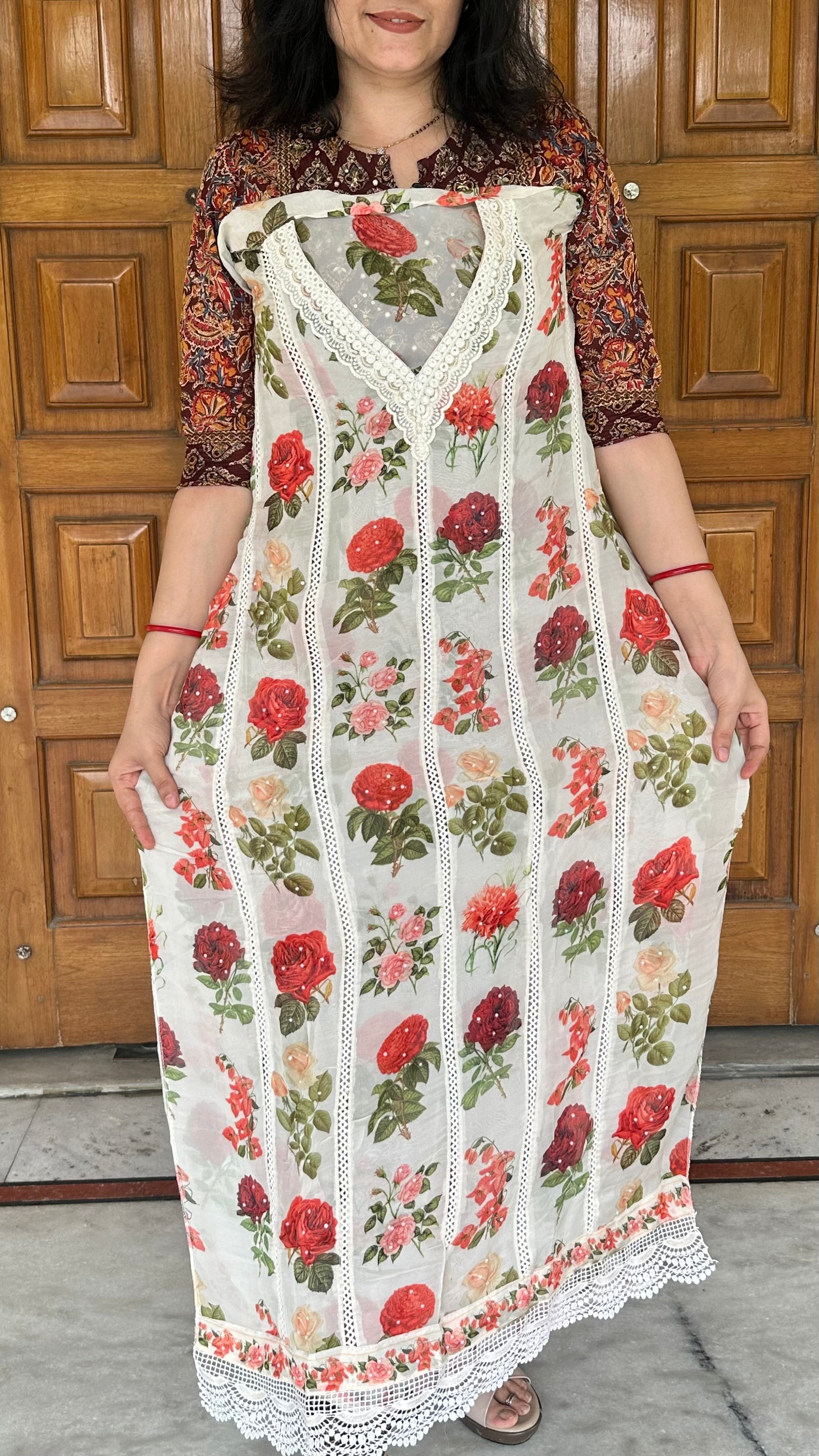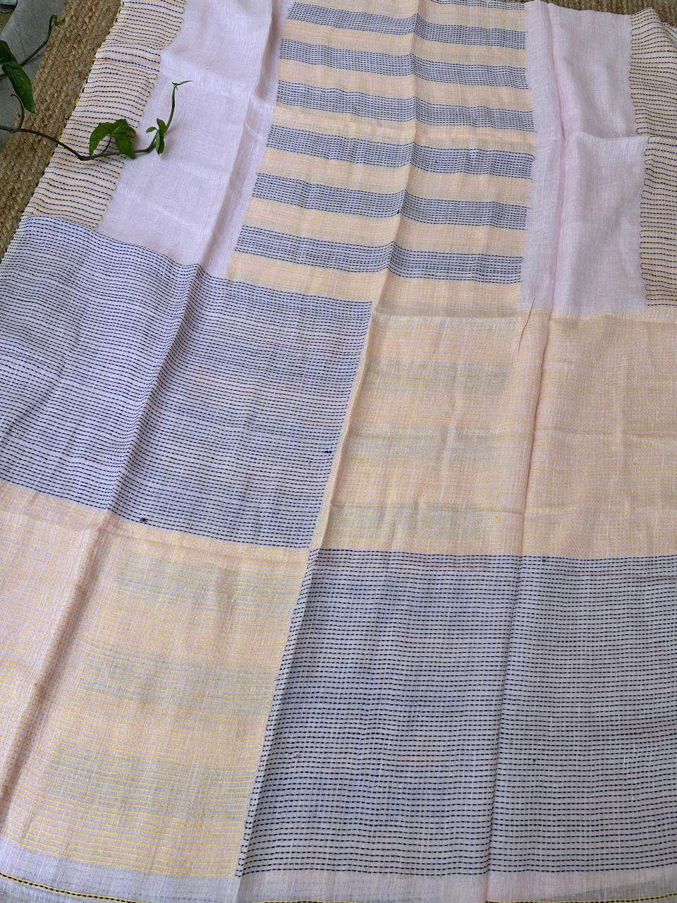 Handloom Cotton Sleeveless Lace Work checks Blouse (White)