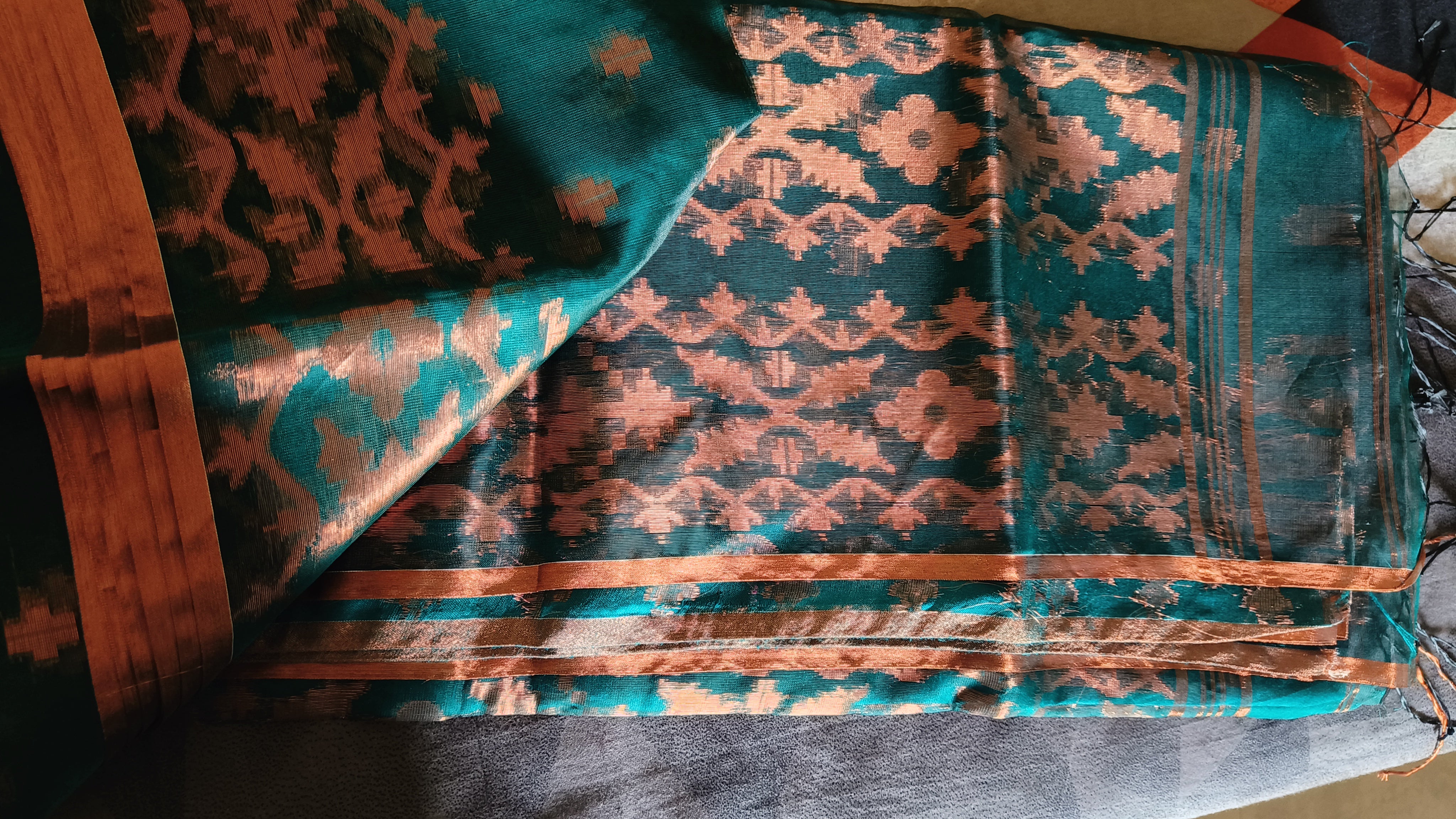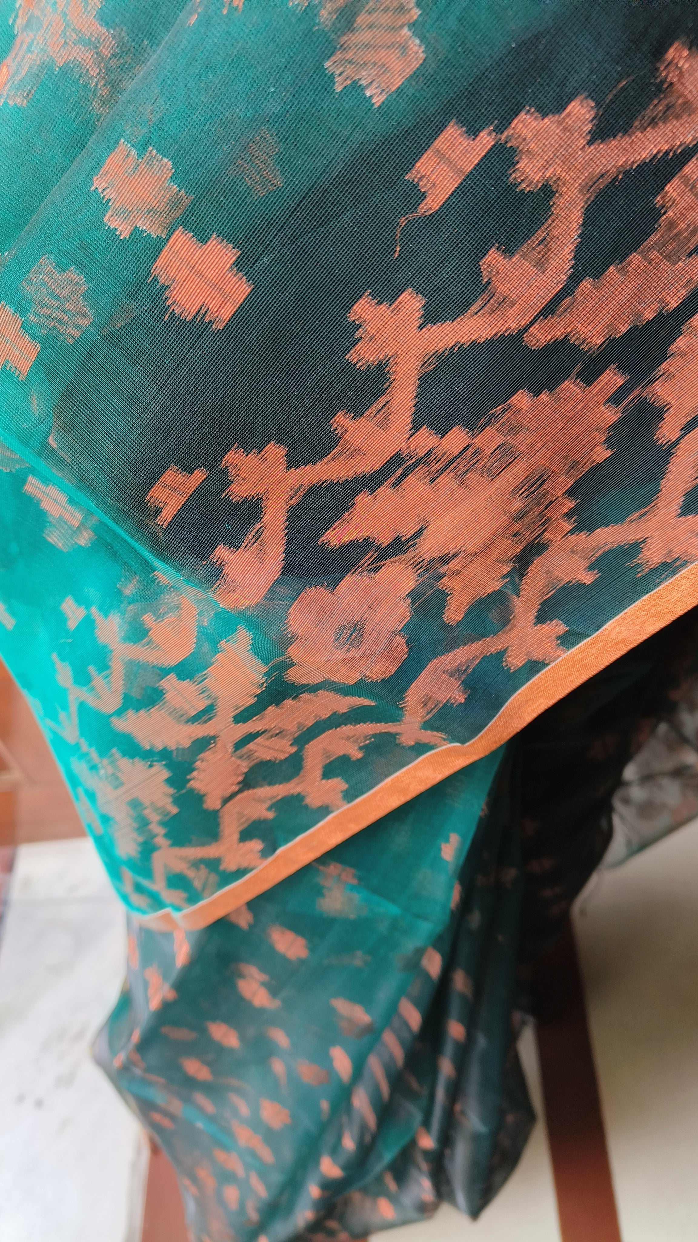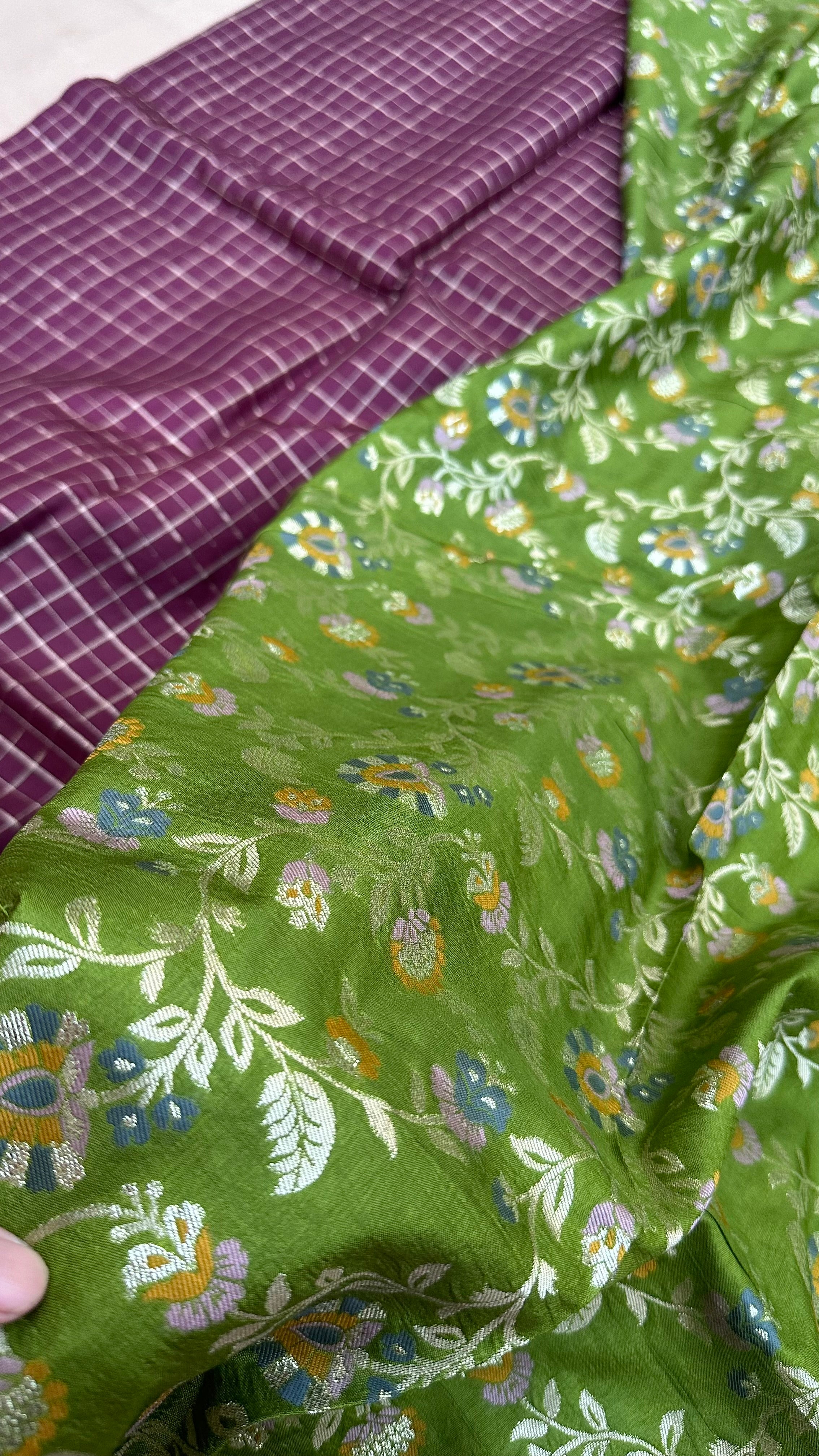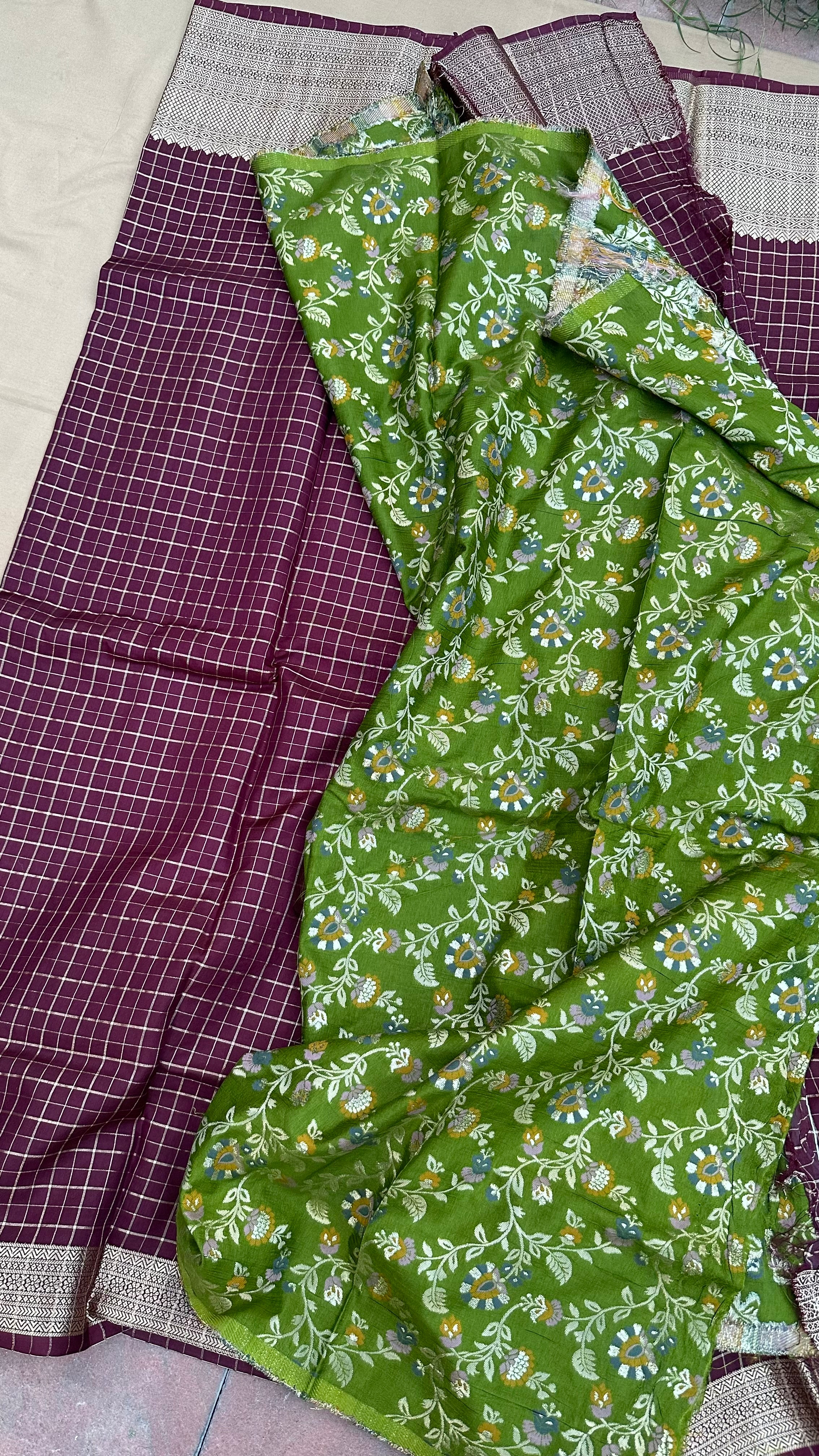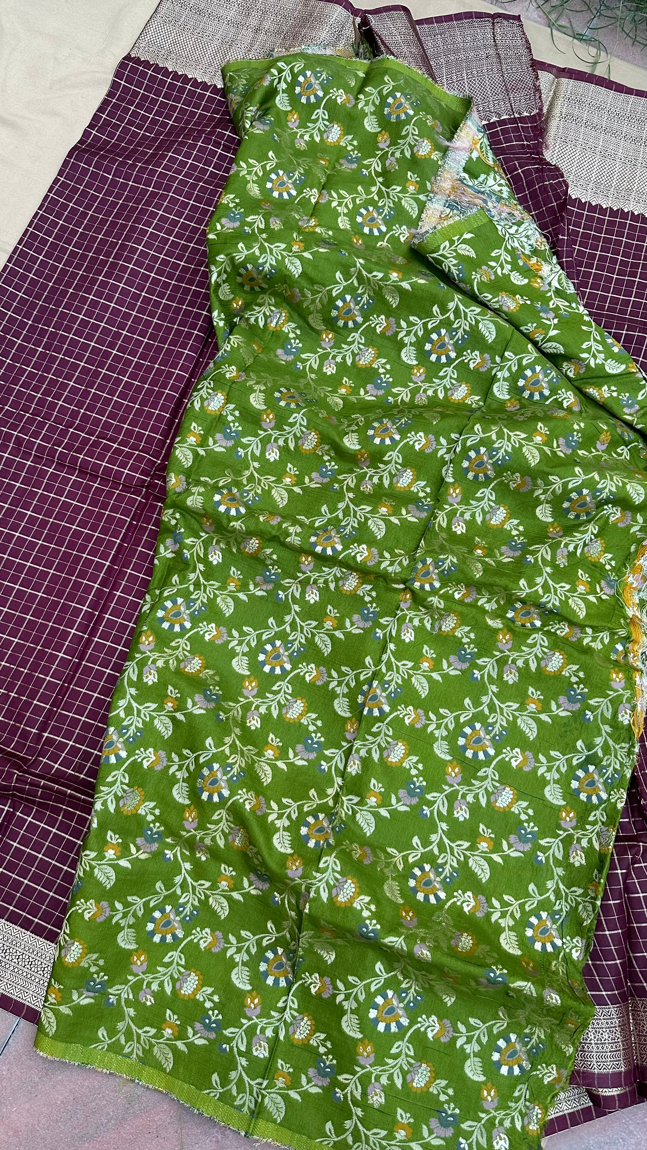 Handloom Cotton Sleeveless Lace Work checks Blouse (Green)