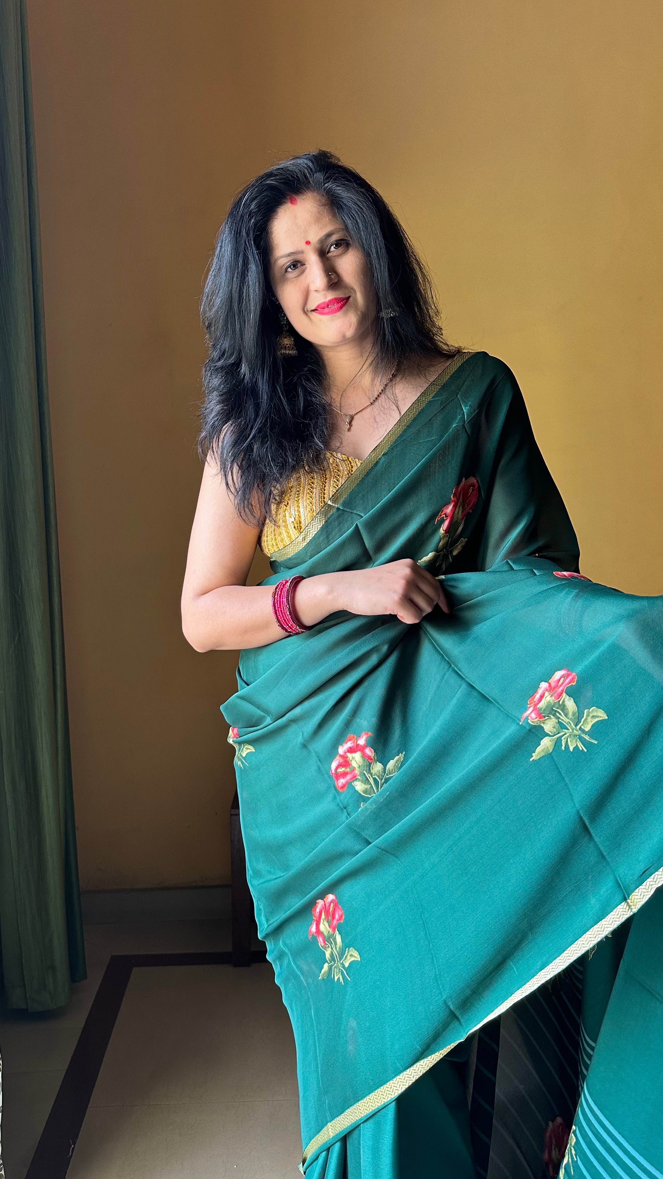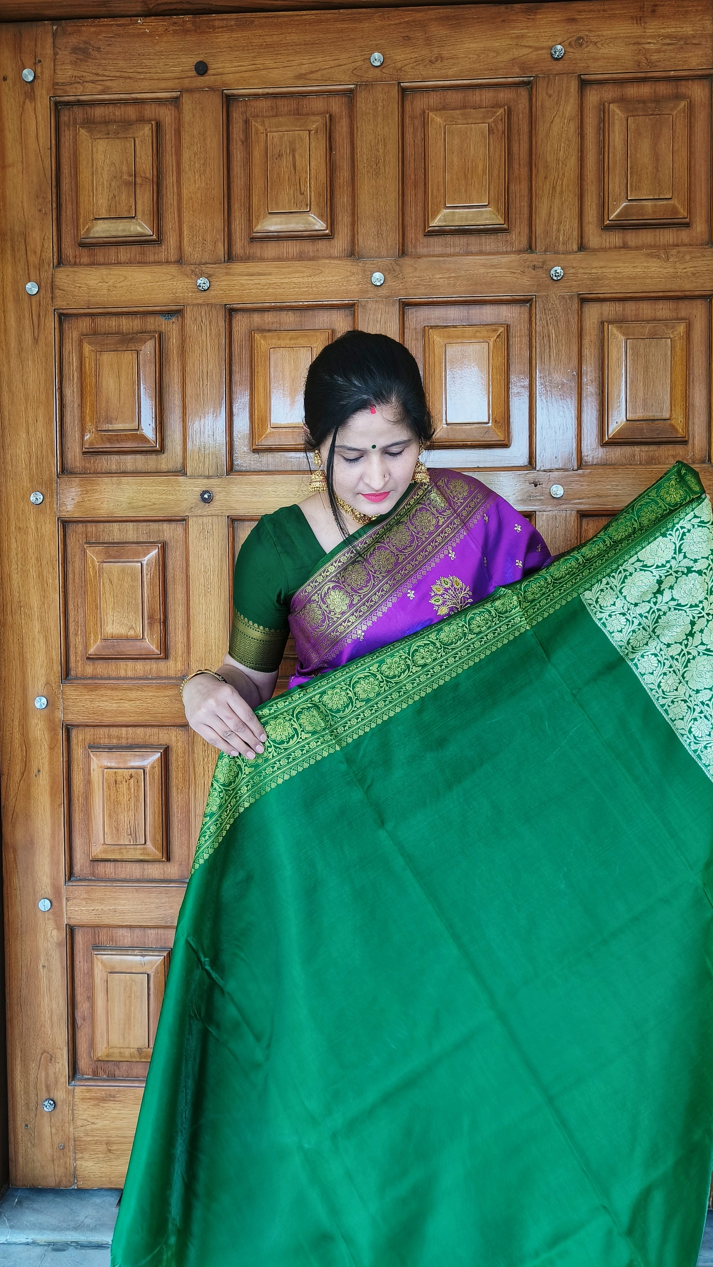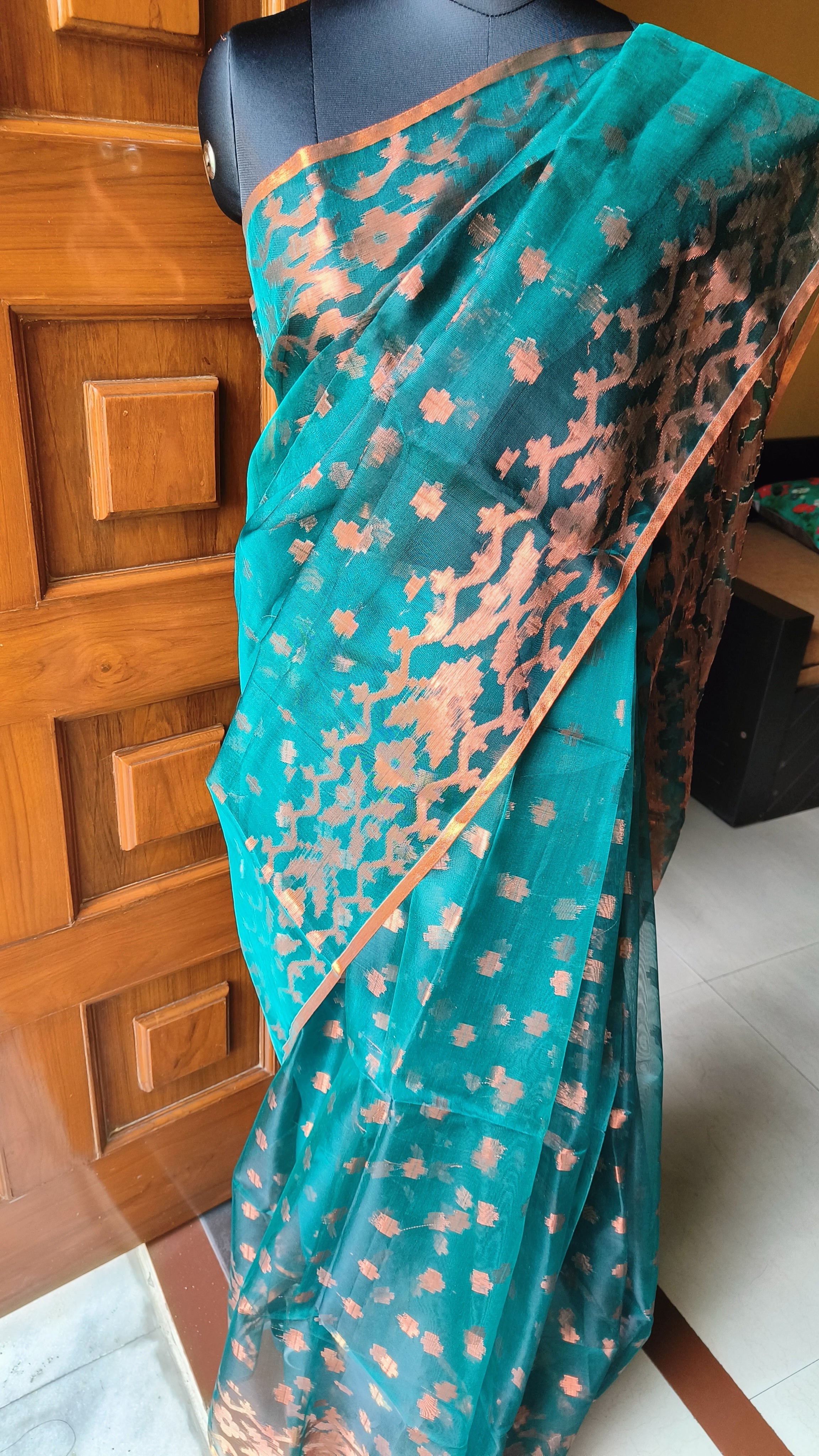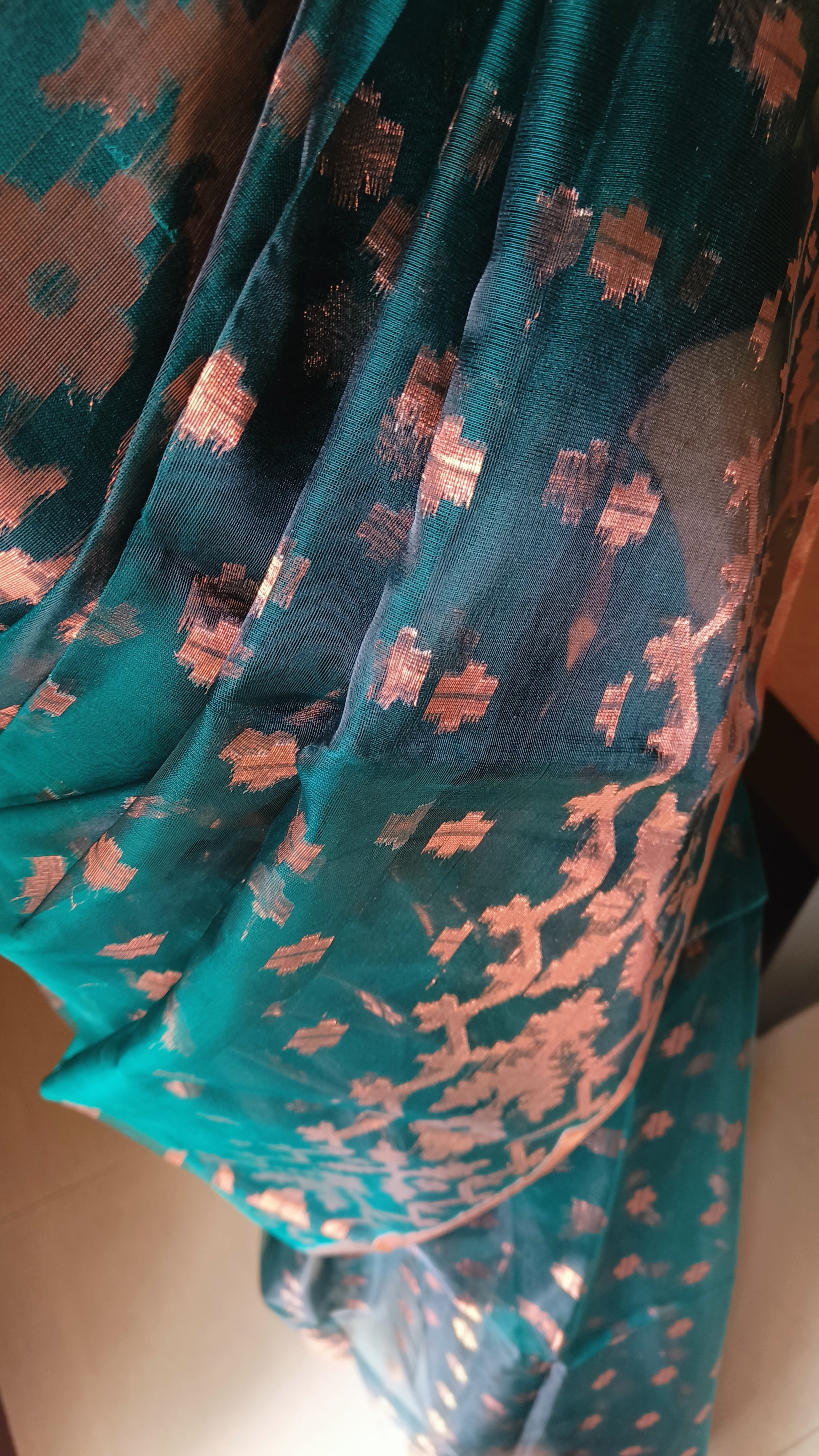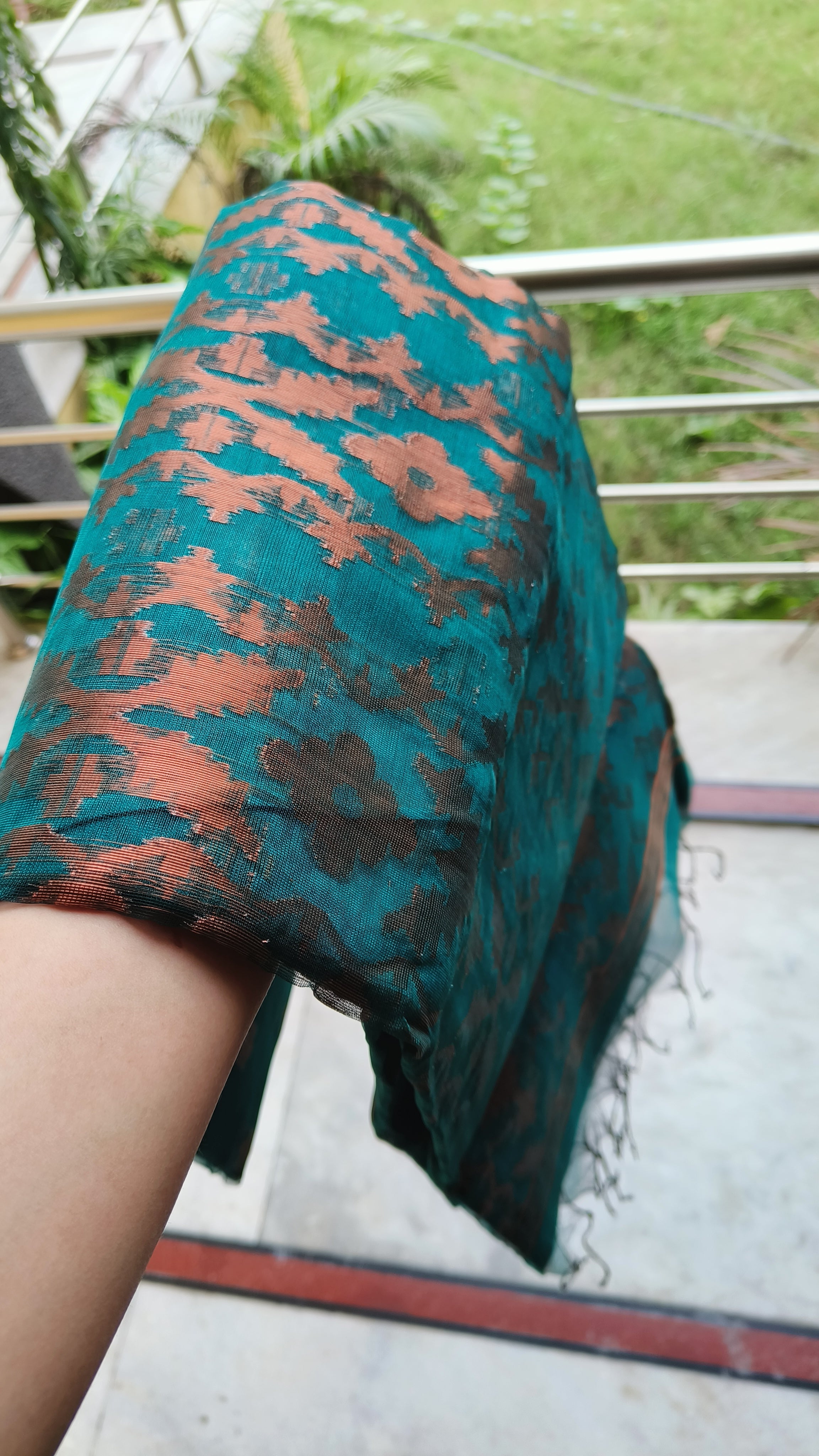 Handloom Cotton Sleeveless Lace Work checks Blouse (Green)