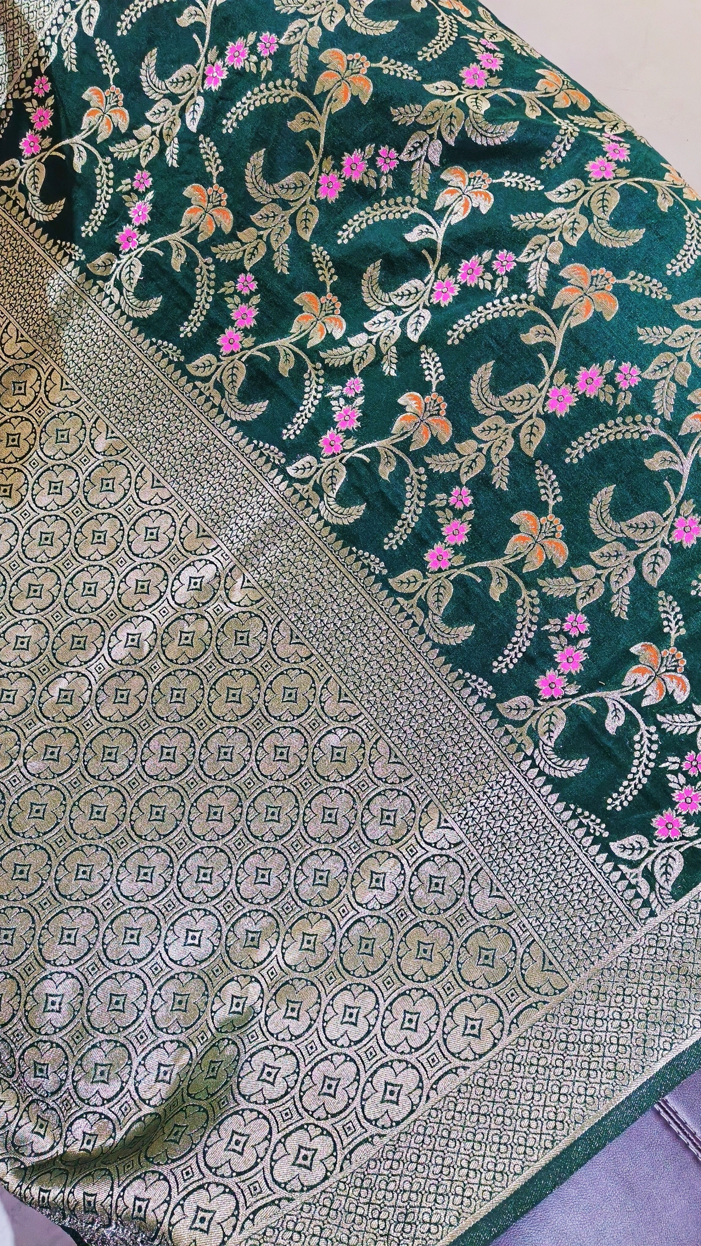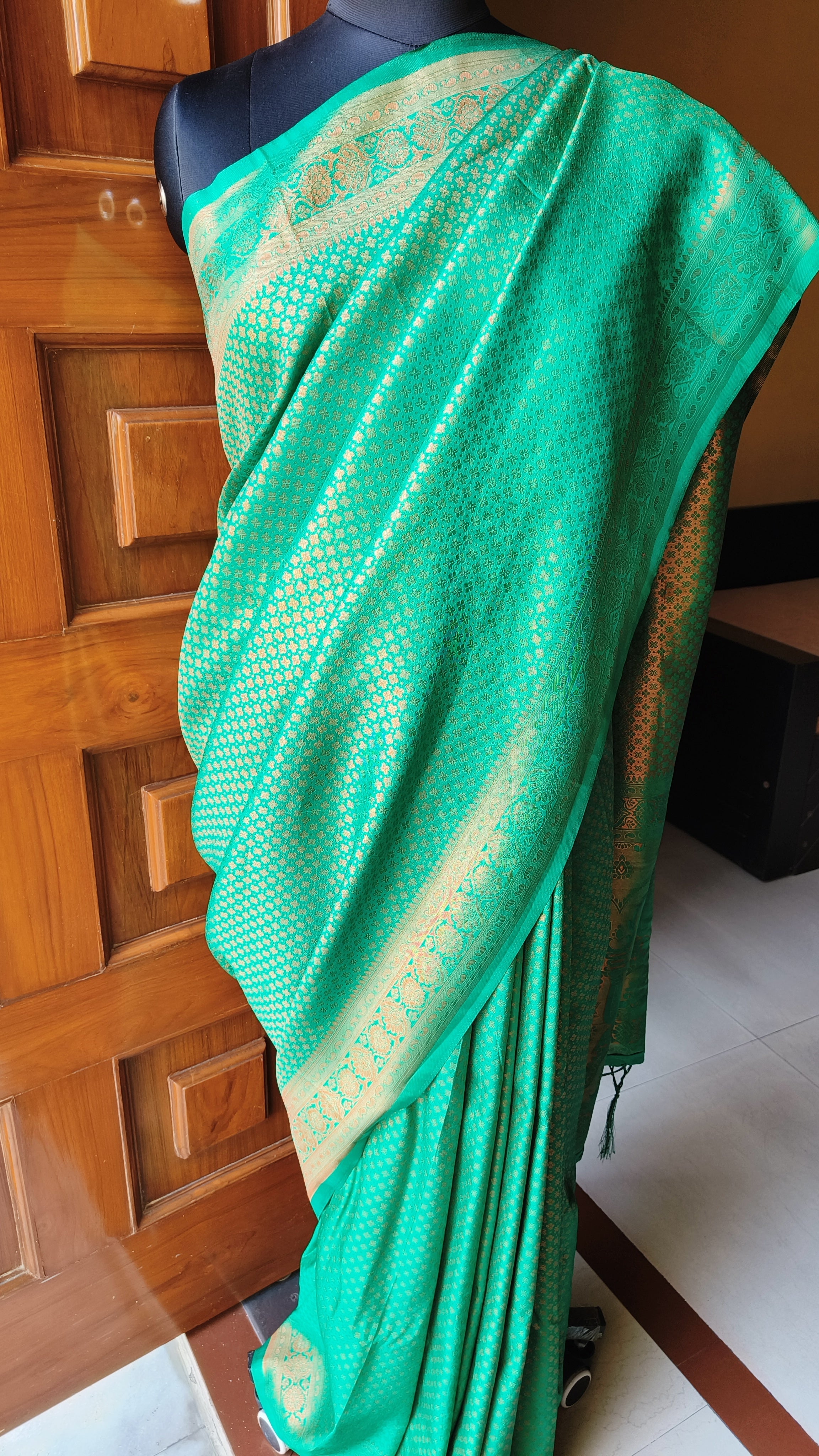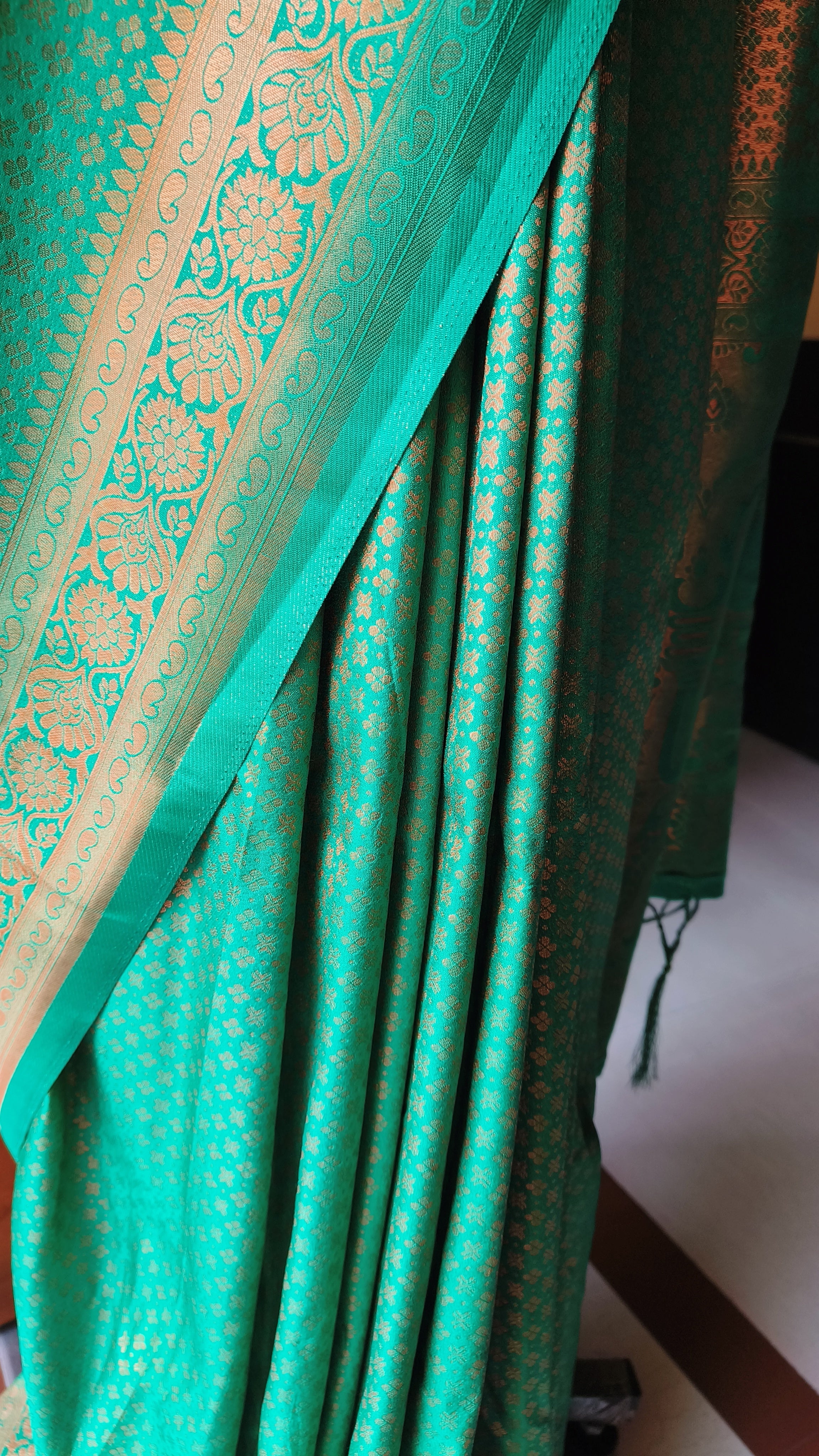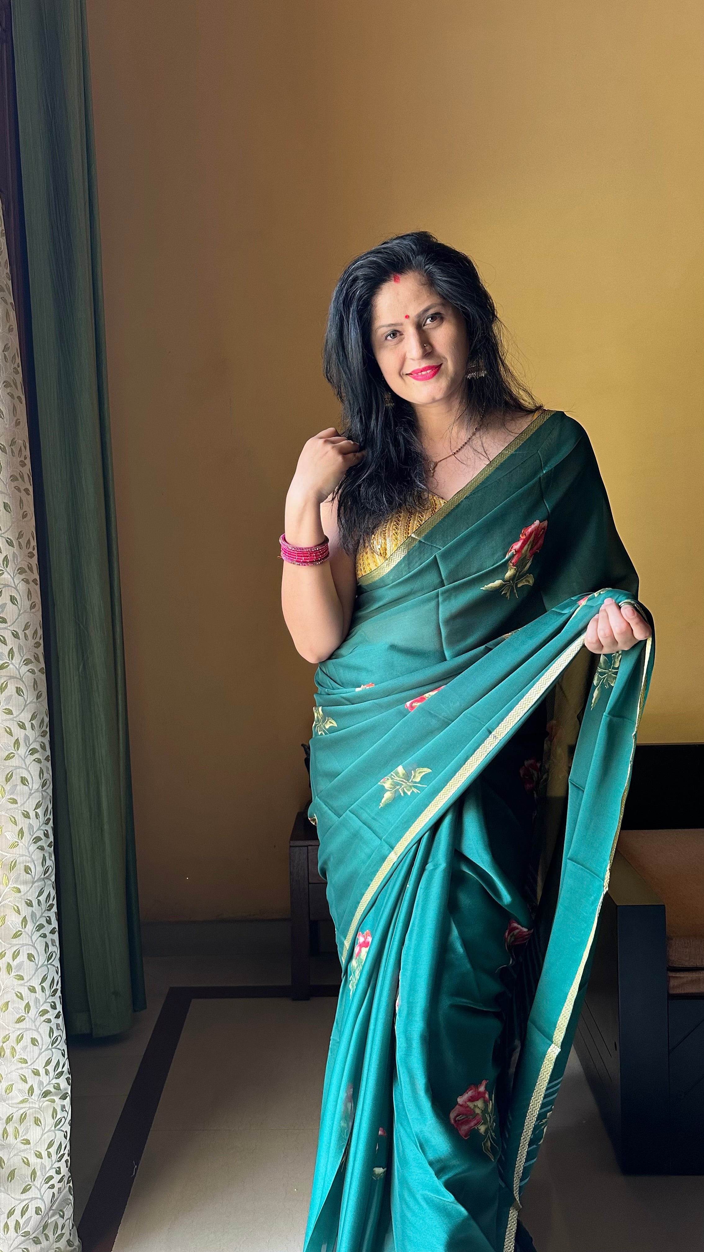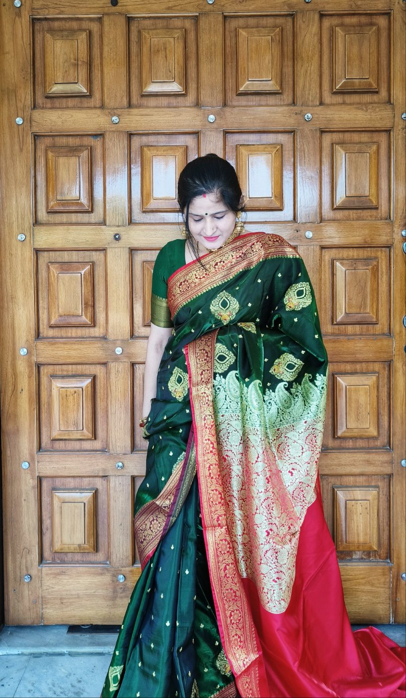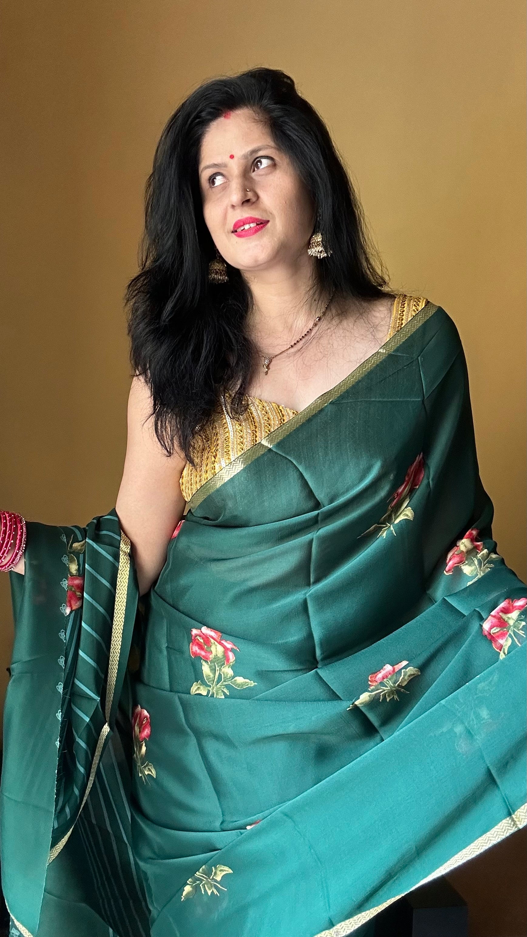 Handloom Cotton Sleeveless Lace Work checks Blouse (Green)