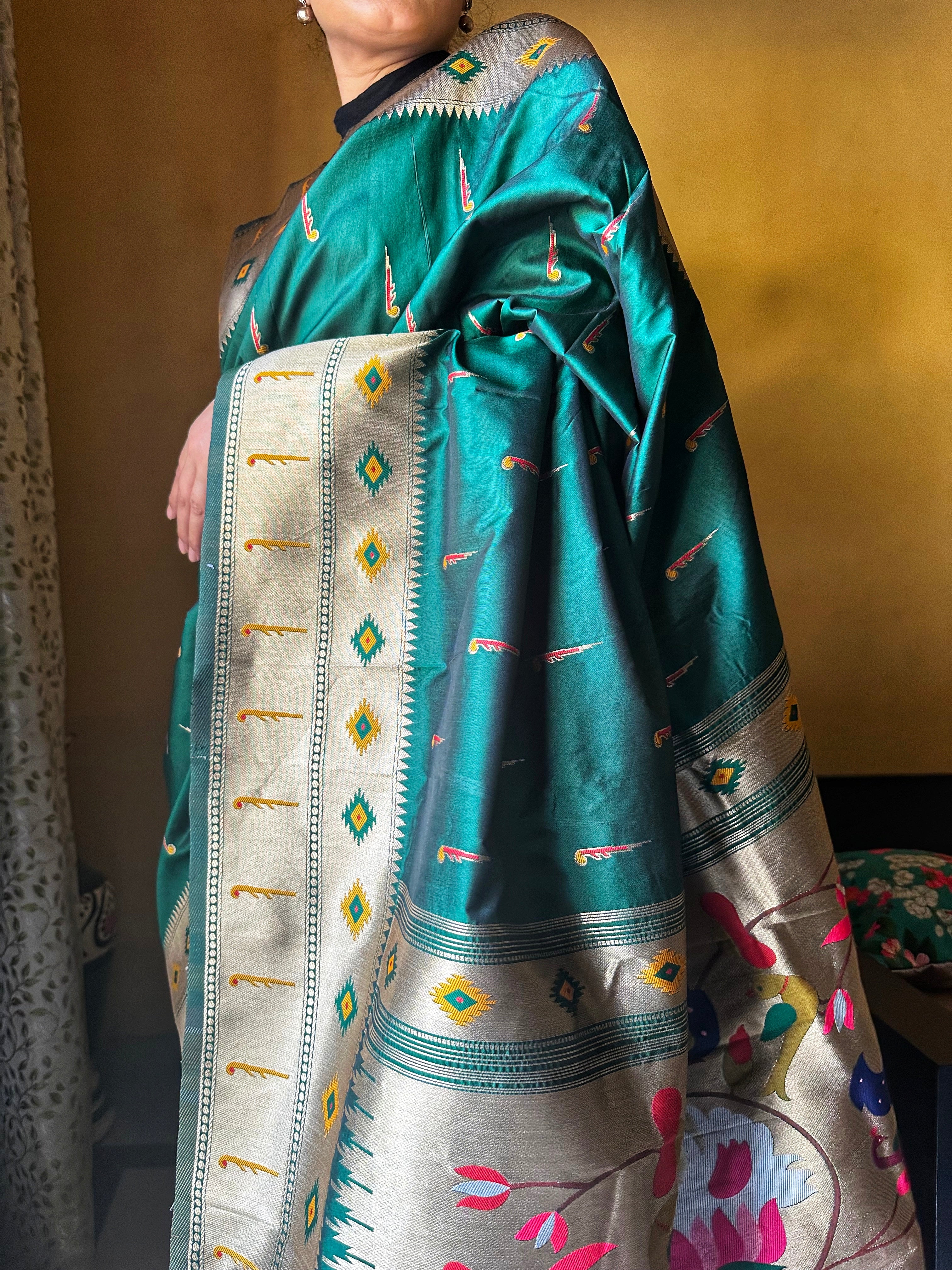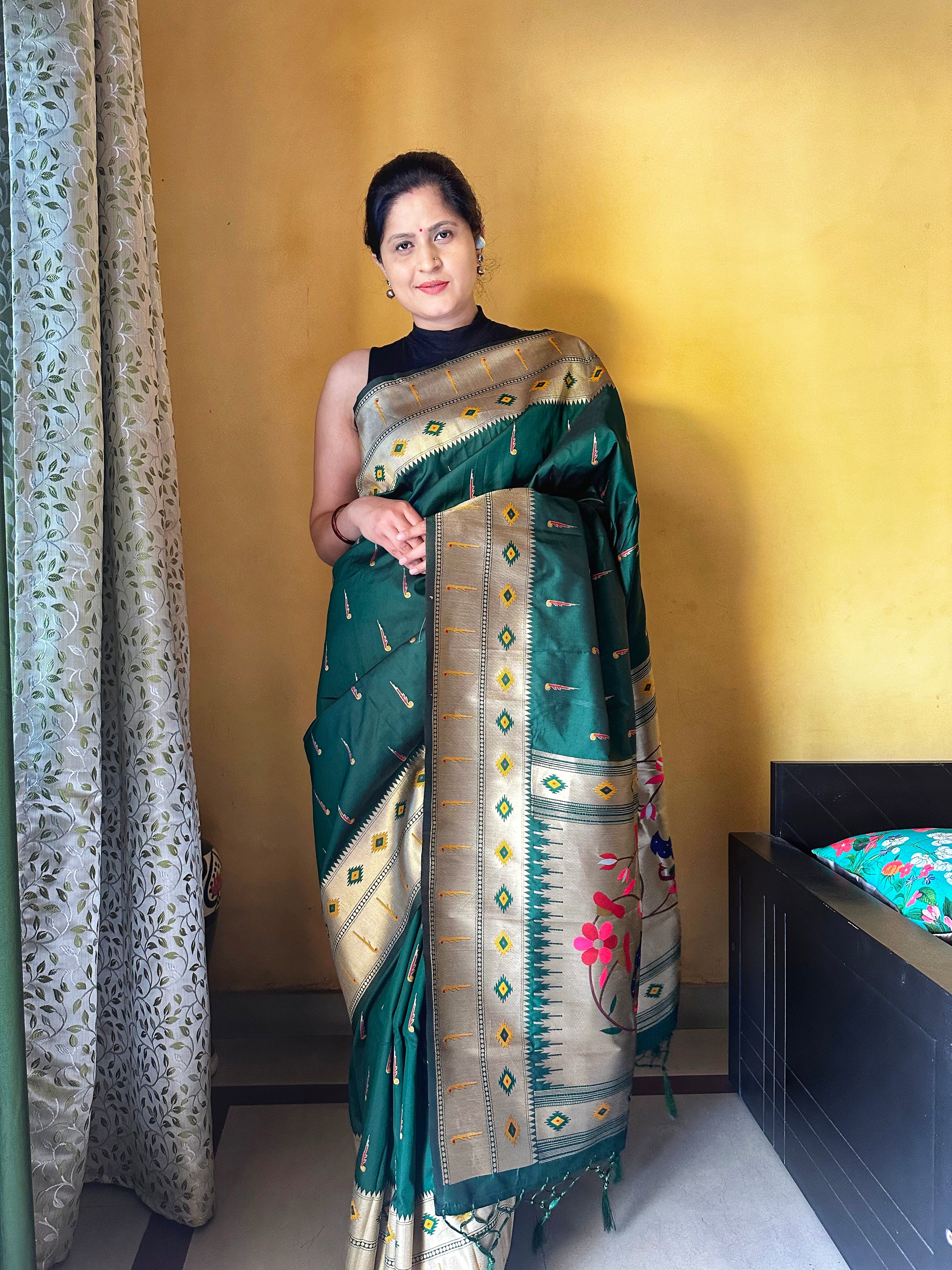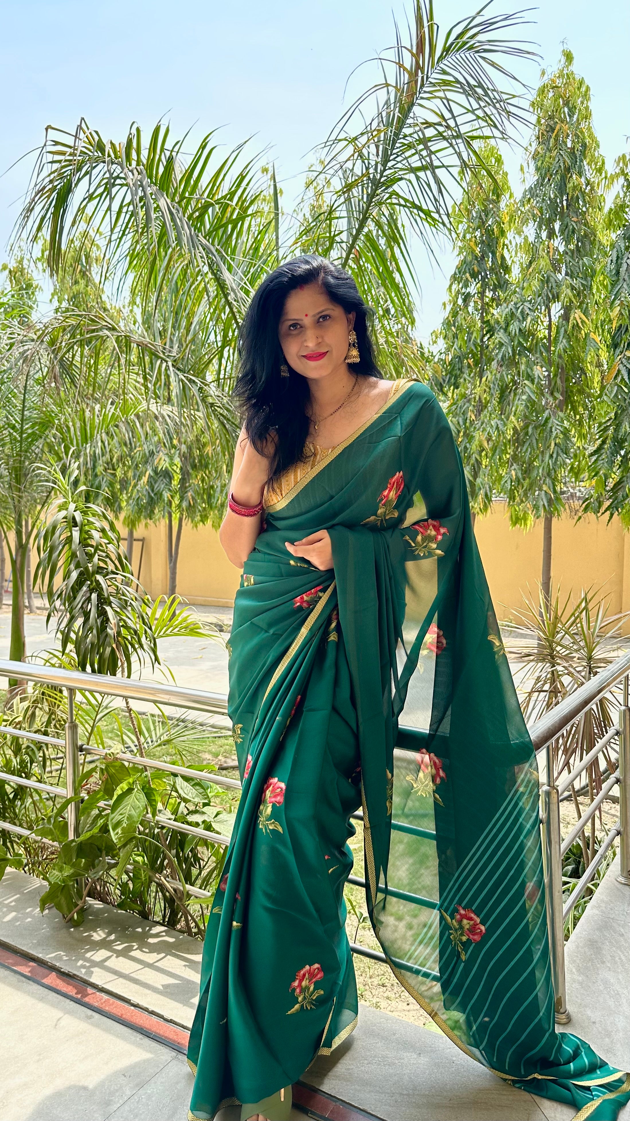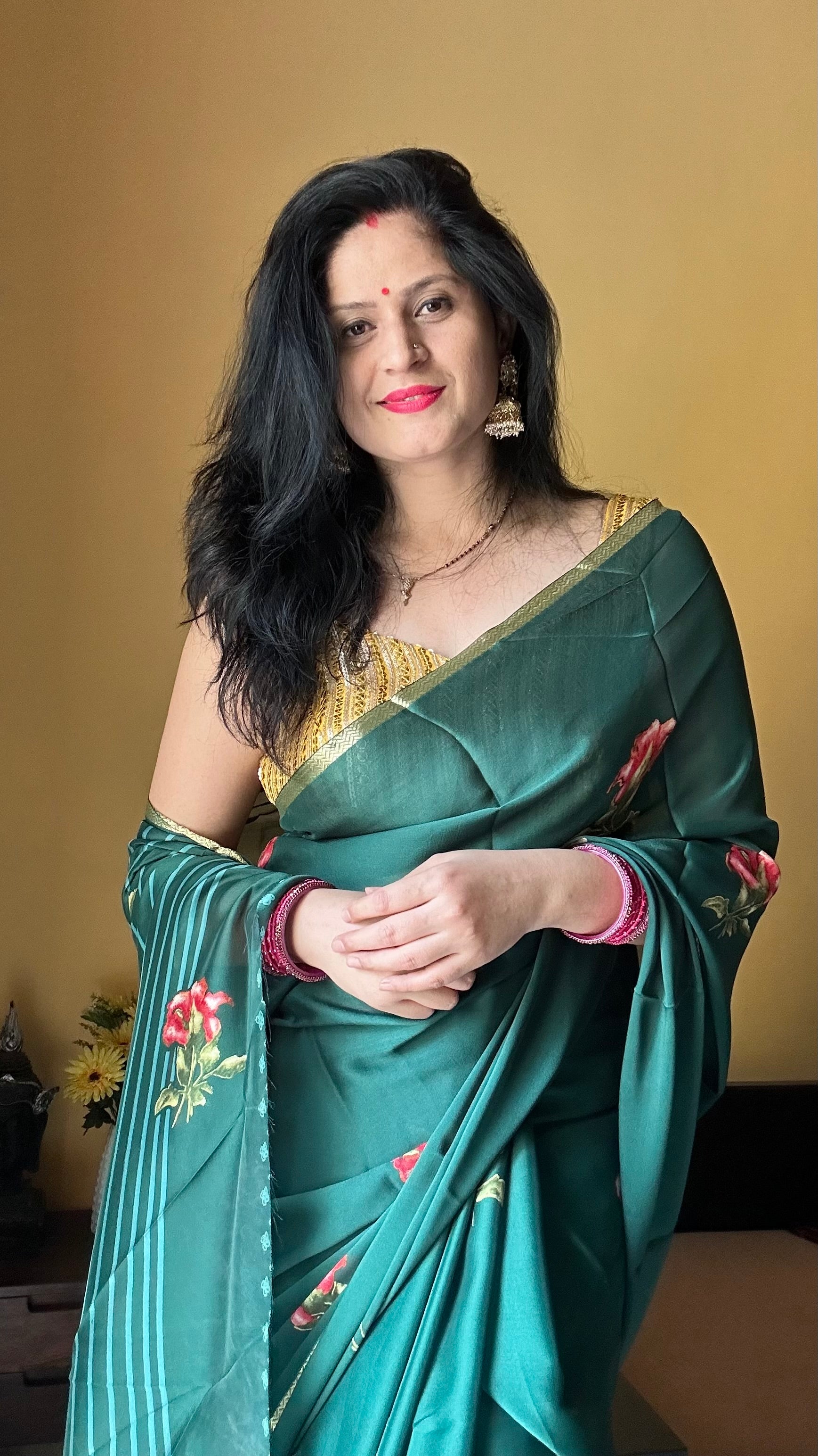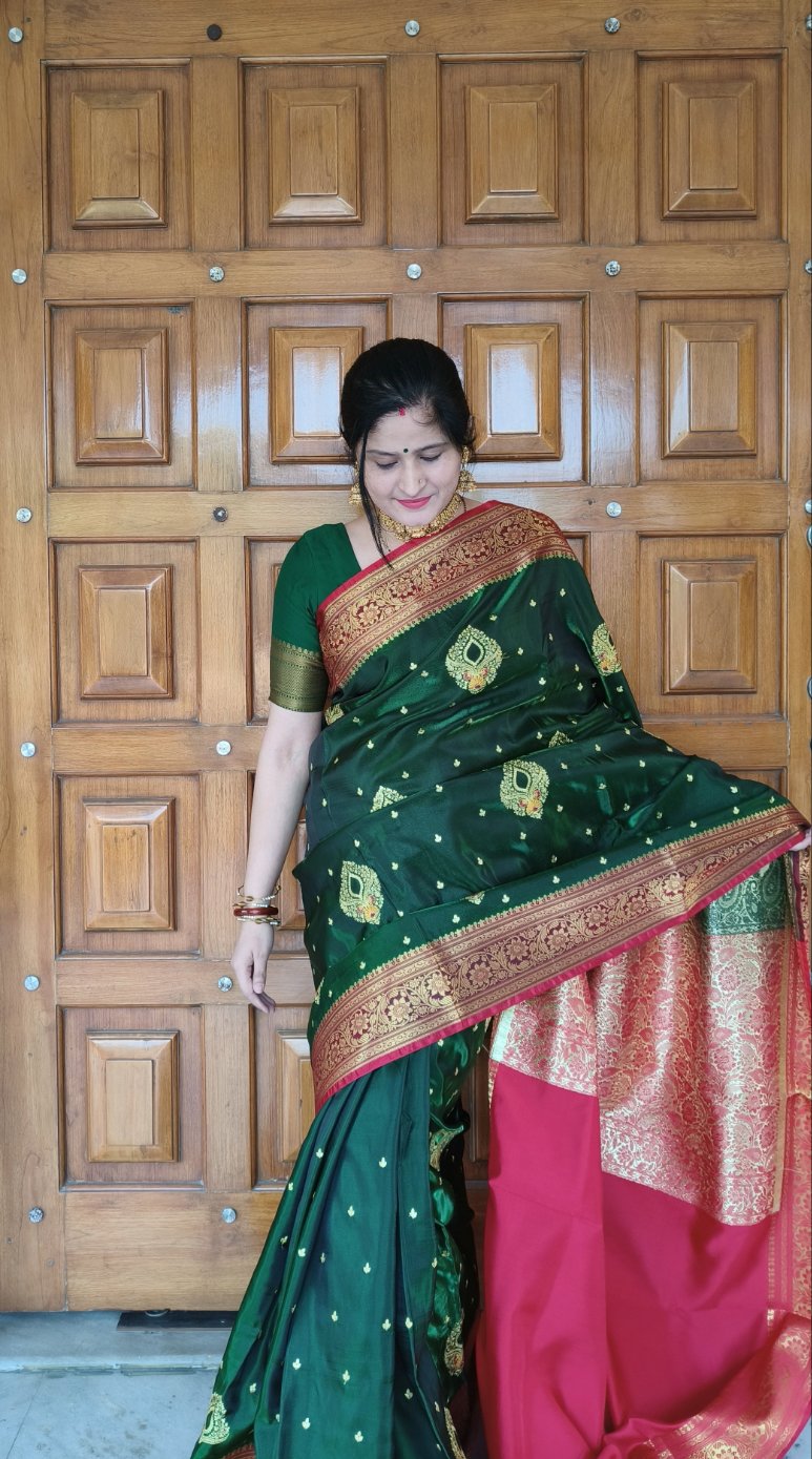 Handloom Cotton Sleeveless Lace Work checks Blouse (Green)
