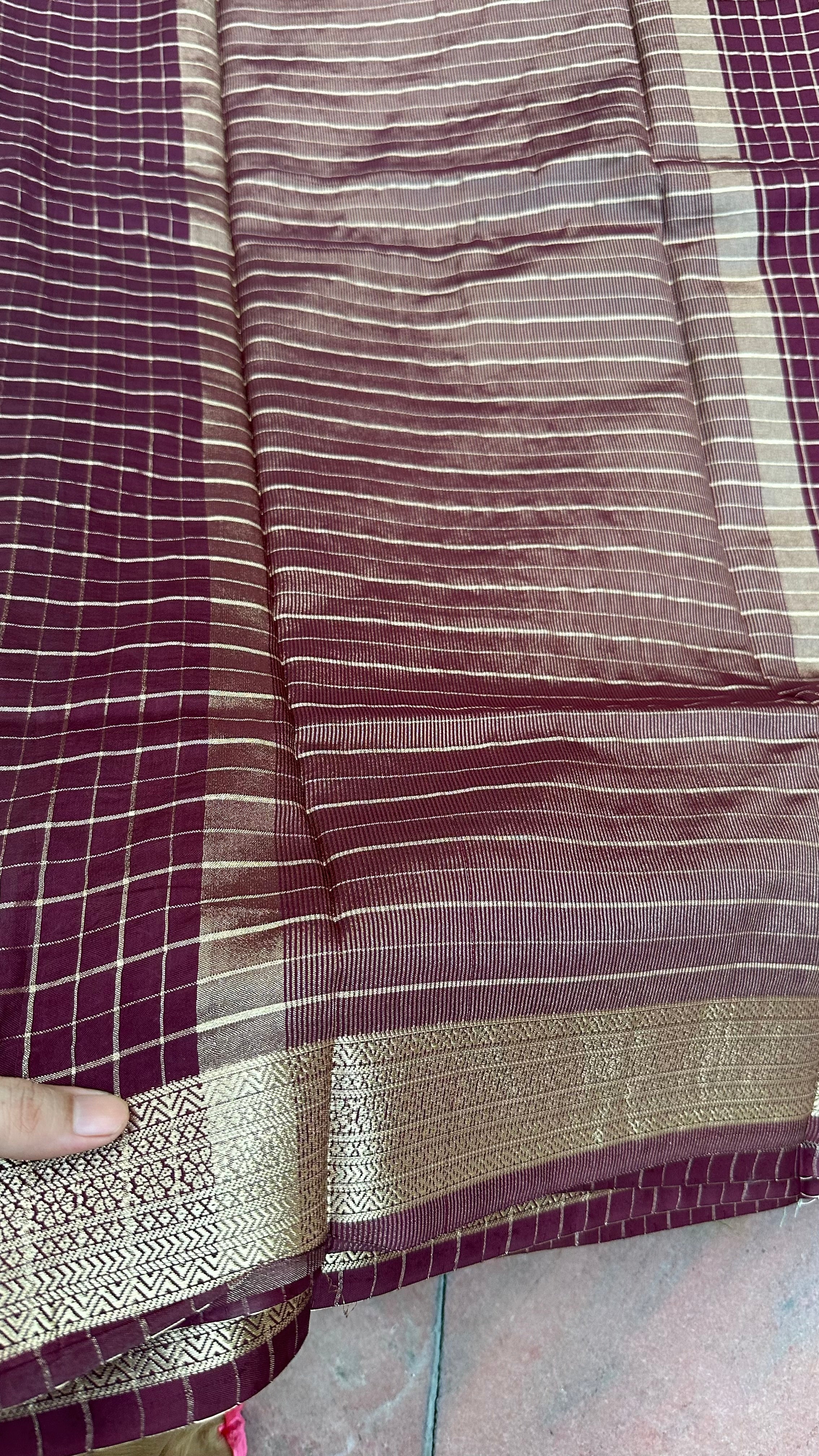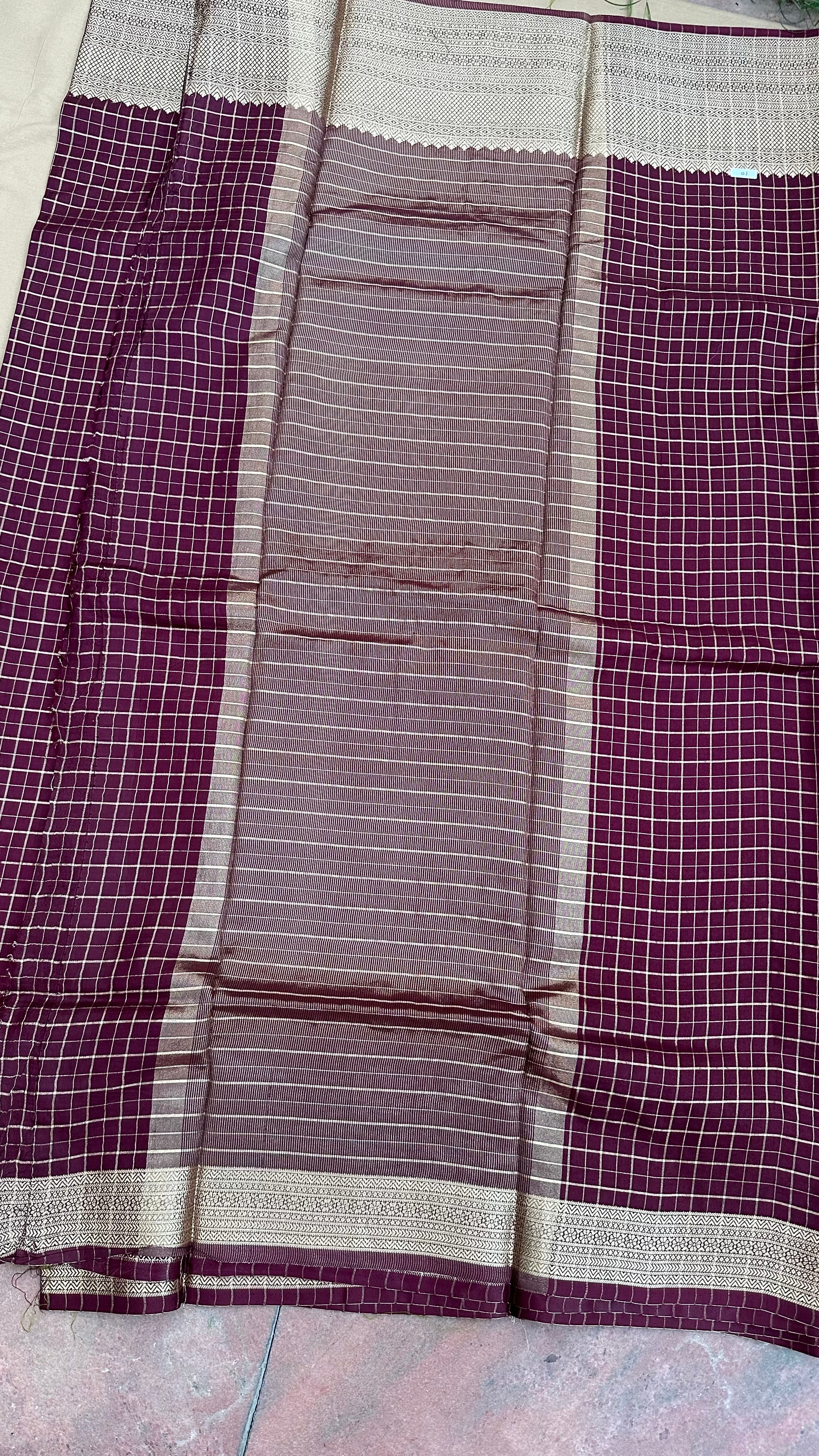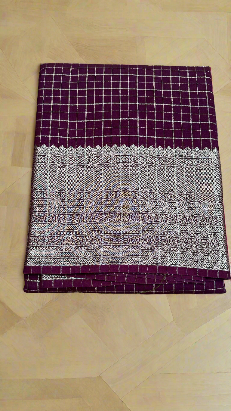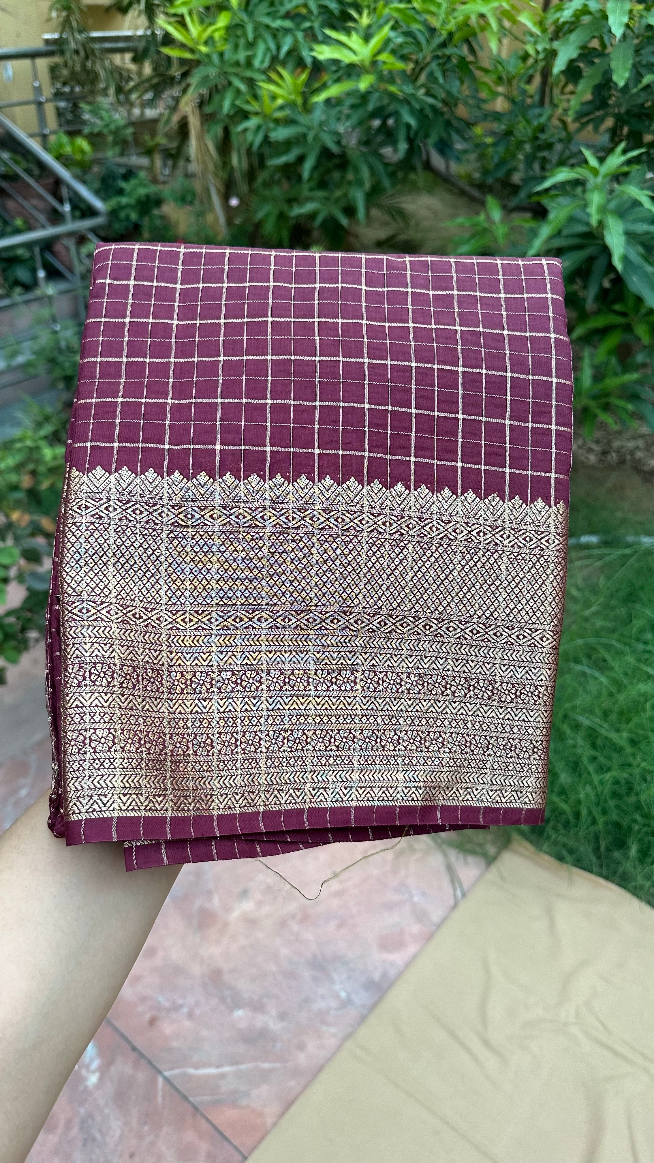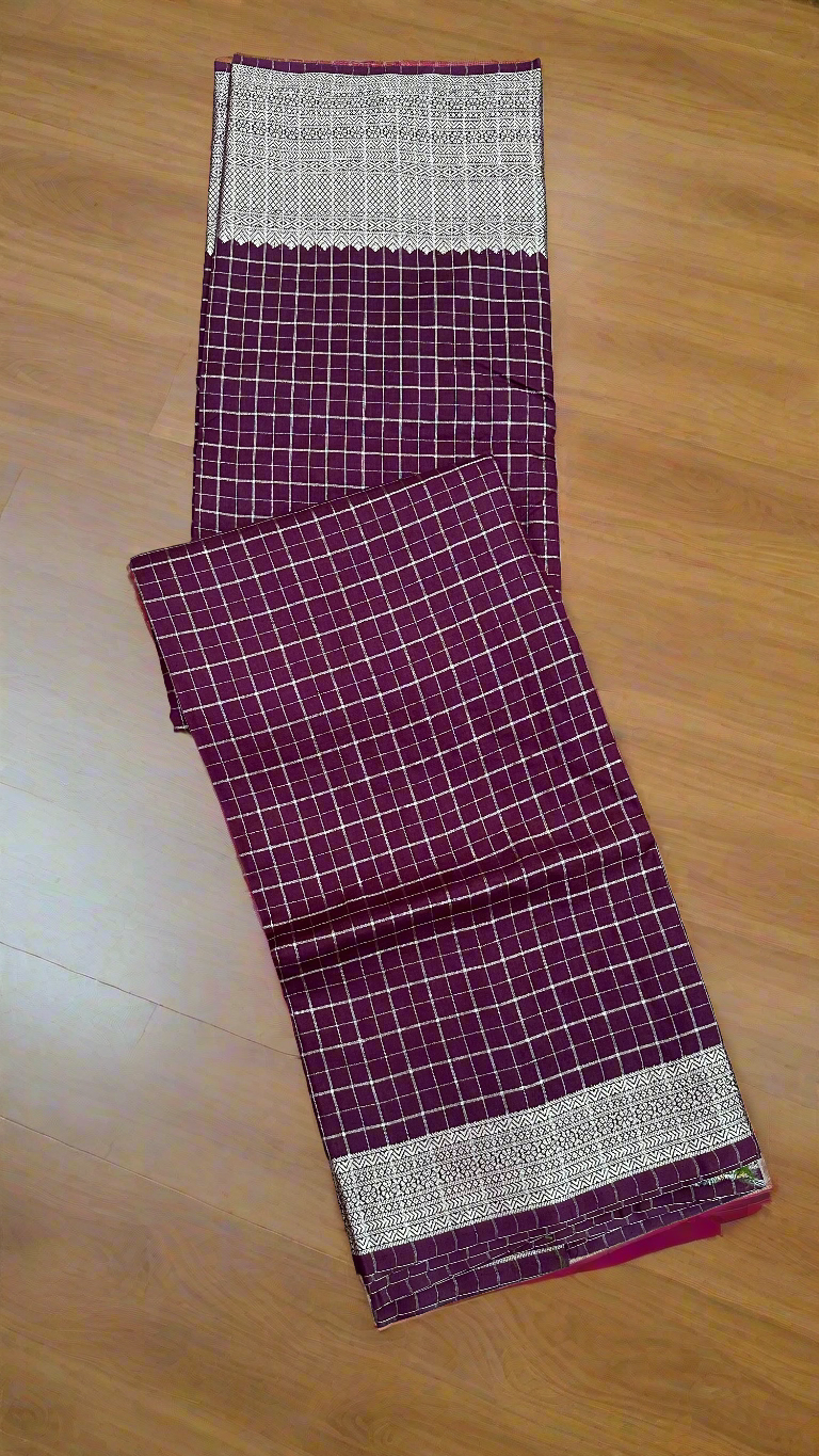 Handloom Gamcha Cotton Sleeveless Lace Work checks Blouse (Maroon)