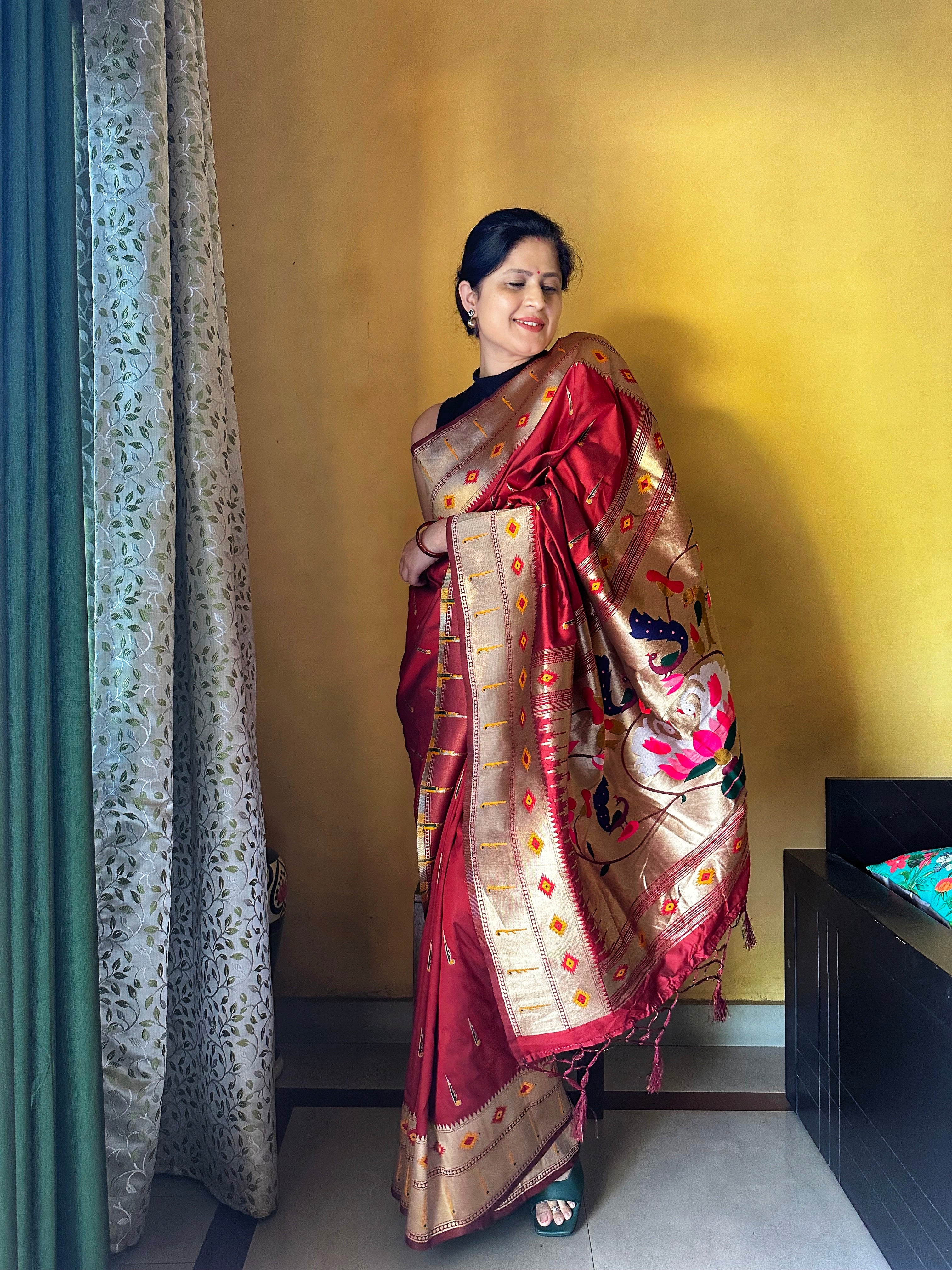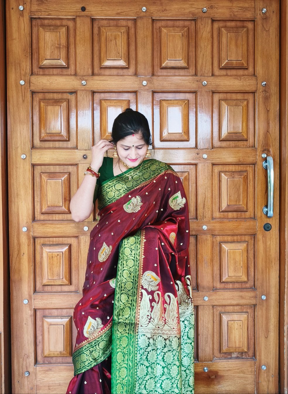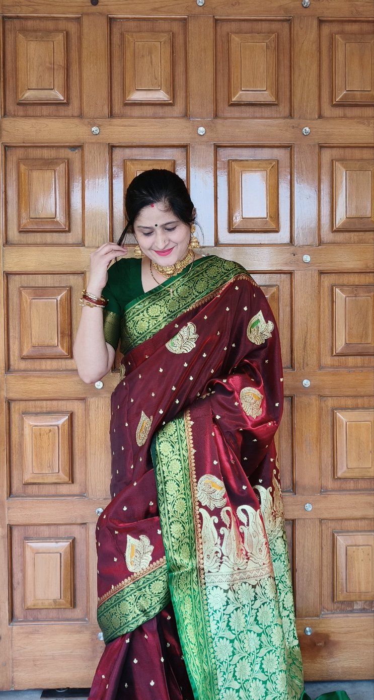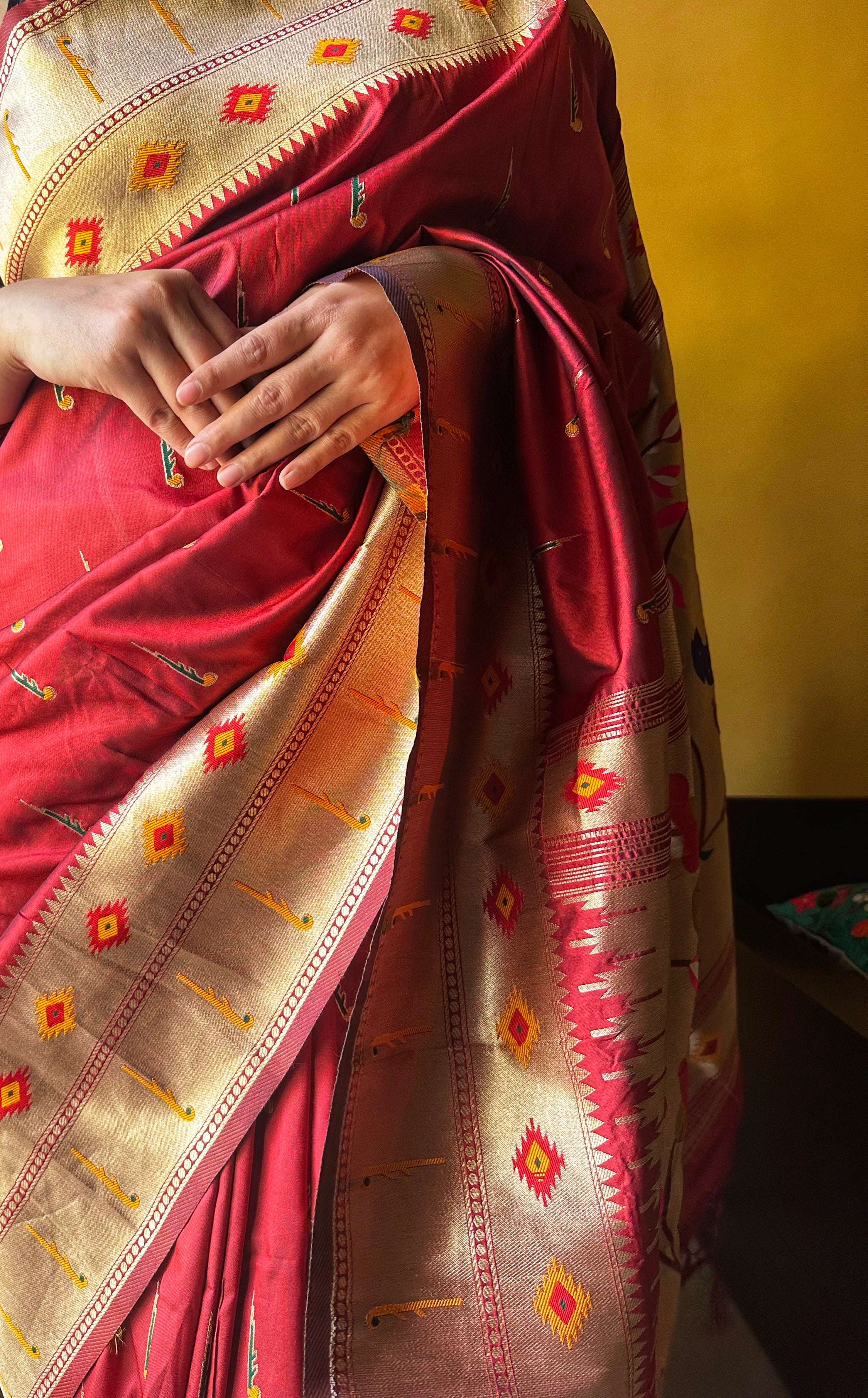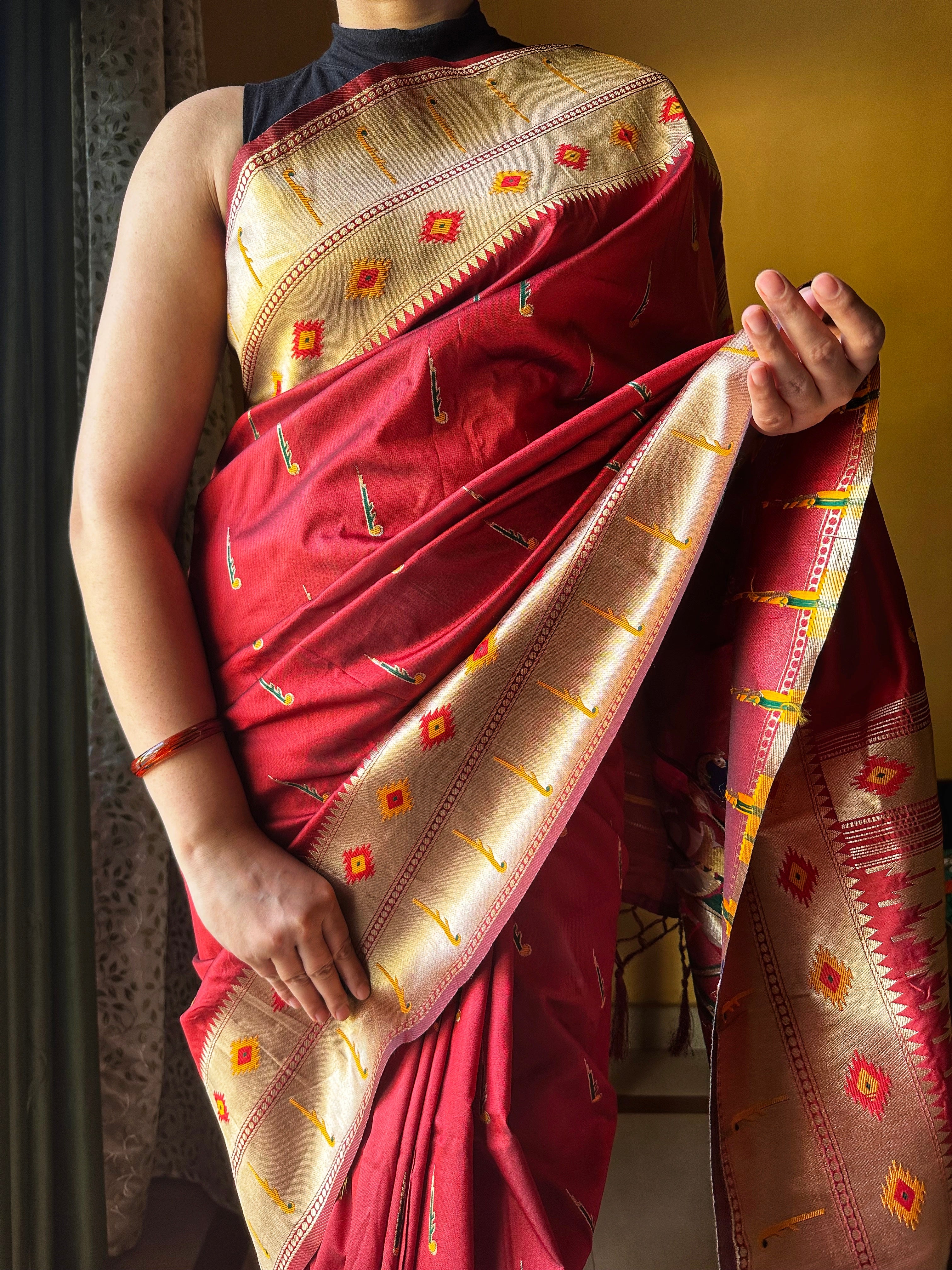 Handloom Gamcha Cotton Sleeveless Lace Work checks Blouse (Maroon)
