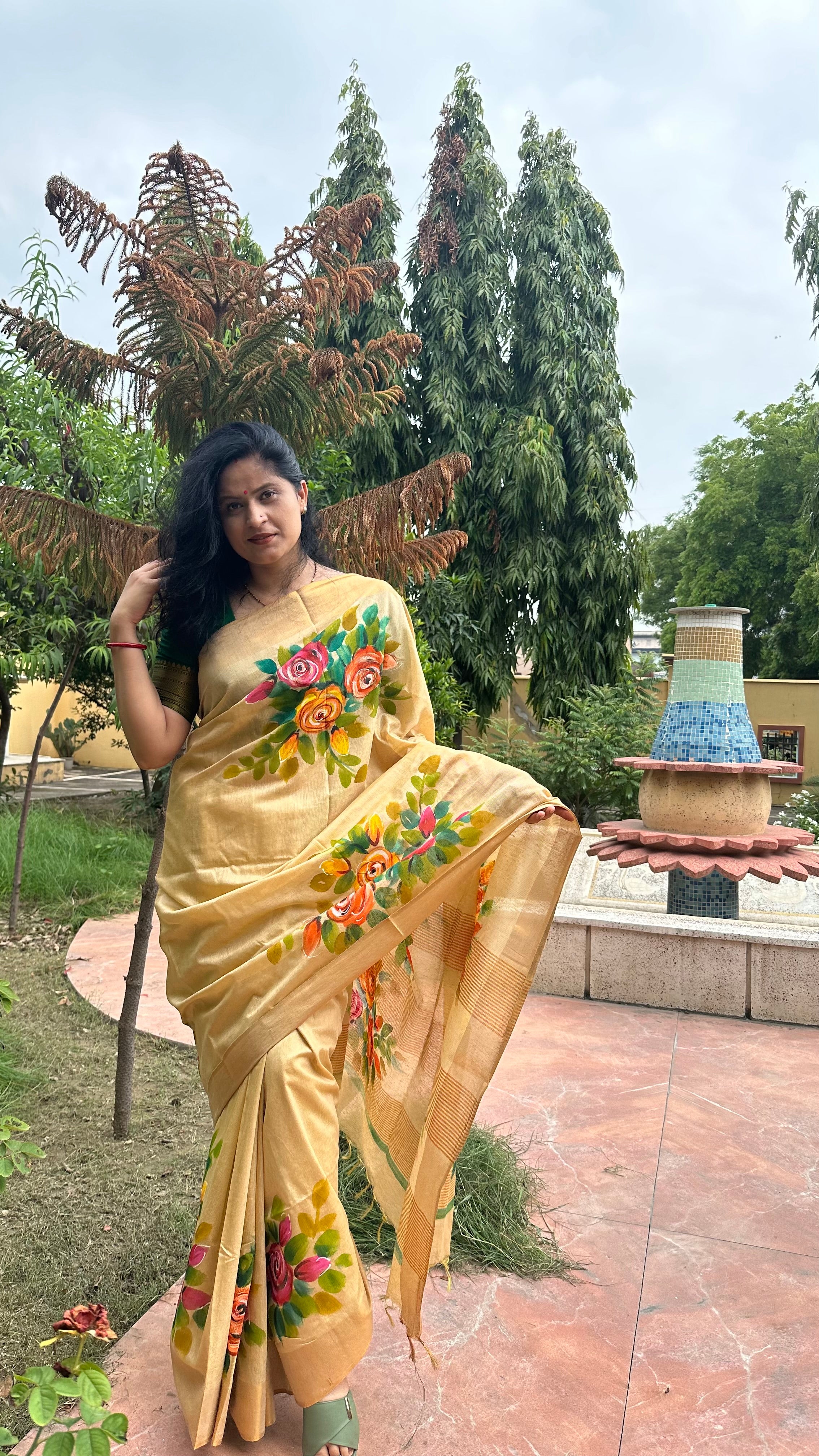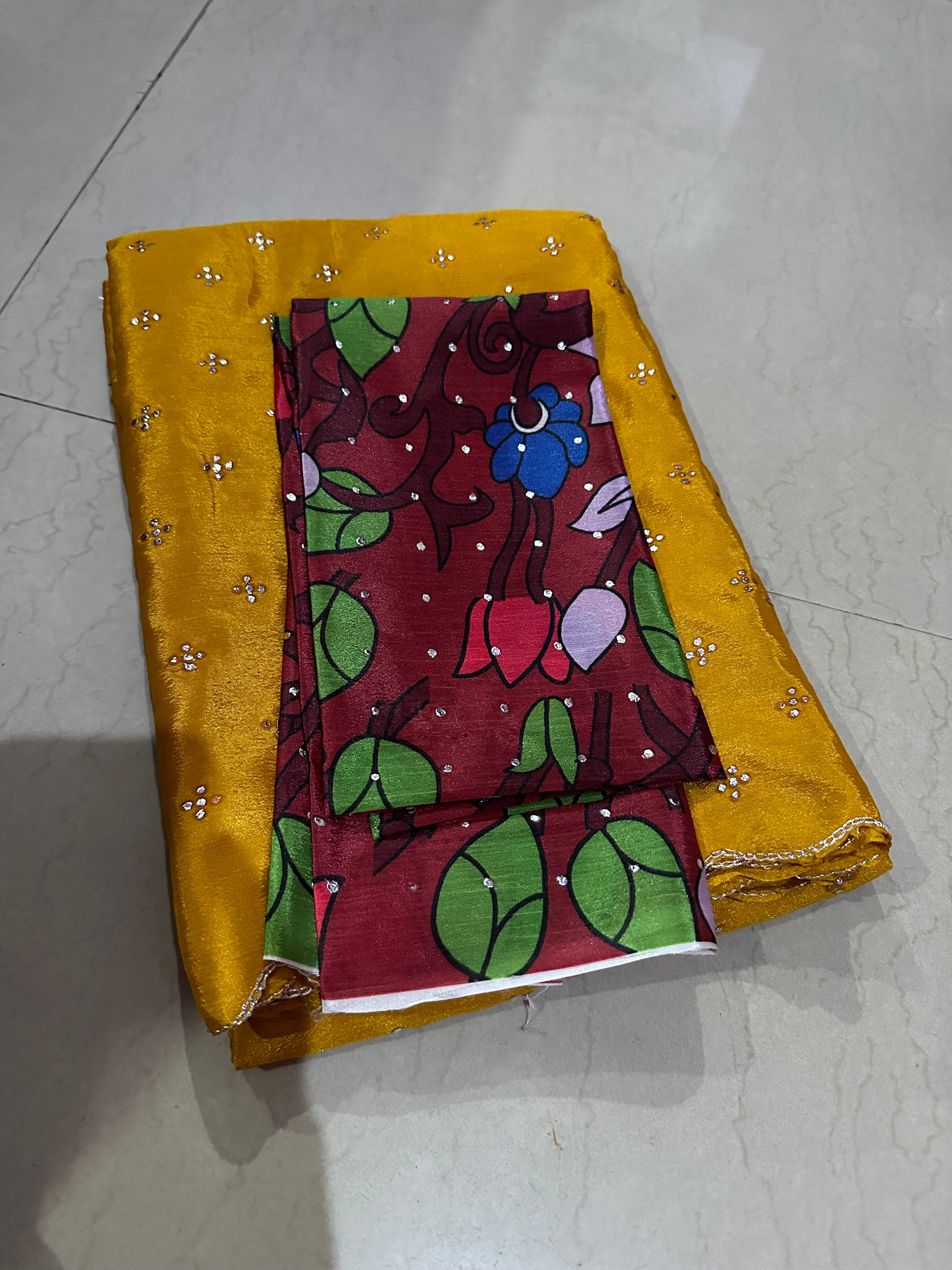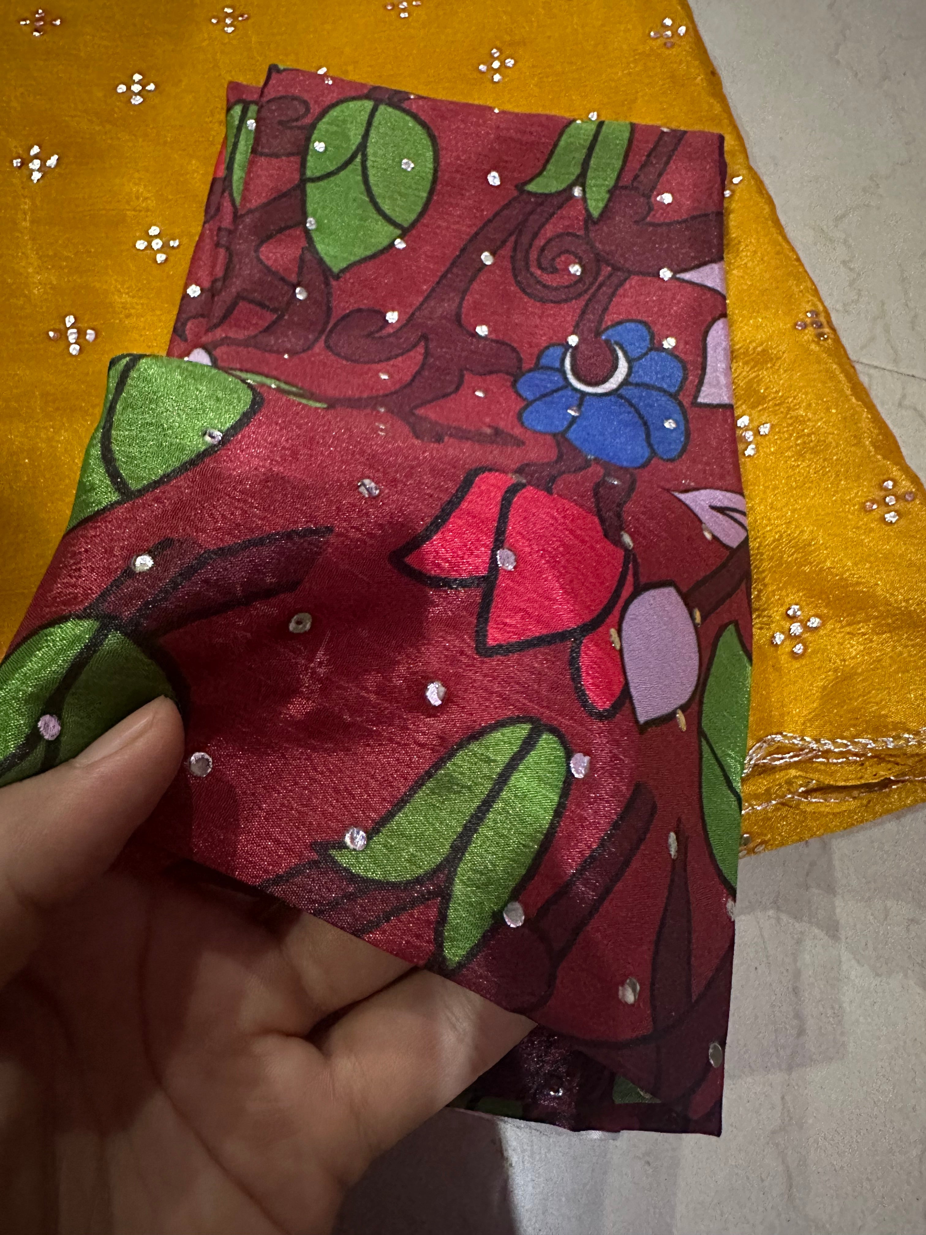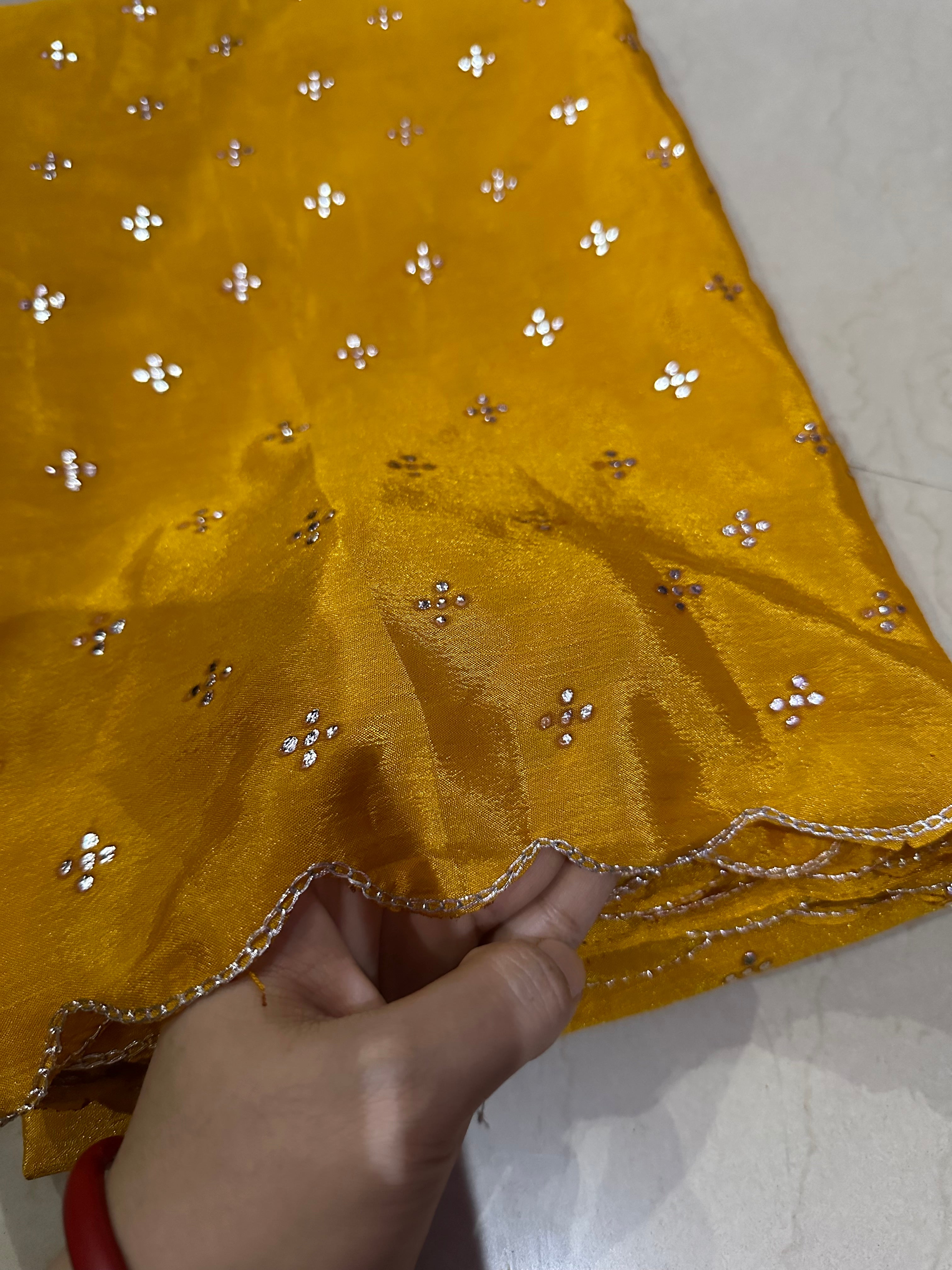 Crush Tissue Embroidered Sleeveless Blouse (Mustard)